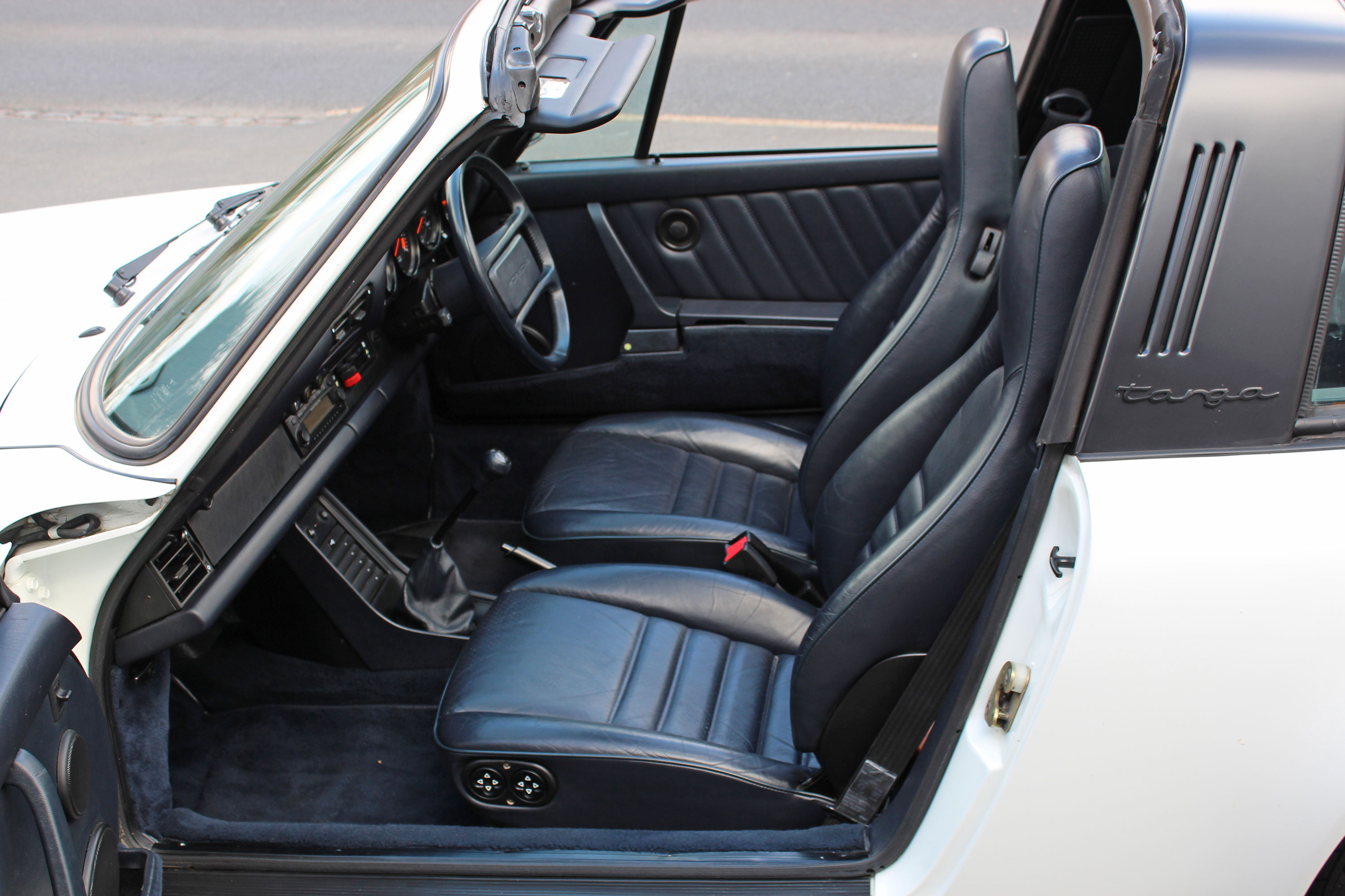 This 911 Carrera Sport Targa is presented in Grand Prix White with Dark Blue leather seats.
