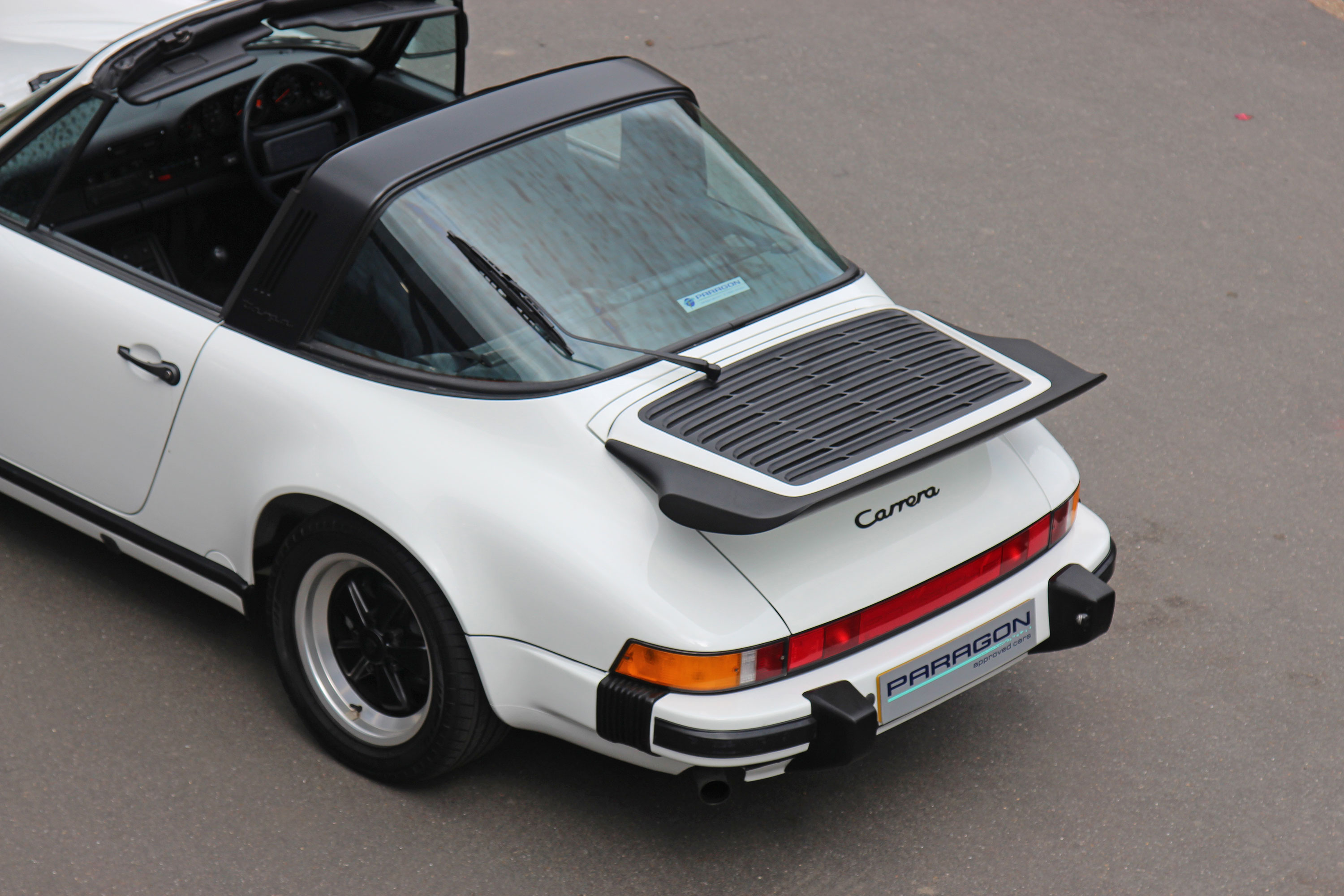 The Targa features a removable centre roof section which folds enabling it to be stowed under the bonnet. This offers the feel of a convertible with the benefit of a roll over hoop and glass heated rear screen.