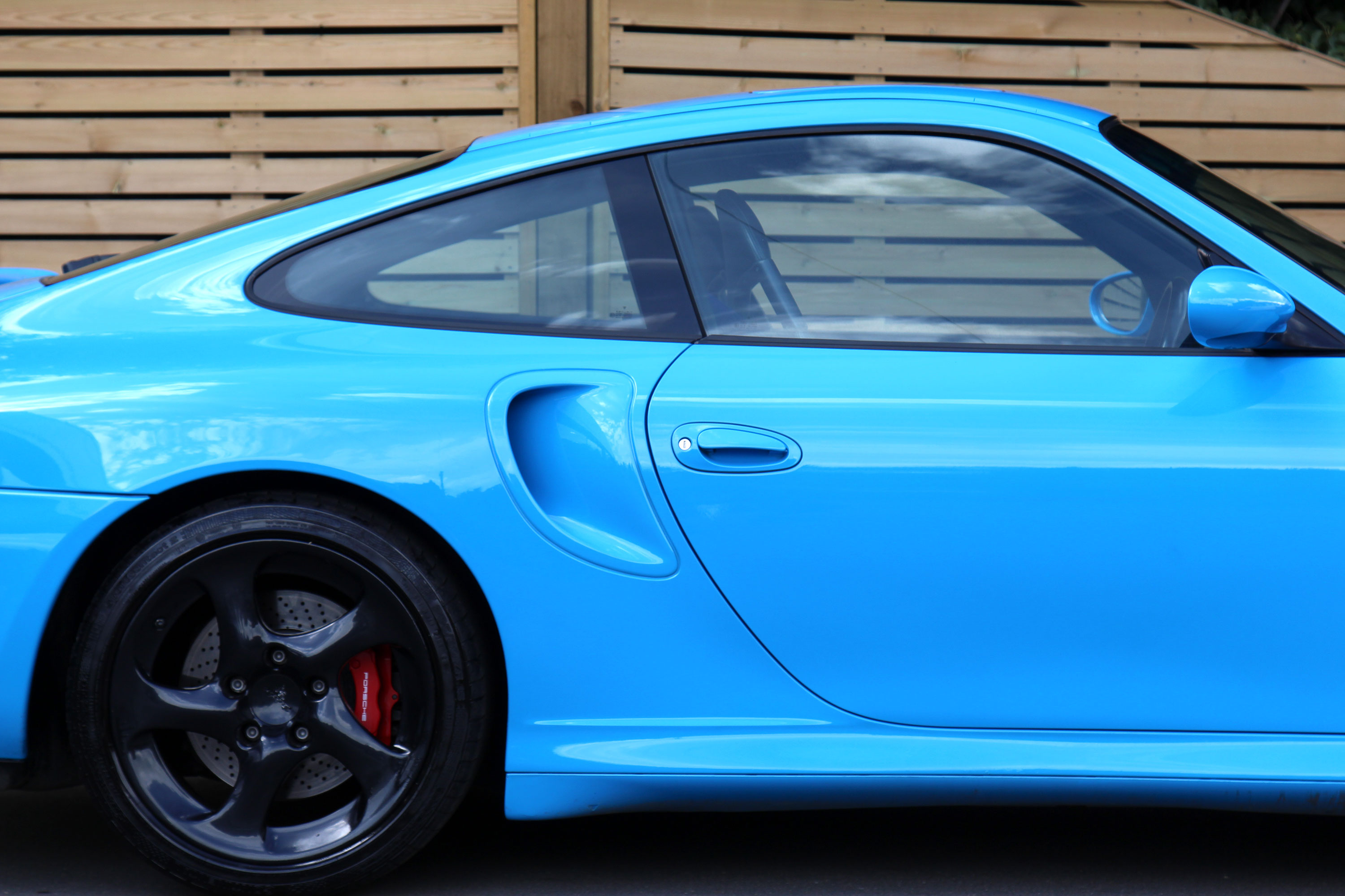 This 911 Turbo Coupe (996) features the factory X50 Power Kit that increases power from 420 to 450bhp, with the Tiptronic S gearbox and is presented in Riviera Blue with black leather bucket seats.