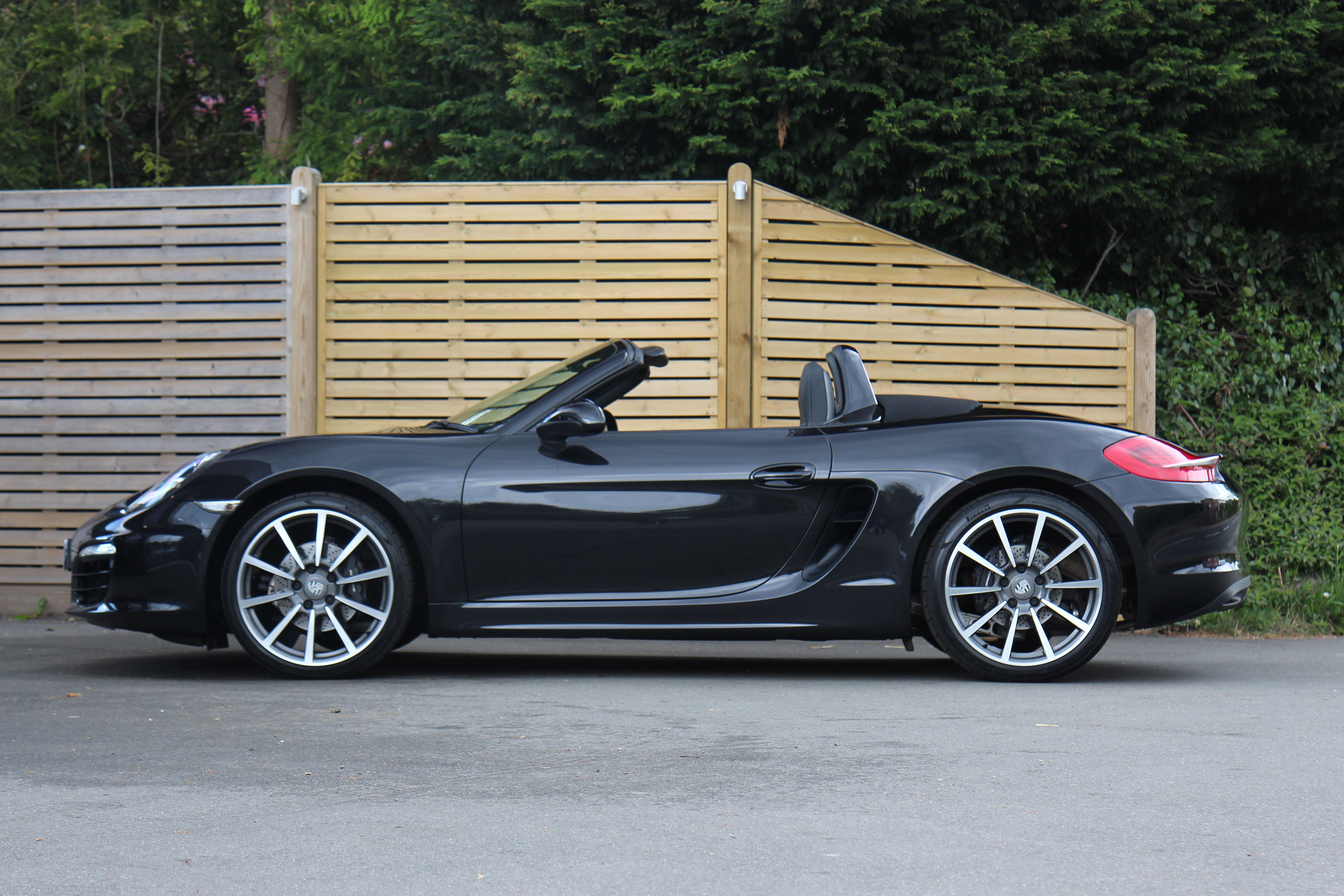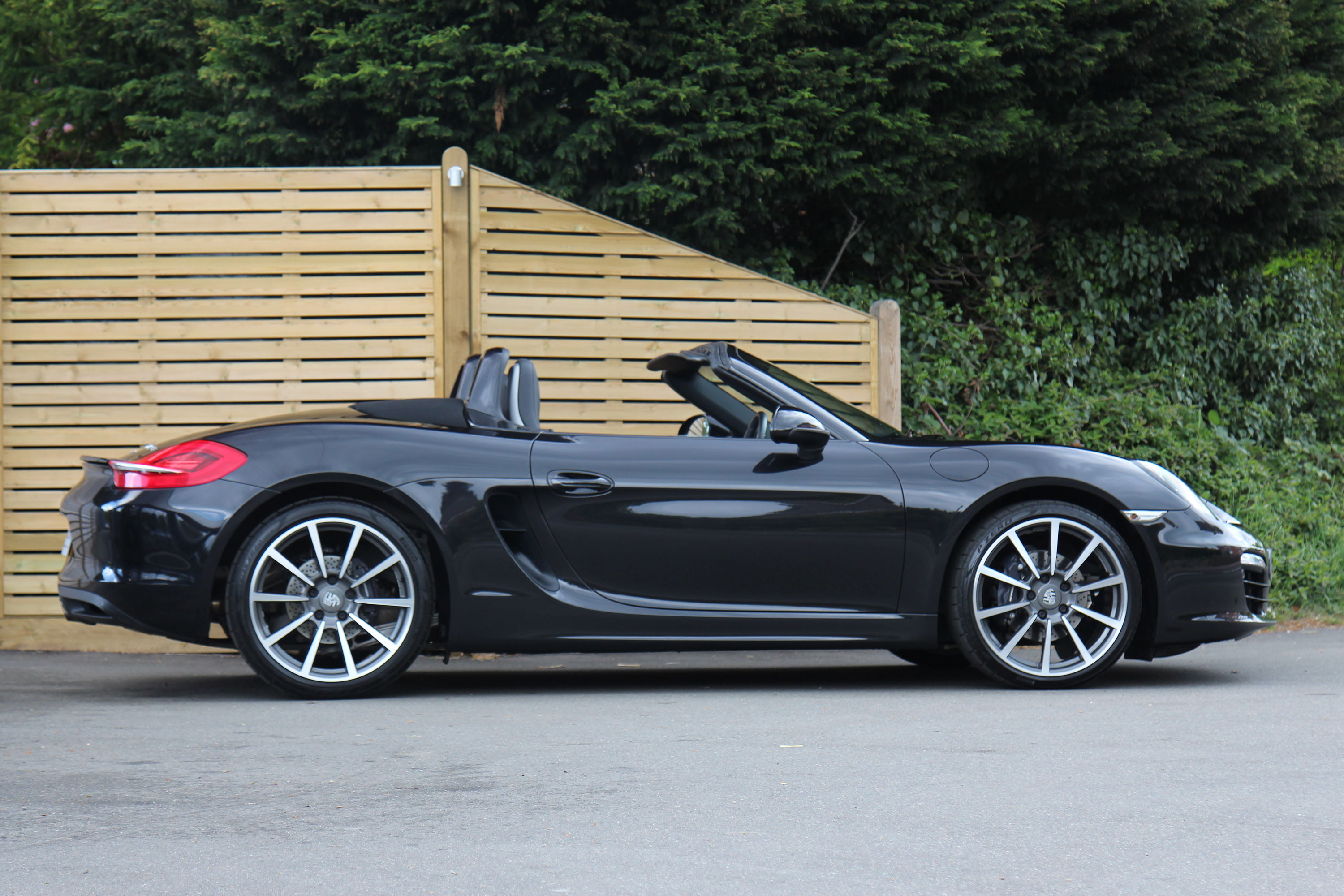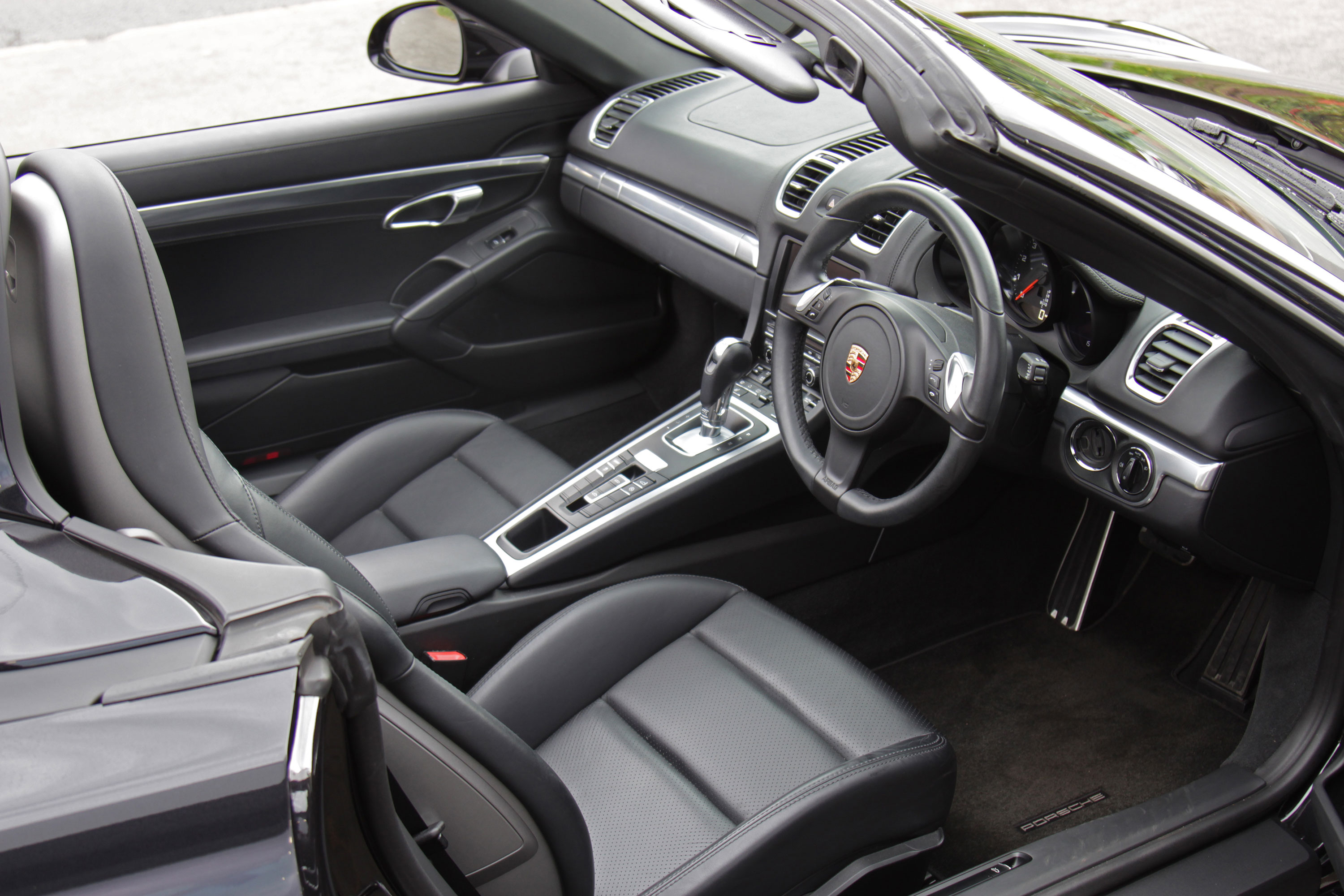 This Boxster 2.7 (981) has the 7-speed PDK gearbox and is presented in Basalt Black with black leather seats.
