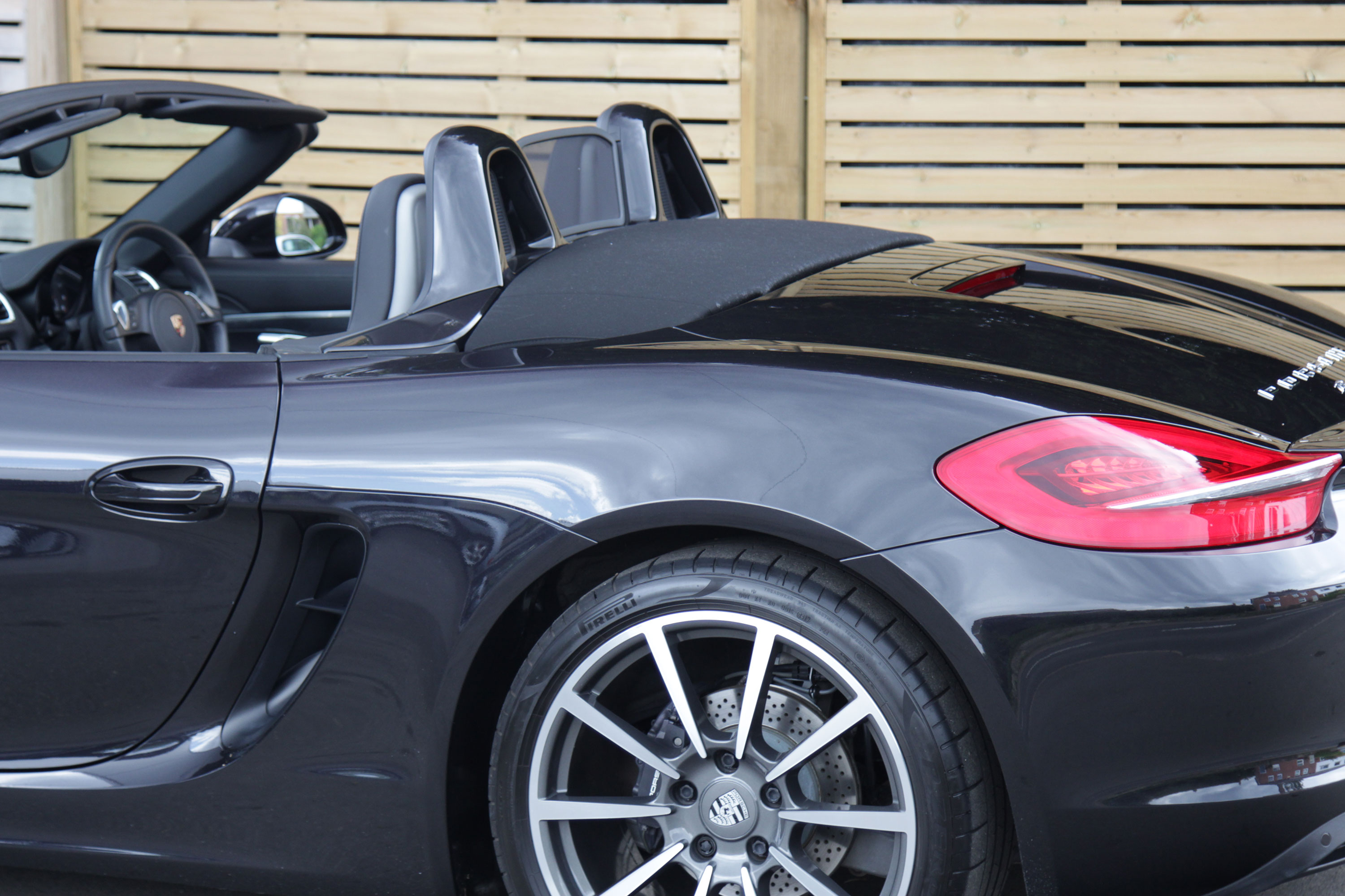 The 2.7 litre flat six engine develops 265 bhp and standard features include air conditioning, automatic headlights, a stop / start function, a mesh wind deflector, an onboard computer, Porsche Stability Management and a black power hood.