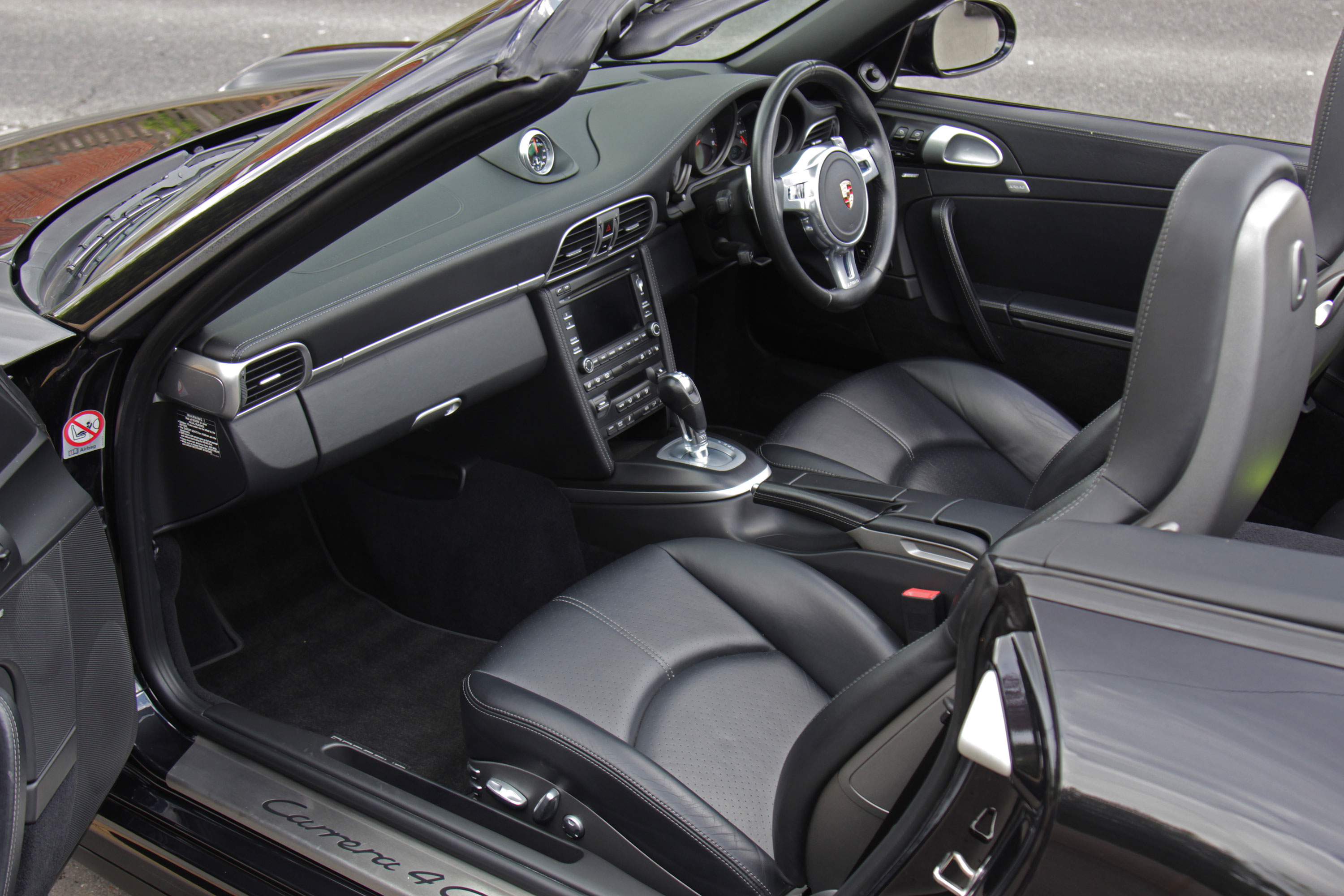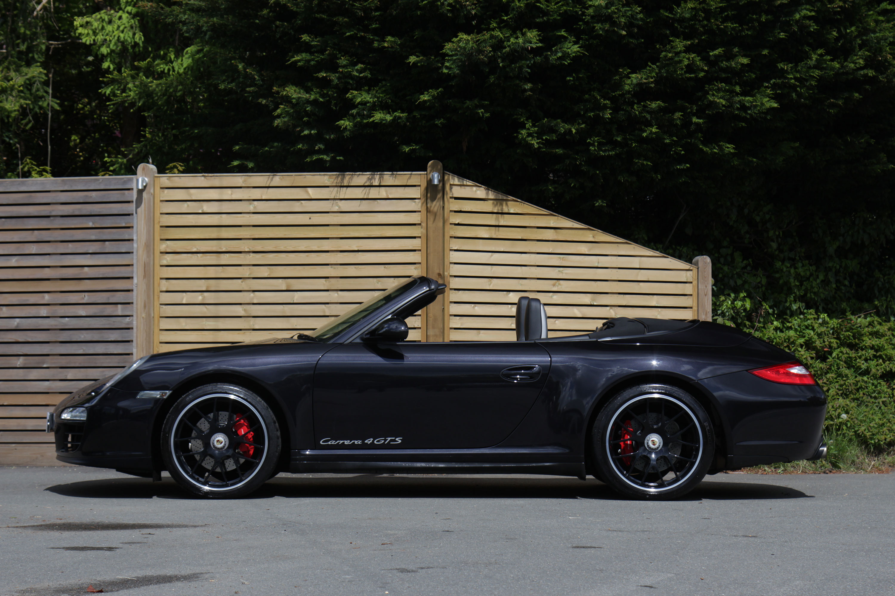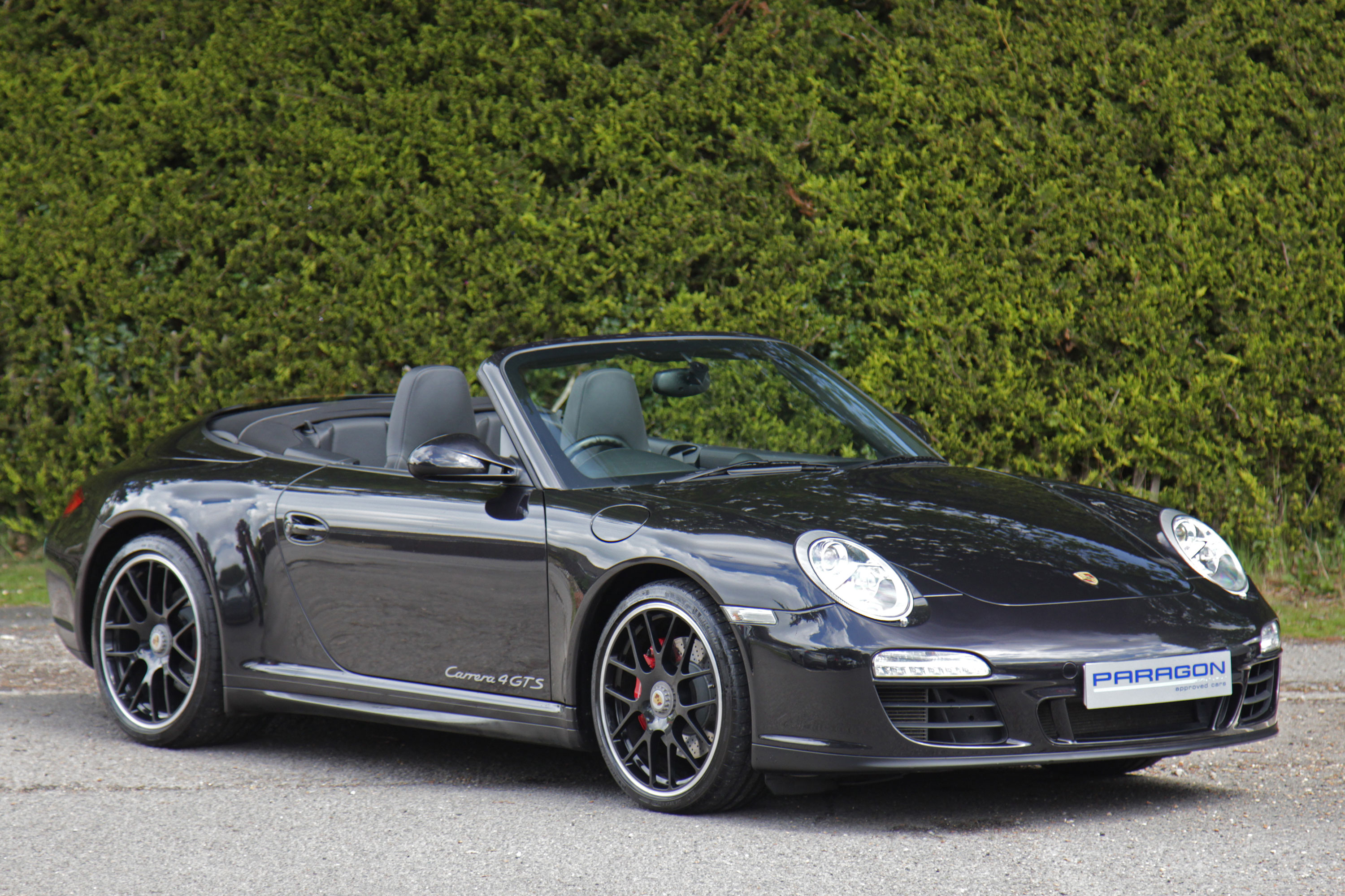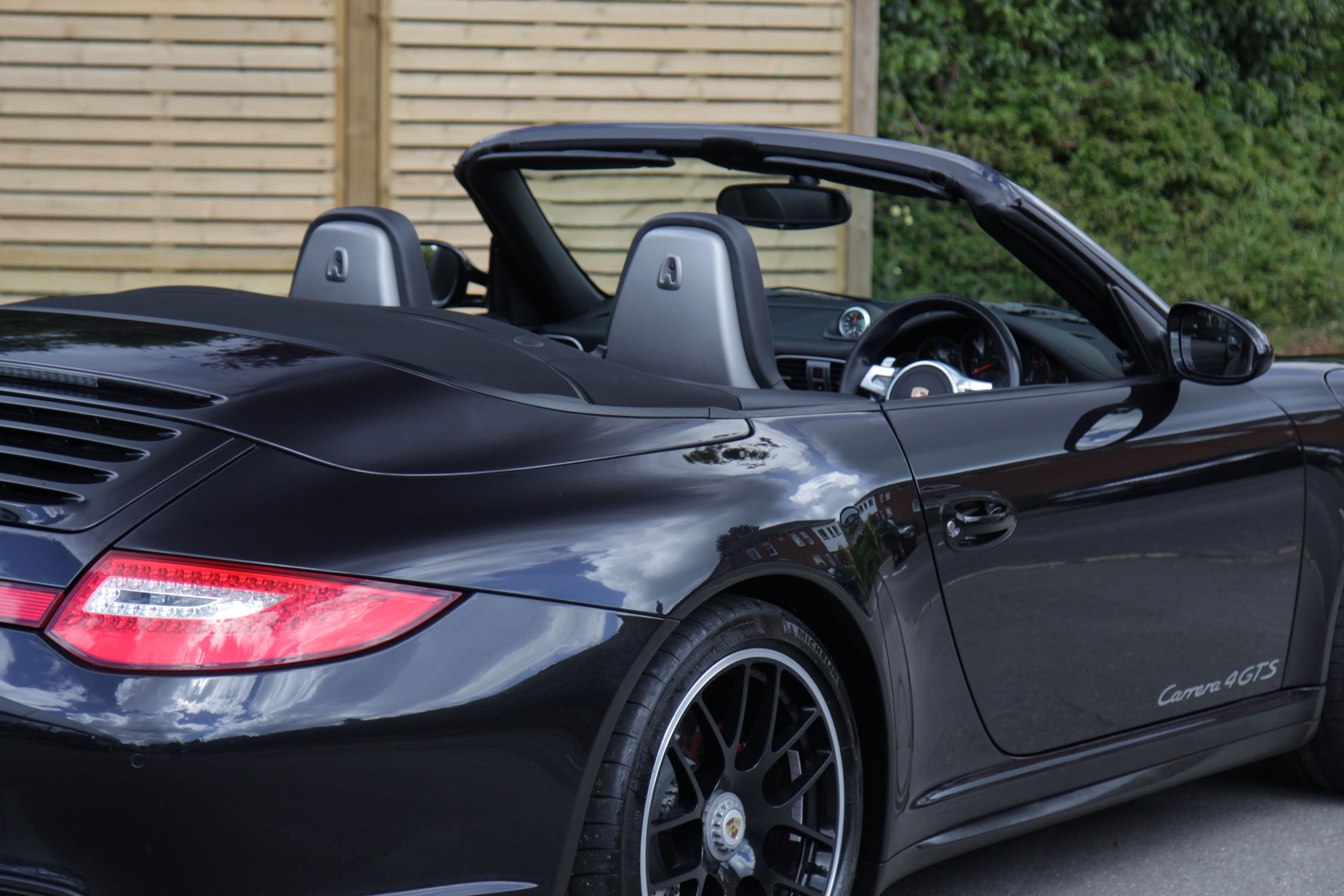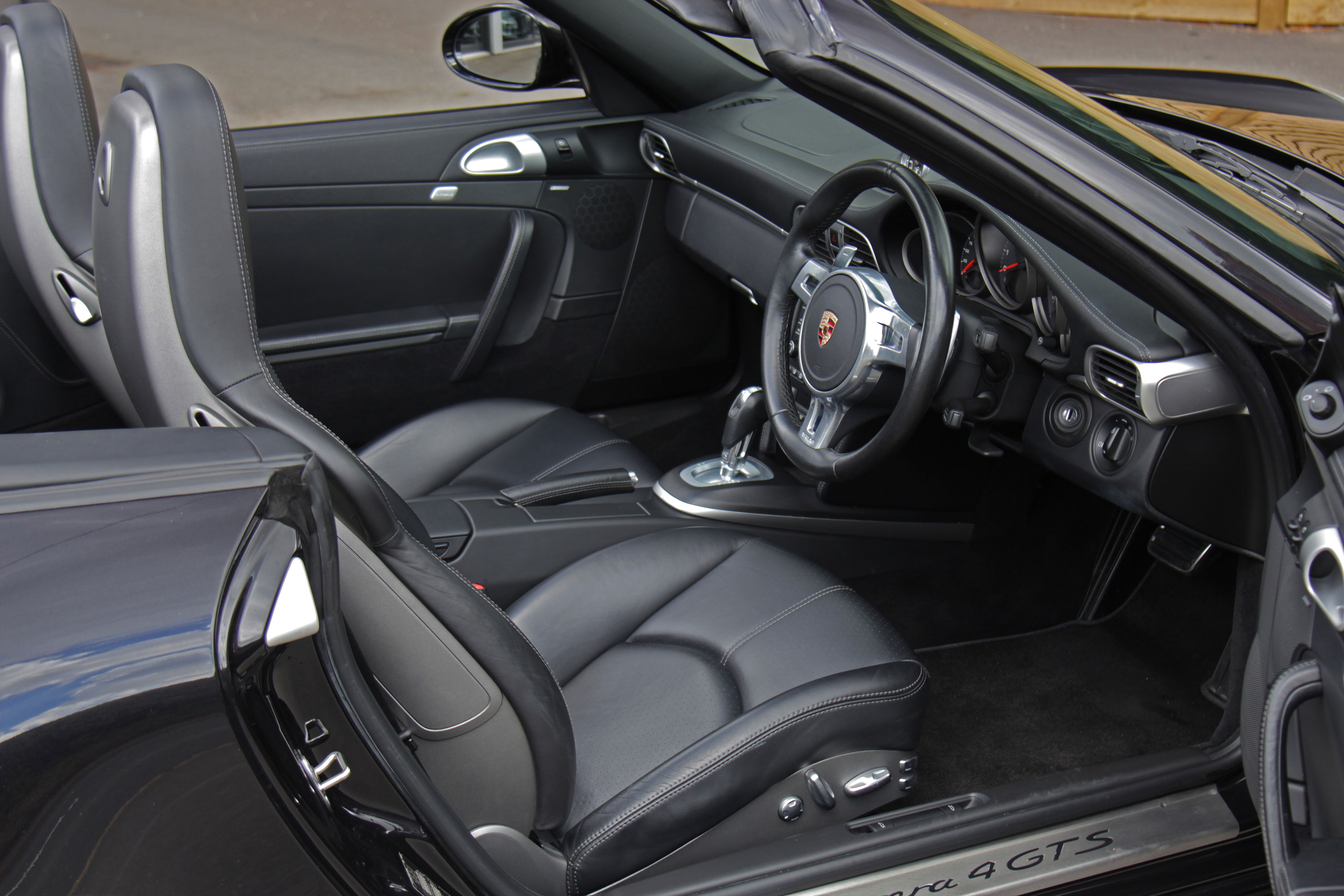 This 911 Carrera 4 GTS Cabriolet (997) has the 7-speed PDK gearbox and is presented in Basalt Black with black leather seats.