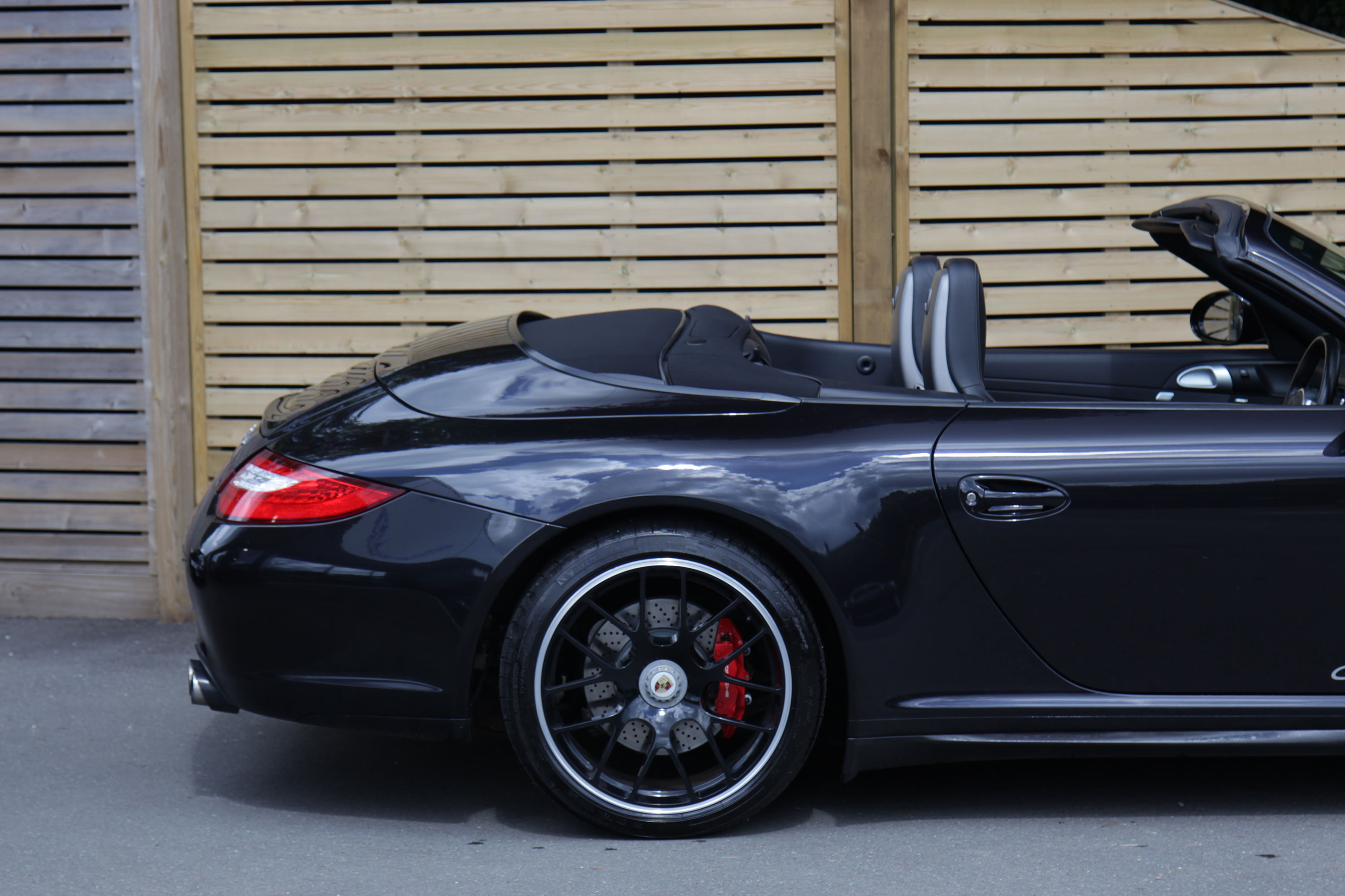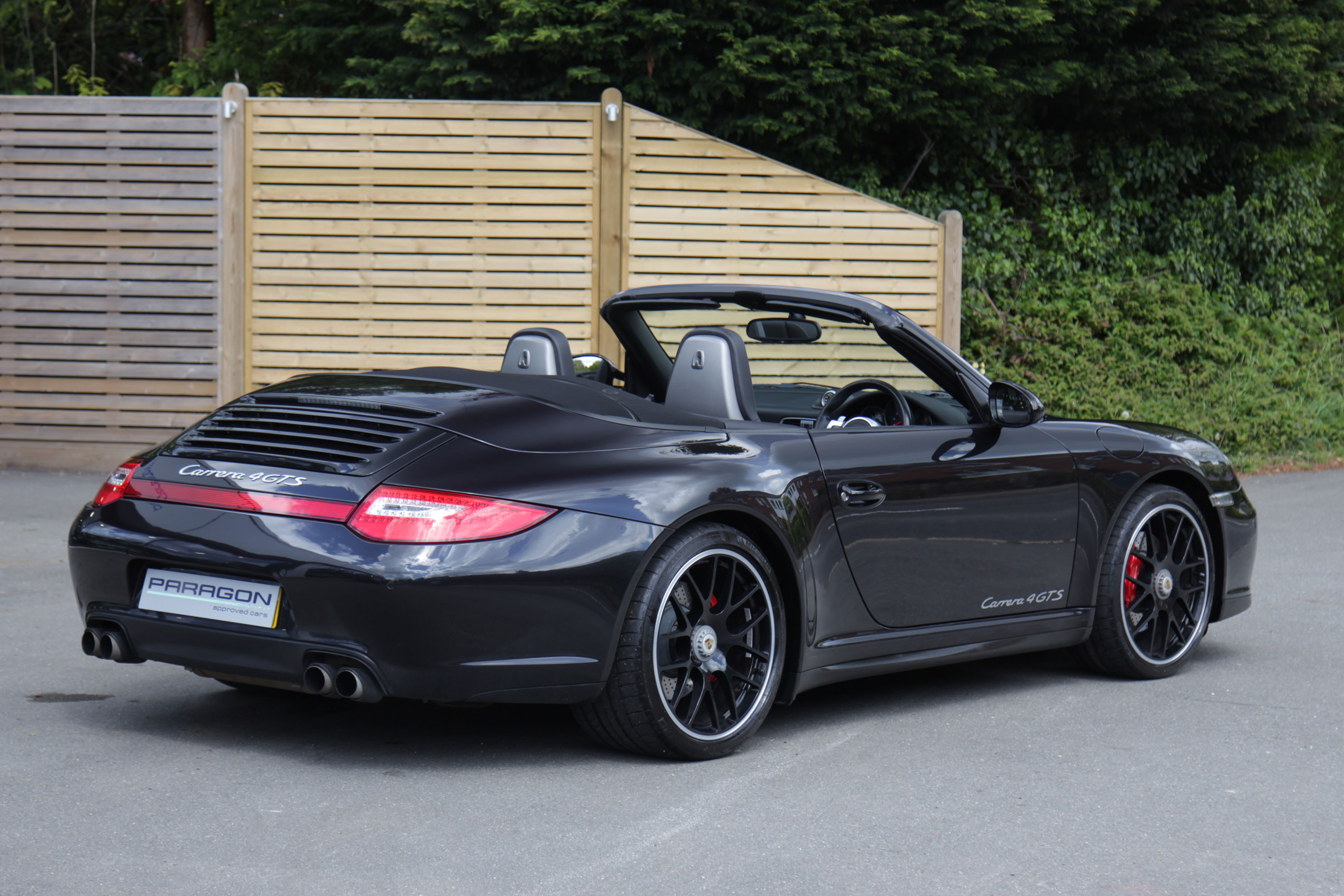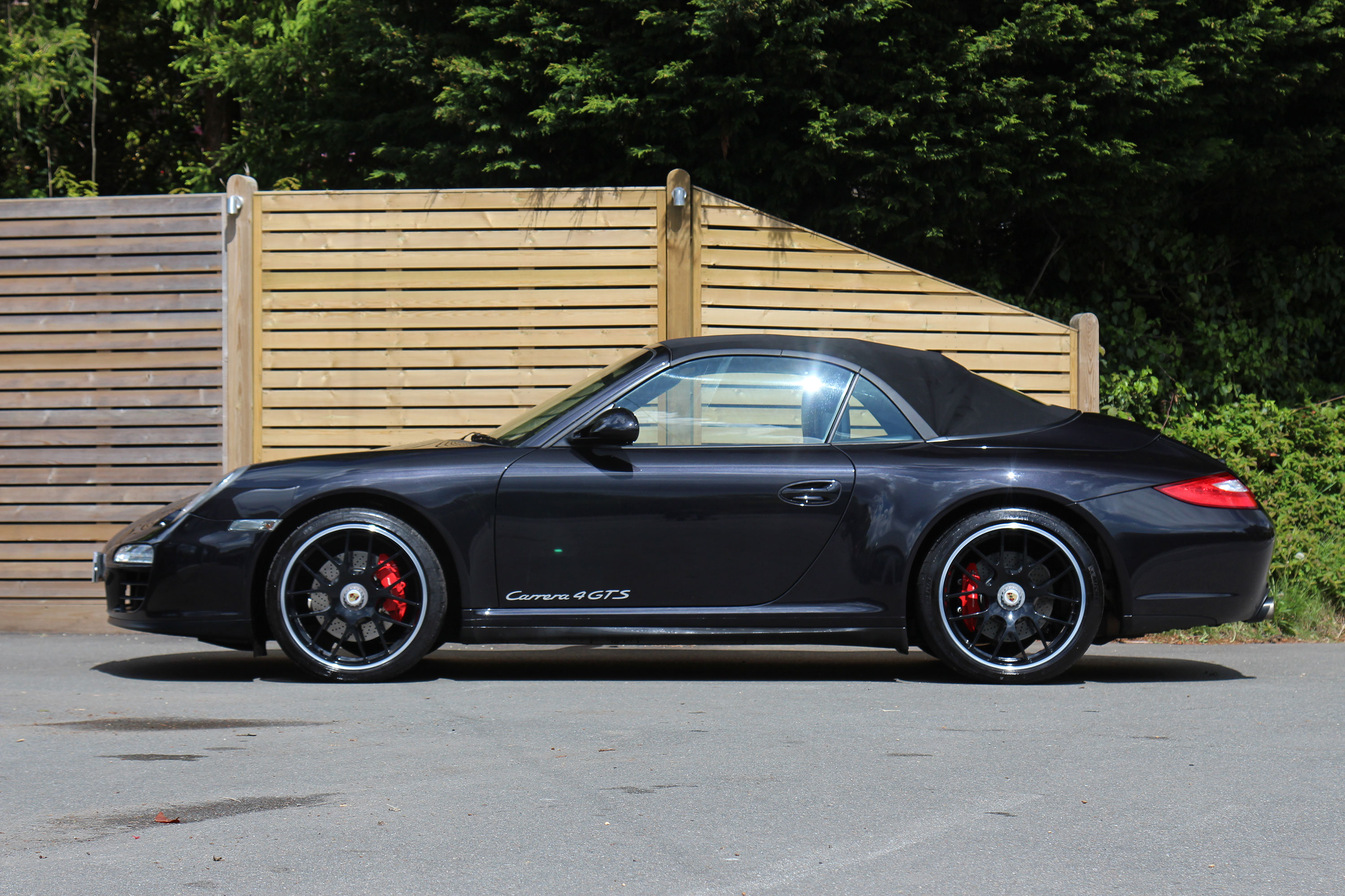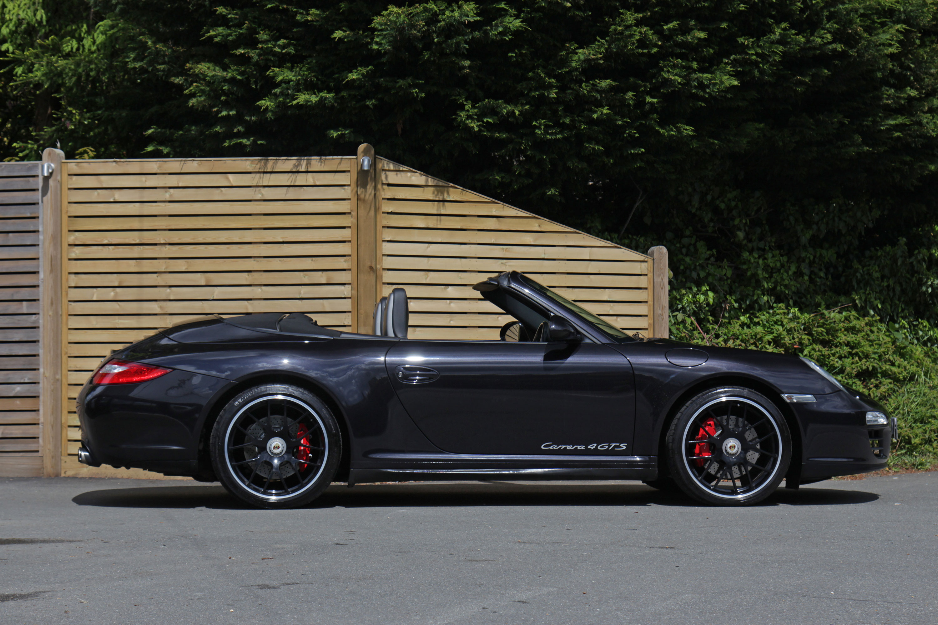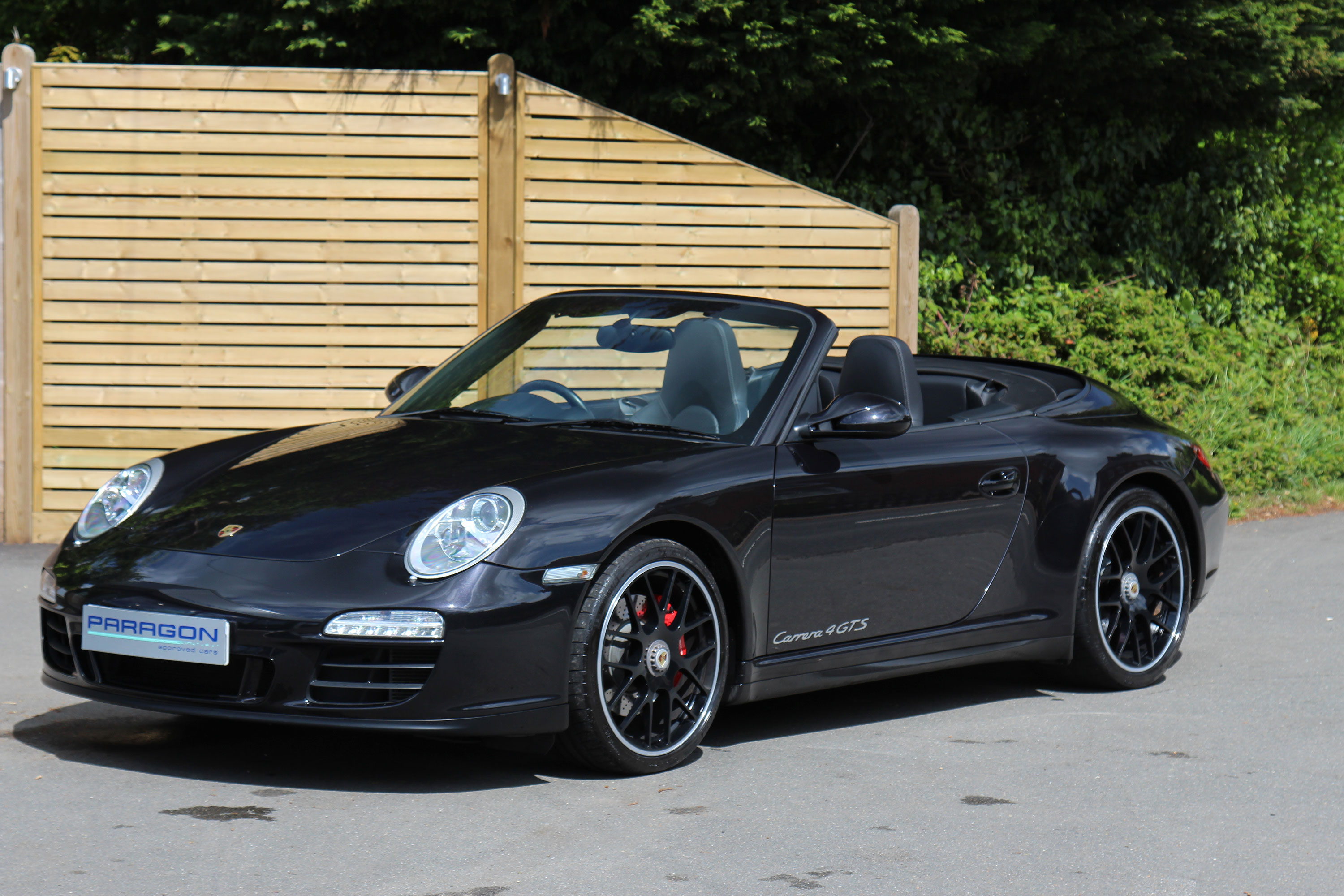 This 911 Carrera 4 GTS Cabriolet (997) has the 7-speed PDK gearbox and is presented in Basalt Black with black leather seats.