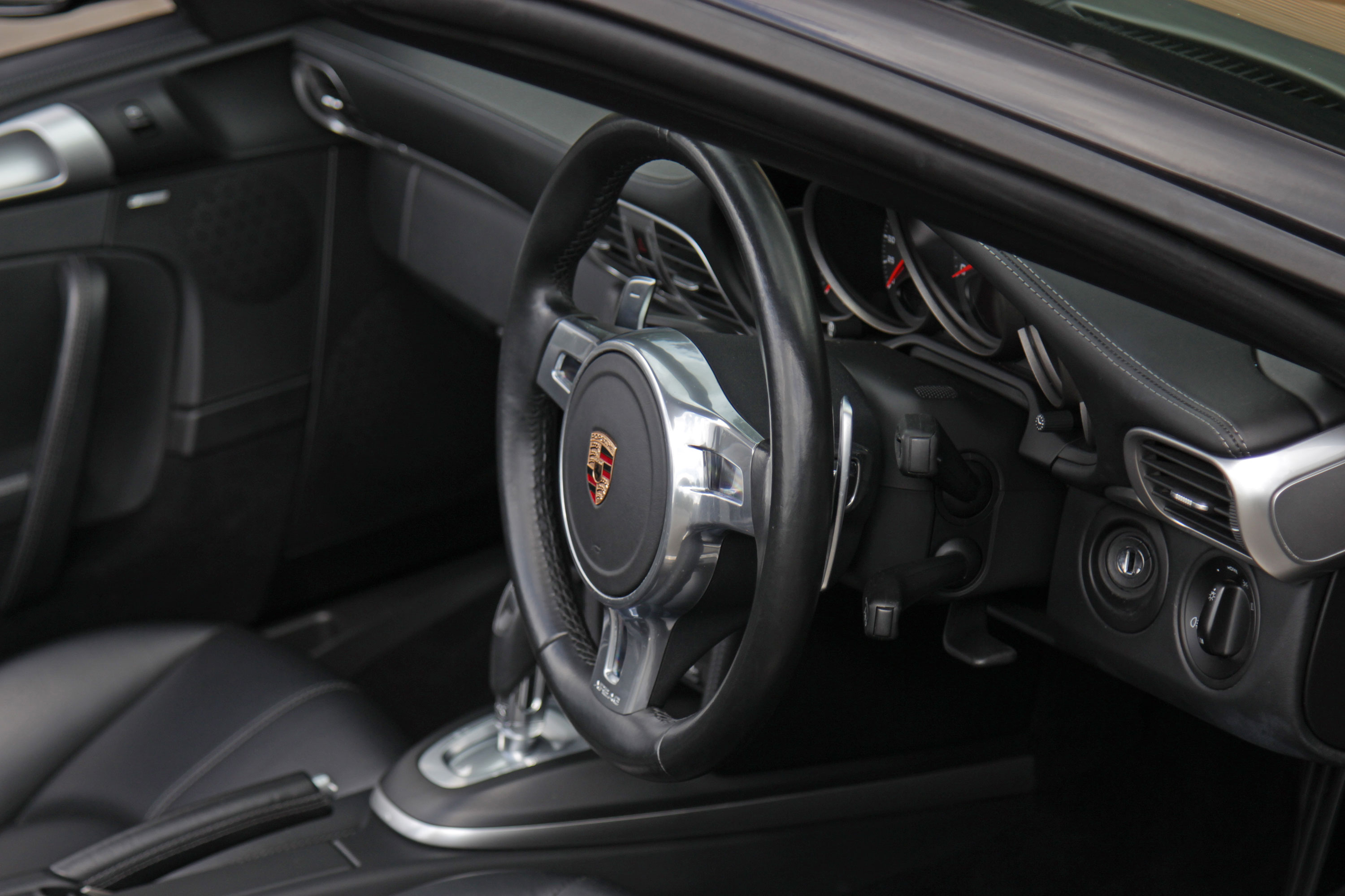 Factory-fitted options include the 7-speed PDK gearbox with Sport Design paddle shift steering wheel, heated seats, cruise control, an iPod/USB interface, adaptive sport seats with drivers memory, the Sport Chrono Pack with Sport Plus, rear parking sensors, Bluetooth phone and a BOSE sound system.