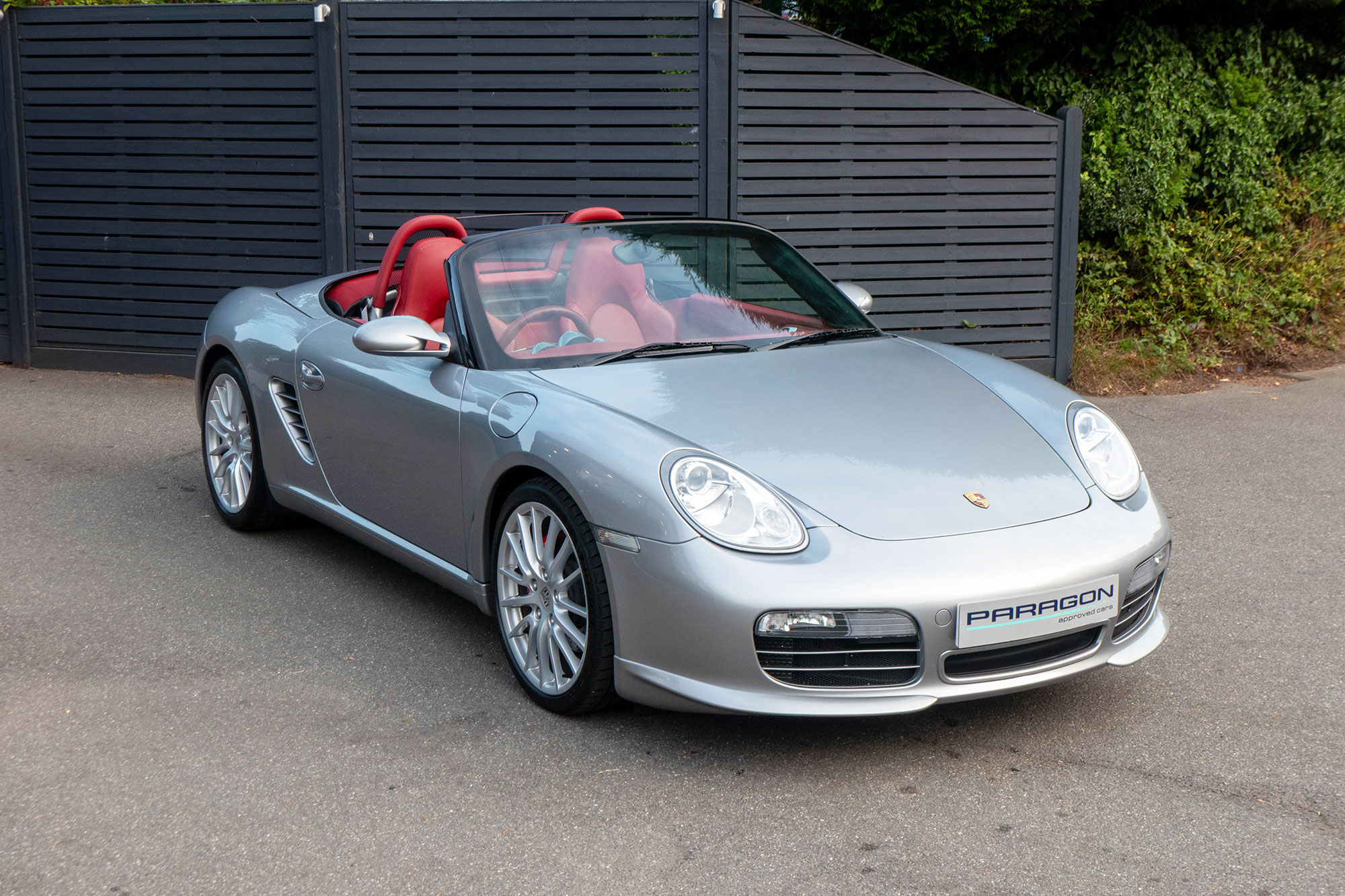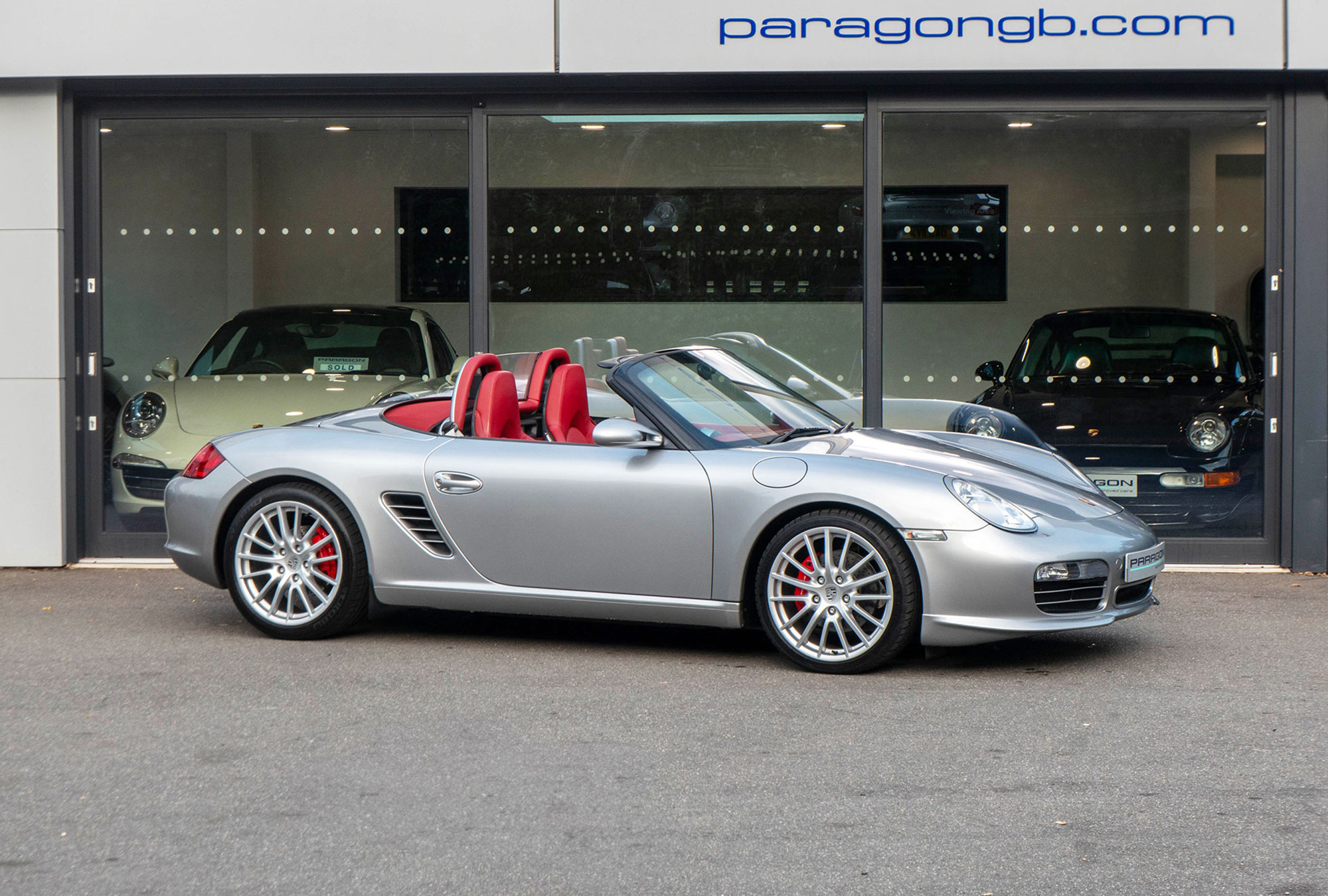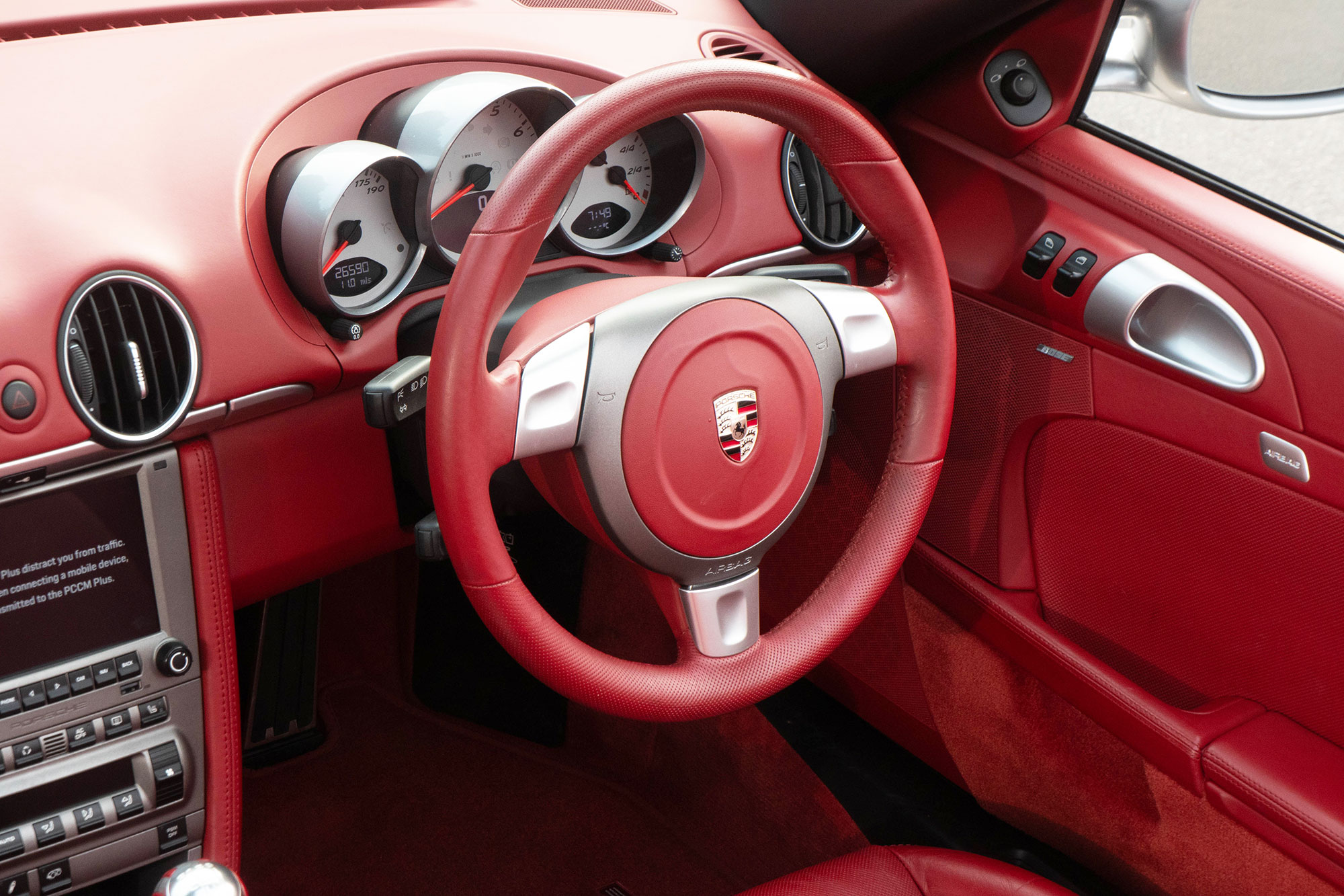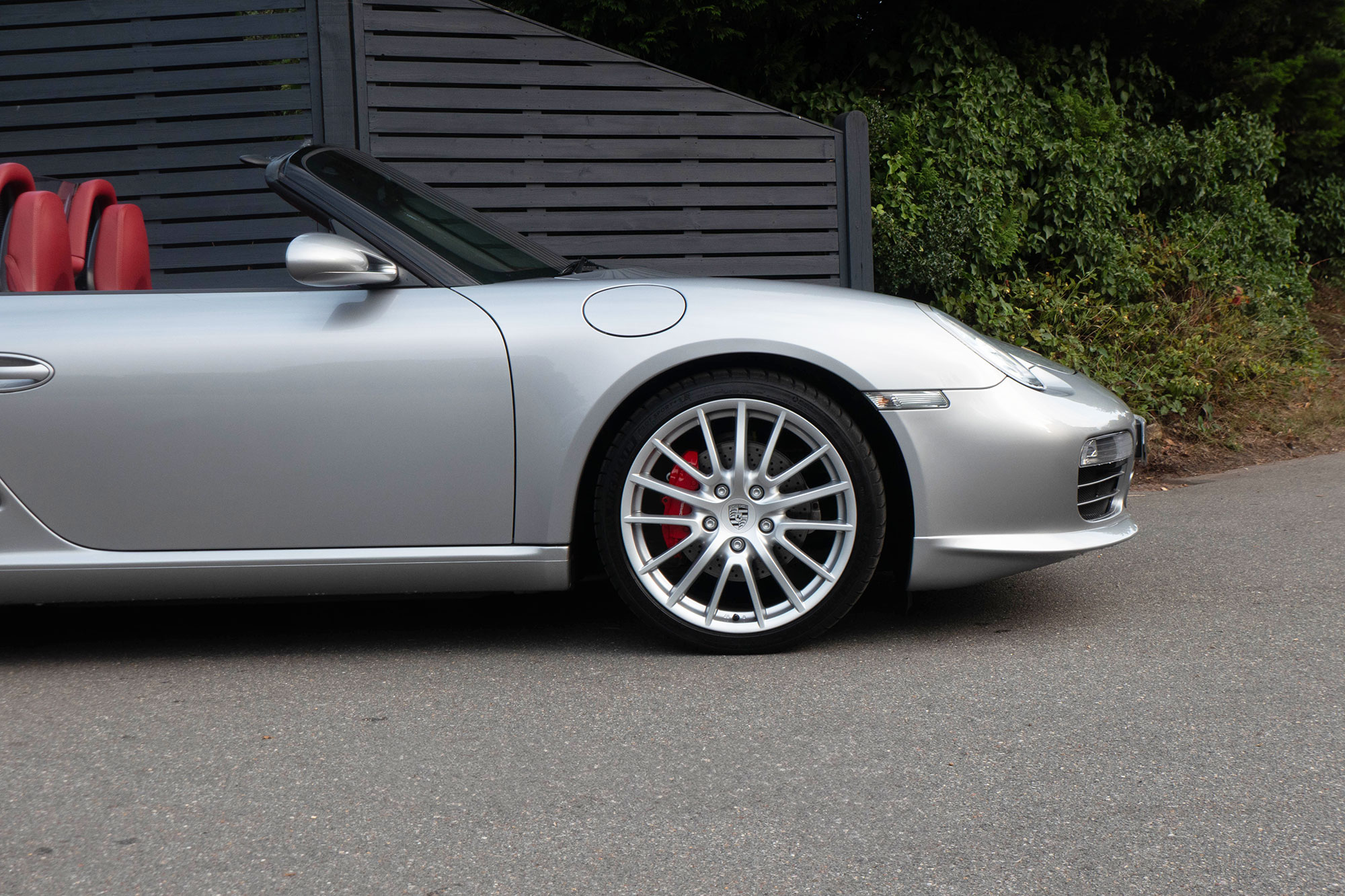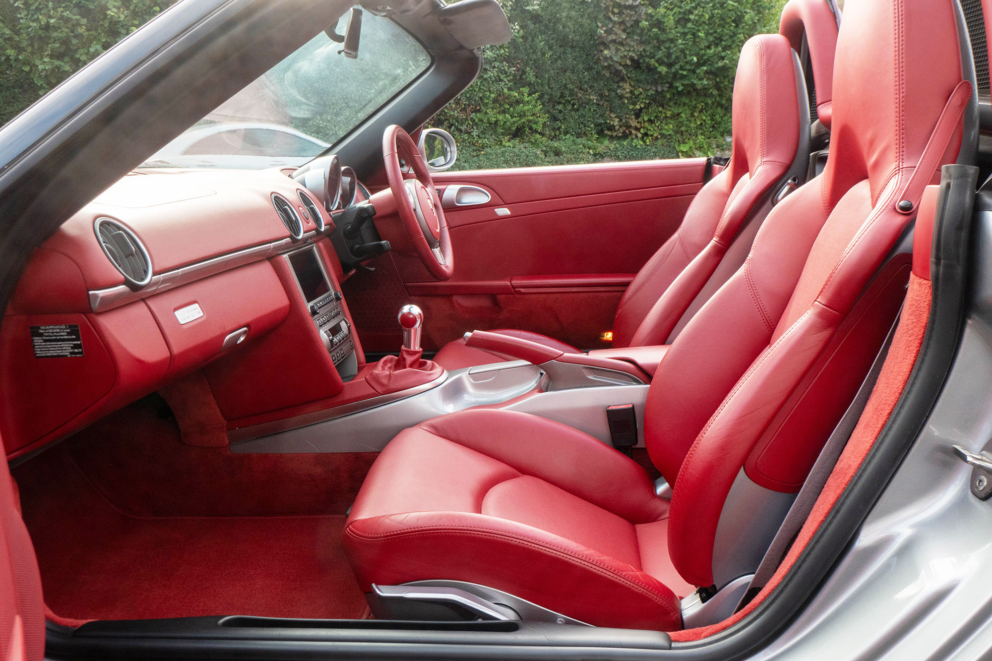 Presented in GT Silver with Natural Carrera Red leather sports seats with a 6-speed manual gearbox, standard features include a Carrera Red power hood, 19" Sport Design wheels, a body coloured centre console, extended leather, RS60 Stainless steel door entry guards, an onboard computer, a body coloured roll over bar, Silver Grey seat belts, a 3-spoke leather sports steering wheel, silver dials, Porsche Active Suspension Management & Porsche Stability Management, a wind deflector, switchable sports exhaust, air conditioning and red tail lights.