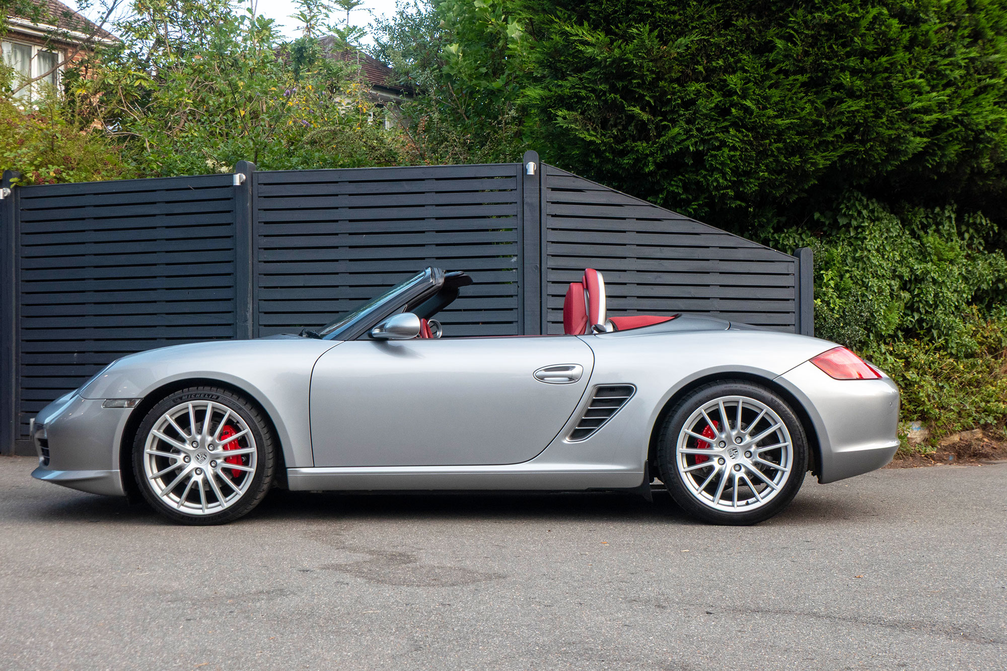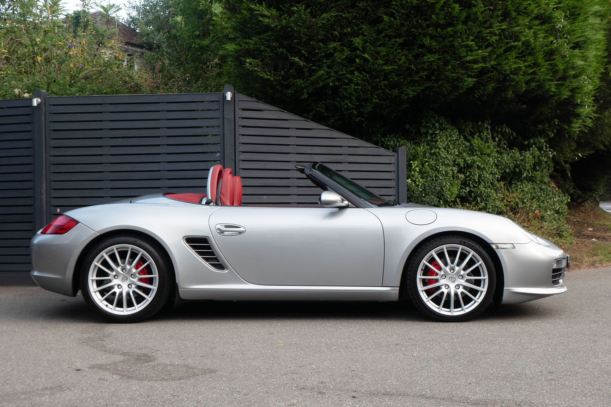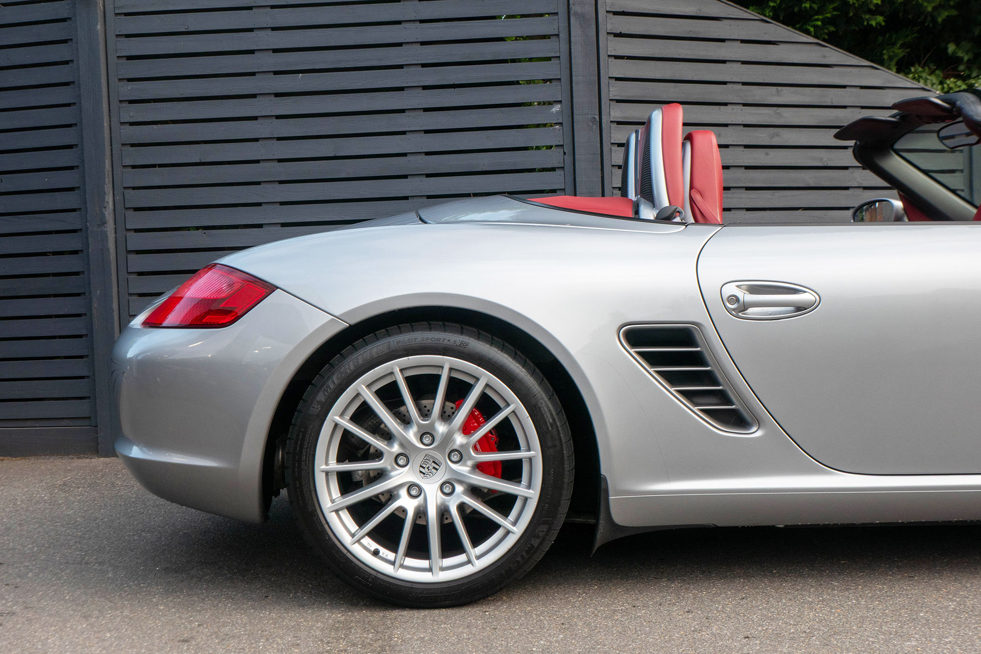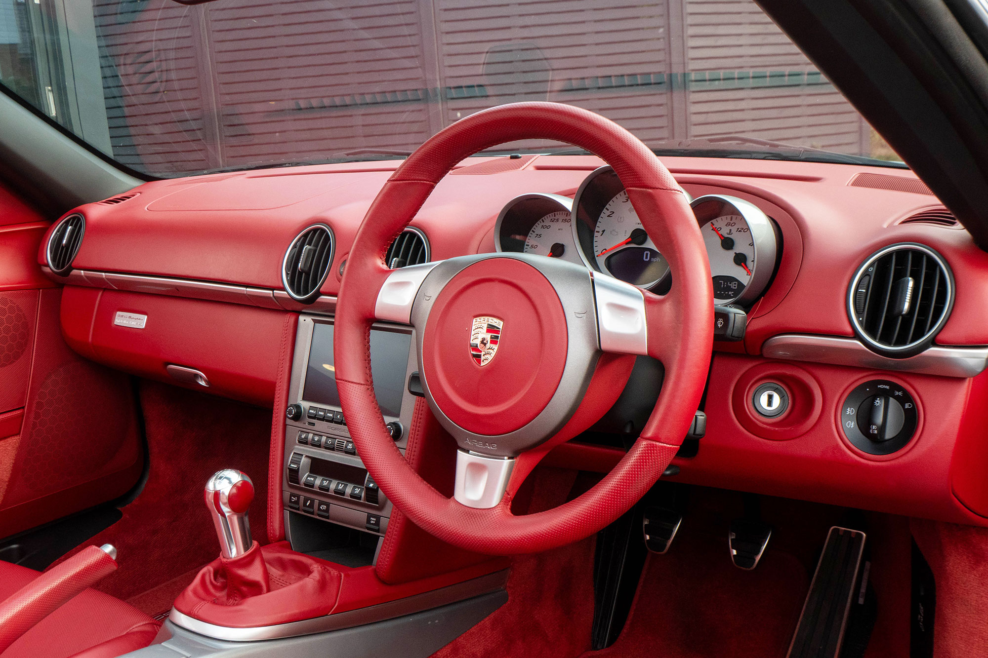 Presented in GT Silver with Natural Carrera Red leather sports seats with a 6-speed manual gearbox, standard features include a Carrera Red power hood, 19" Sport Design wheels, a body coloured centre console, extended leather, RS60 Stainless steel door entry guards, an onboard computer, a body coloured roll over bar, Silver Grey seat belts, a 3-spoke leather sports steering wheel, silver dials, Porsche Active Suspension Management & Porsche Stability Management, a wind deflector, switchable sports exhaust, air conditioning and red tail lights.