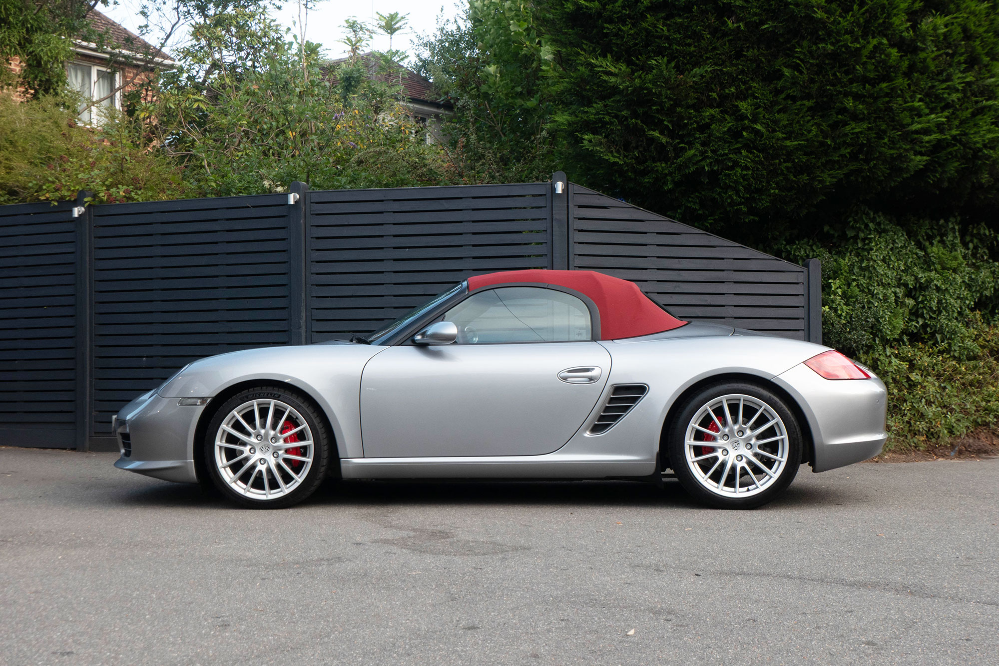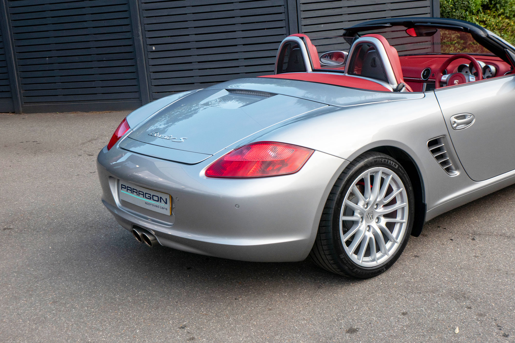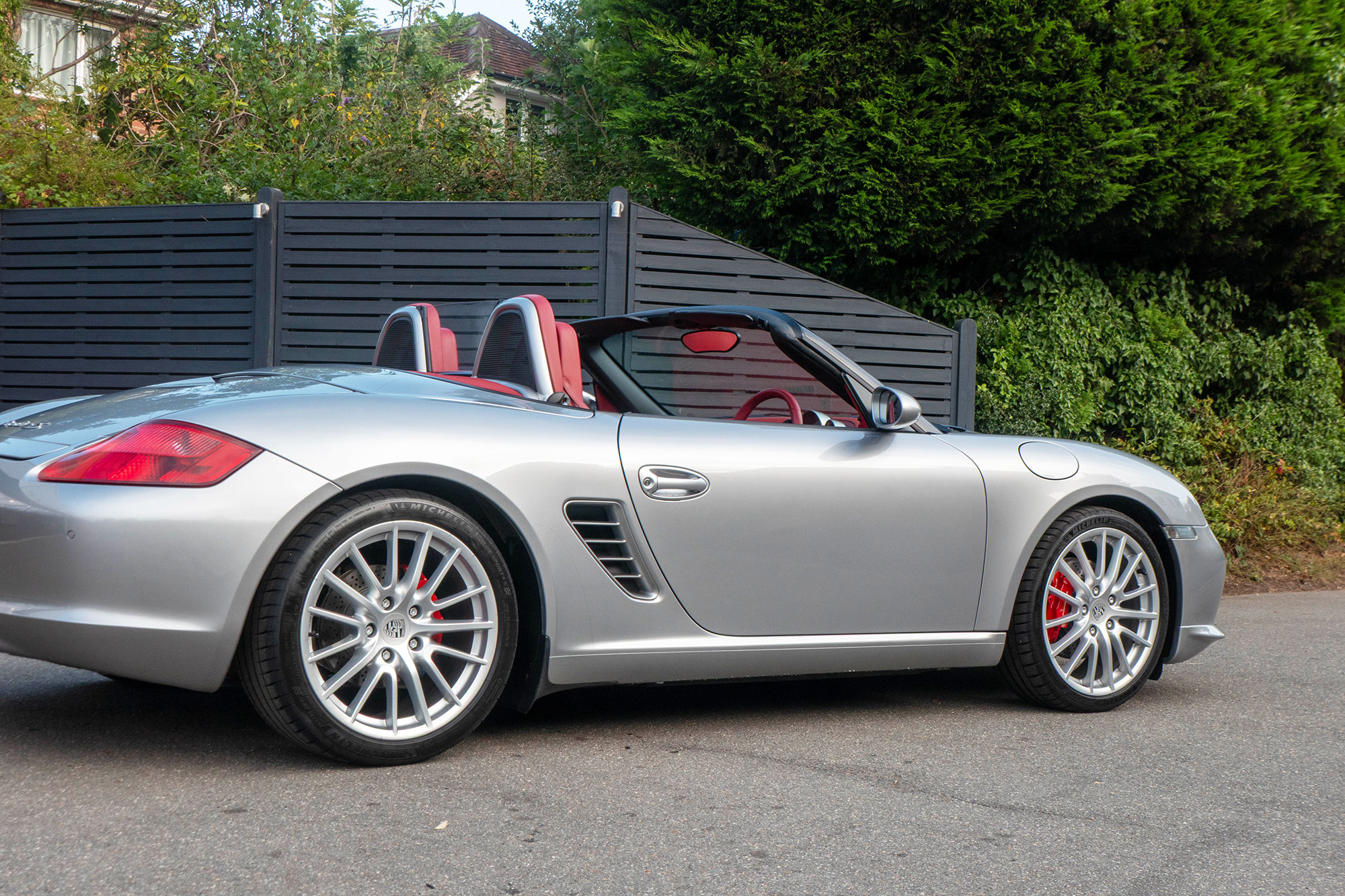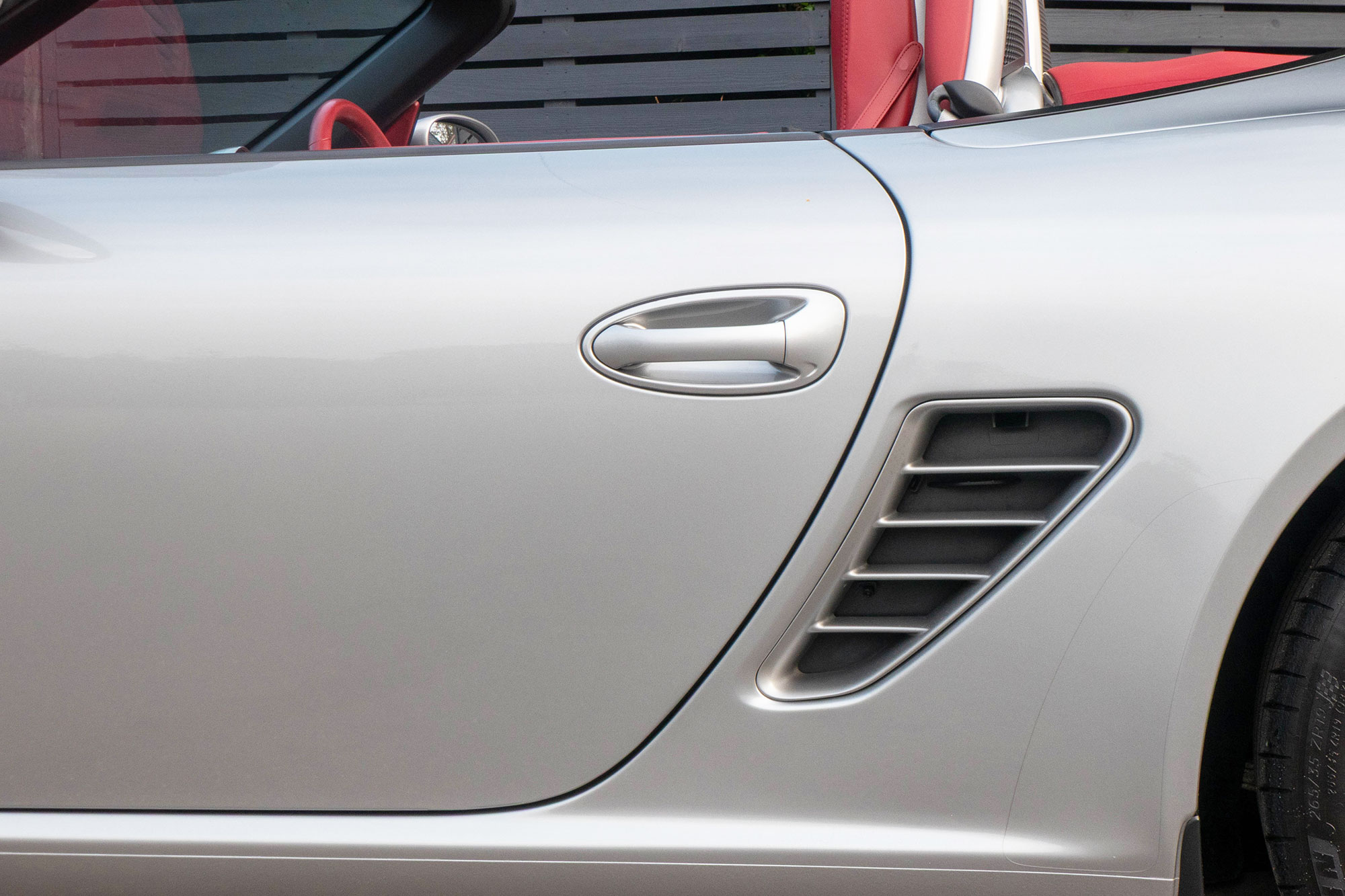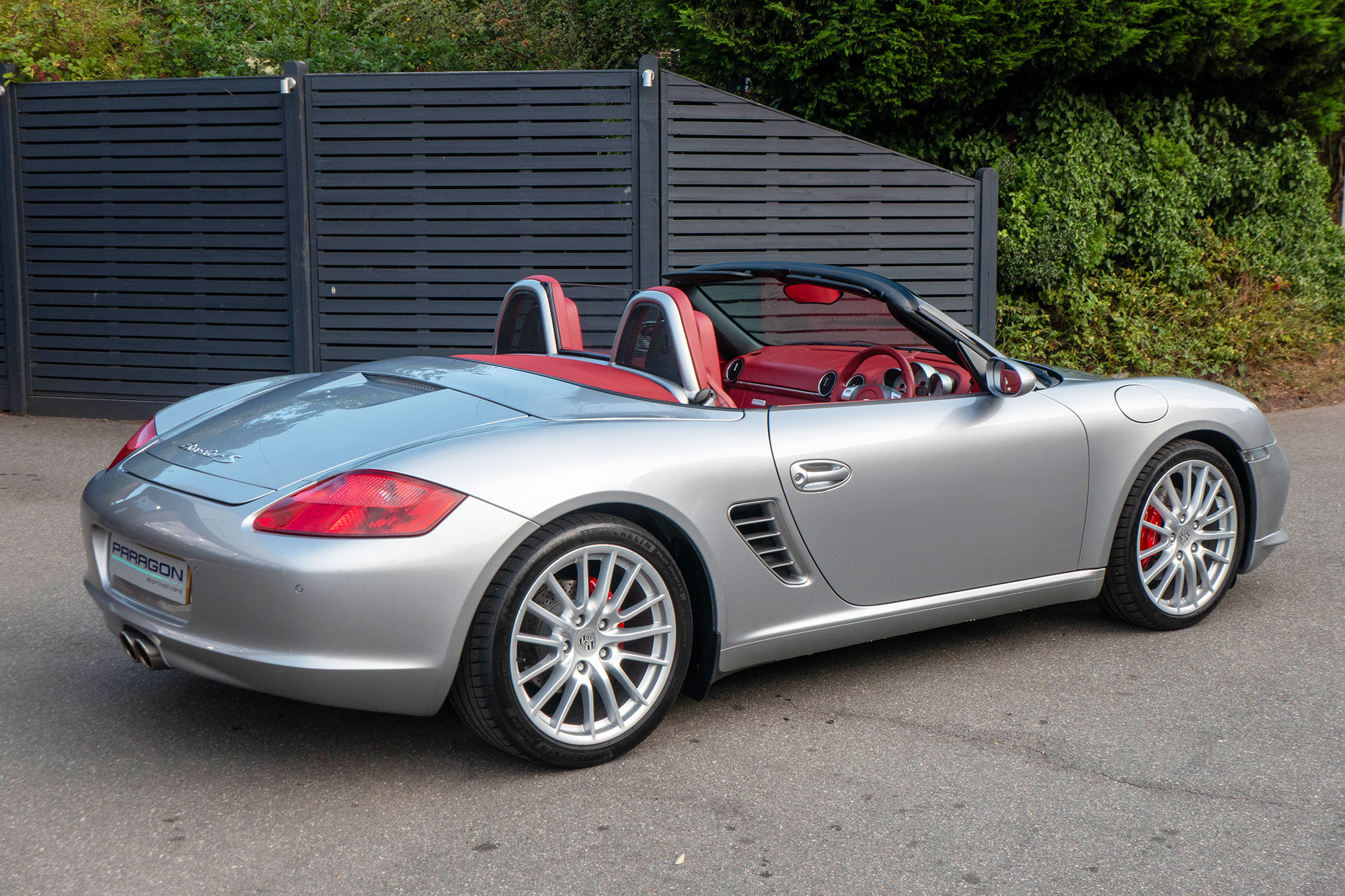 Presented in GT Silver with Natural Carrera Red leather sports seats with a 6-speed manual gearbox, standard features include a Carrera Red power hood, 19" Sport Design wheels, a body coloured centre console, extended leather, RS60 Stainless steel door entry guards, an onboard computer, a body coloured roll over bar, Silver Grey seat belts, a 3-spoke leather sports steering wheel, silver dials, Porsche Active Suspension Management & Porsche Stability Management, a wind deflector, switchable sports exhaust, air conditioning and red tail lights.