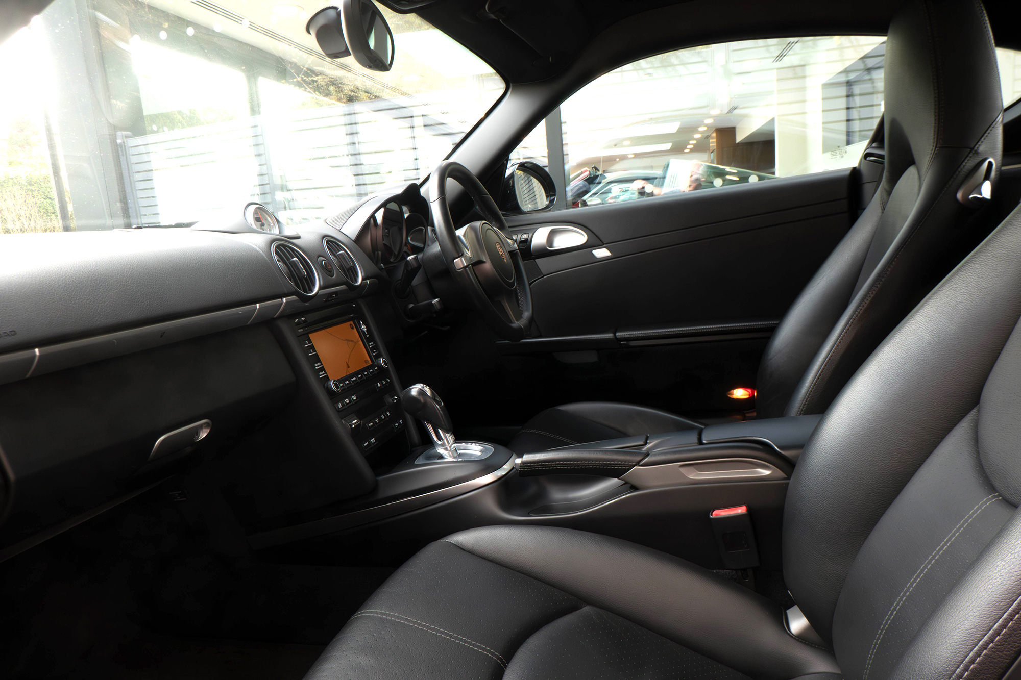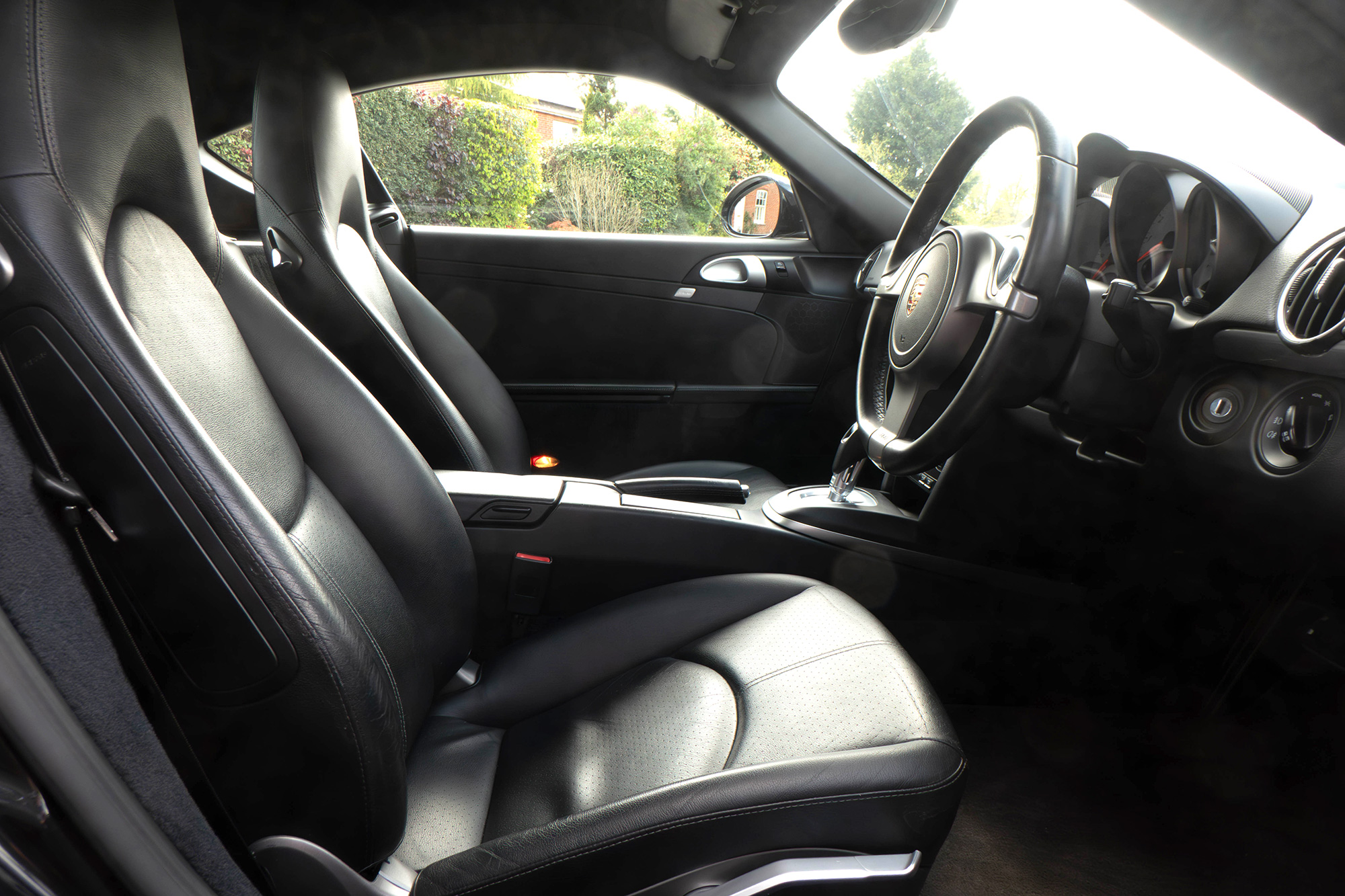 This Cayman S (987.2) has the 7-speed PDK gearbox and is presented in Basalt Black with black leather seats.