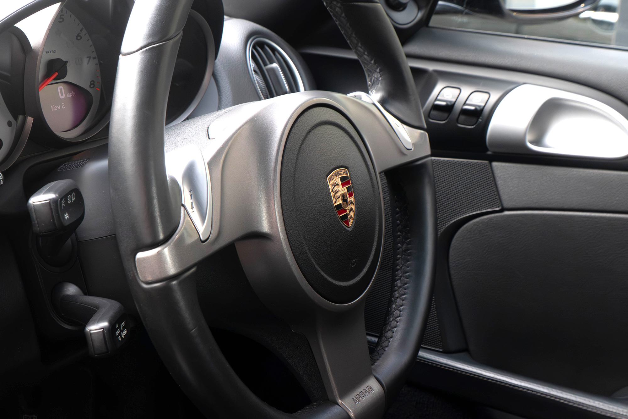 The 3.4 litre flat six direct fuel injection engine develops 320 bhp and standard features include conditioning, an onboard computer, LED daytime running lights, silver dials and Porsche Stability Management.