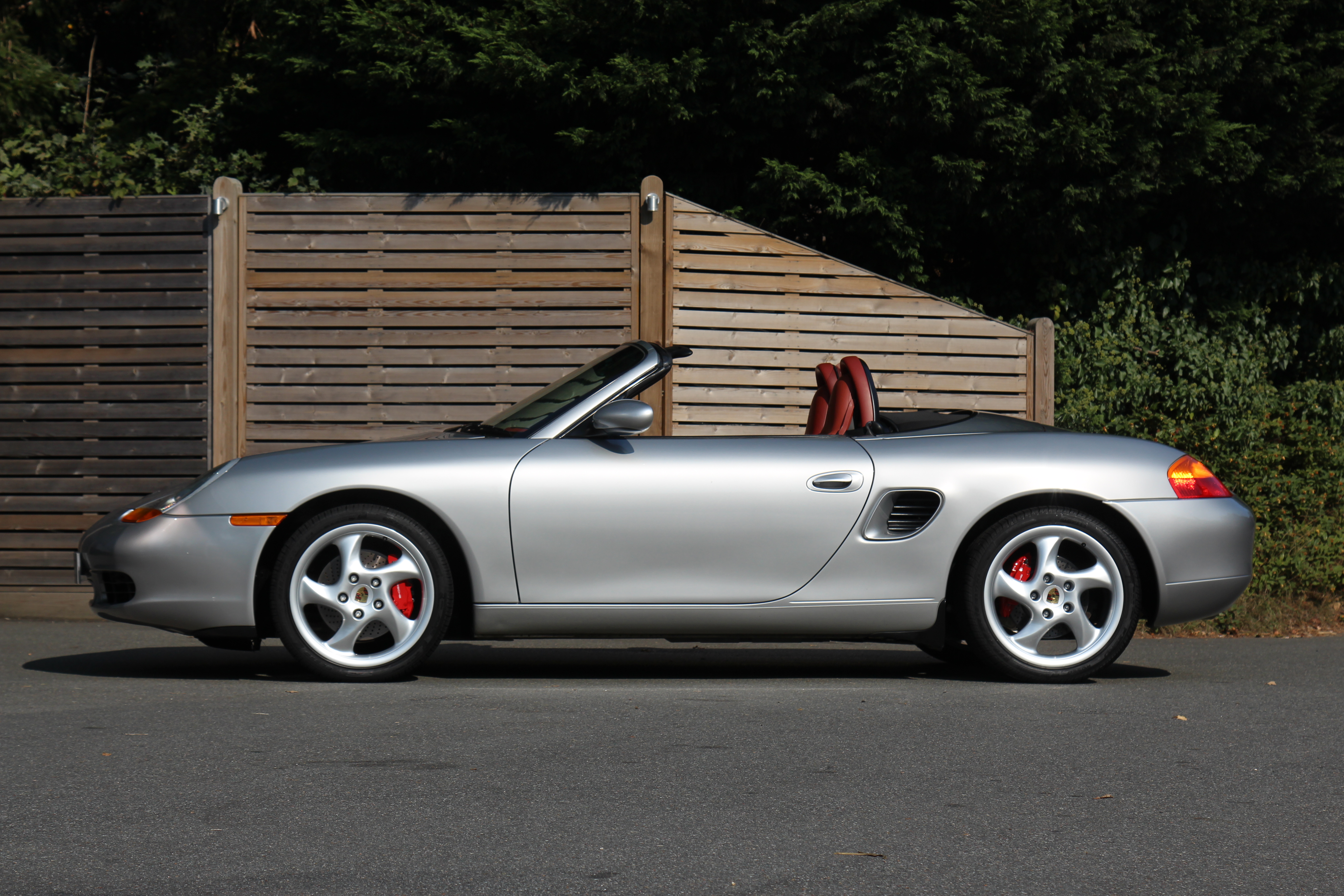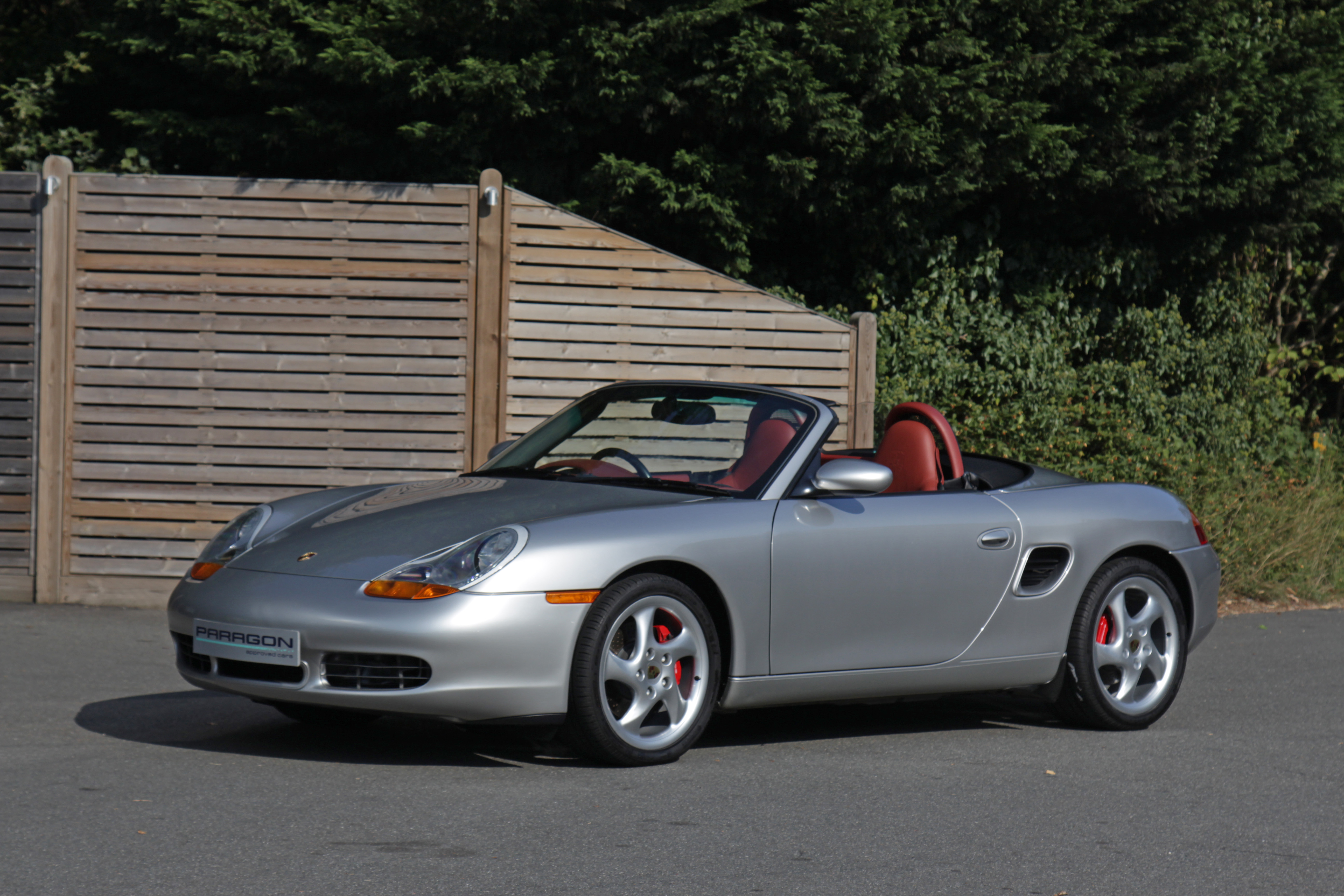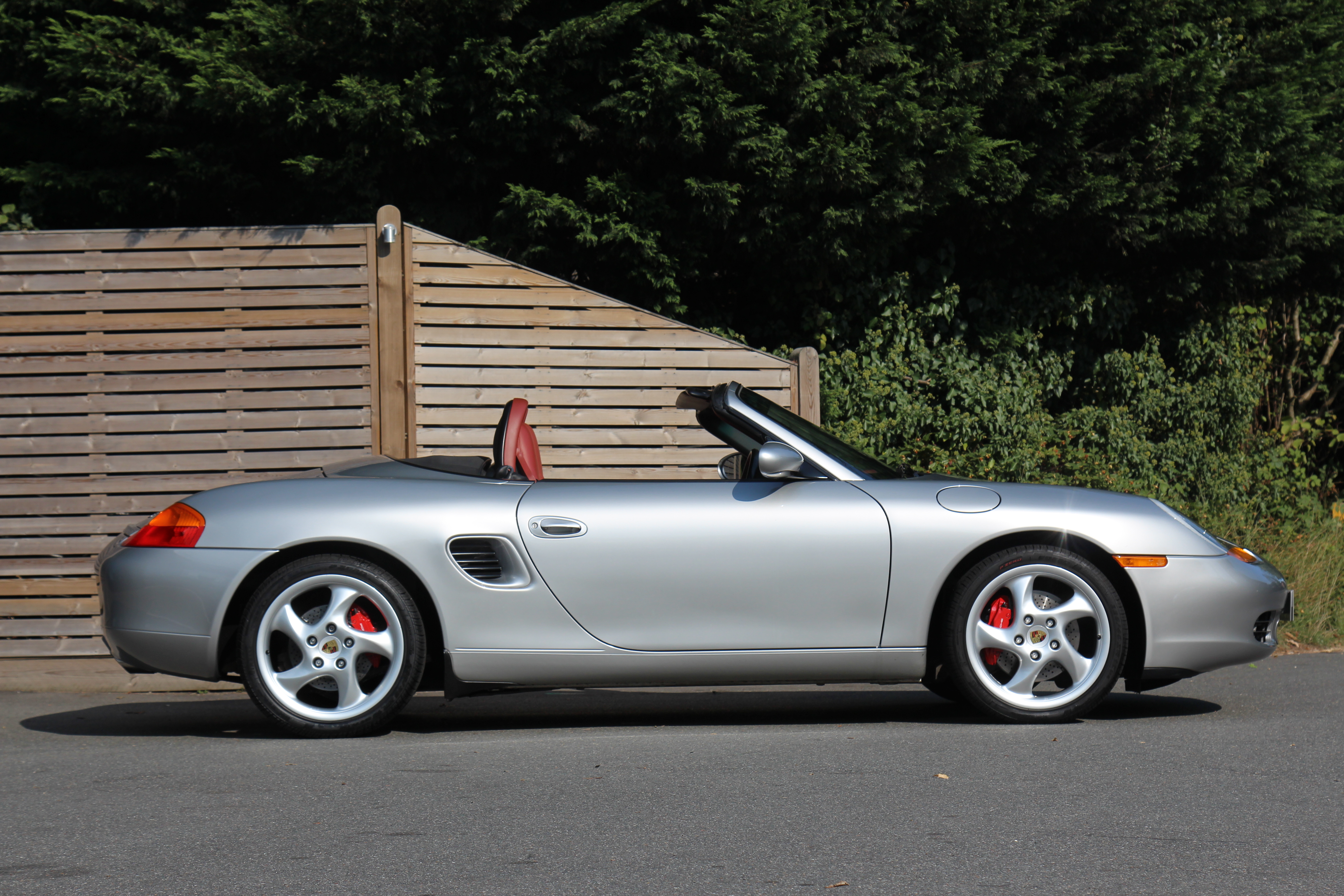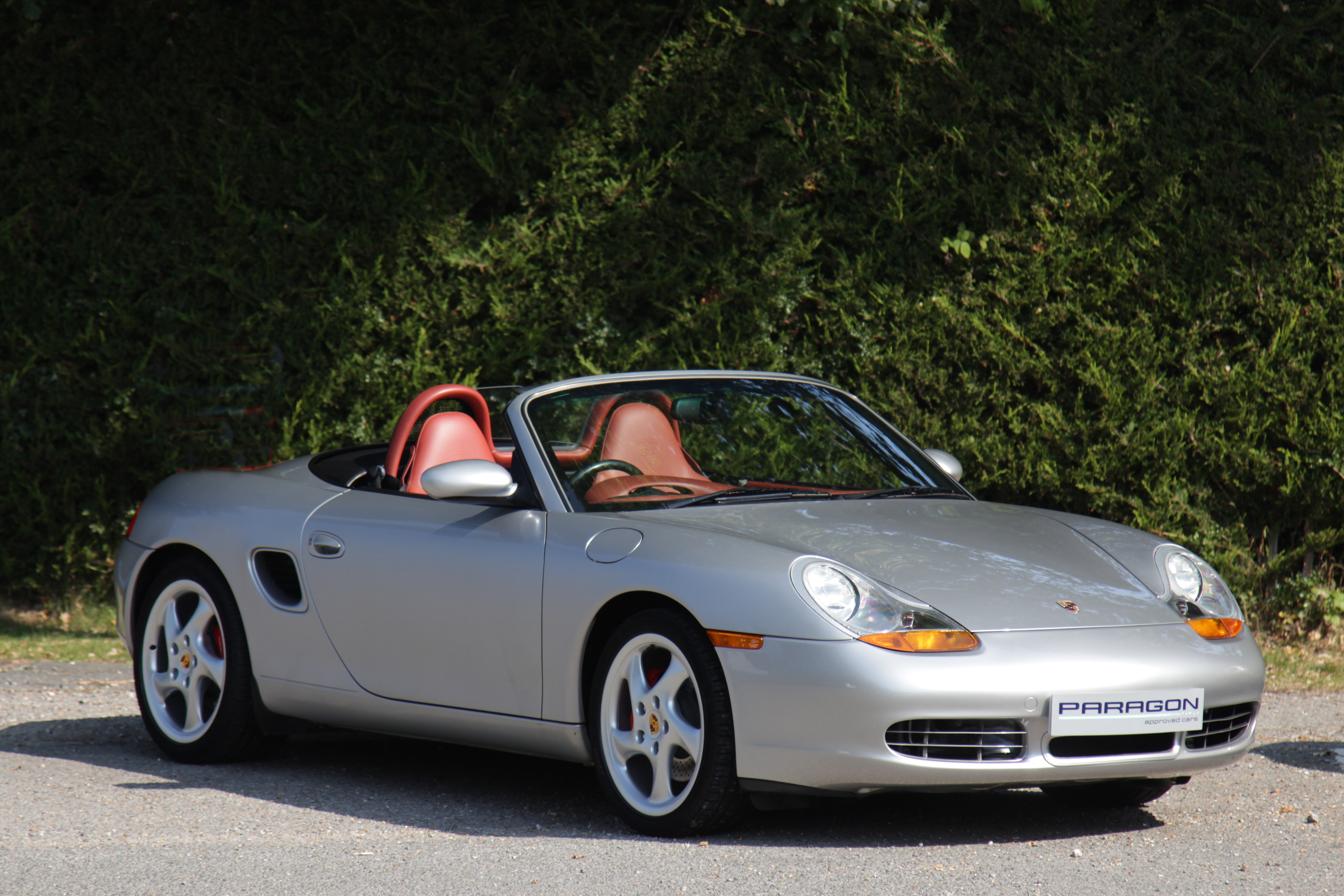 This Boxster S (986) is presented in Arctic Silver with Boxster red leather seats. The 3.2 litre flat six engine develops 248 bhp and standard features include a black power hood, air conditioning, onboard computer and Porsche Stability Management (PSM).