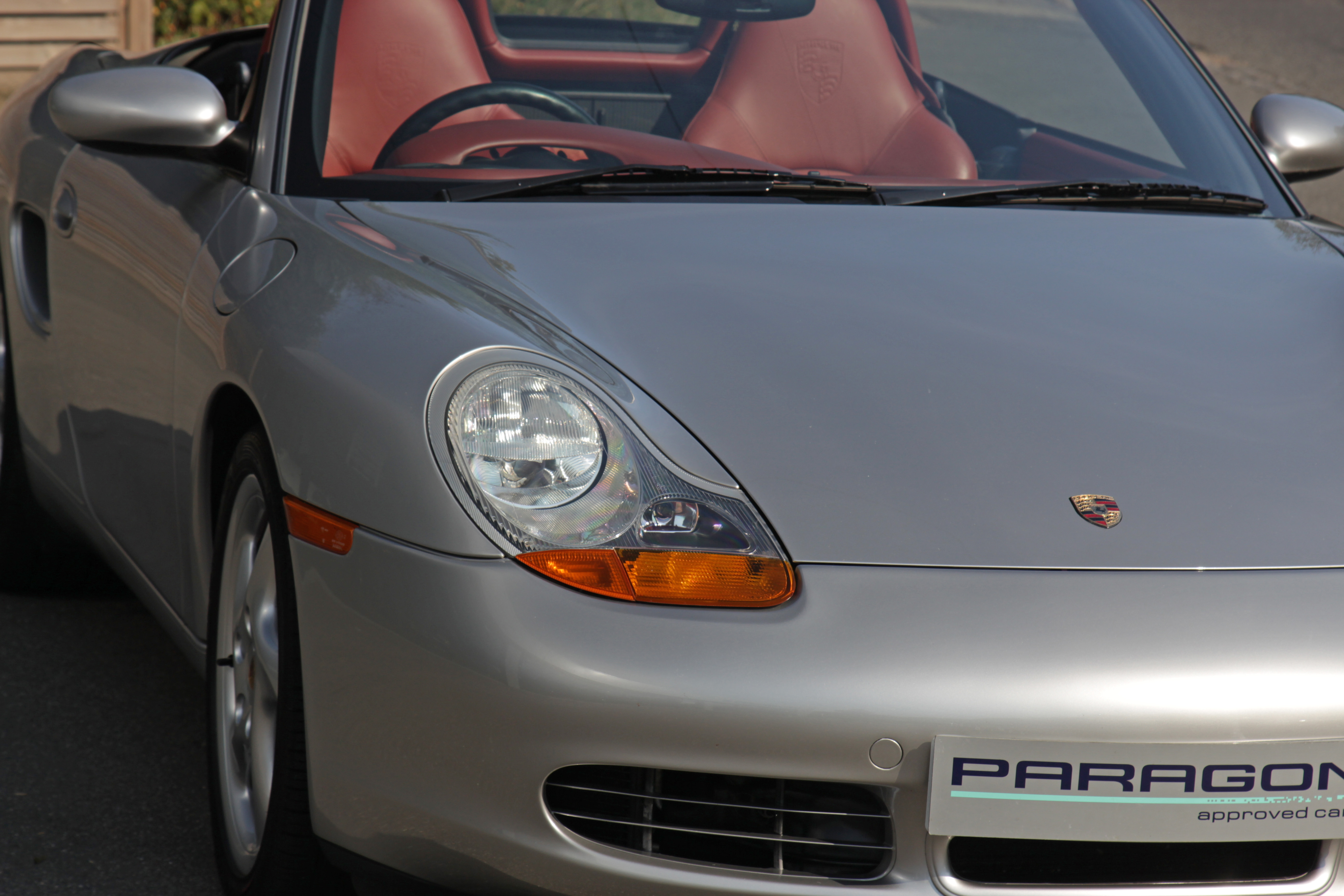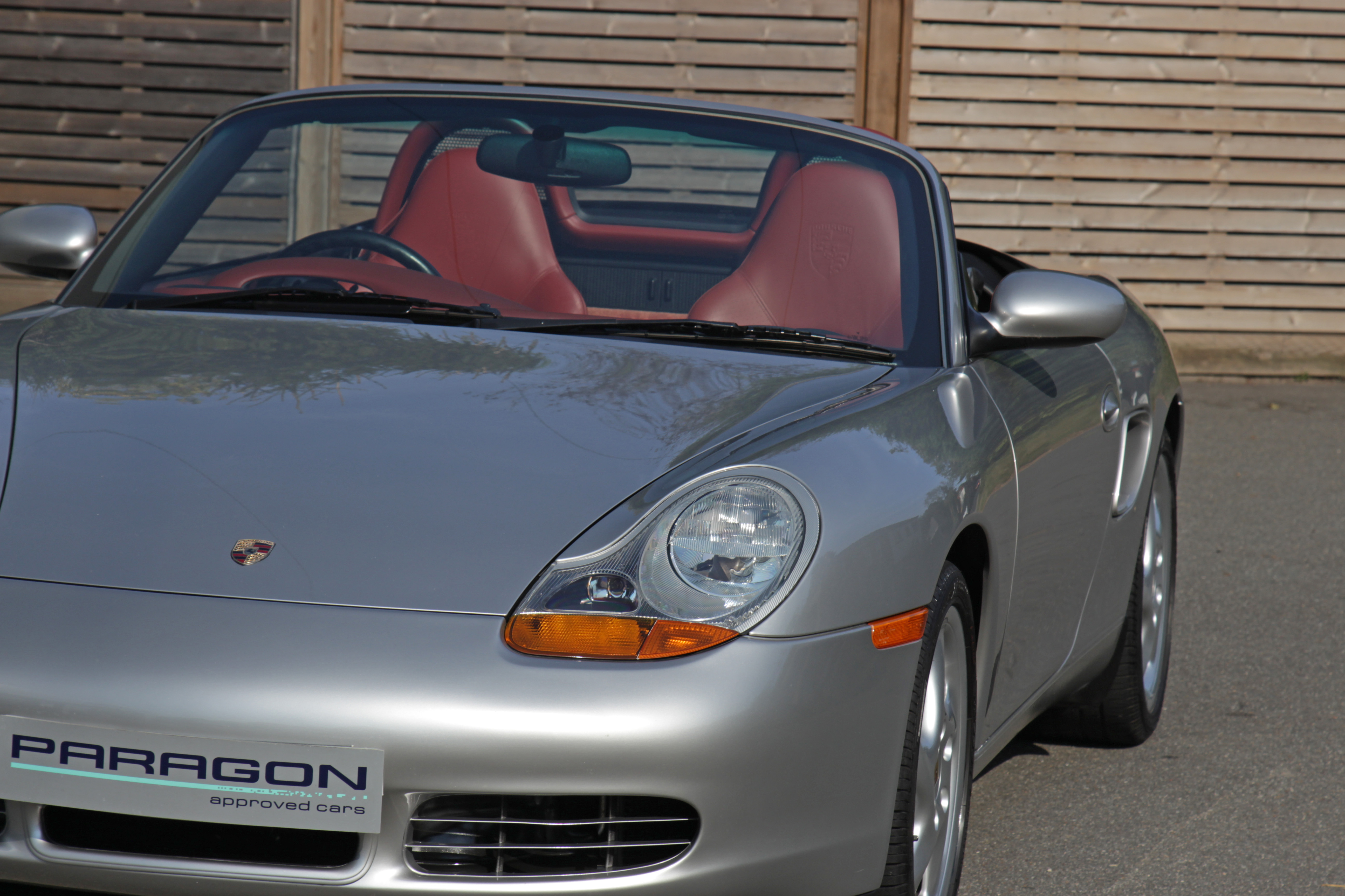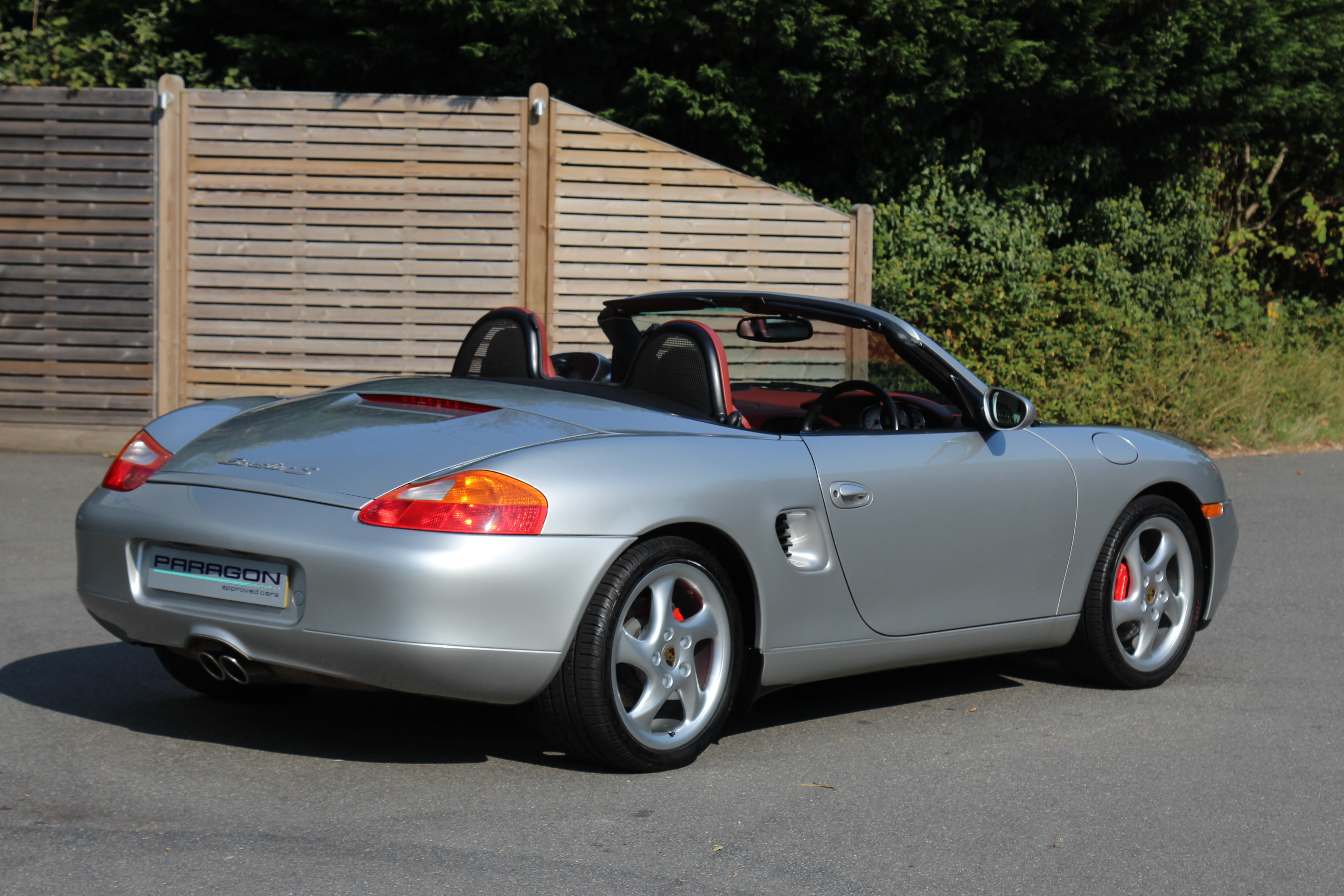 This Boxster S (986) is presented in Arctic Silver with Boxster red leather seats. The 3.2 litre flat six engine develops 248 bhp and standard features include a black power hood, air conditioning, onboard computer and Porsche Stability Management (PSM).