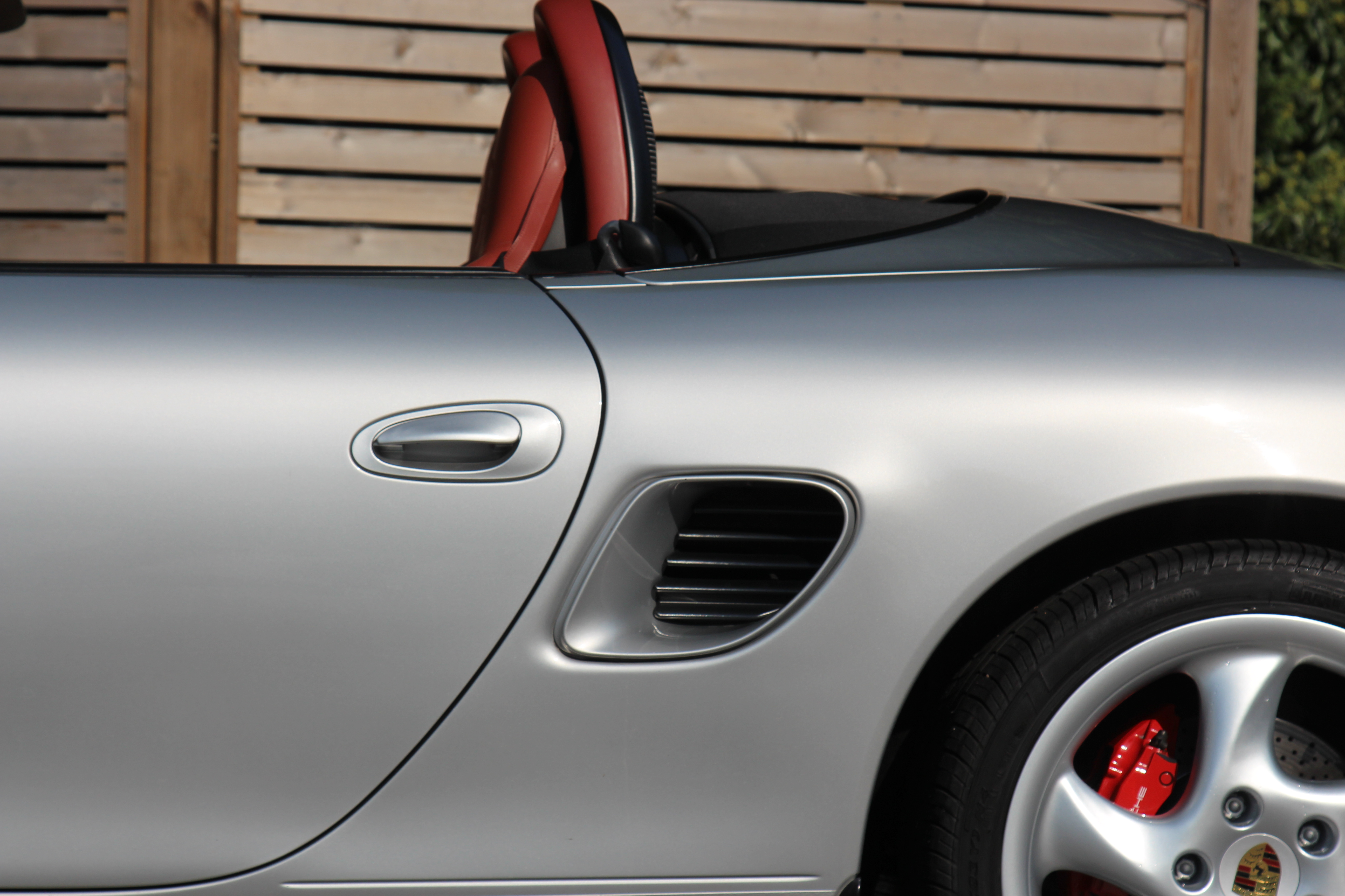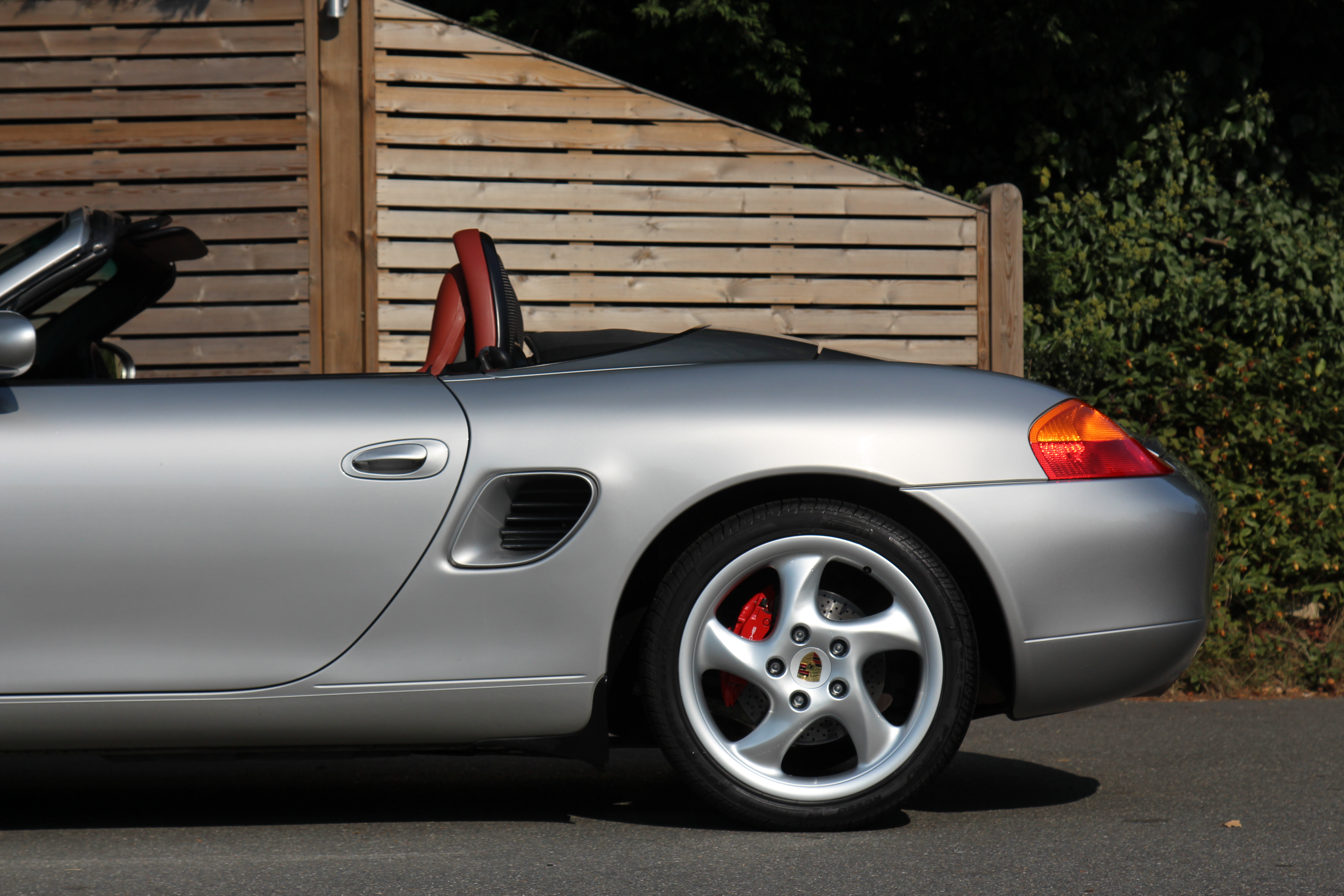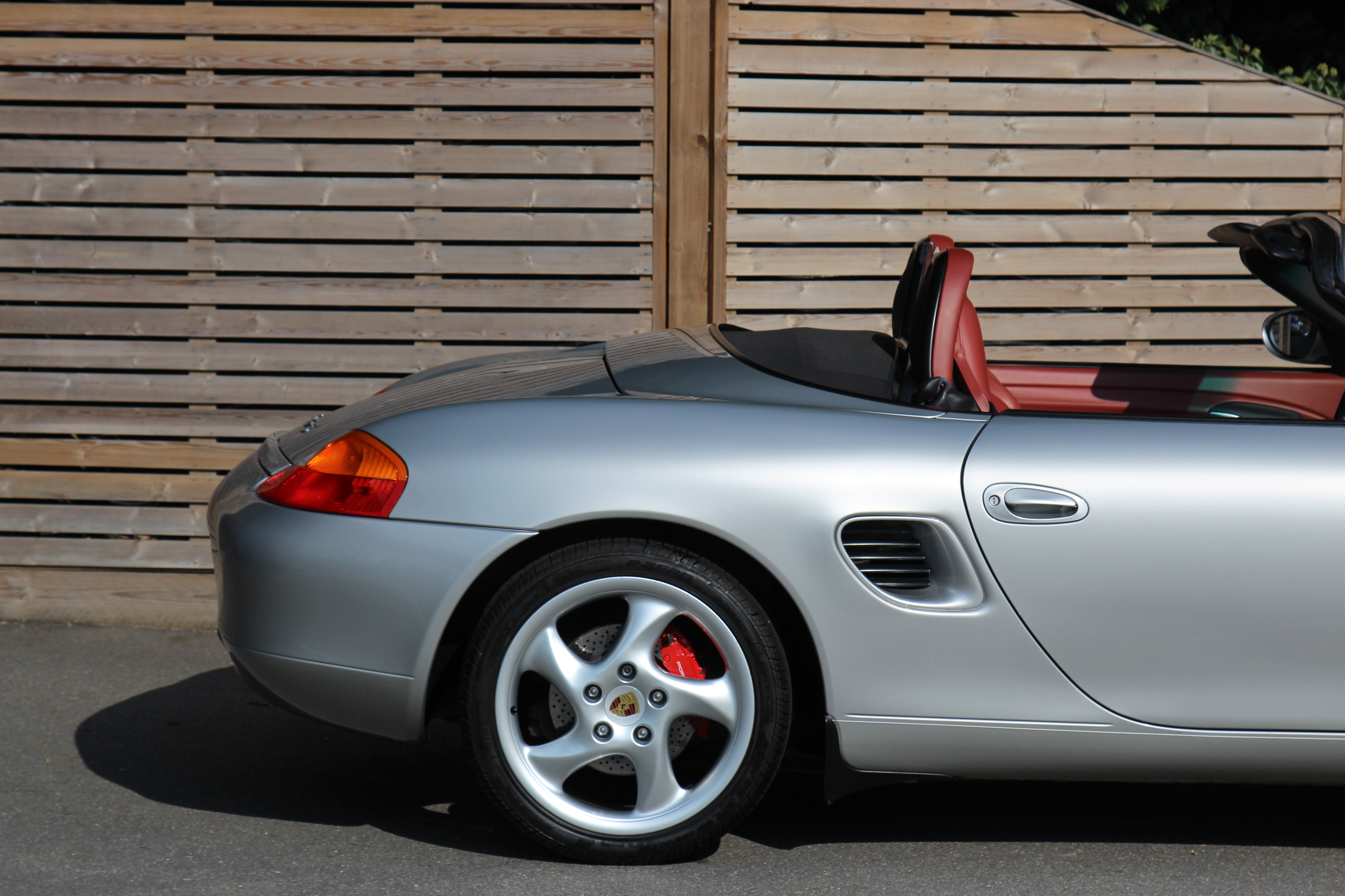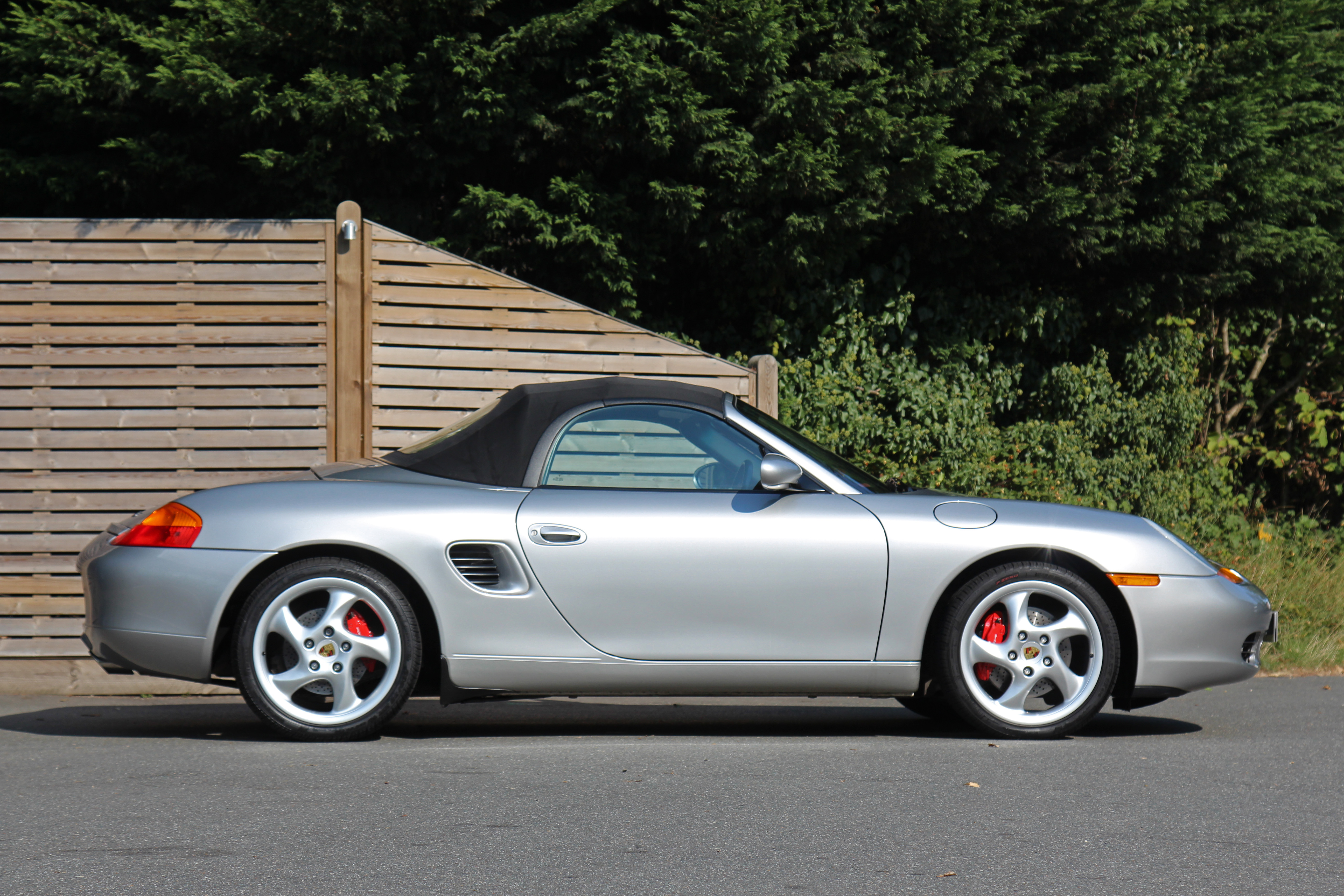 This Boxster S (986) is presented in Arctic Silver with Boxster red leather seats. The 3.2 litre flat six engine develops 248 bhp and standard features include a black power hood, air conditioning, onboard computer and Porsche Stability Management (PSM).
