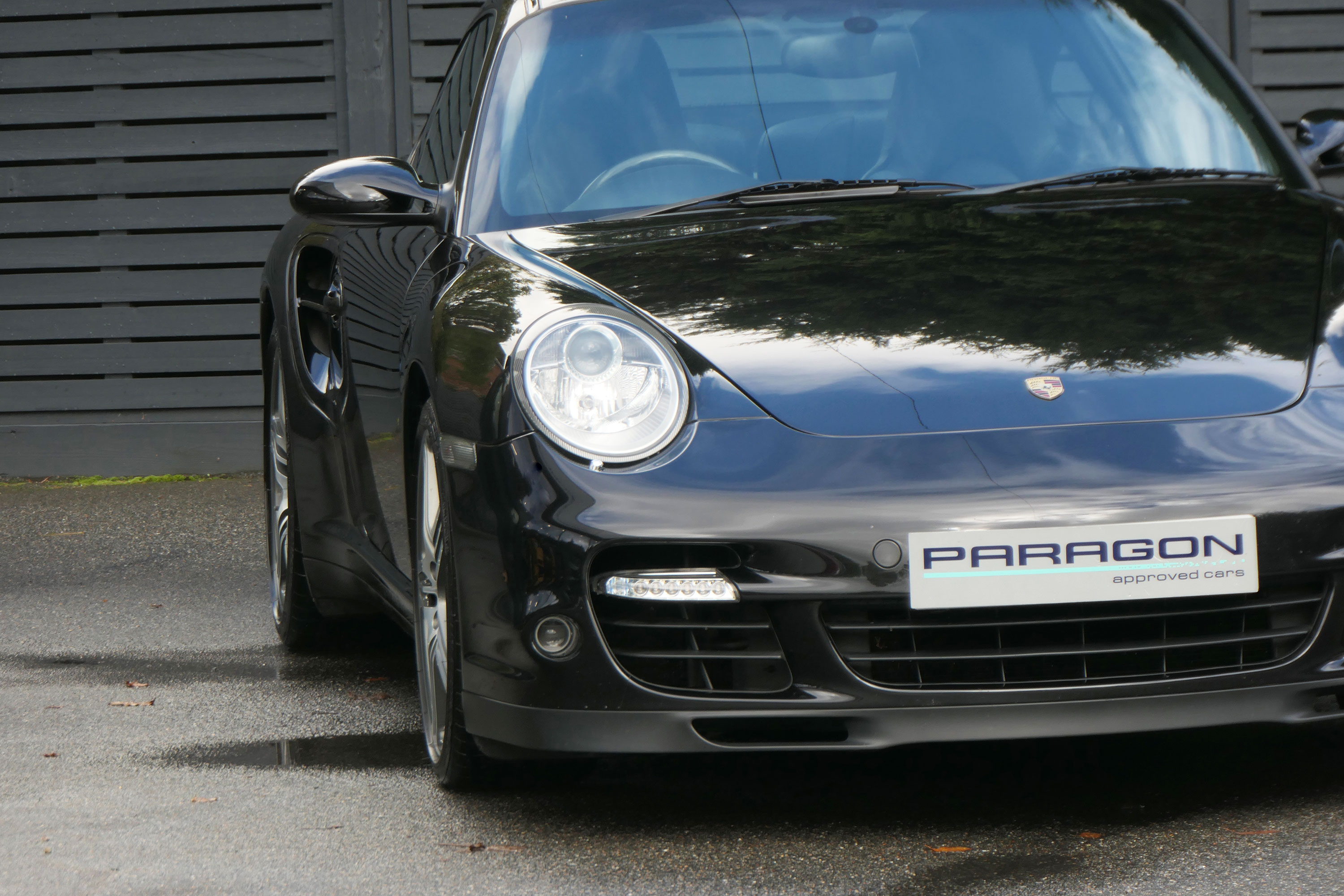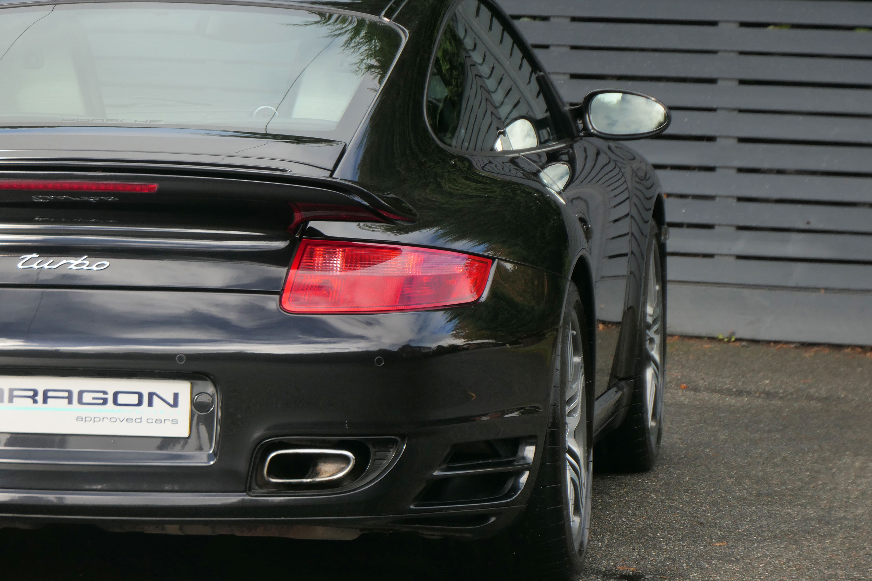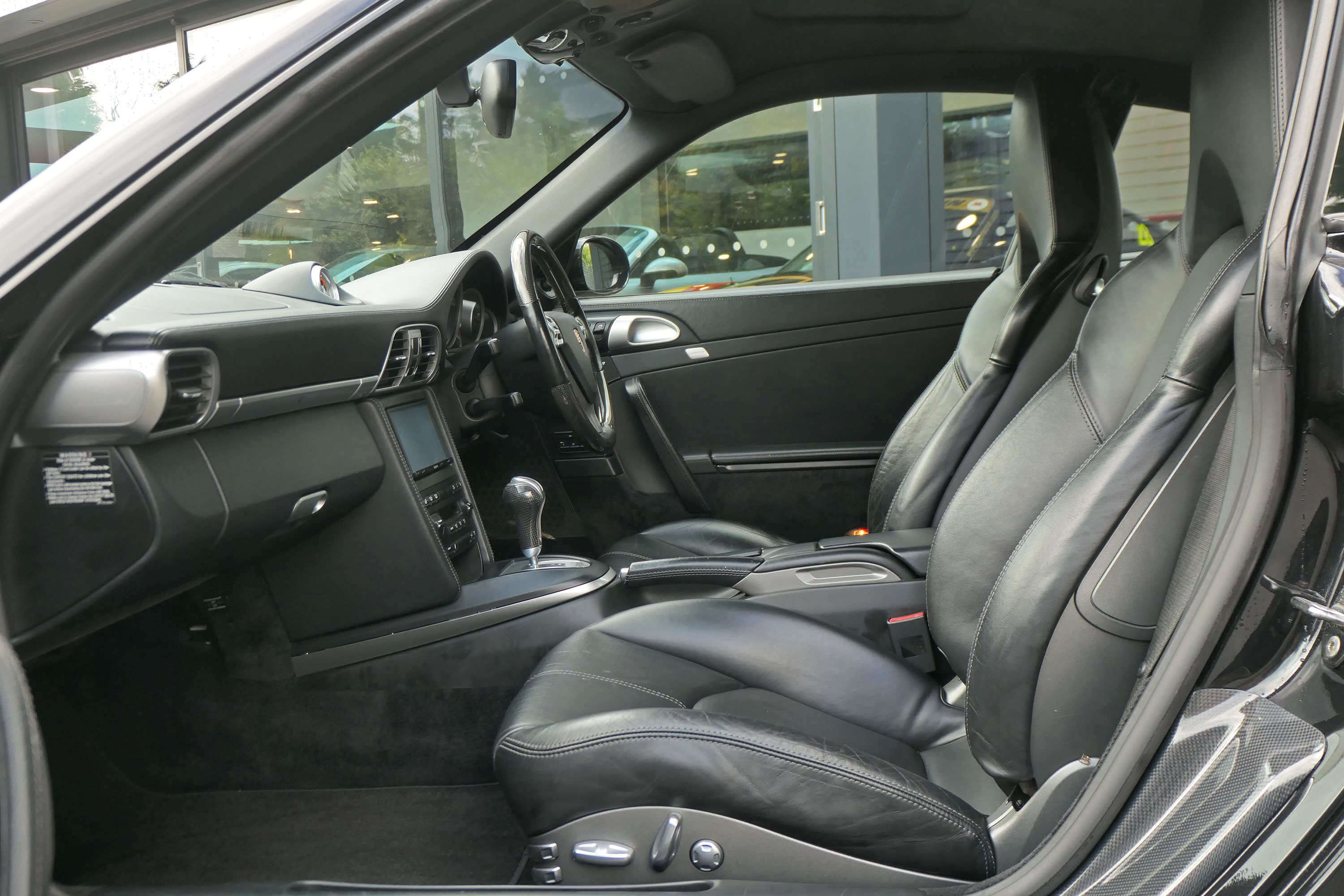 This 911 Turbo Coupe (997 GEN 1.5) has the Tiptronic S gearbox and is presented in Basalt Black with black leather seats.