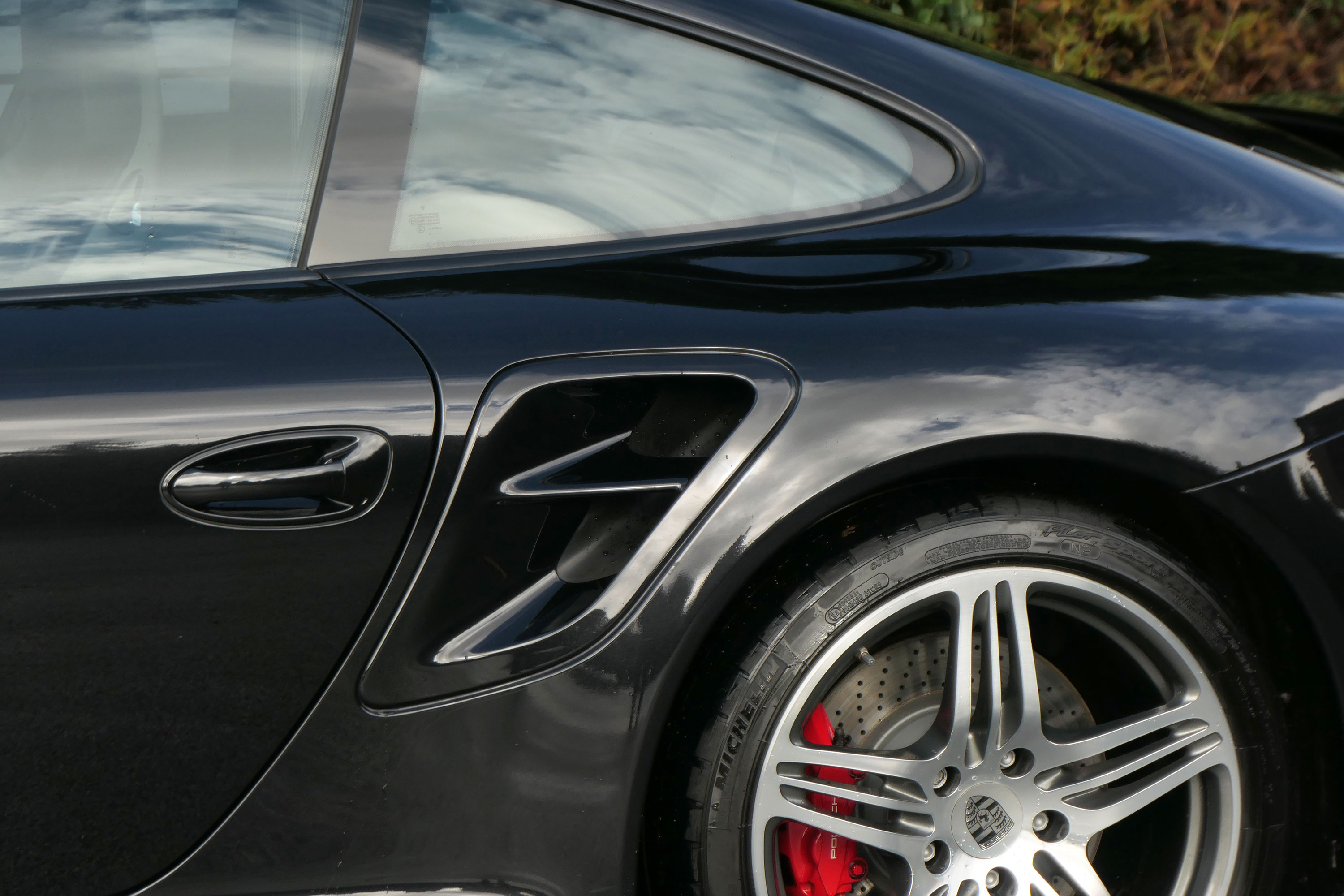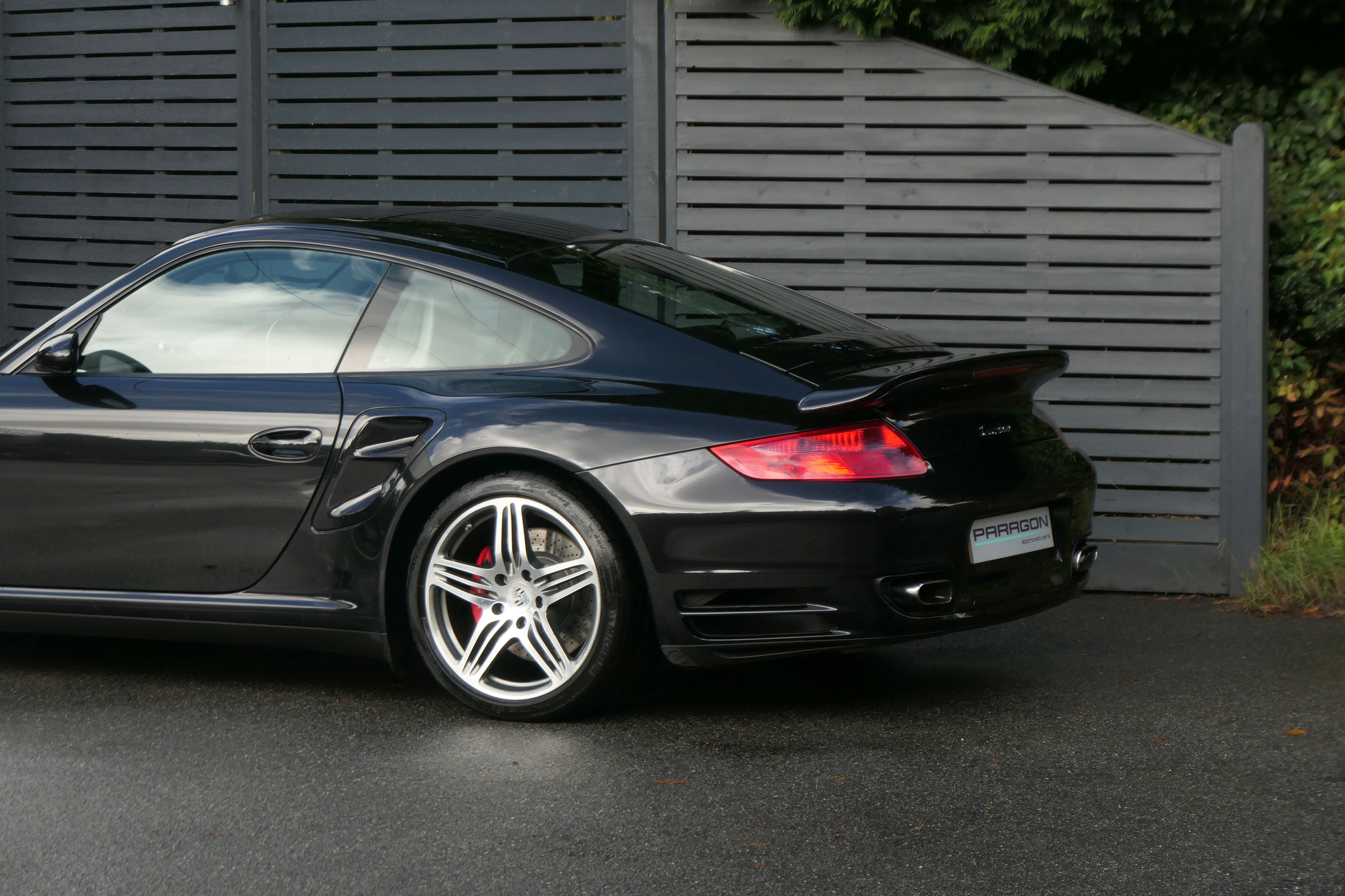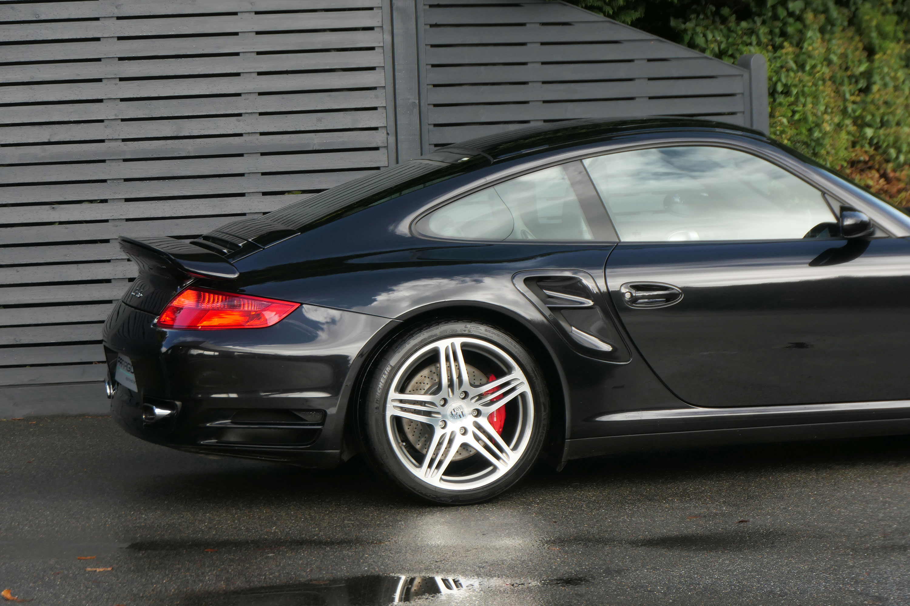 This 911 Turbo Coupe (997 GEN 1.5) has the Tiptronic S gearbox and is presented in Basalt Black with black leather seats.