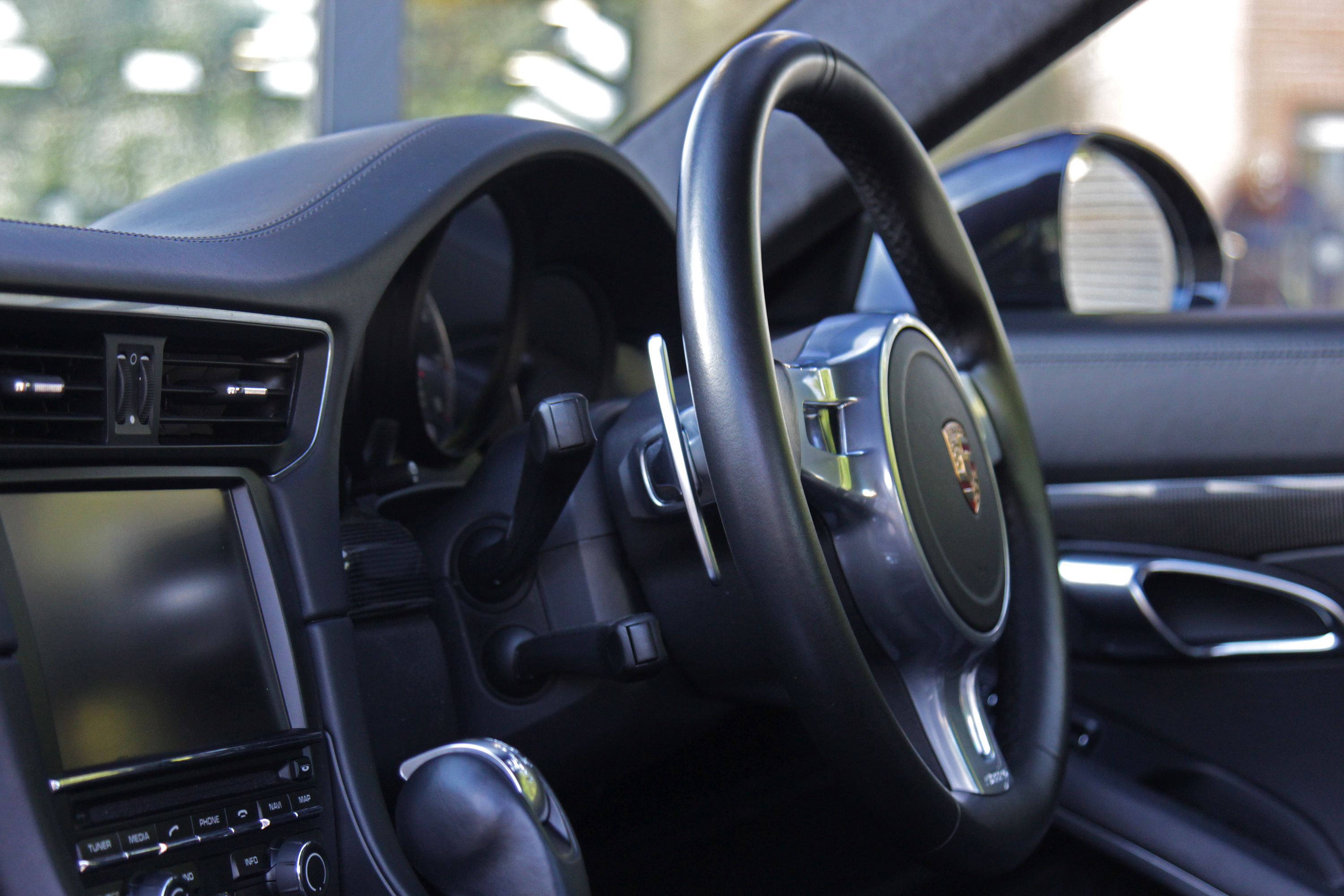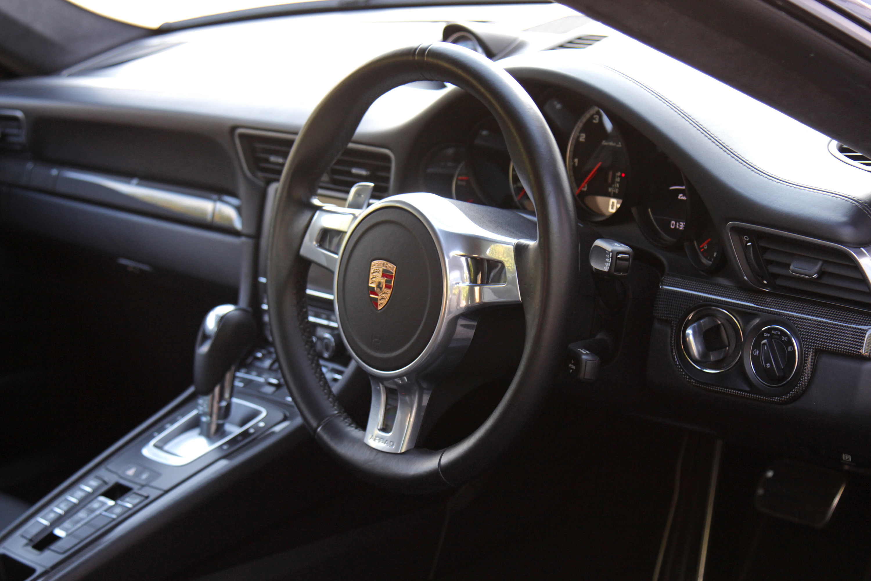 The extensive list of factory-fitted options includes a glass electric sunroof, Sport Design paddle shift steering wheel, DAB digital radio, fully electric sport seats with driver memory, rear privacy glass, Porsche Keyless Entry & Drive, Power Steering Plus, Bluetooth phone, the Carbon Interior Pack, carbon door entry guards, clear rear light lenses, embossed crested headrests, a Burmester Premium Surround Sound system, front & rear parking sensors and heated seats.