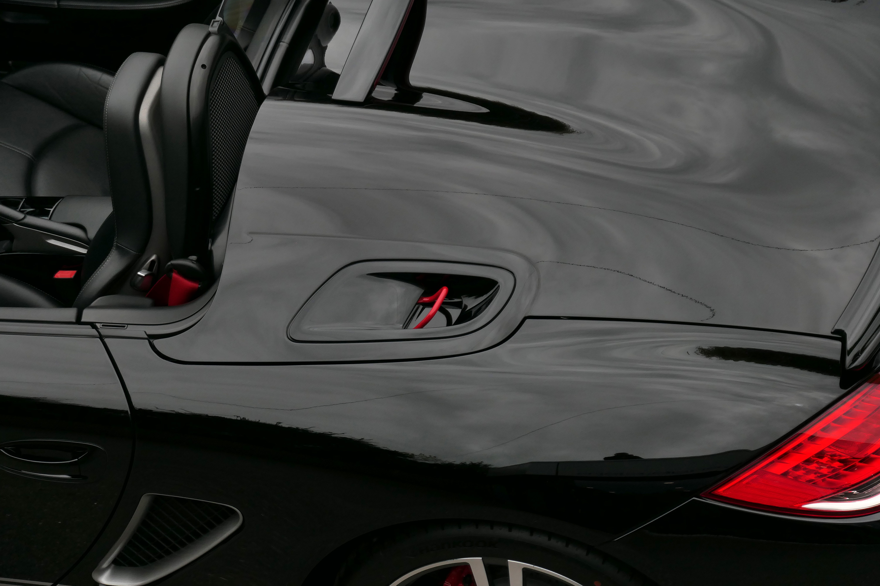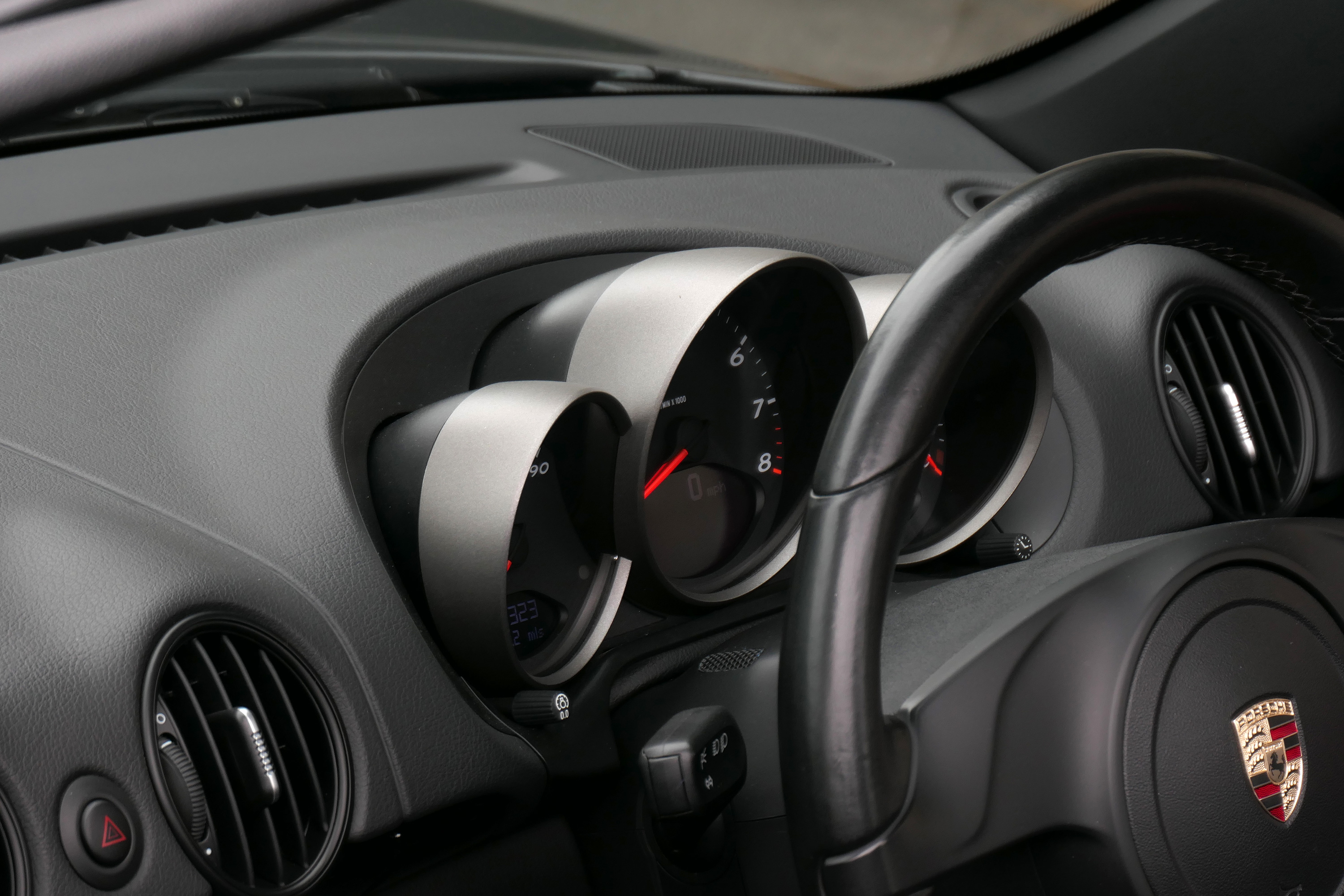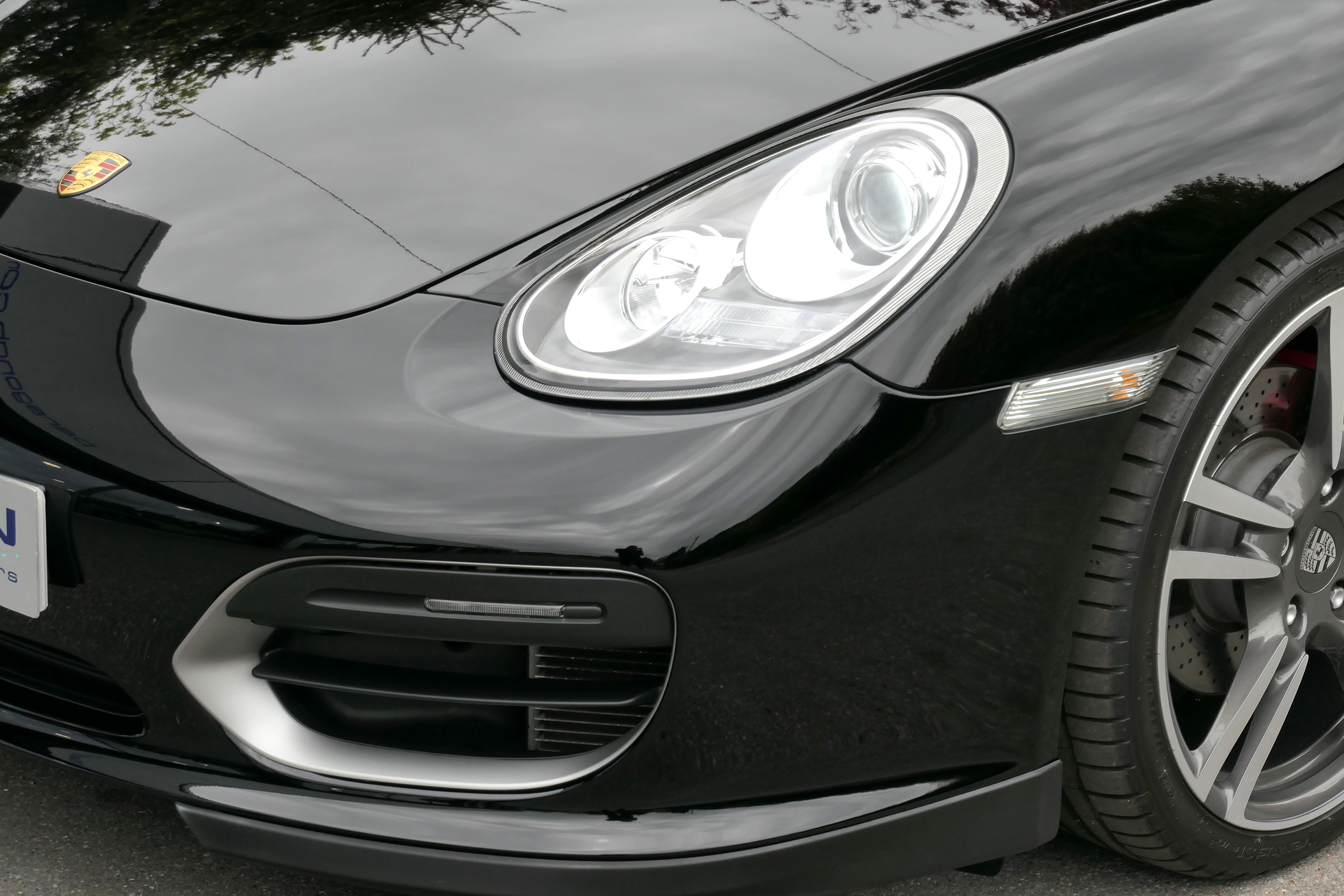 As standard the Spyder is fitted with a wind deflector, Porsche Stability Management, onboard computer, Porsche Sound Package, 19" Boxster Spyder wheels, a colour coded centre console, LED daytime running lights and the black lightweight hood.