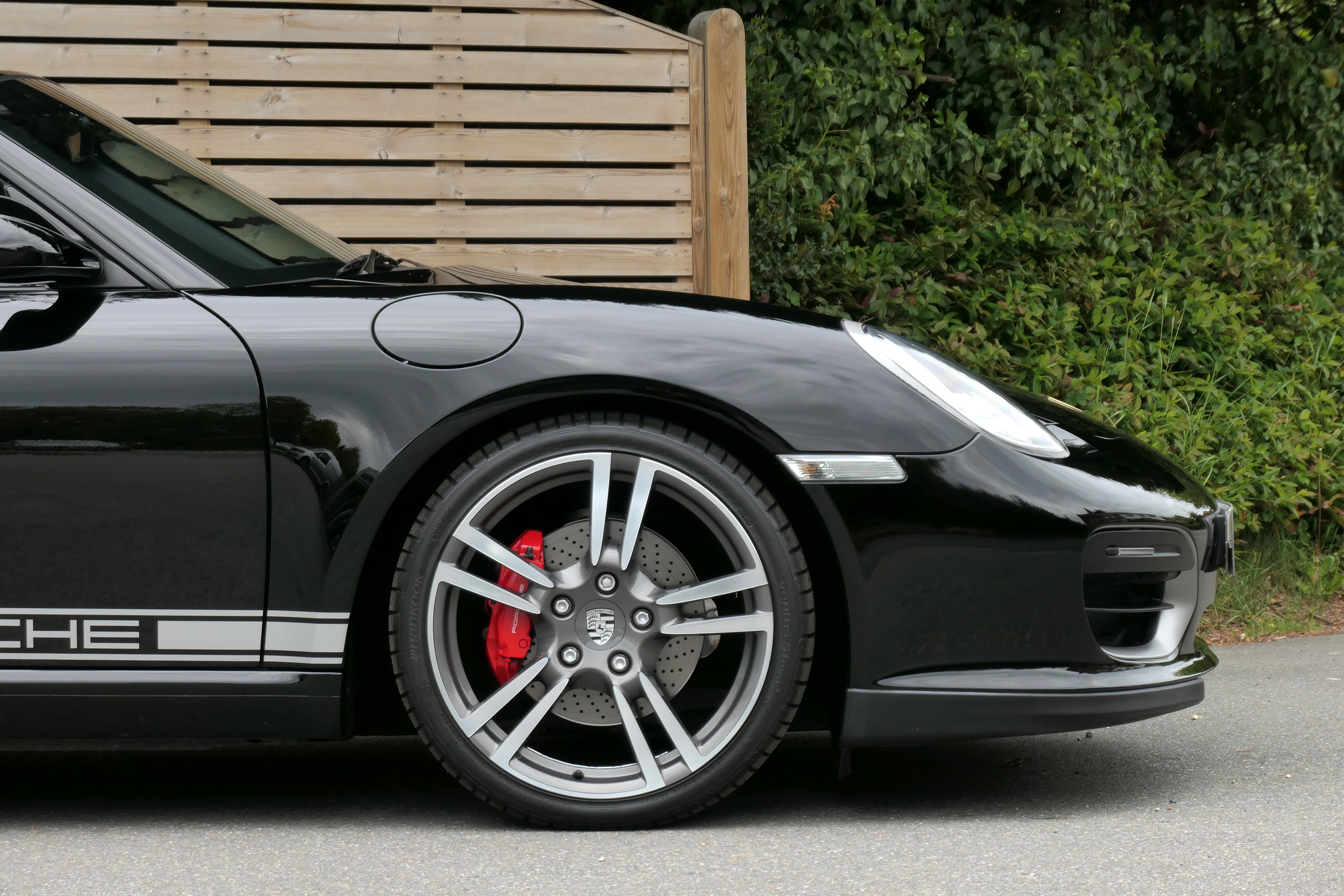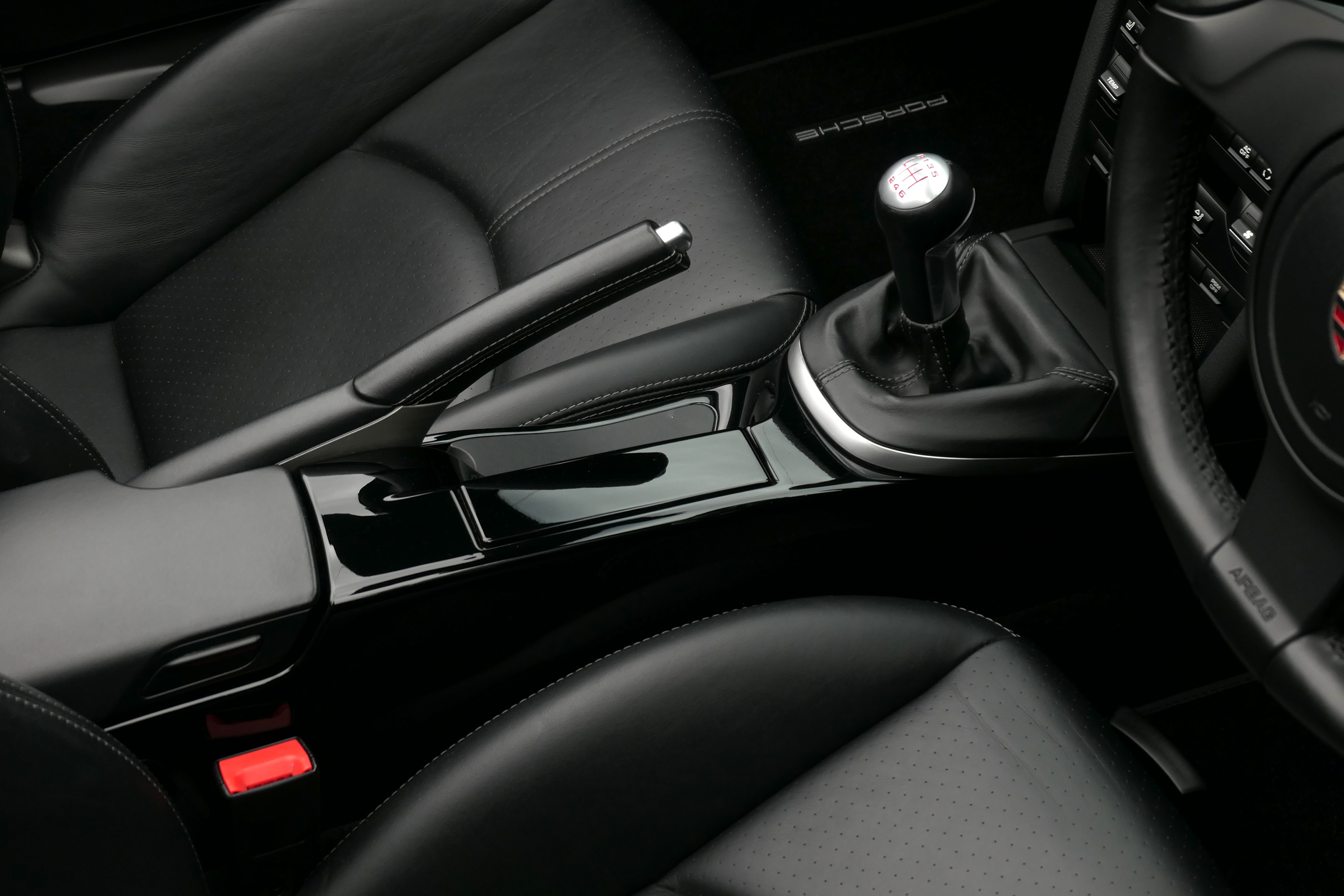 Factory-fitted options include 19" Turbo II wheels, rear parking sensors, air conditioning, Guards Red seat belts, heated seats and a switchable sports exhaust.