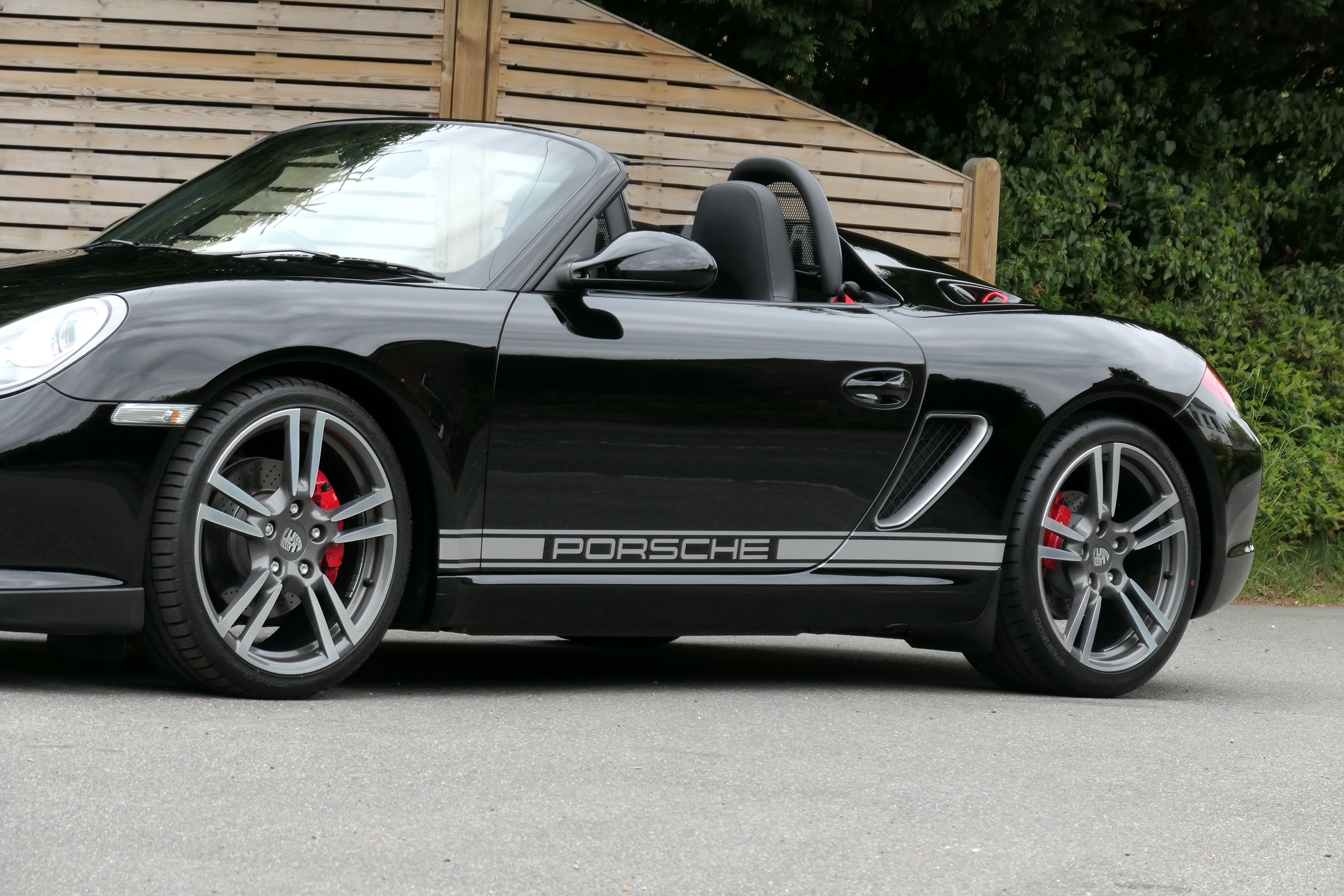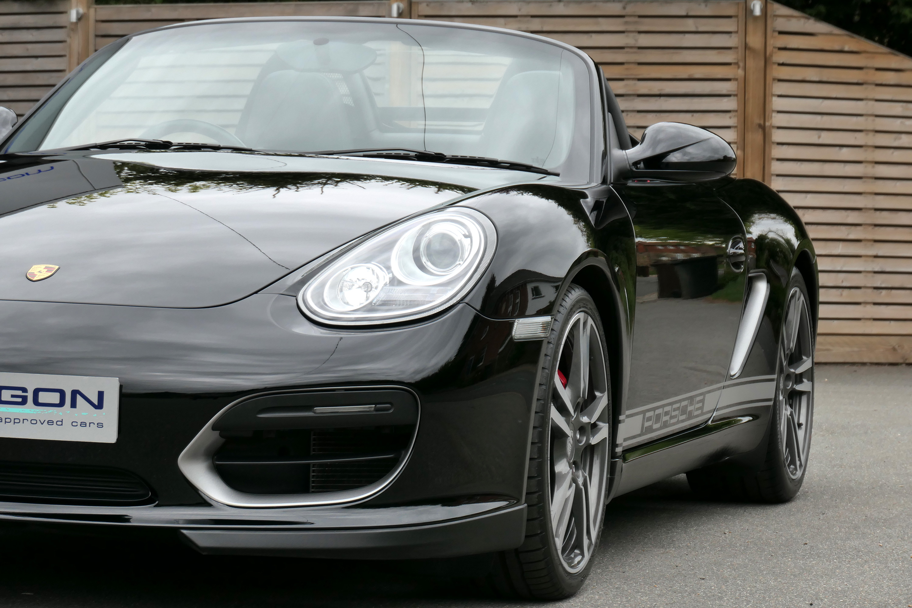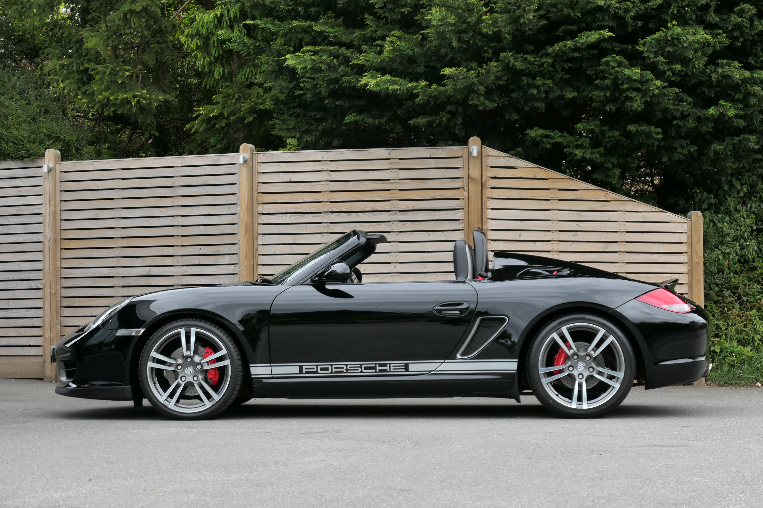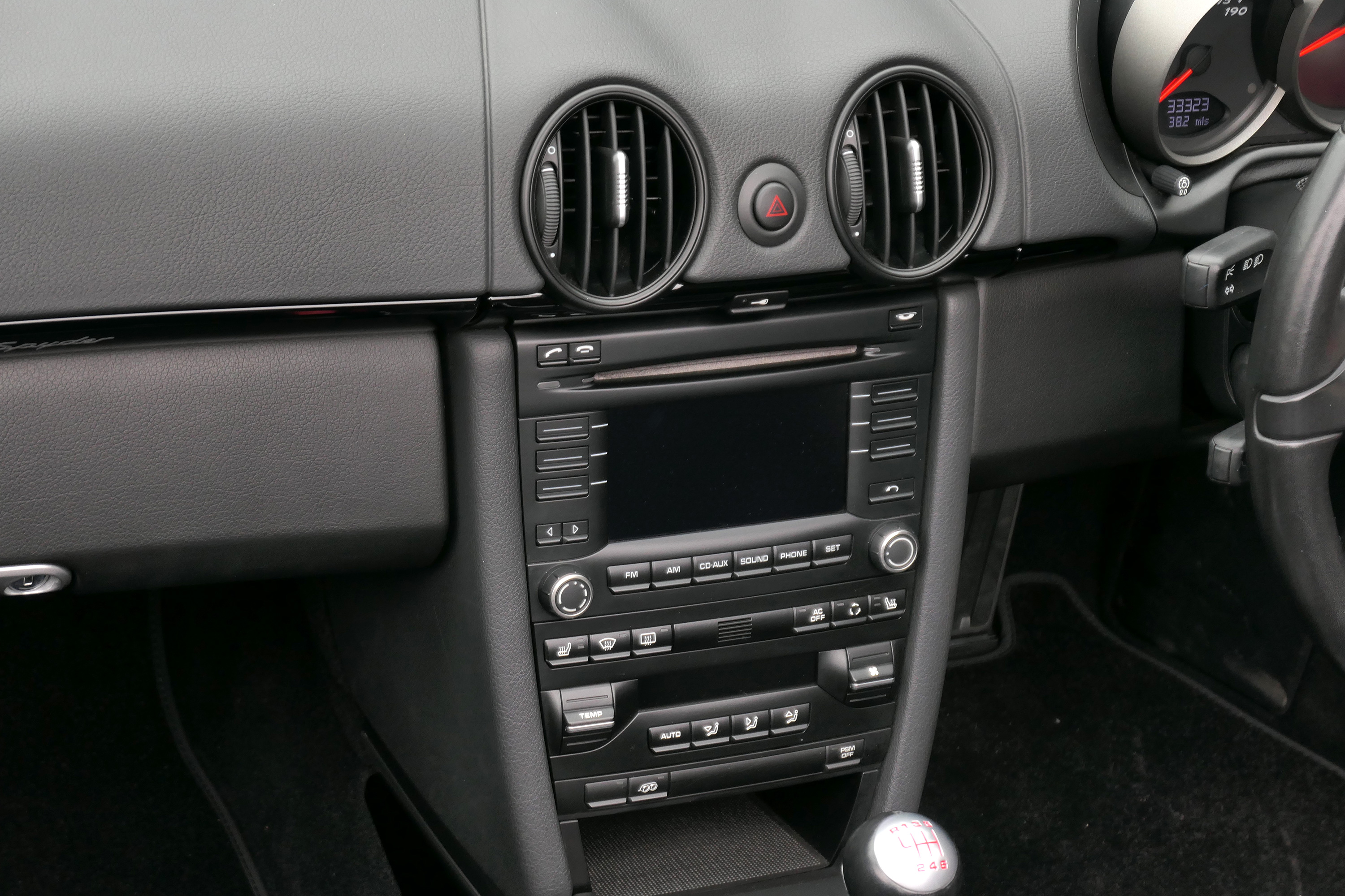 This Boxster Spyder (987 GEN ll) has the 6-speed manual gearbox and is presented in Jet Black with black leather sport seats and a black lightweight hood.