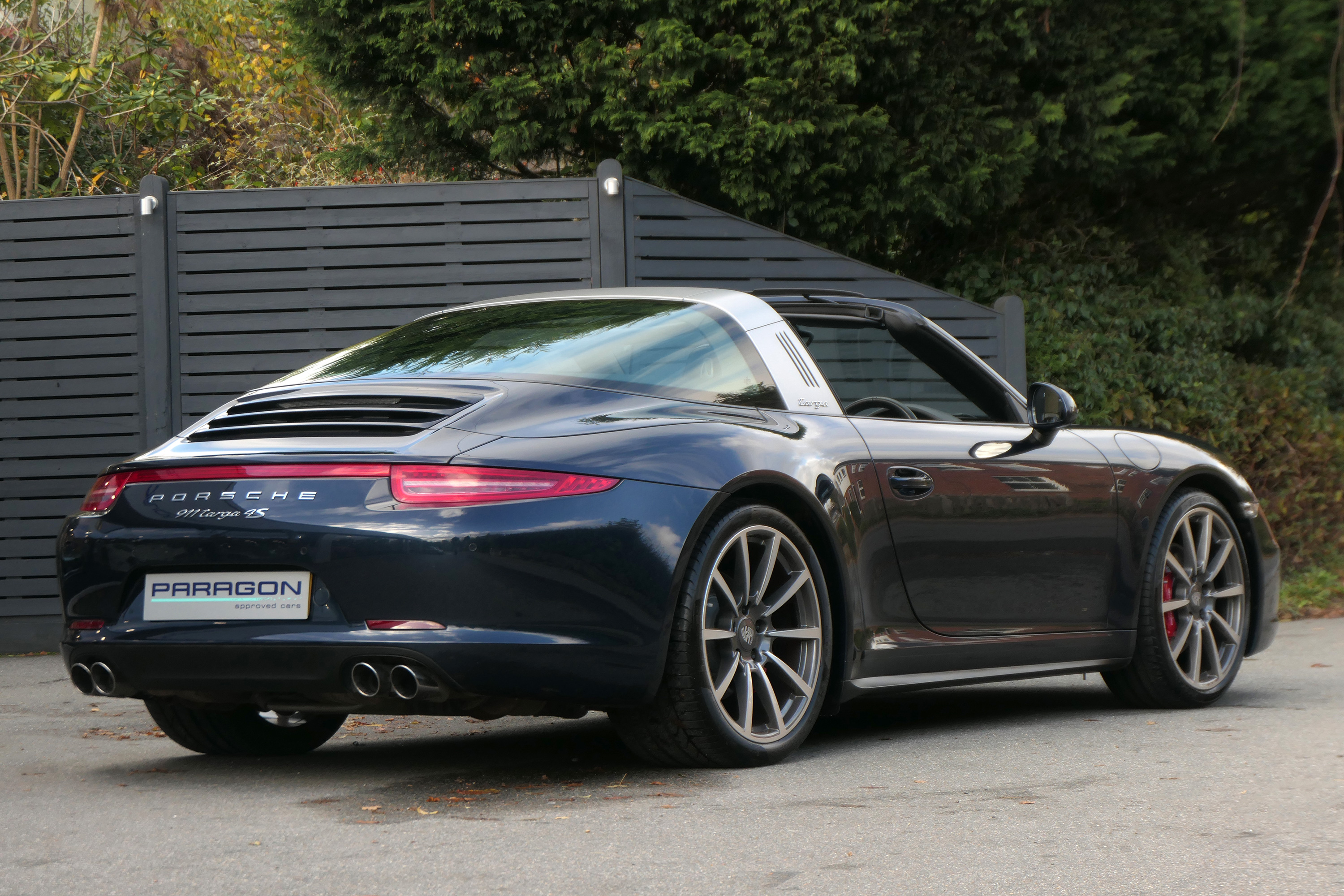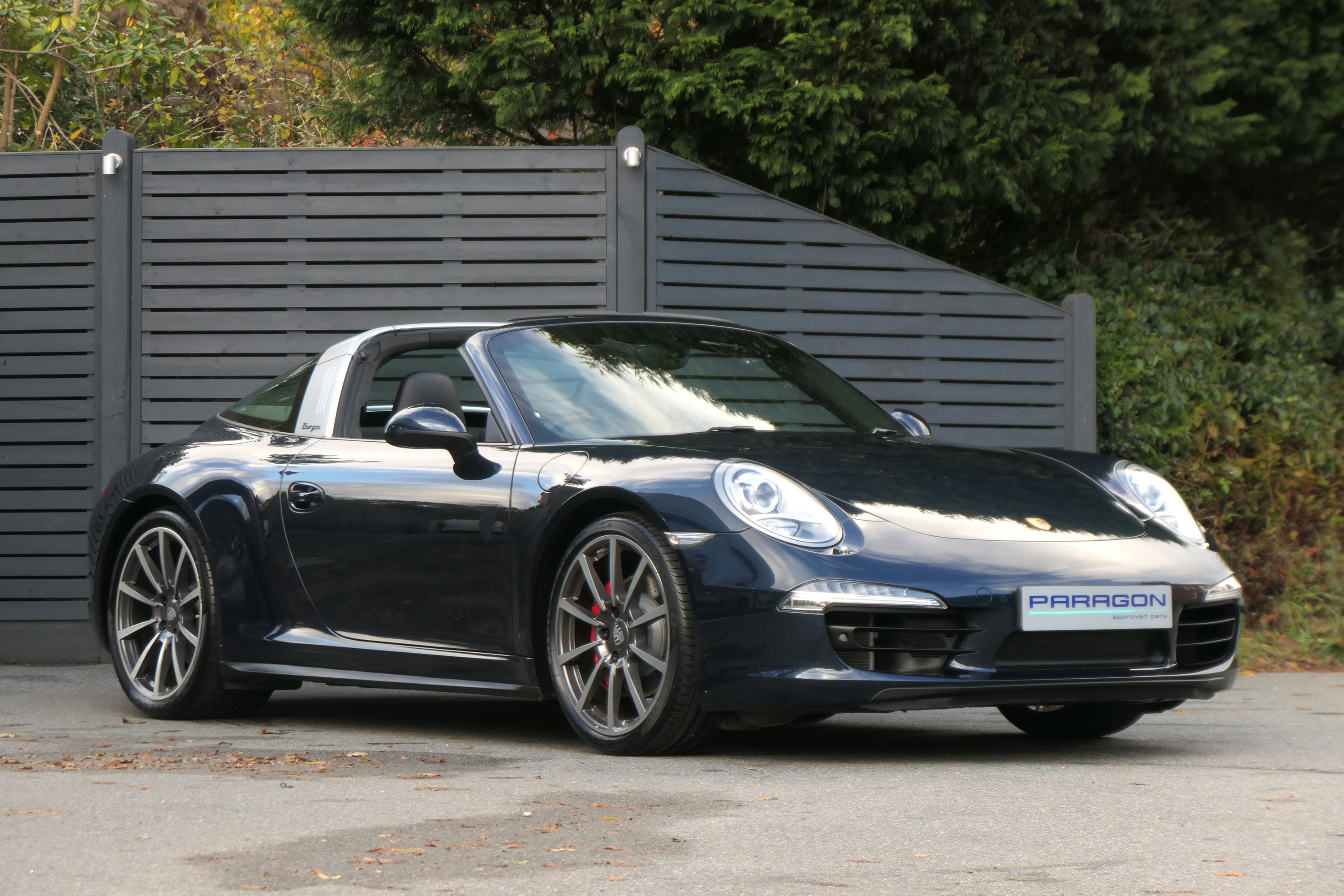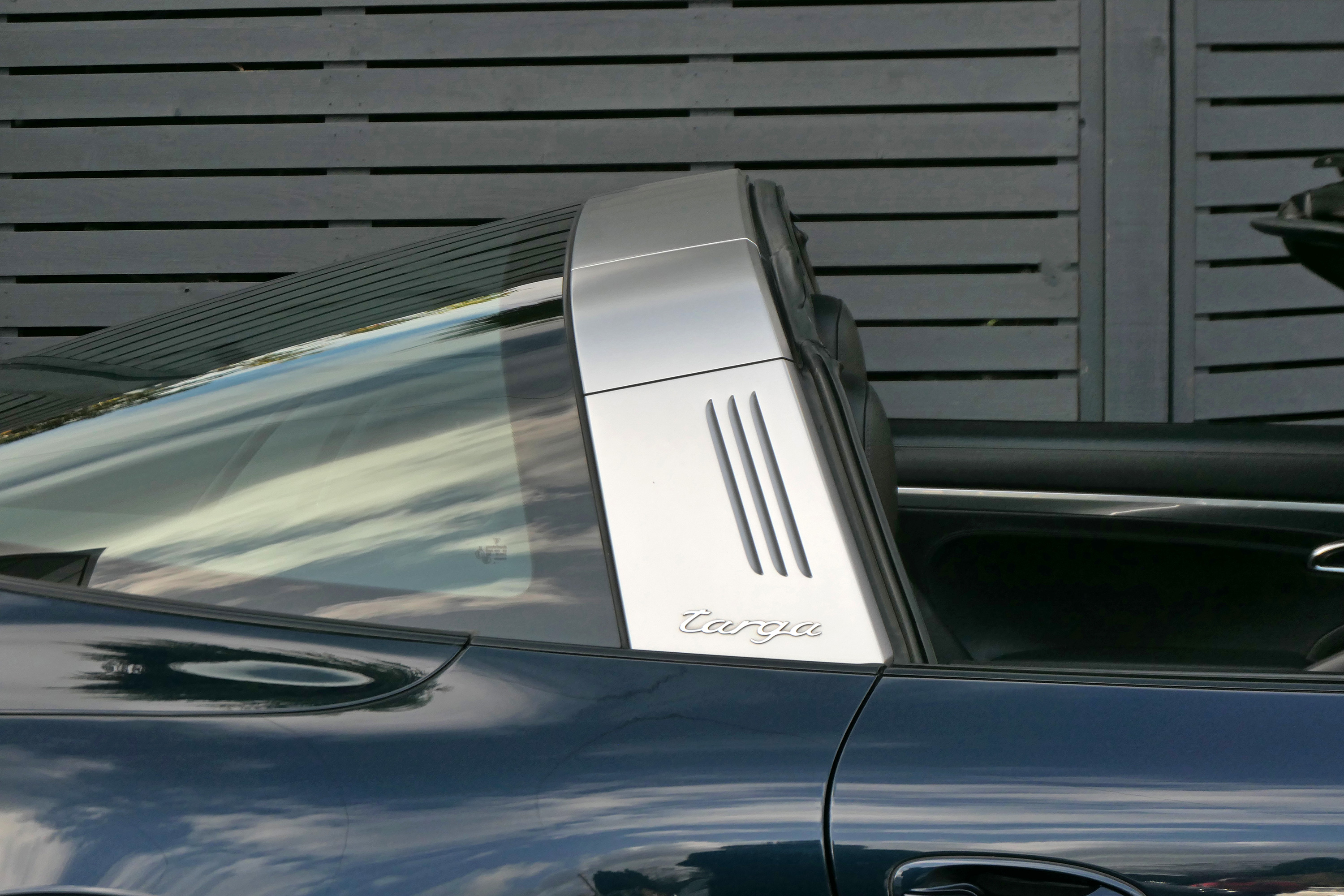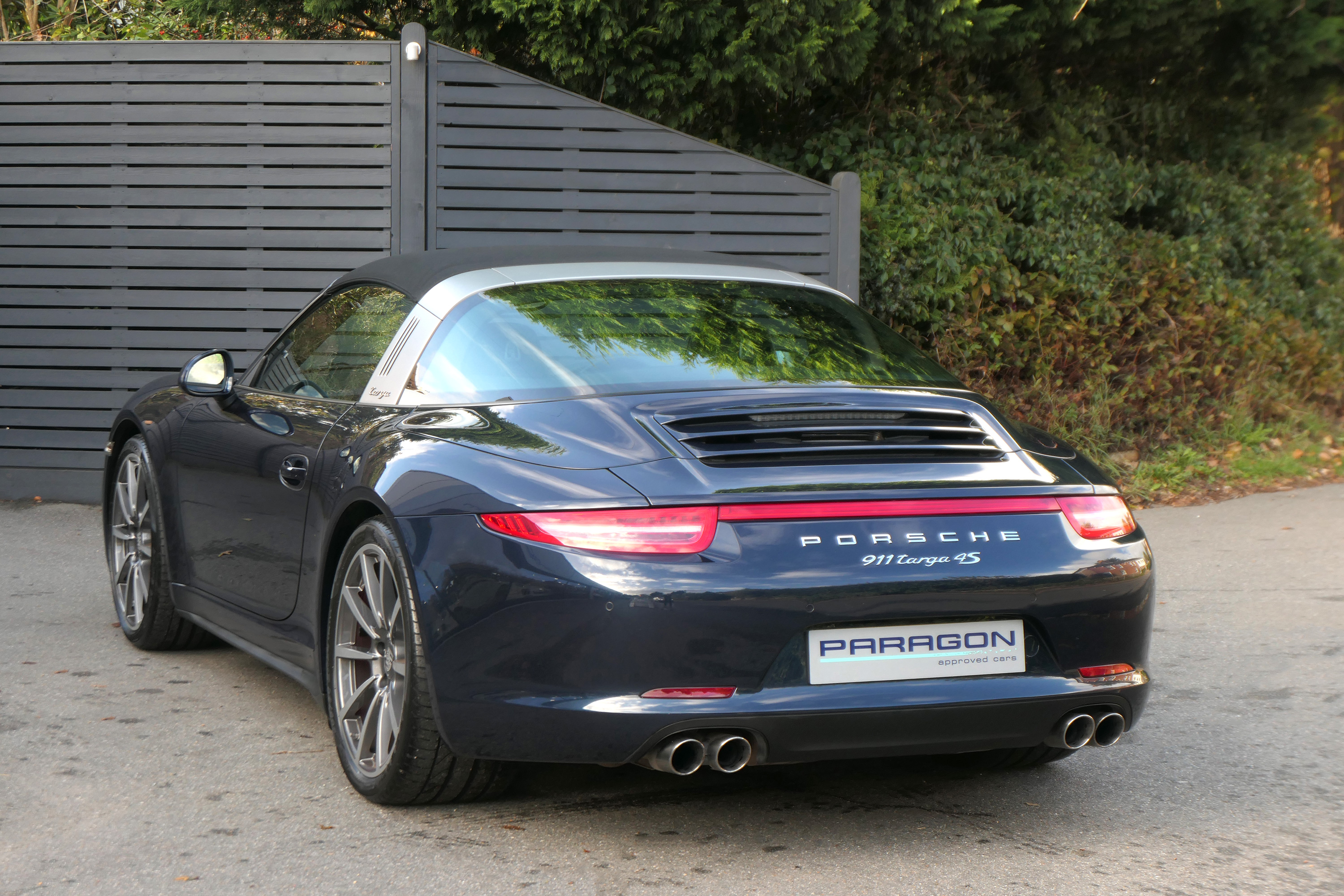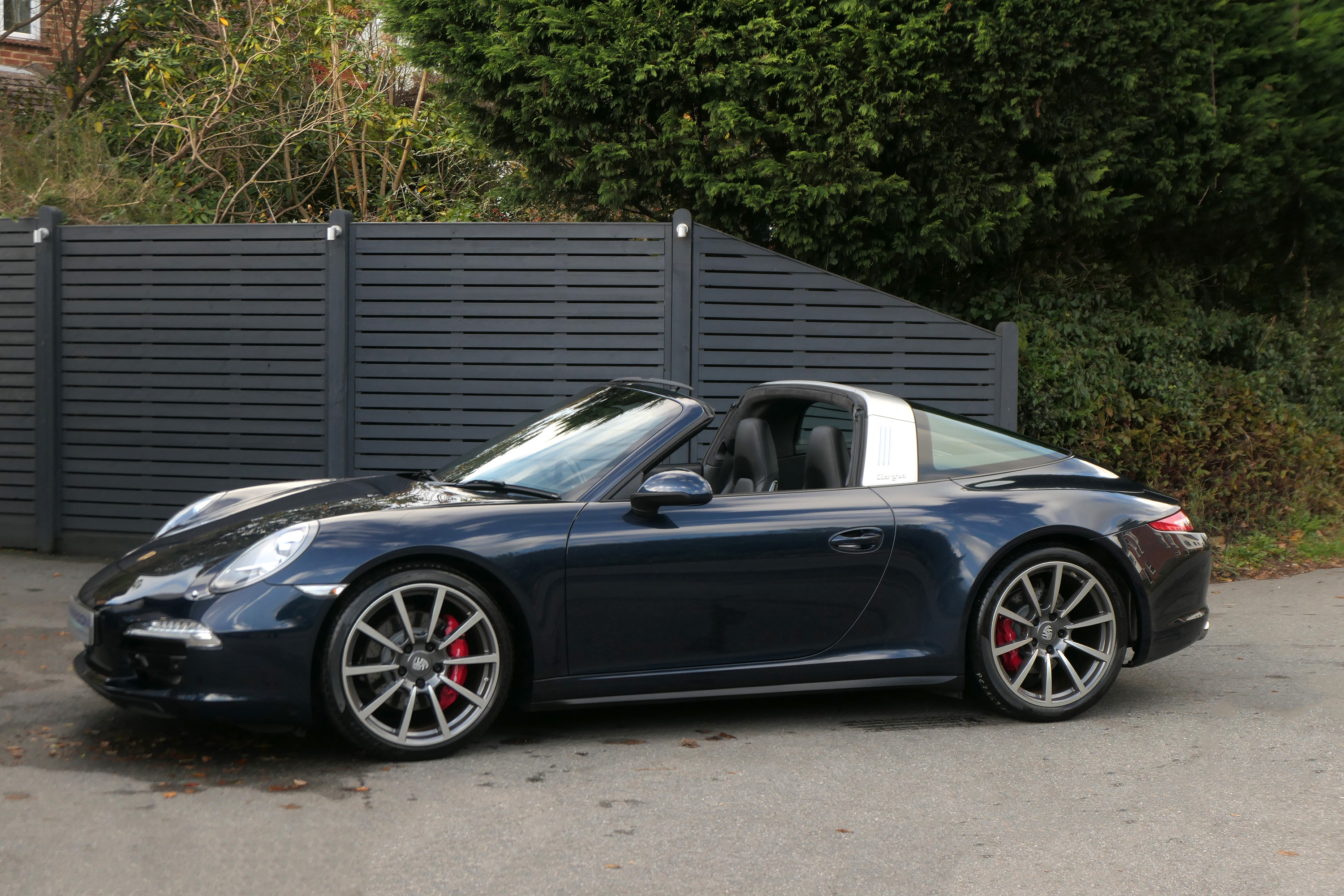 This 911 Carrera 4 S Targa (991) has the 7-speed PDK gearbox and is presented in Night Blue Metallic with black leather seats.
