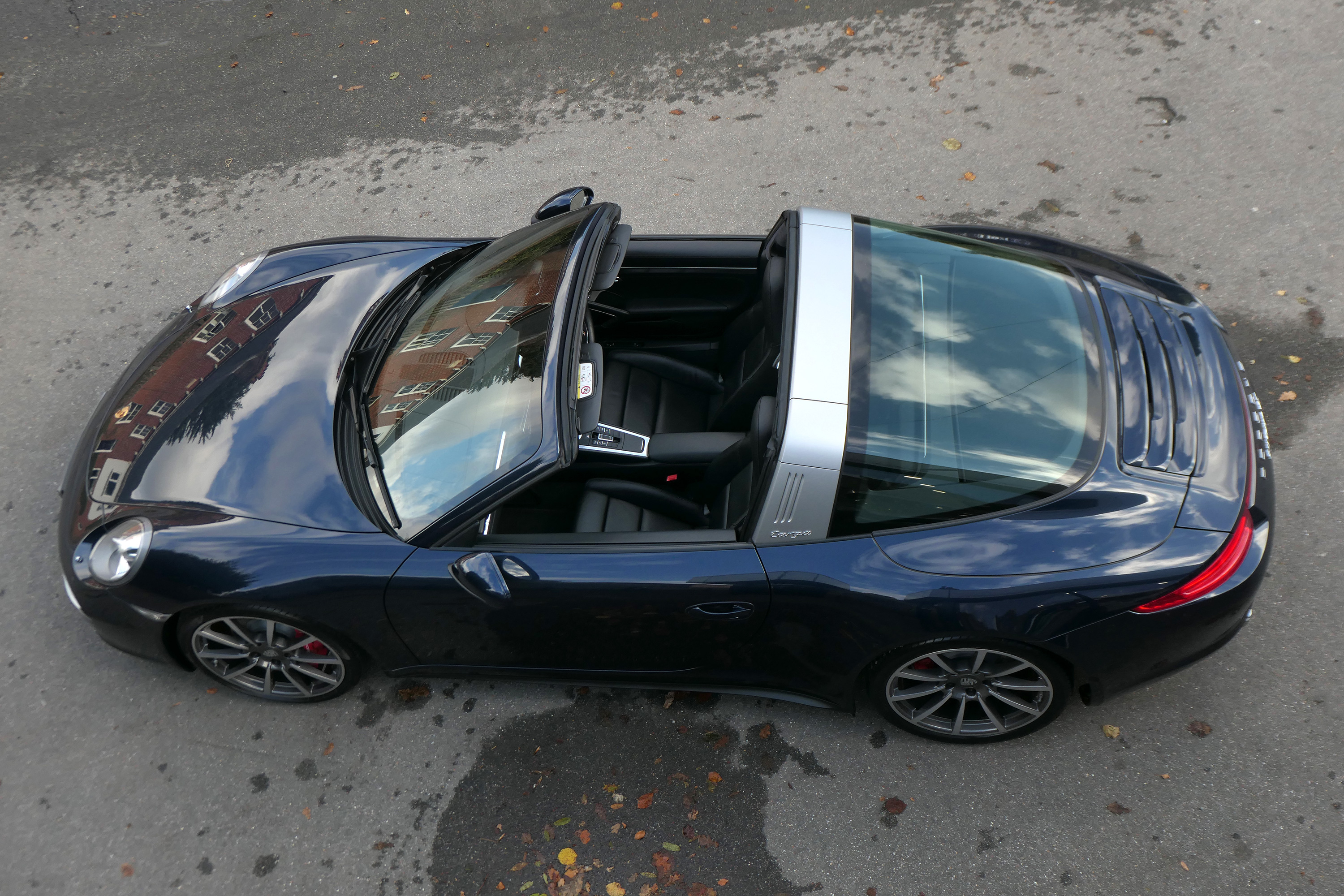The 991 Targa features an ingenious folding roof that harks back to the original 1965 911 with a silver roll hoop and 'wrap around' rear window. Unlike the 1965 version it stows away with the touch of a button.