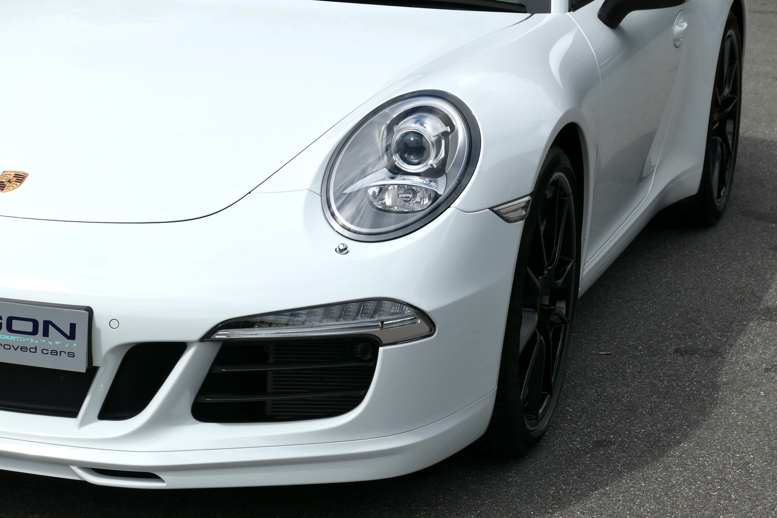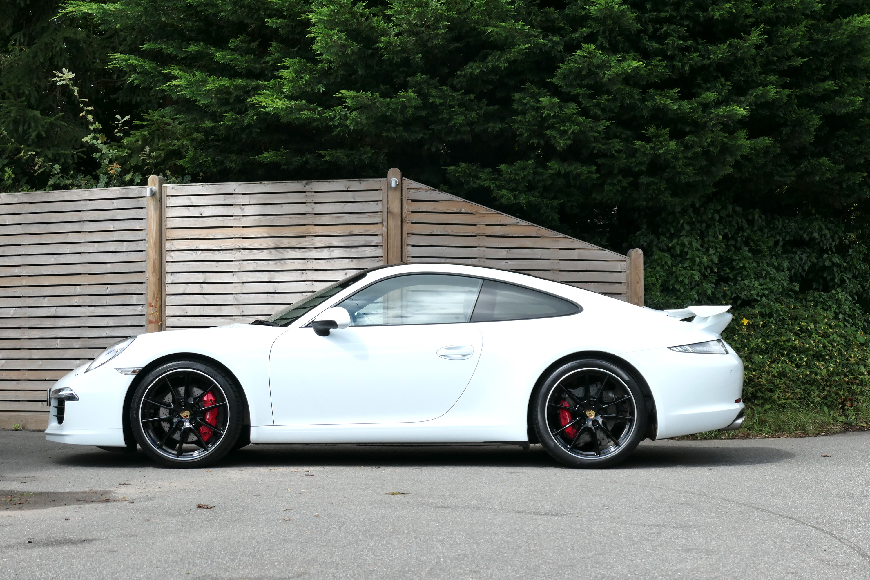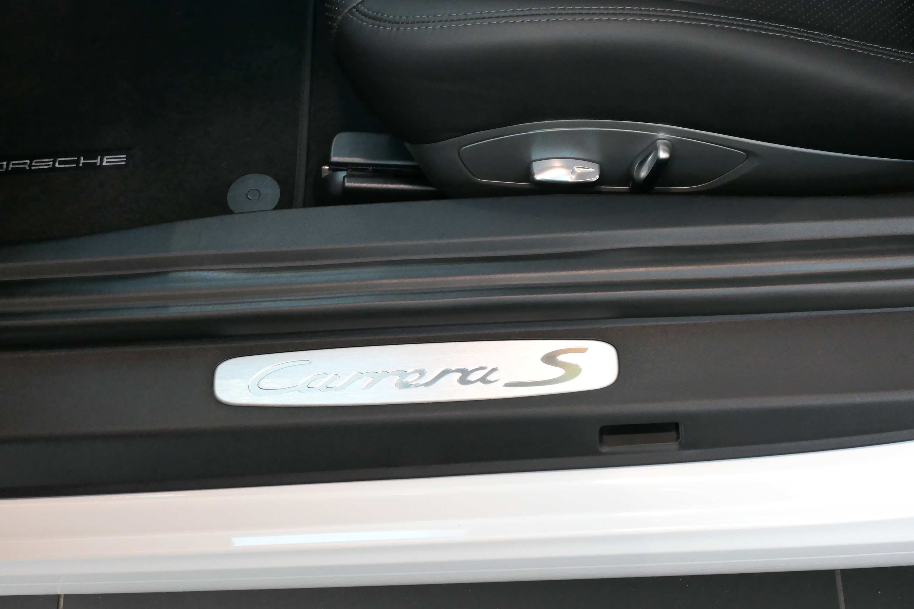 This 911 Carrera 2 S Coupe (991) is presented in Carrara White with black leather seats.