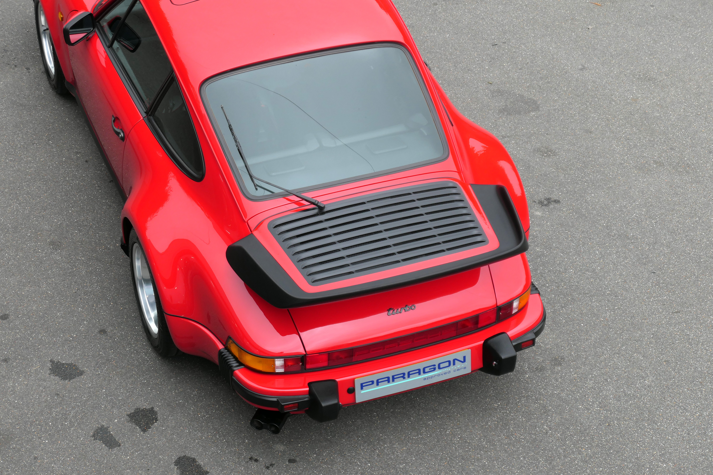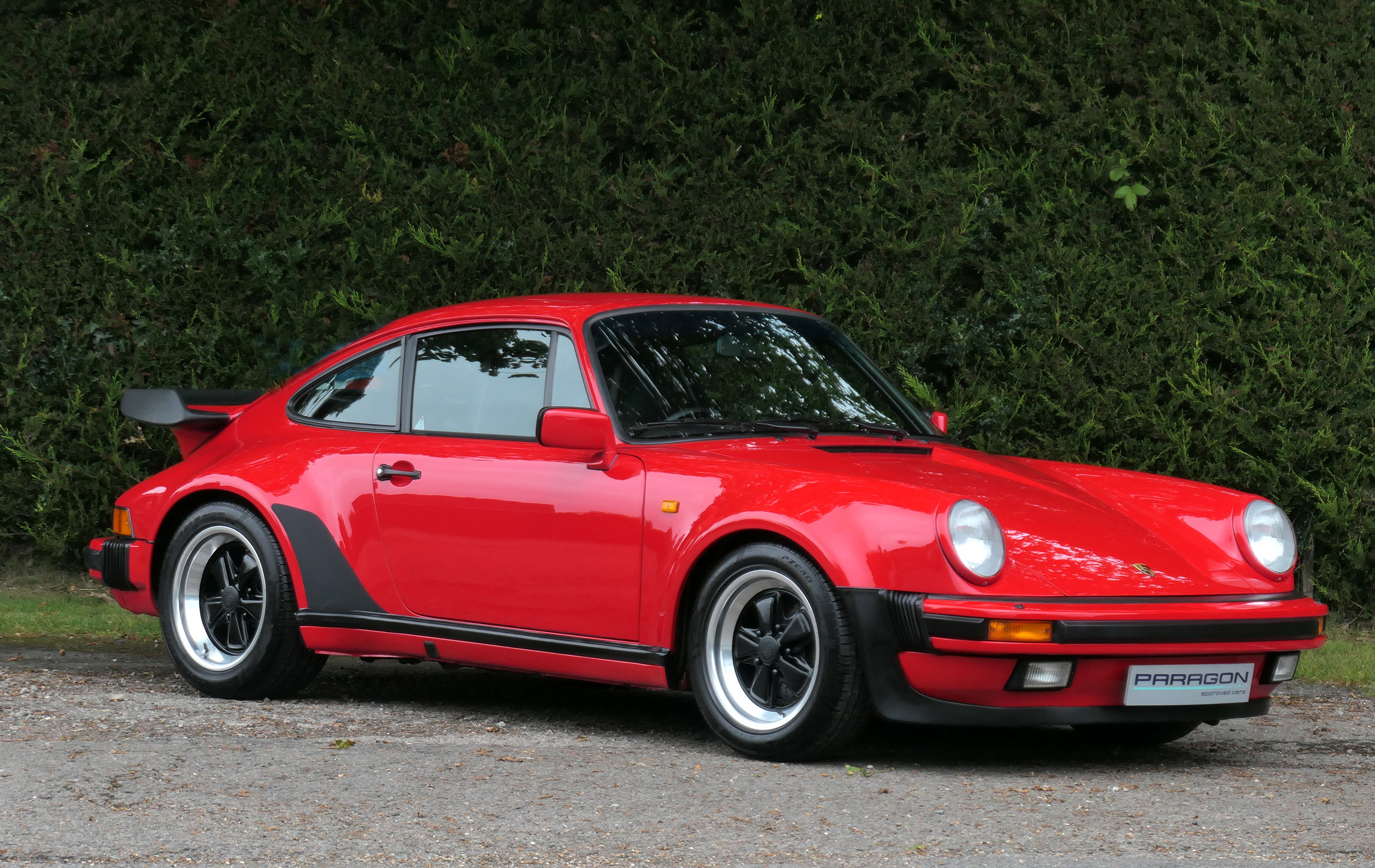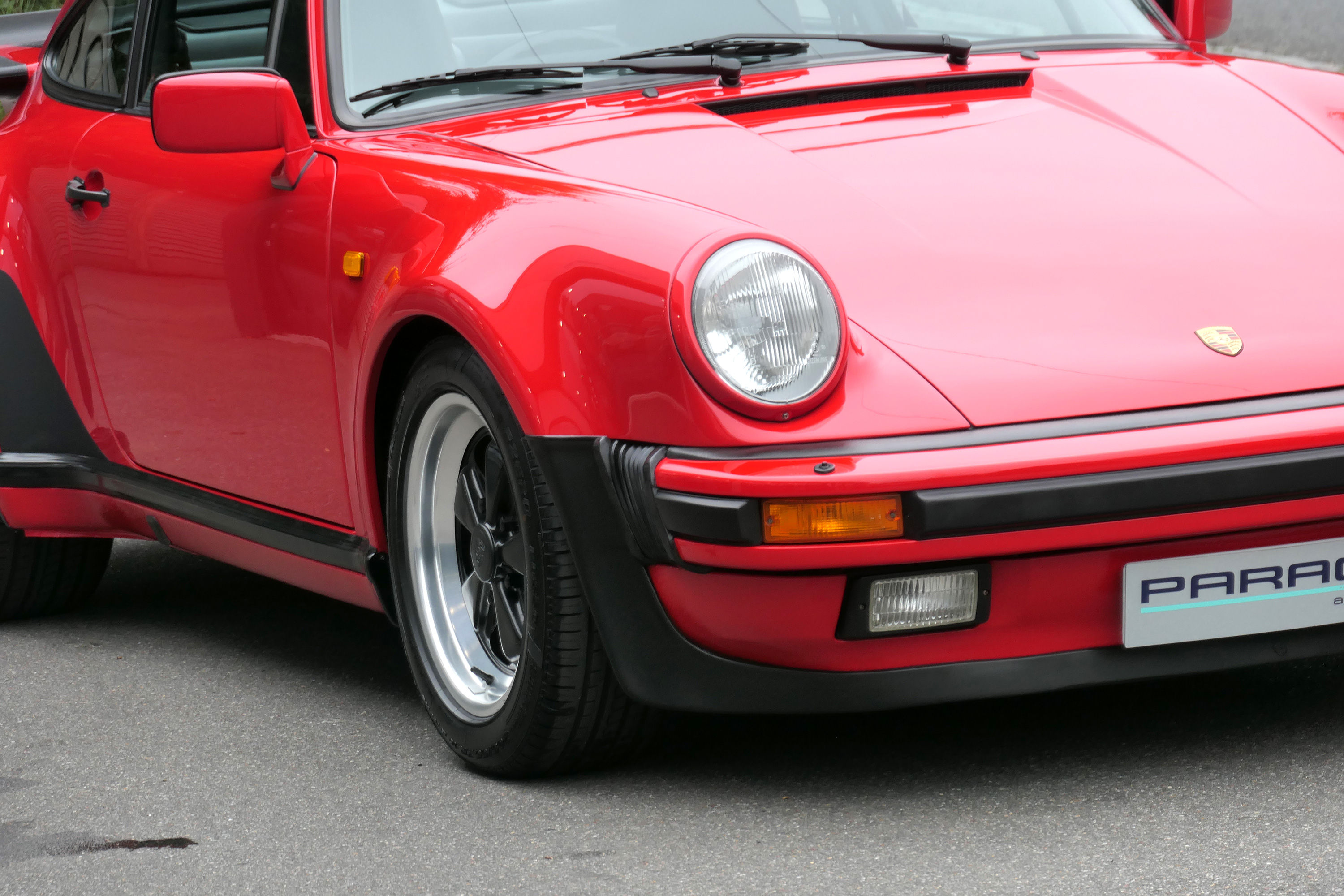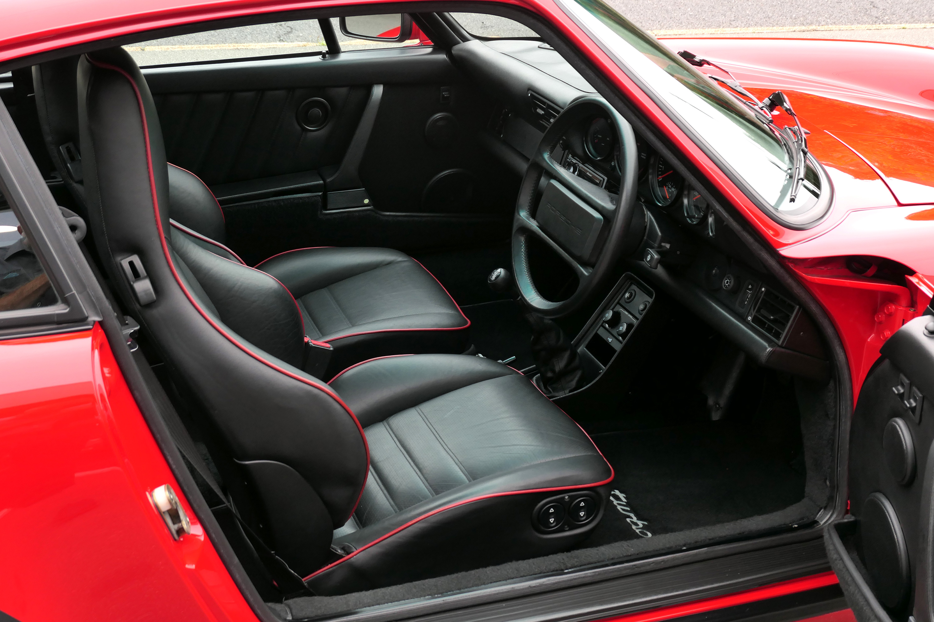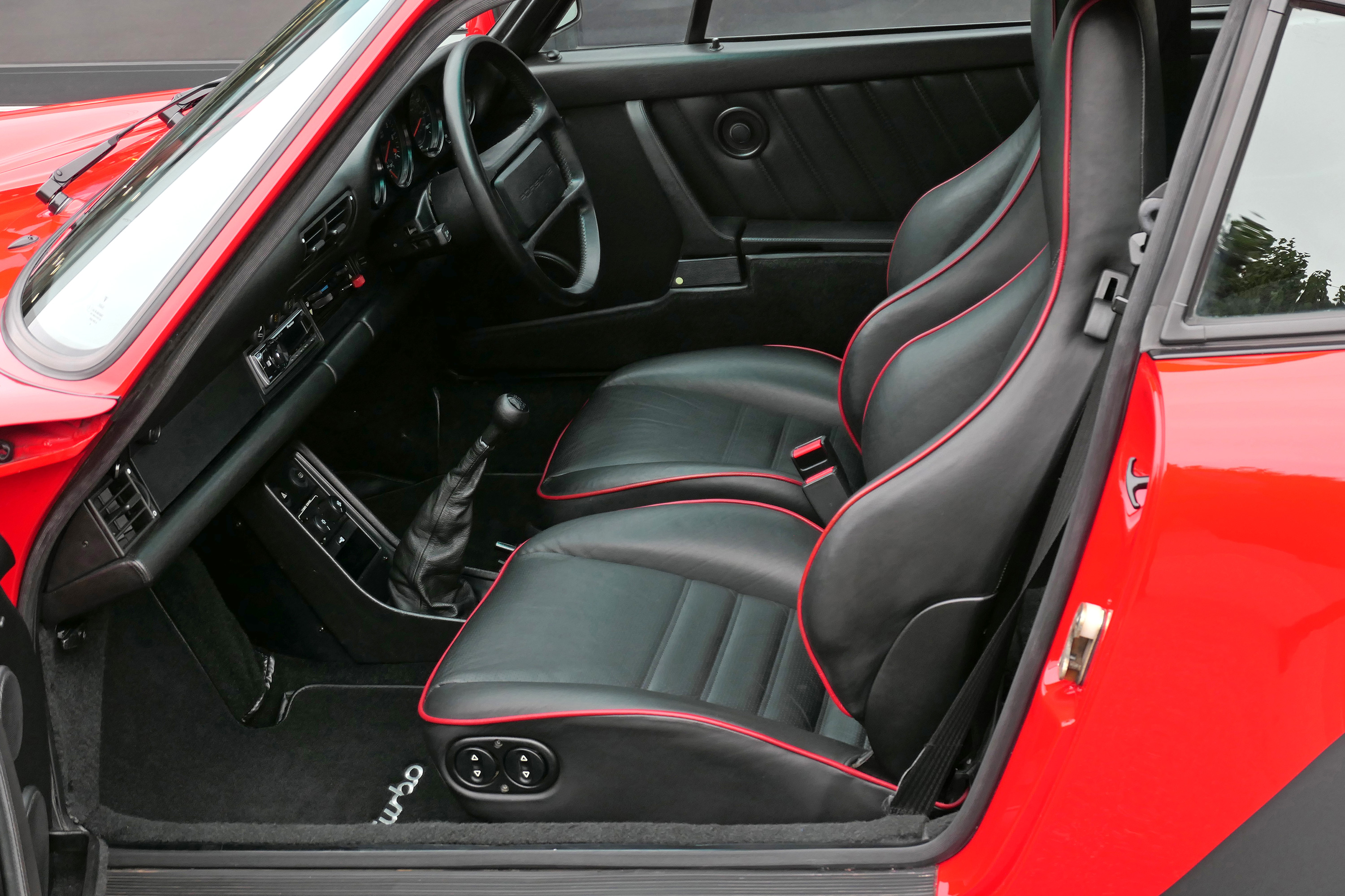 This 911 Turbo has the 5-speed G-50 gearbox and is presented in Guards Red with black leather sport seats piped in red.