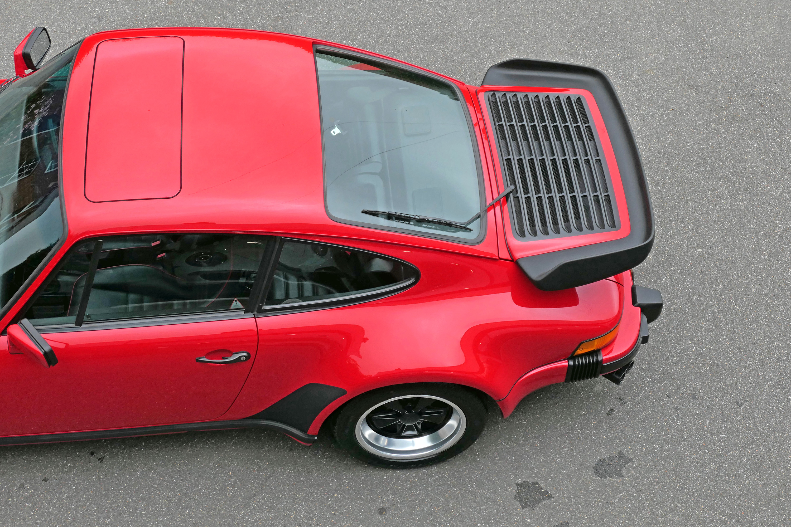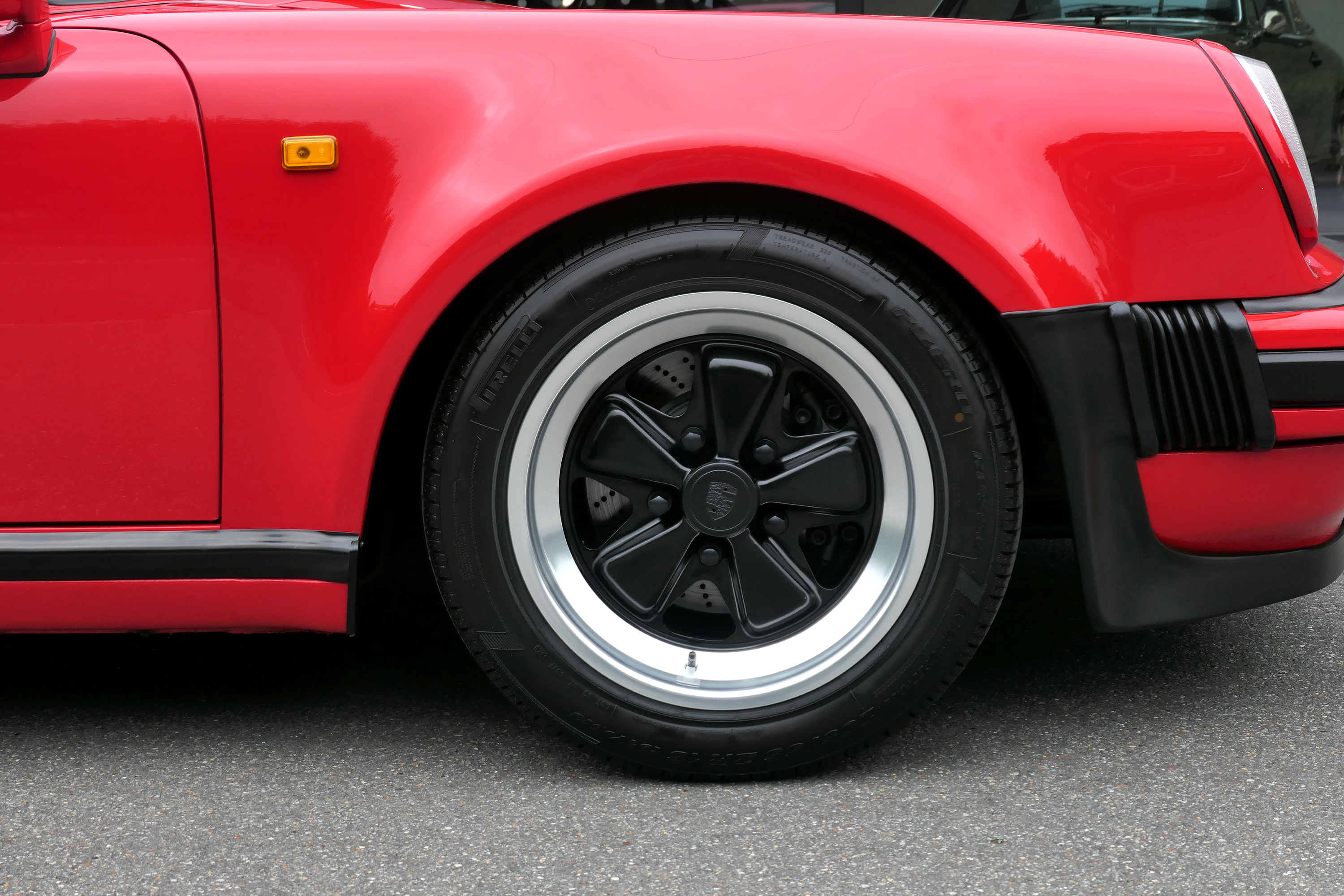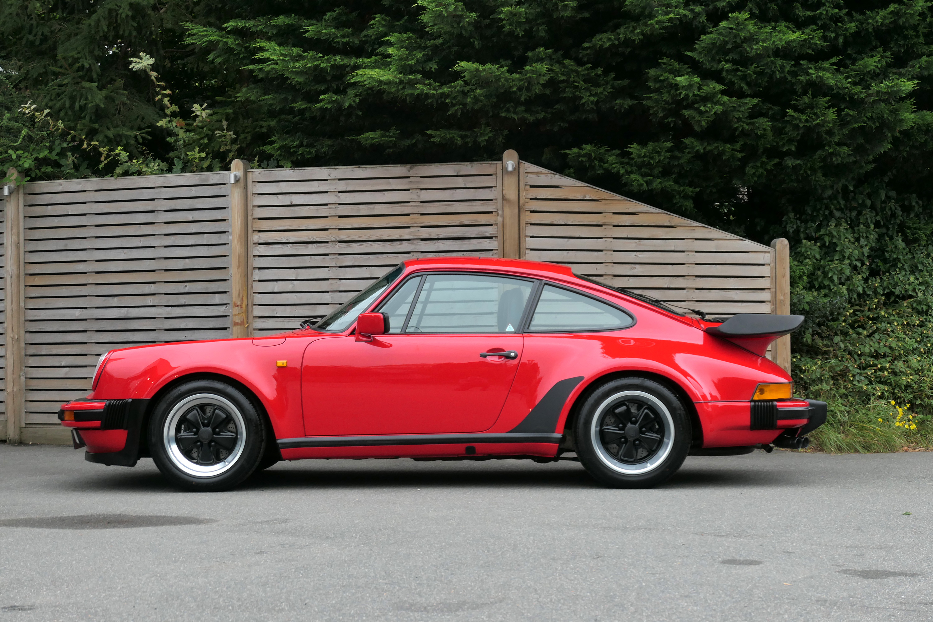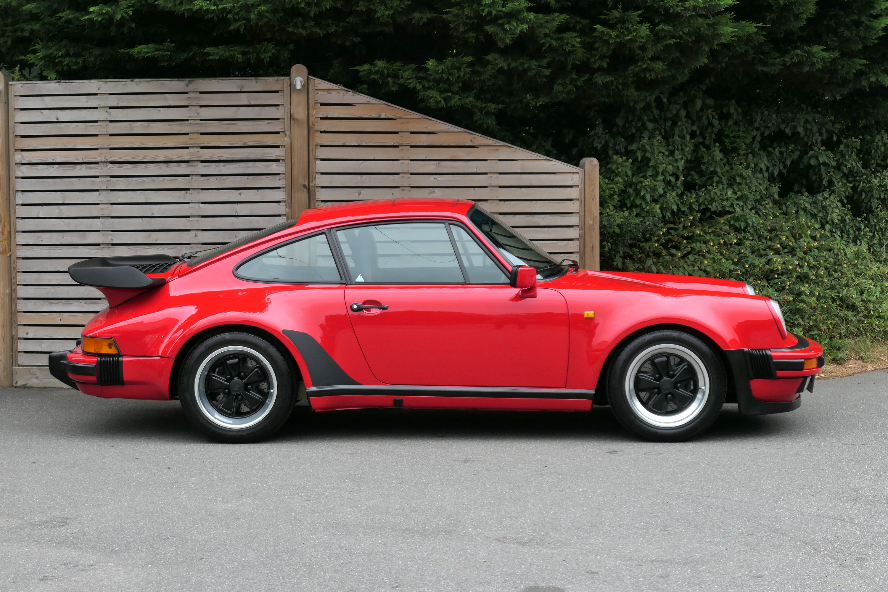 This 911 Turbo has the 5-speed G-50 gearbox and is presented in Guards Red with black leather sport seats piped in red.