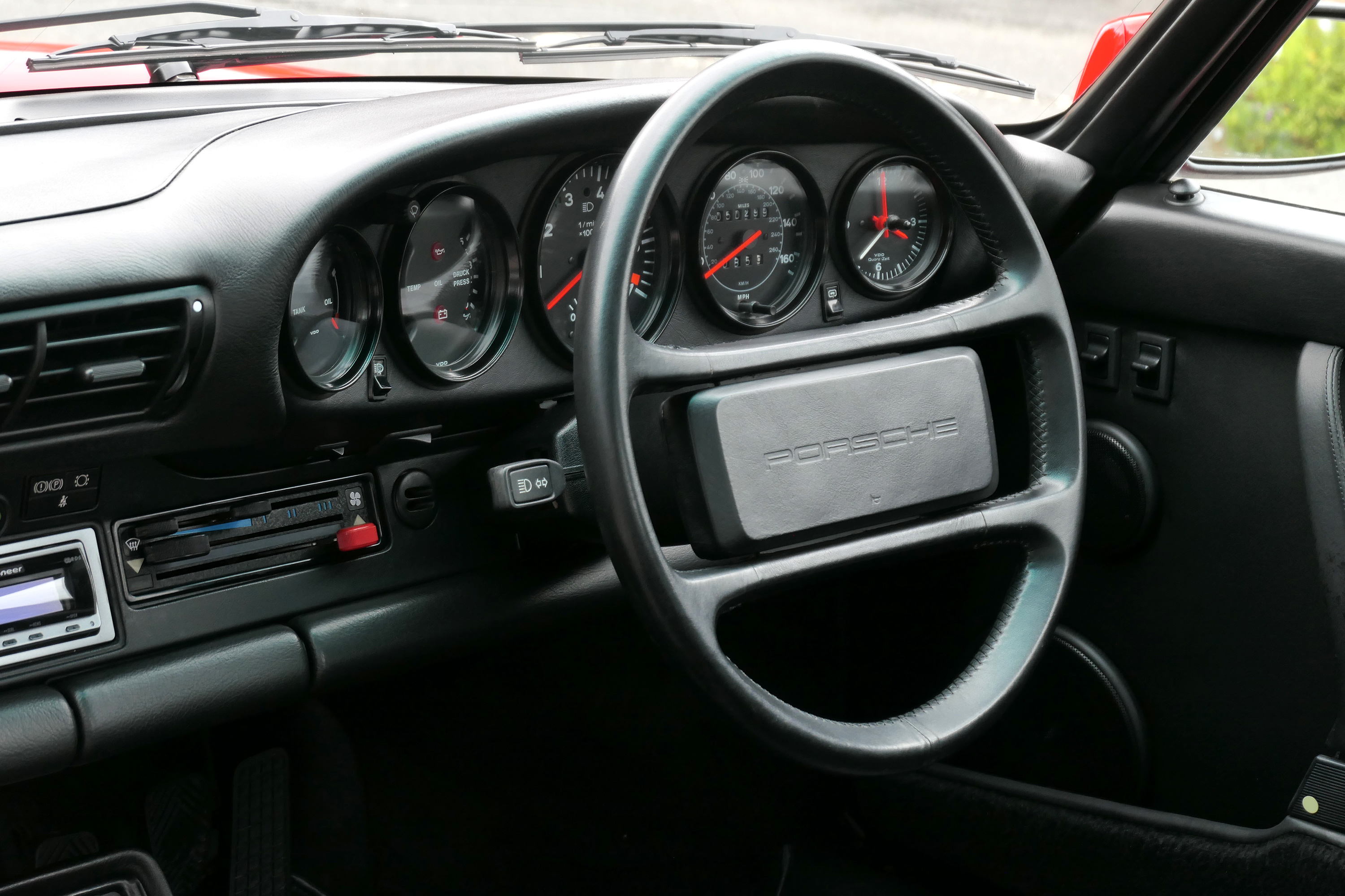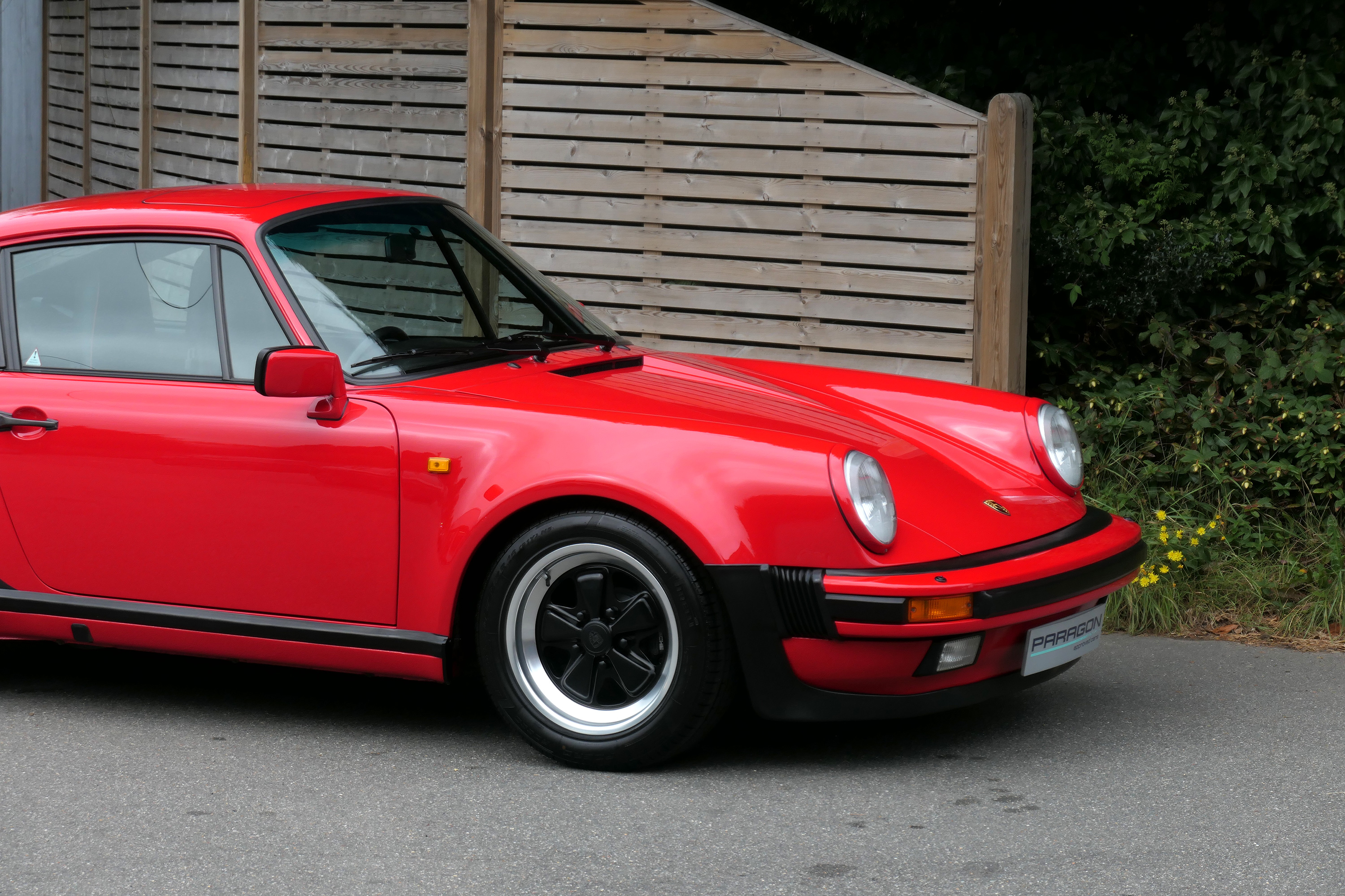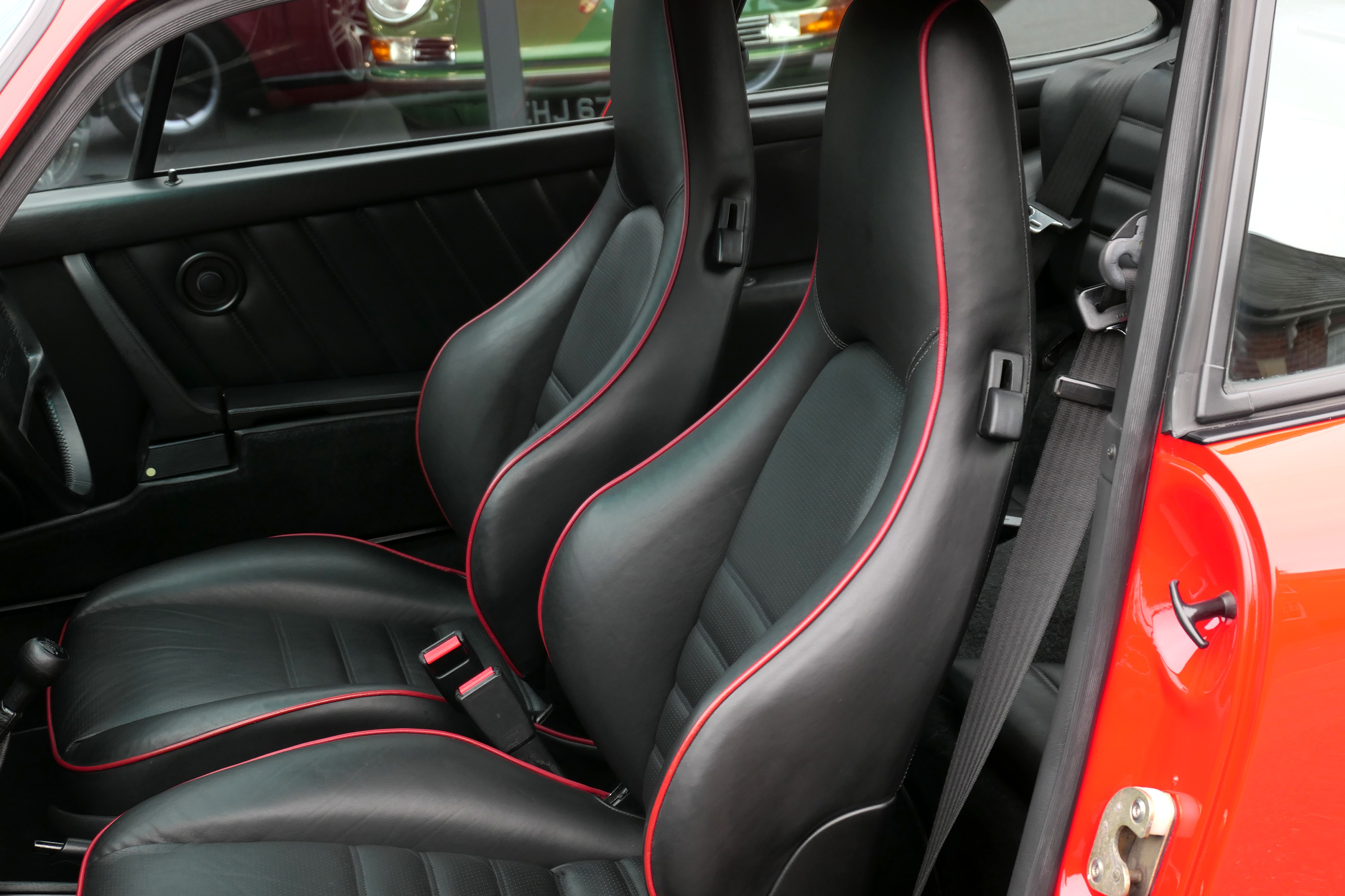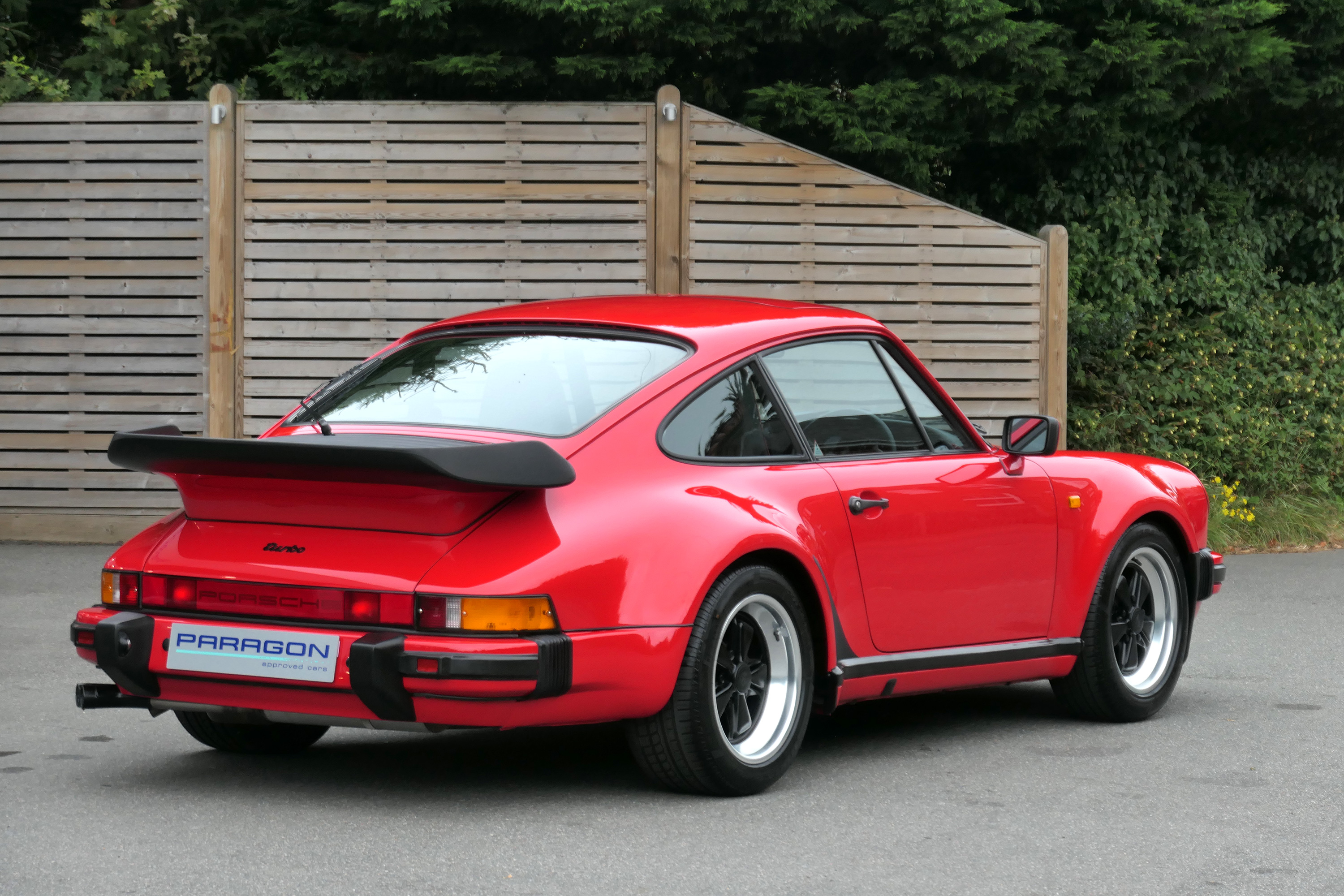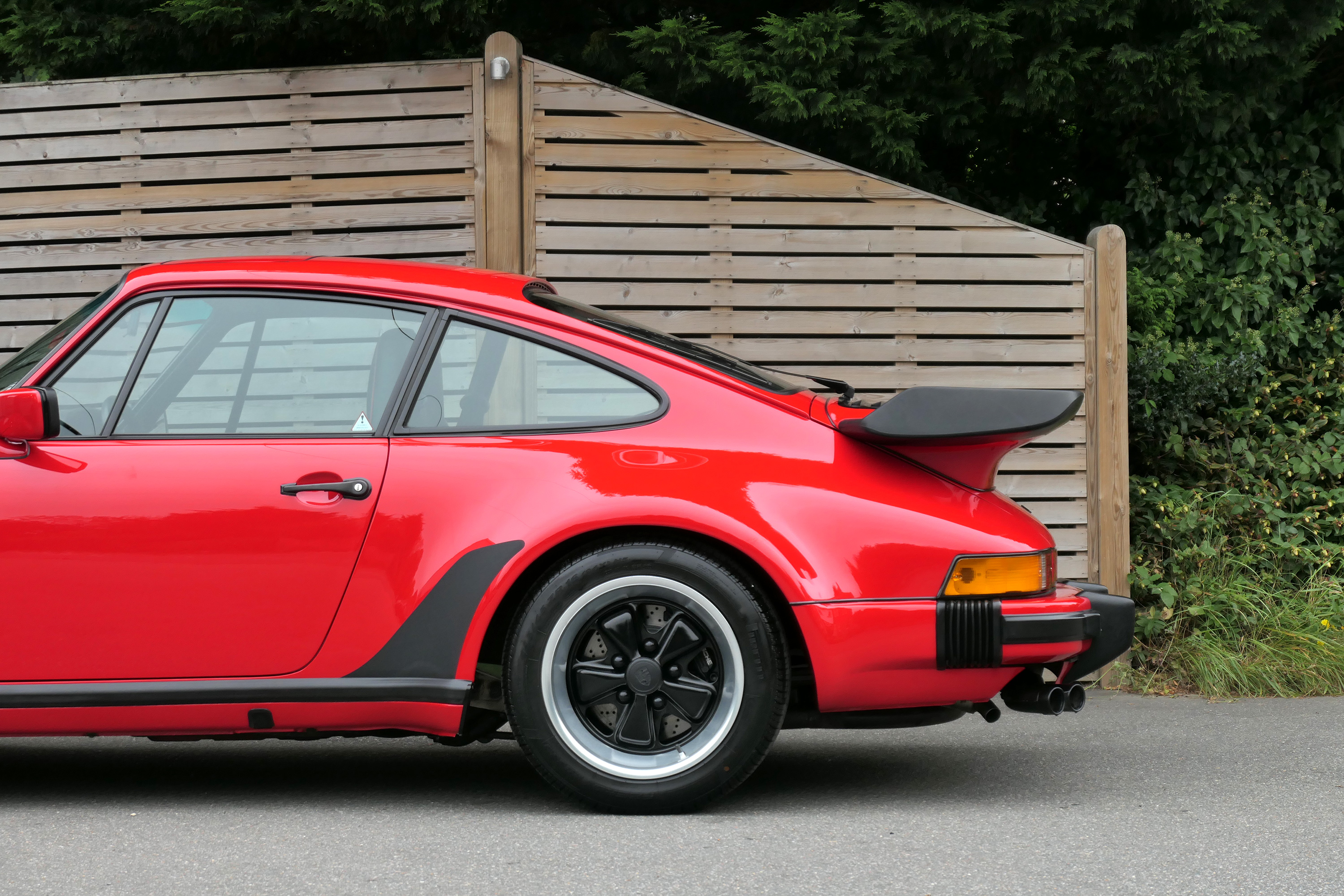 This 911 Turbo has the 5-speed G-50 gearbox and is presented in Guards Red with black leather sport seats piped in red.