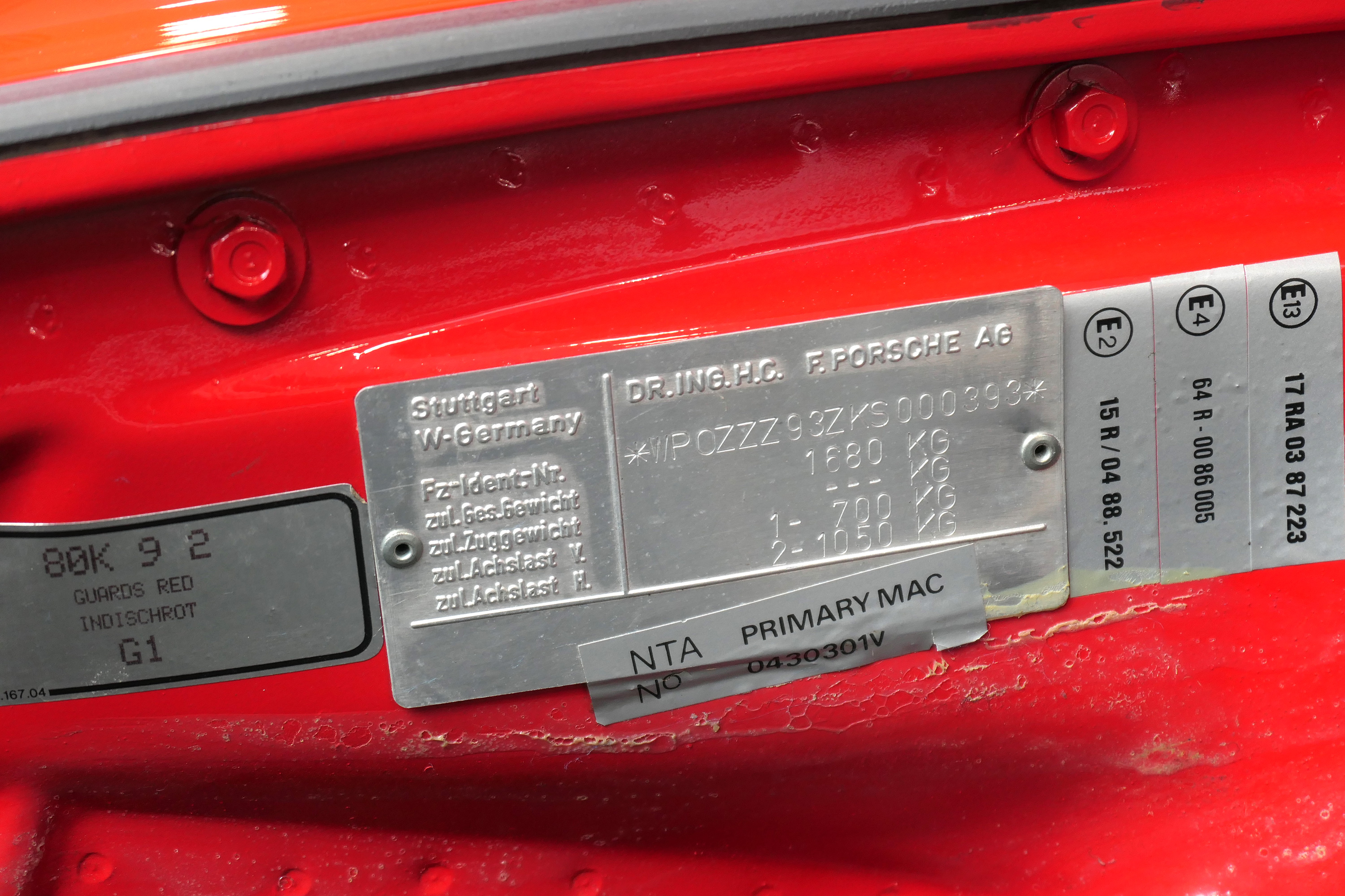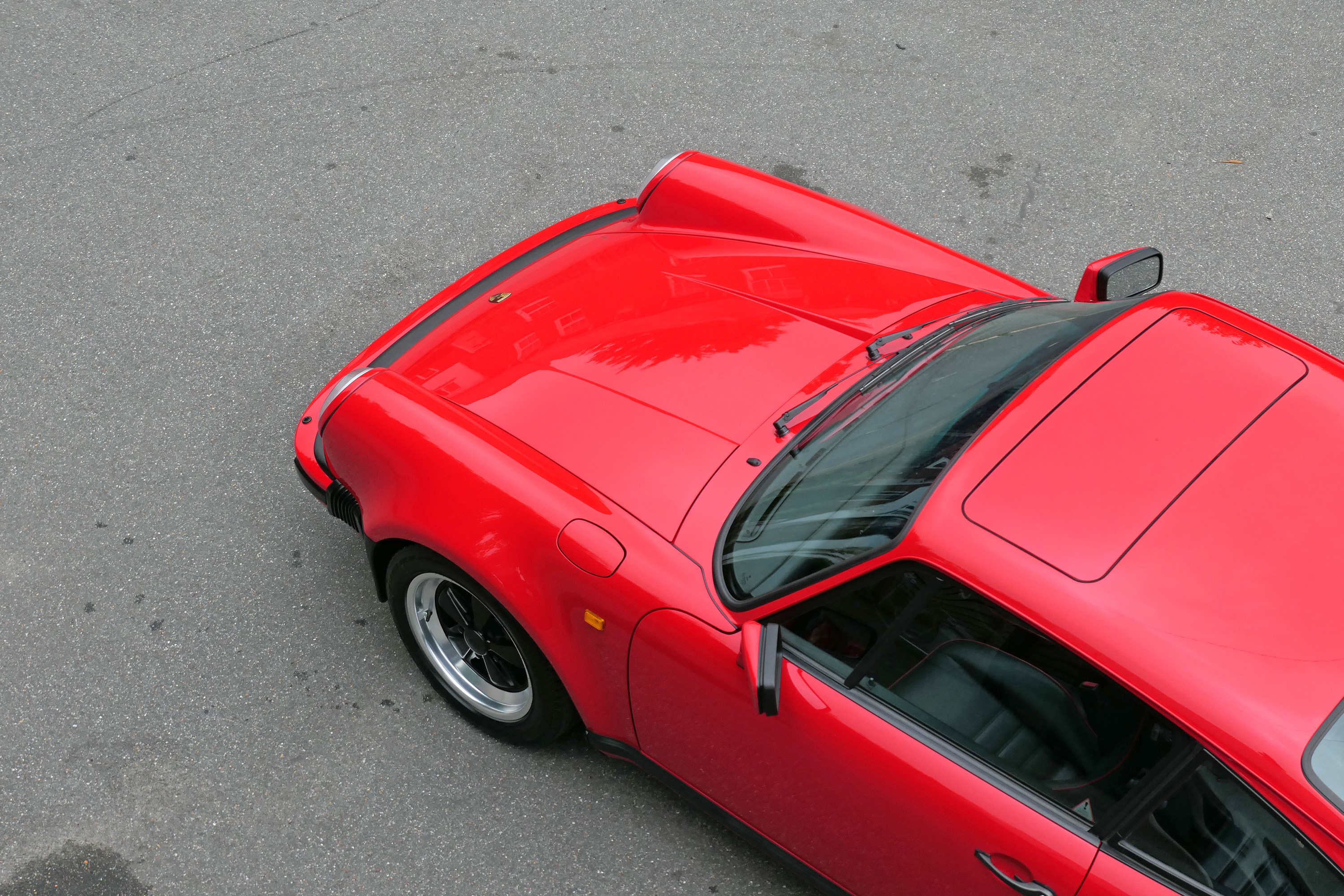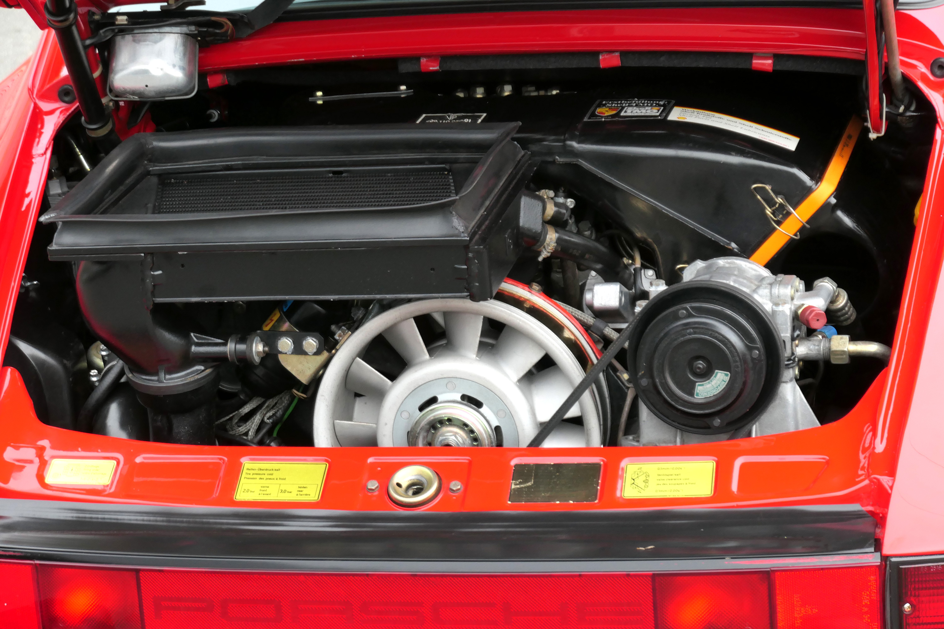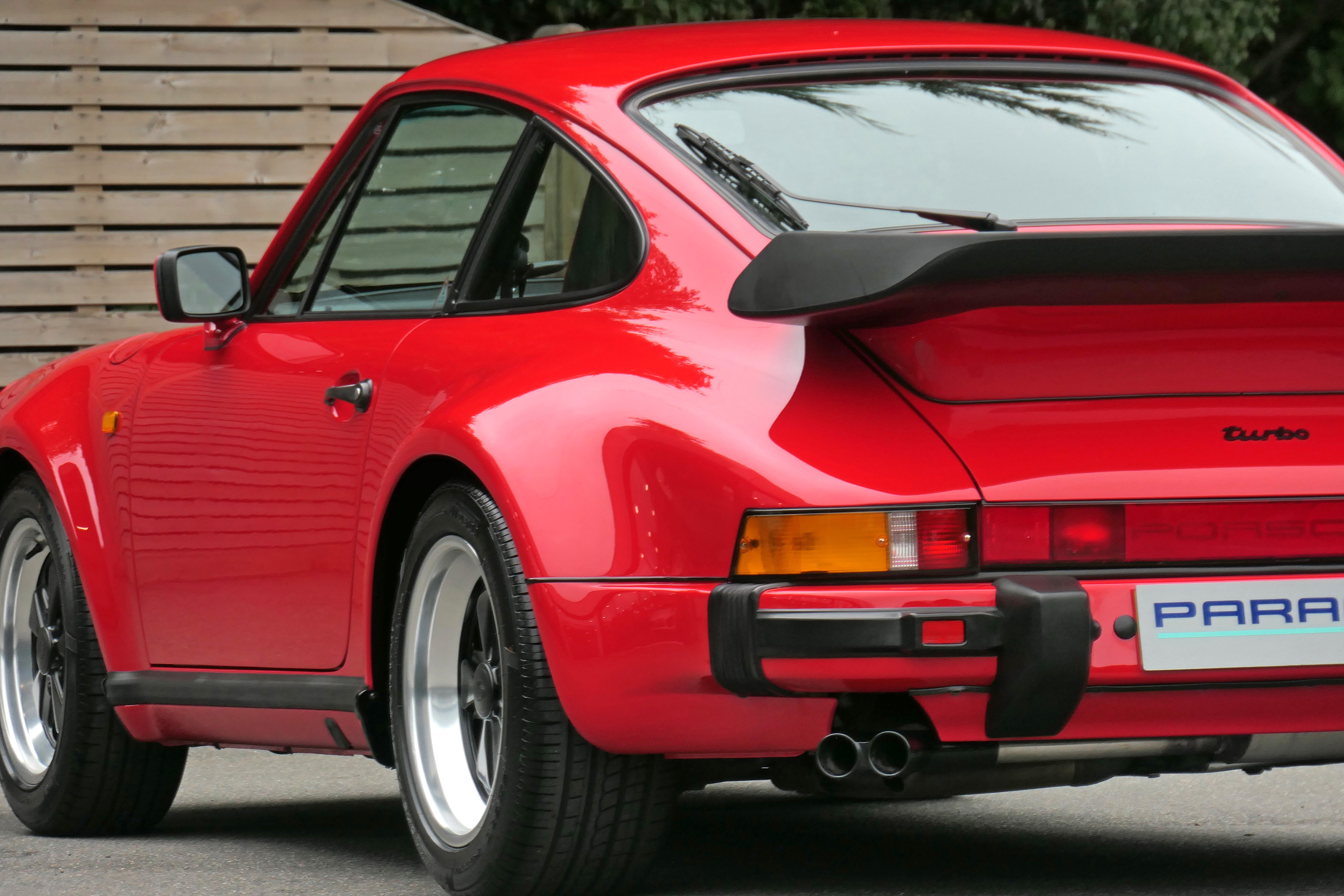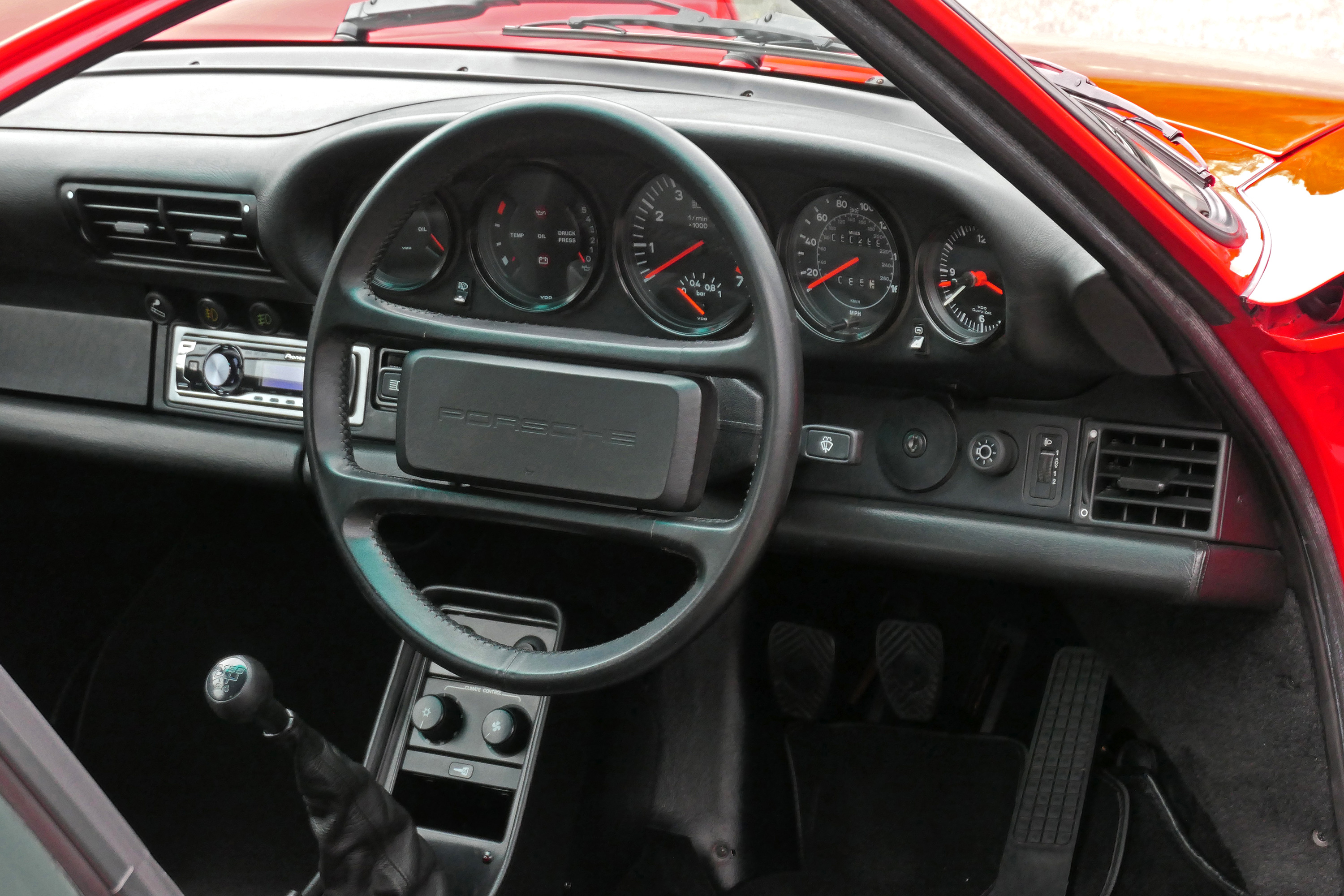 This 911 Turbo has the 5-speed G-50 gearbox and is presented in Guards Red with black leather sport seats piped in red.