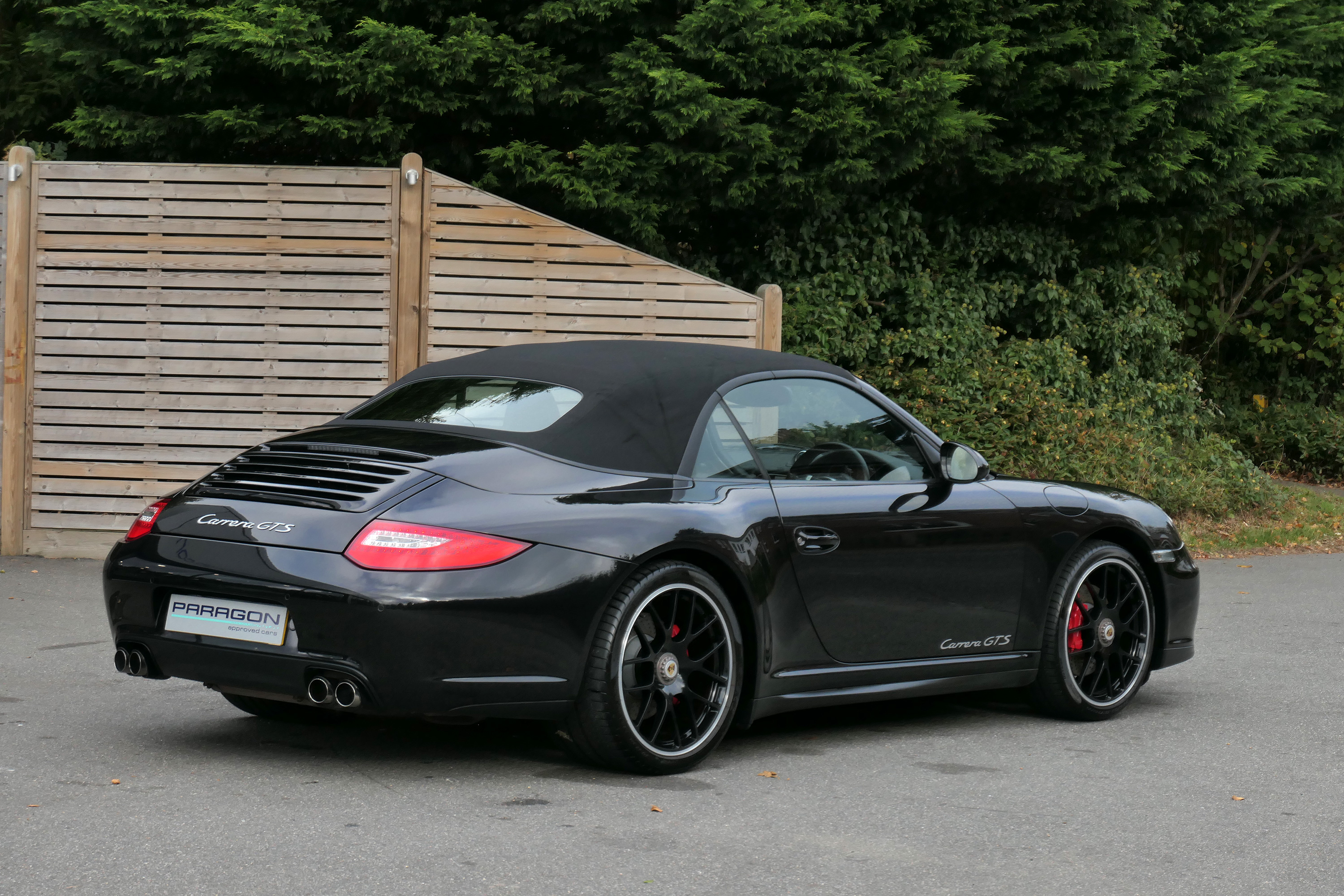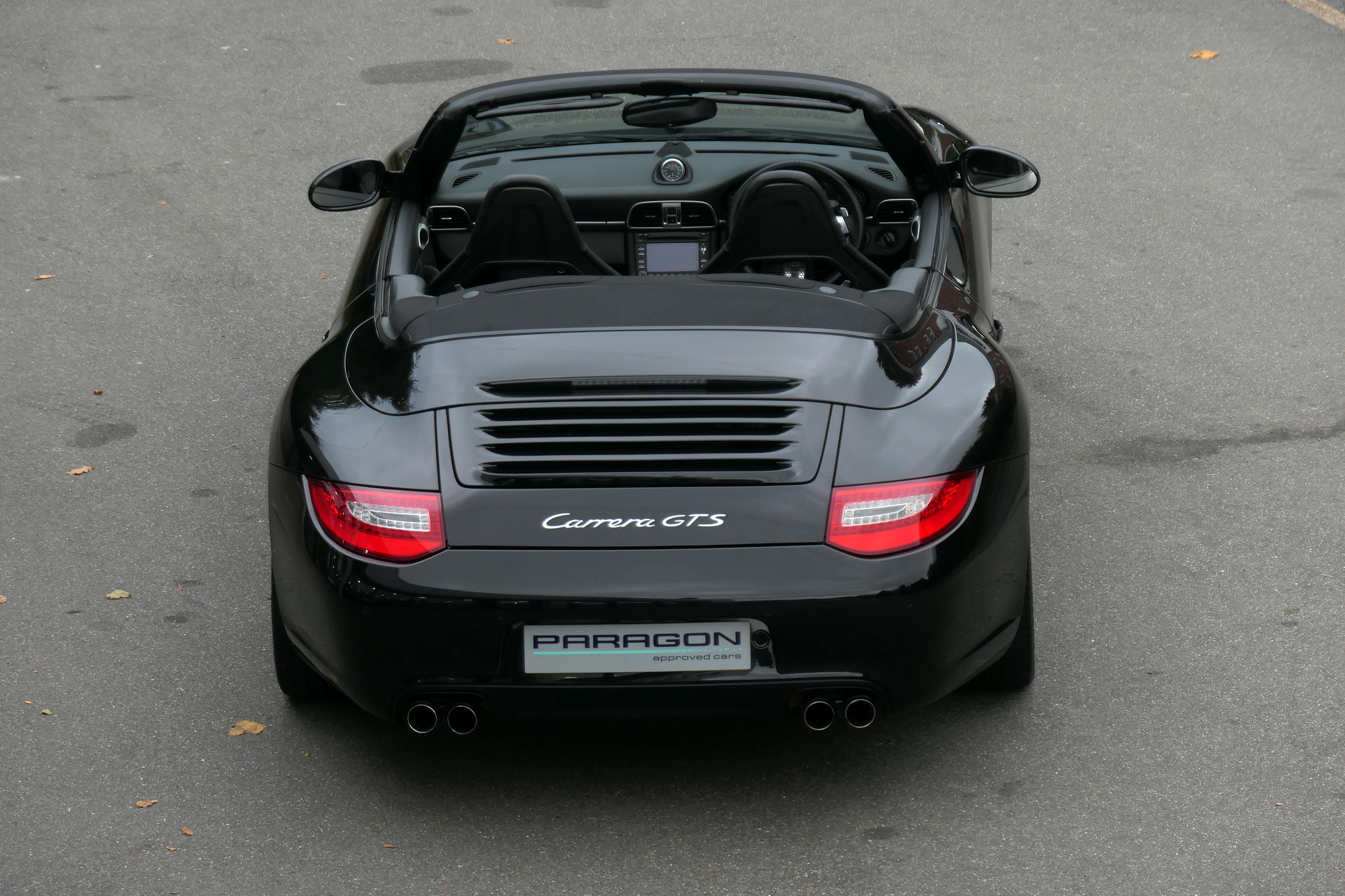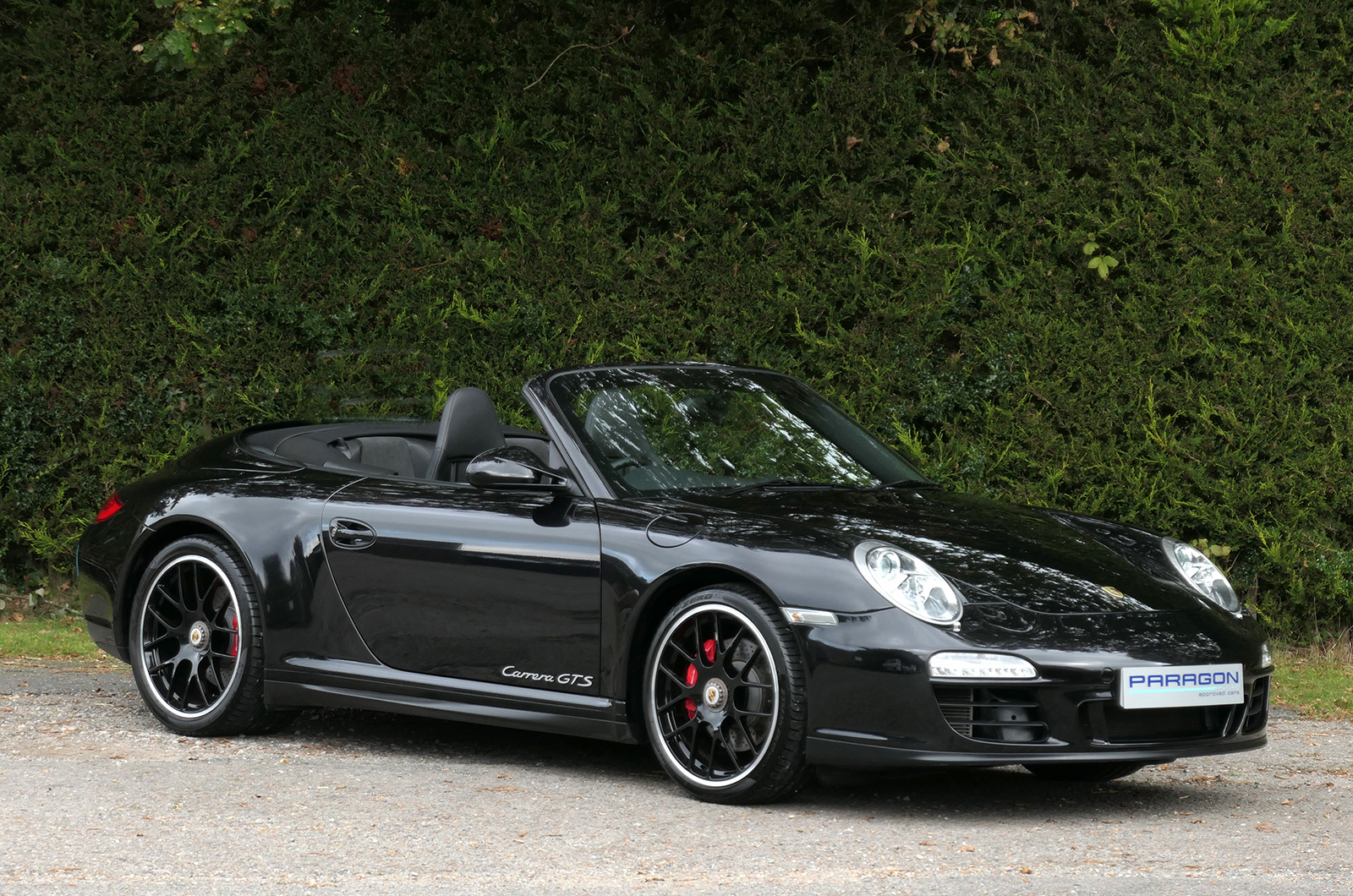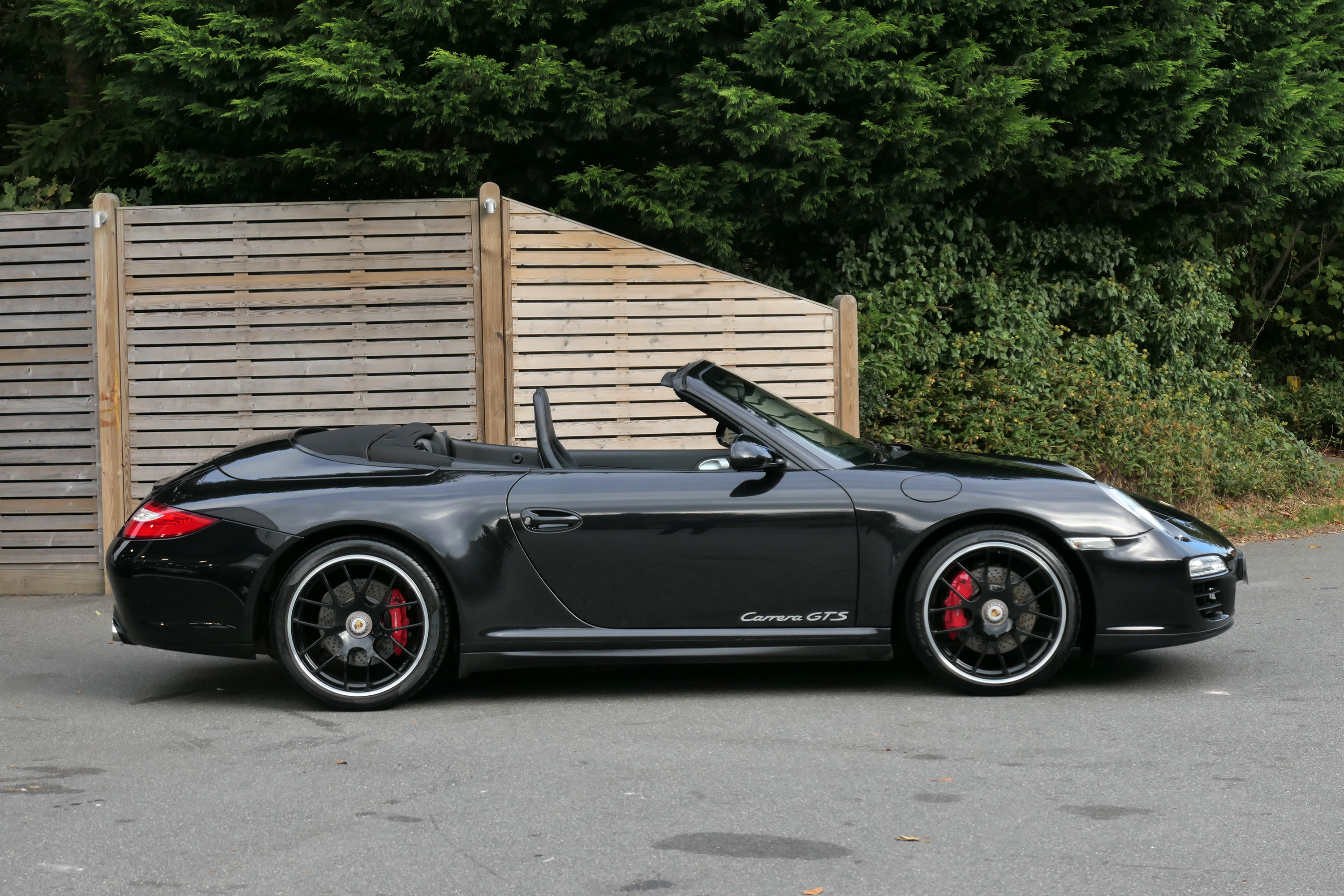 This 911 Carrera 2 GTS Cabriolet (997) has the 7-speed PDK gearbox and is presented in Basalt Black with black half leather bucket seats and a black power hood.