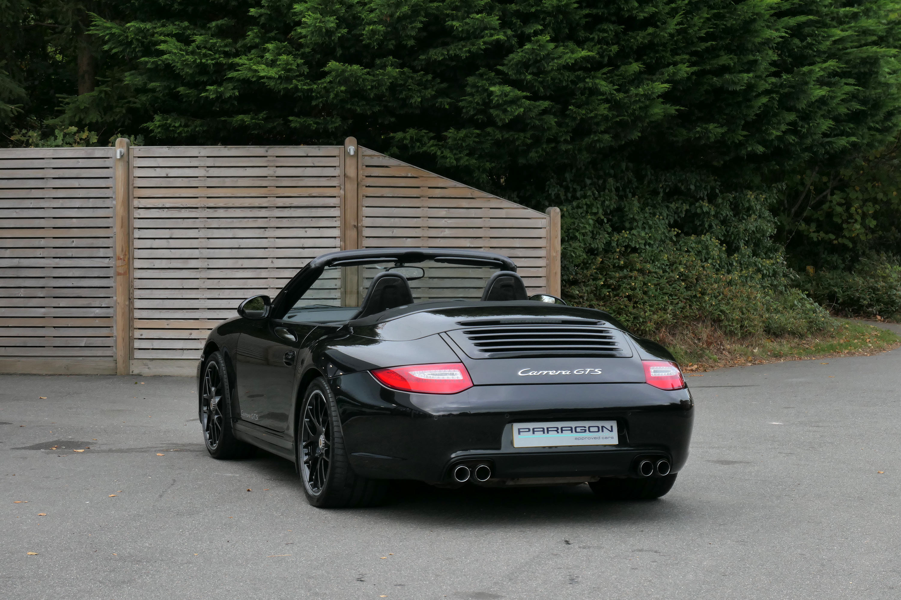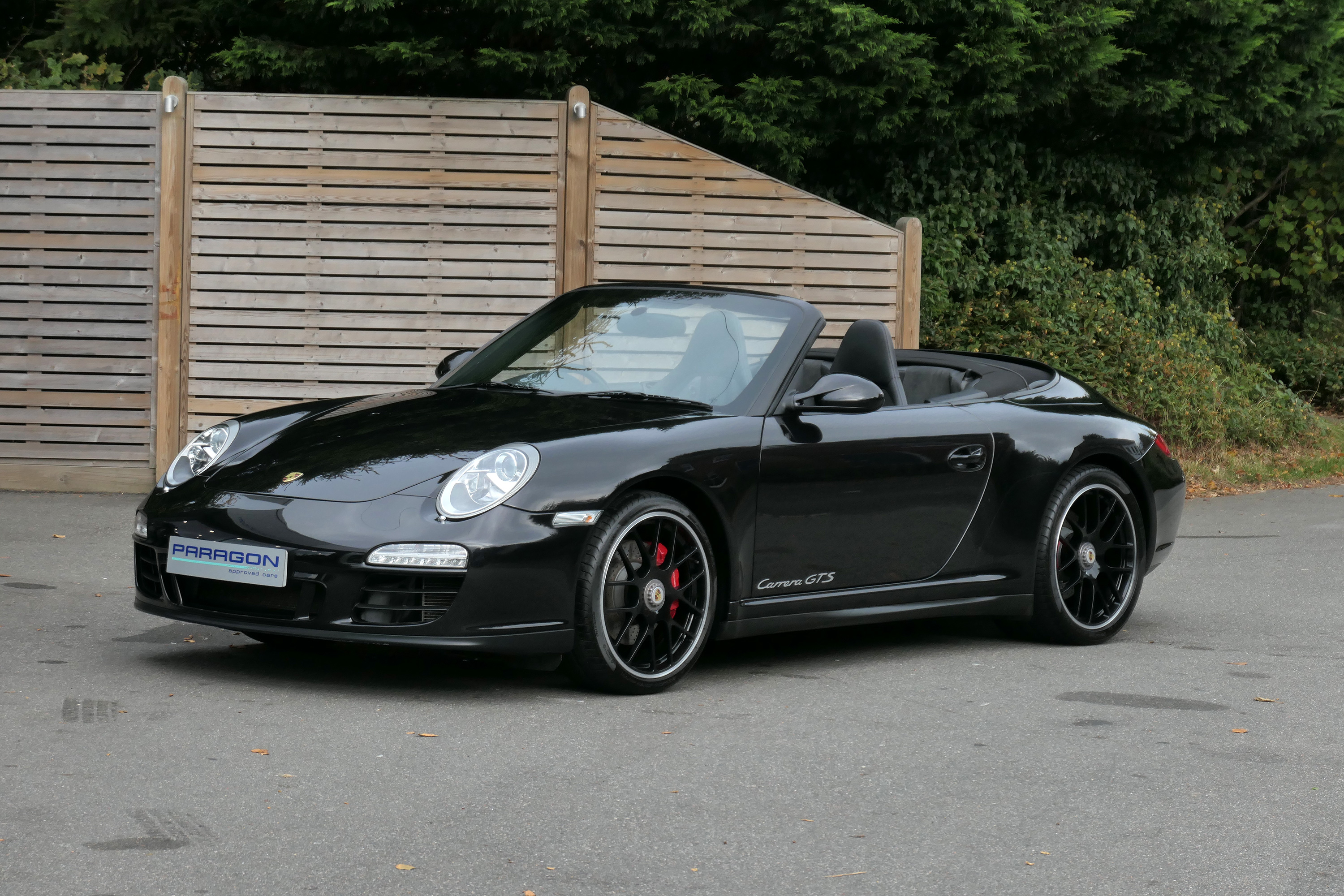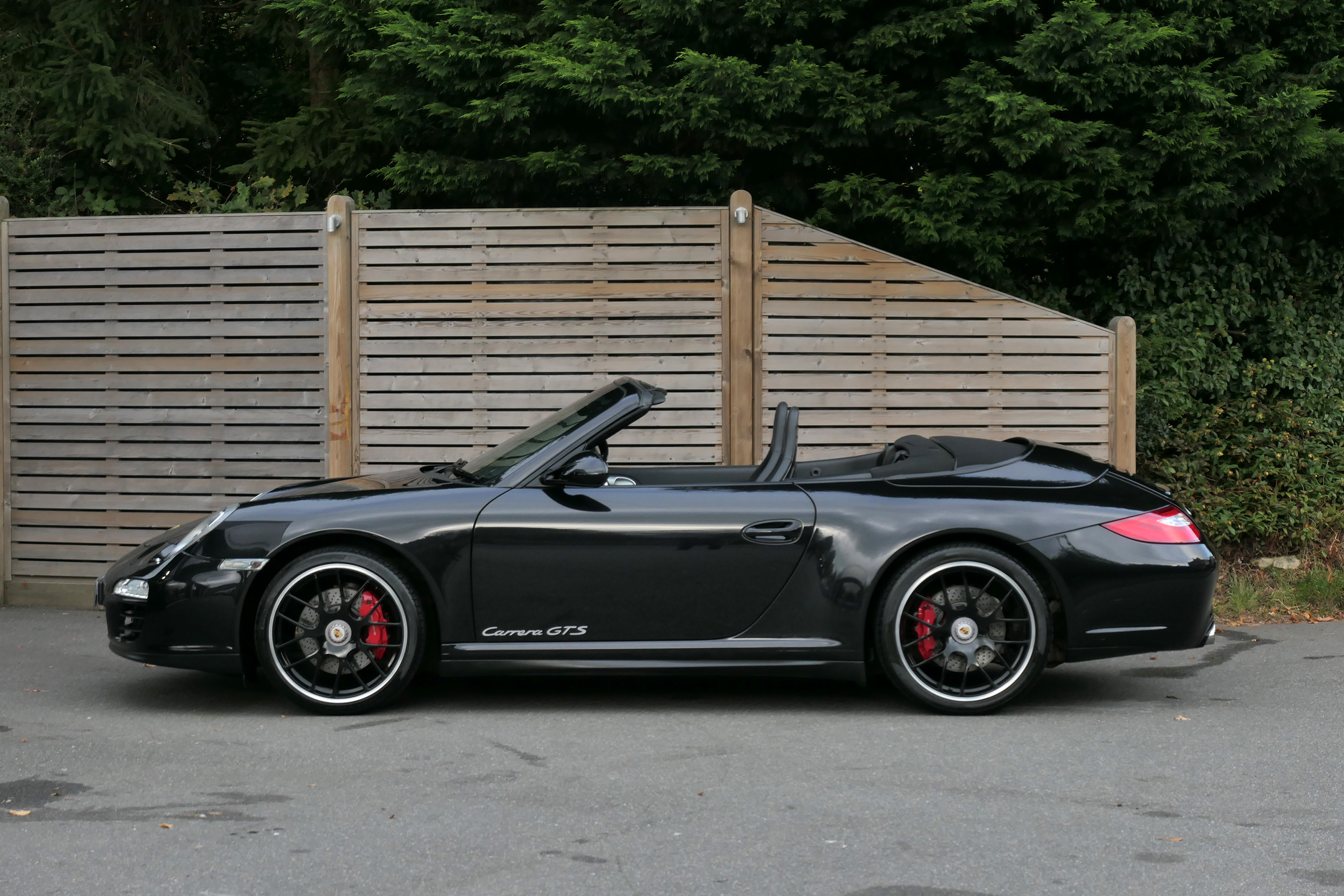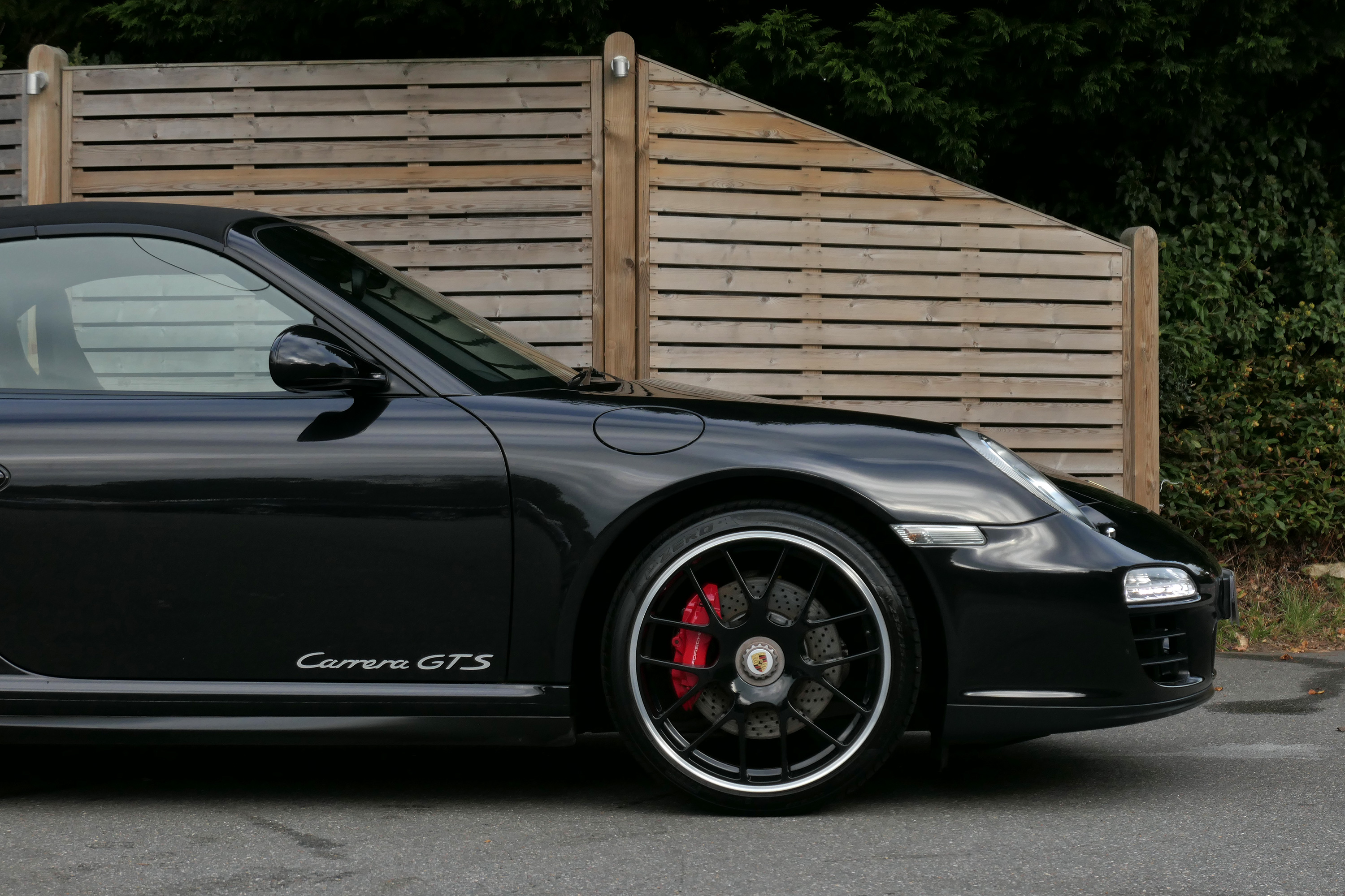 This 911 Carrera 2 GTS Cabriolet (997) has the 7-speed PDK gearbox and is presented in Basalt Black with black half leather bucket seats and a black power hood.