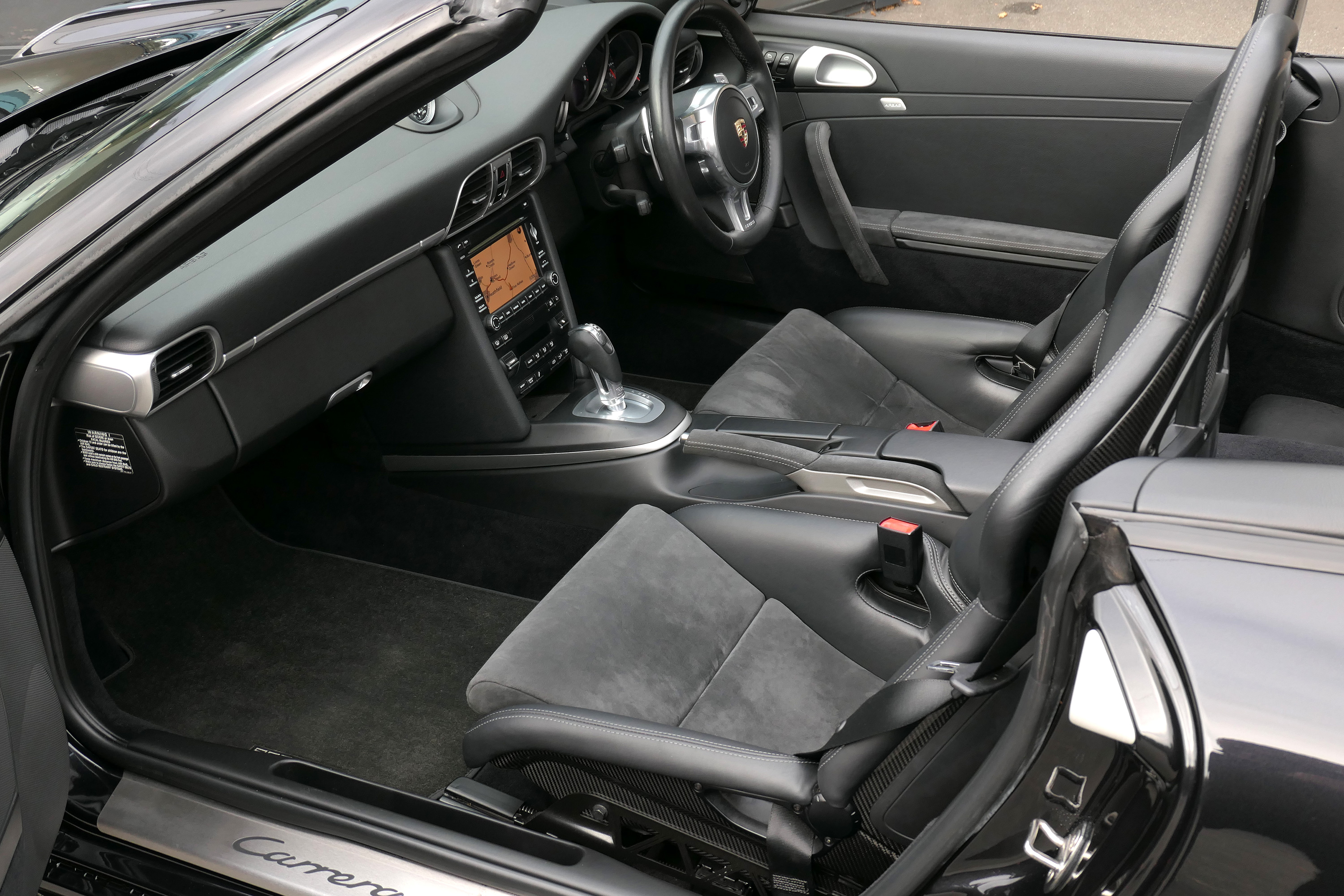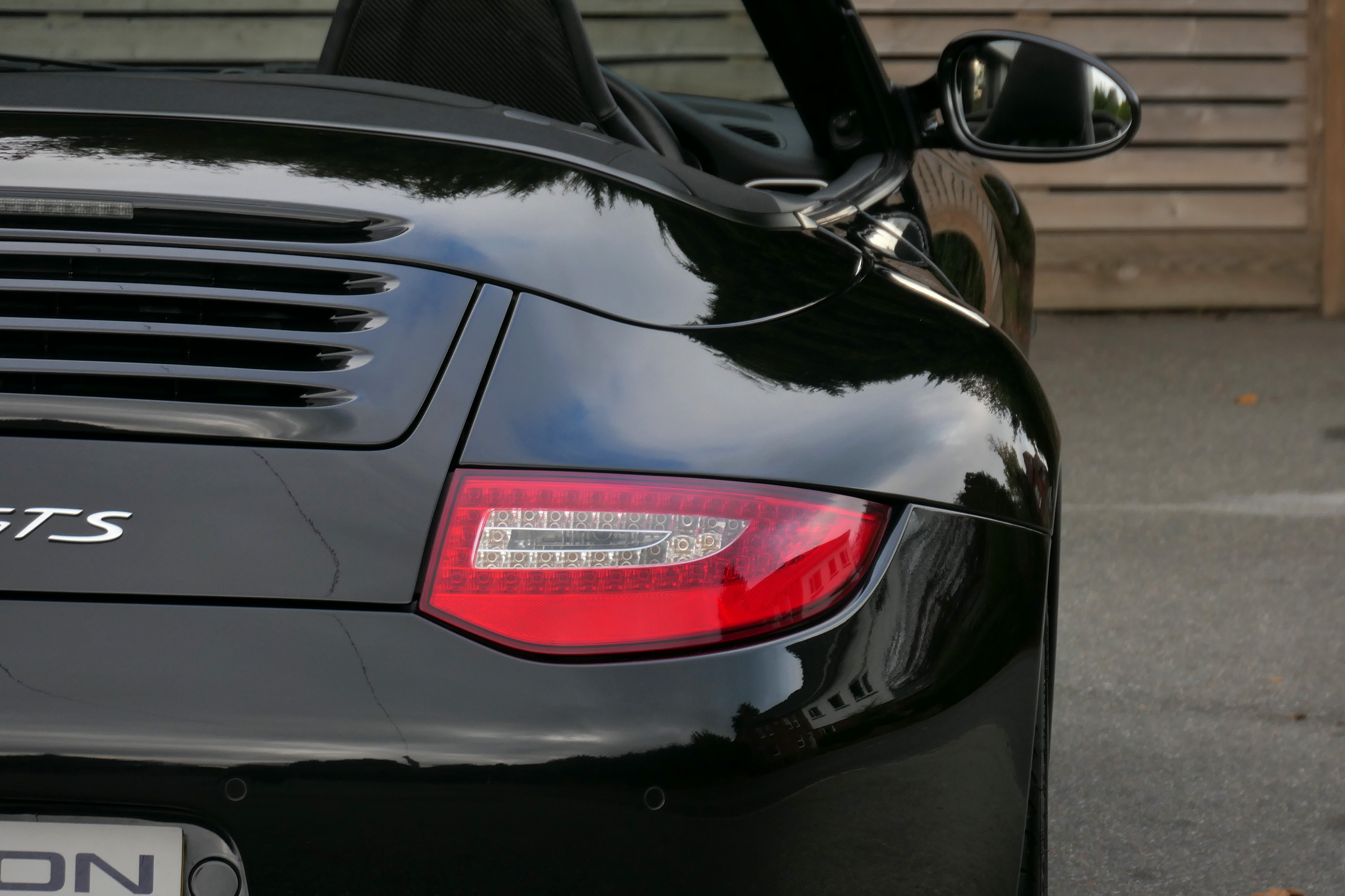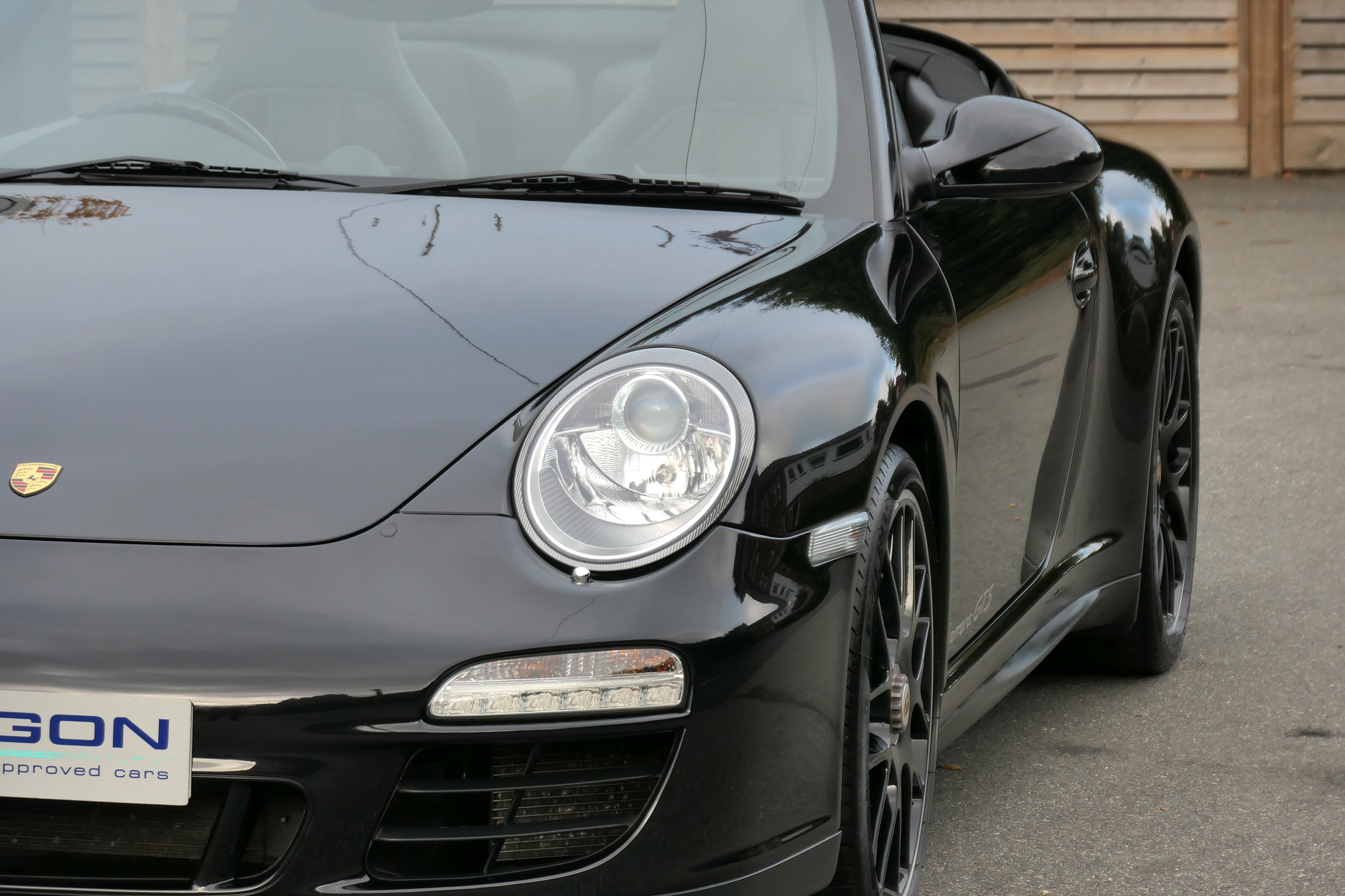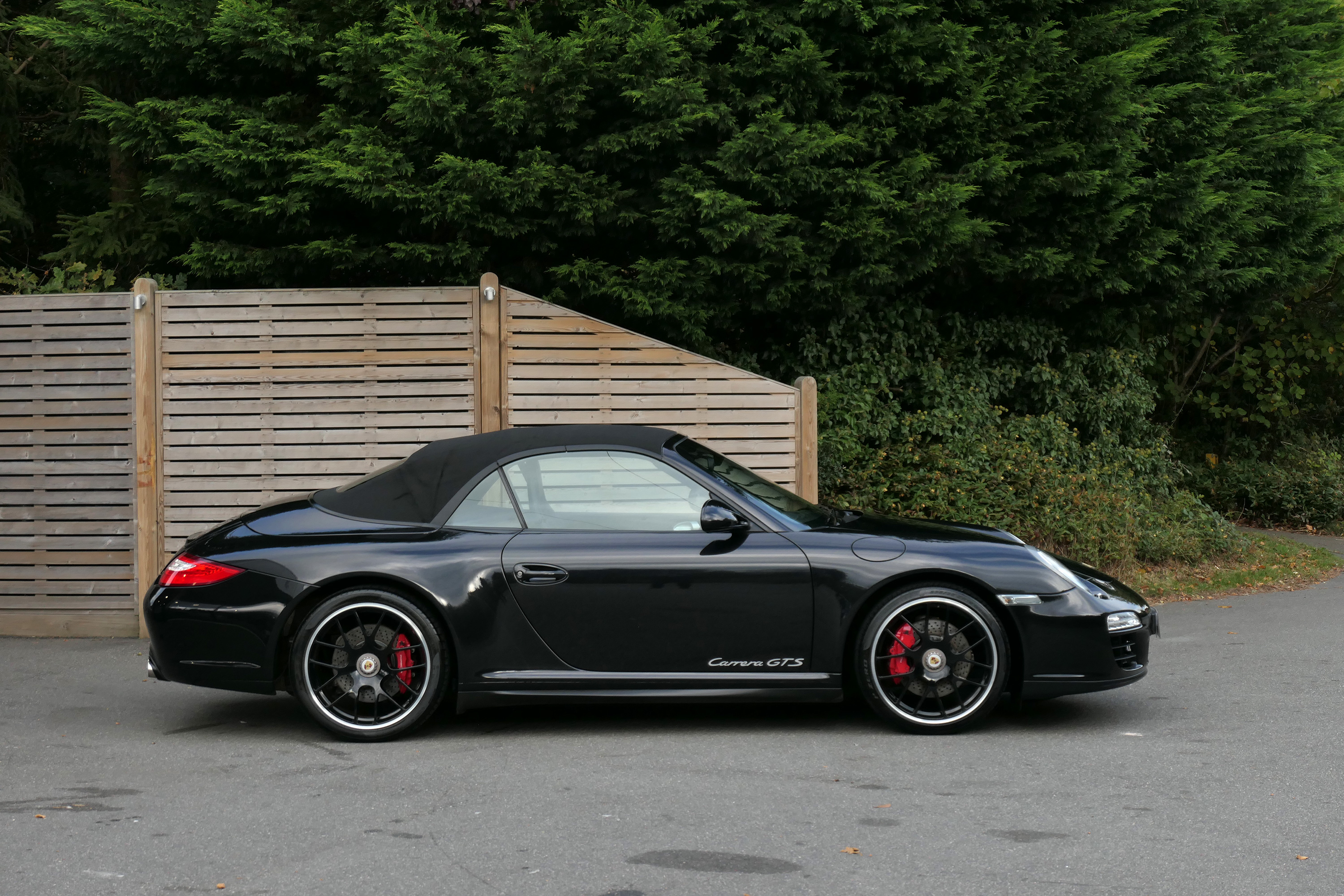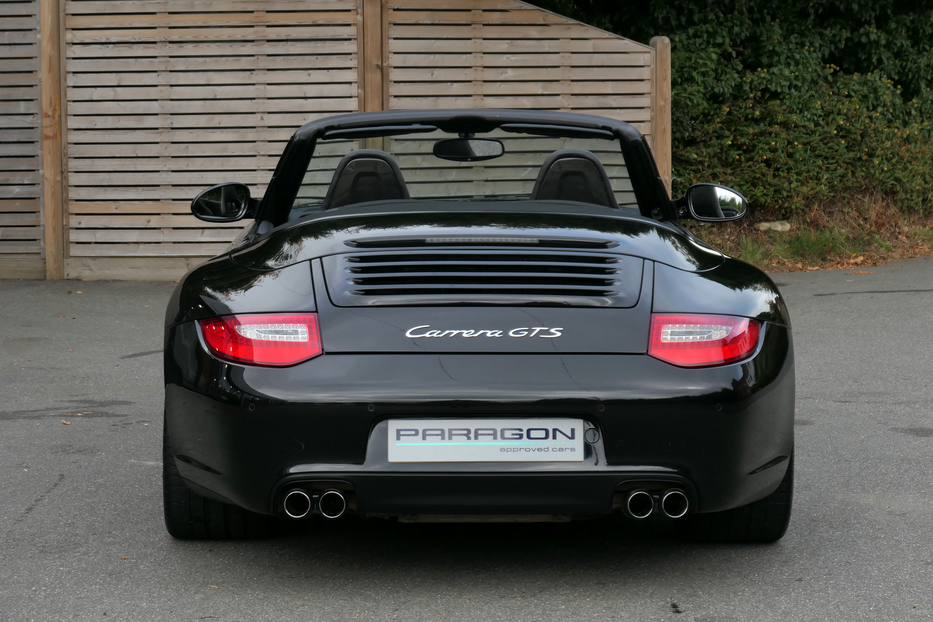 This 911 Carrera 2 GTS Cabriolet (997) has the 7-speed PDK gearbox and is presented in Basalt Black with black half leather bucket seats and a black power hood.