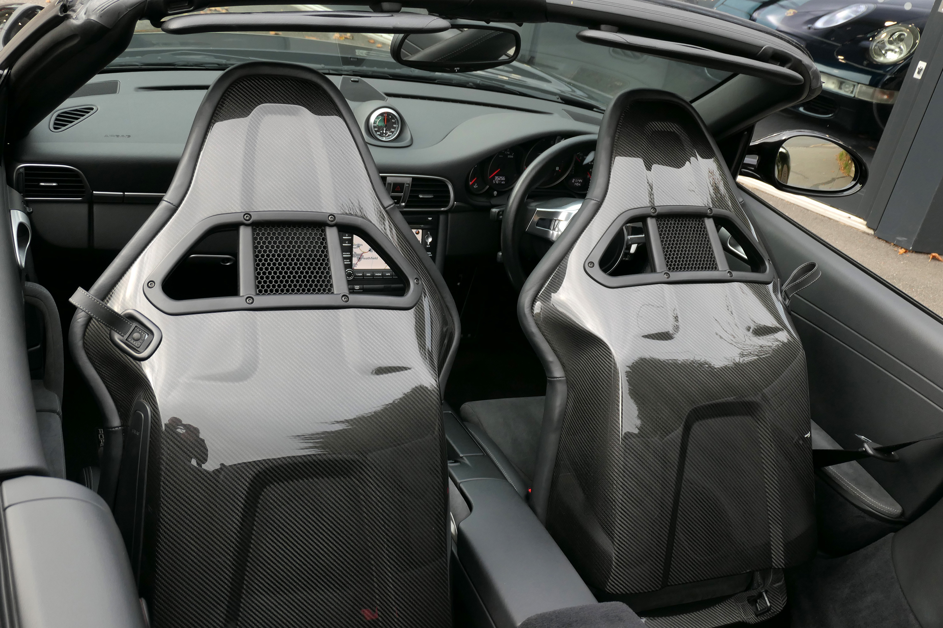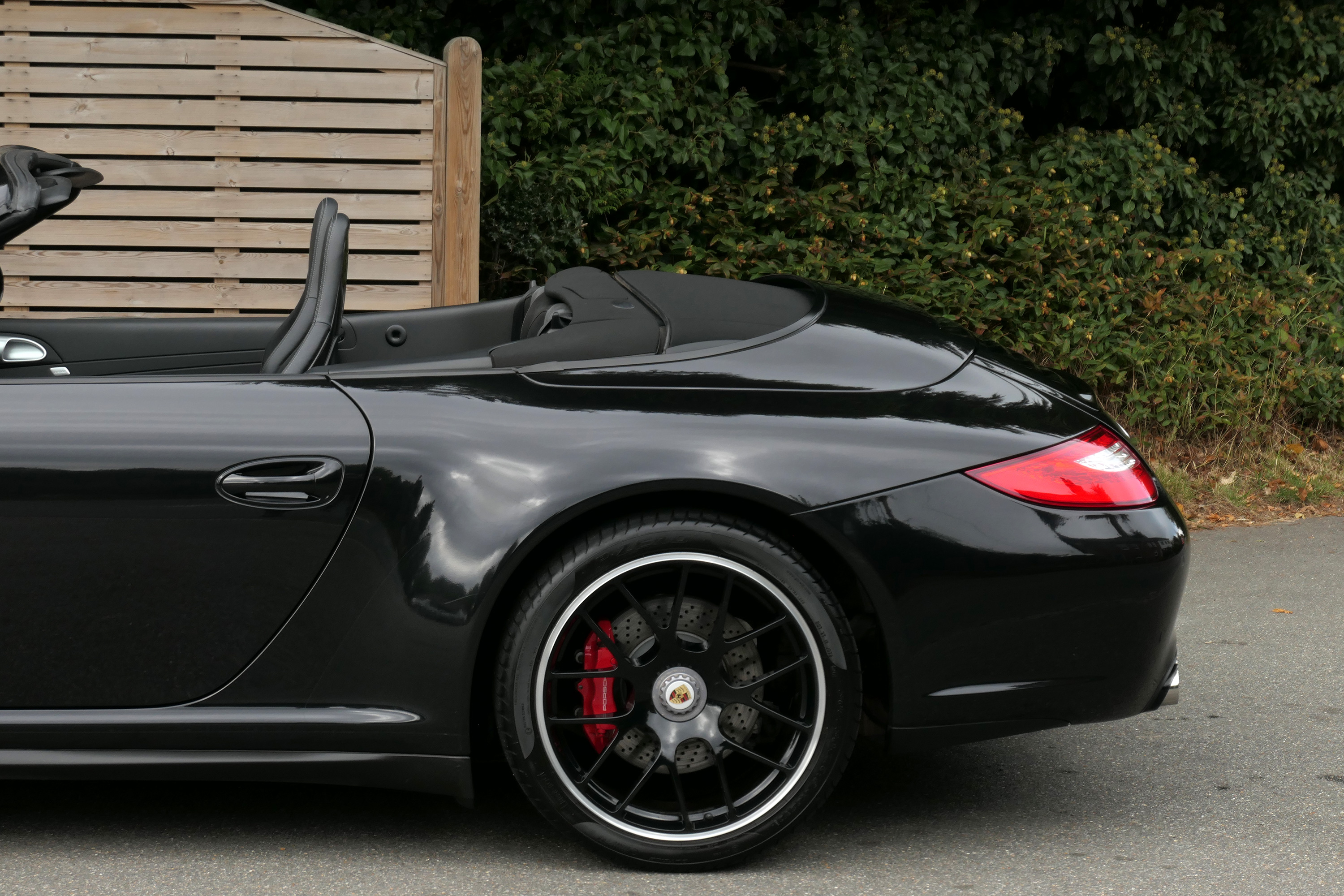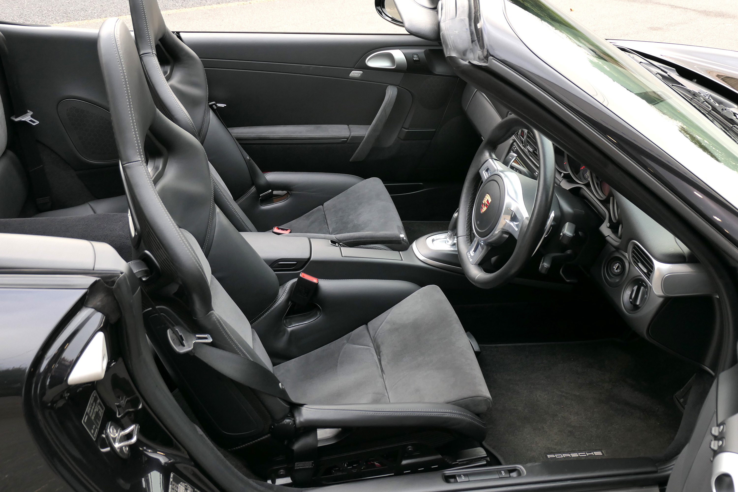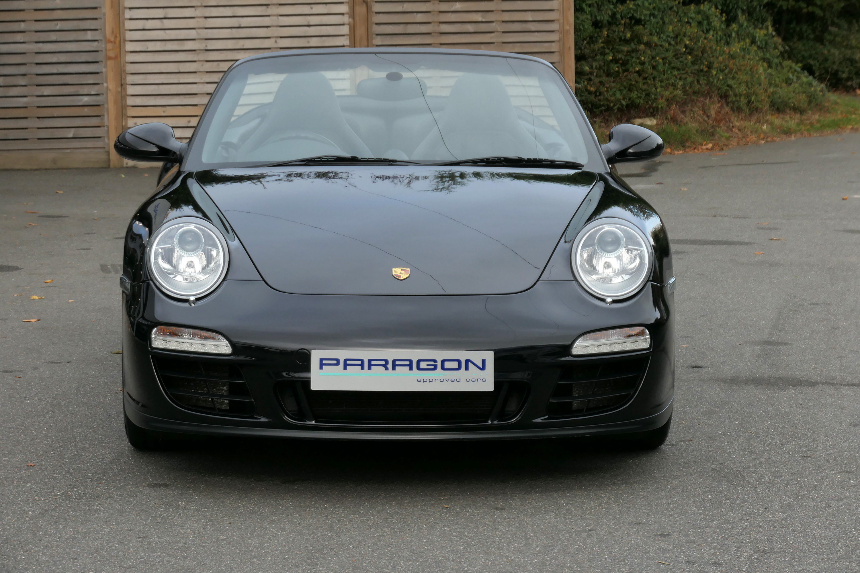 This 911 Carrera 2 GTS Cabriolet (997) has the 7-speed PDK gearbox and is presented in Basalt Black with black half leather bucket seats and a black power hood.