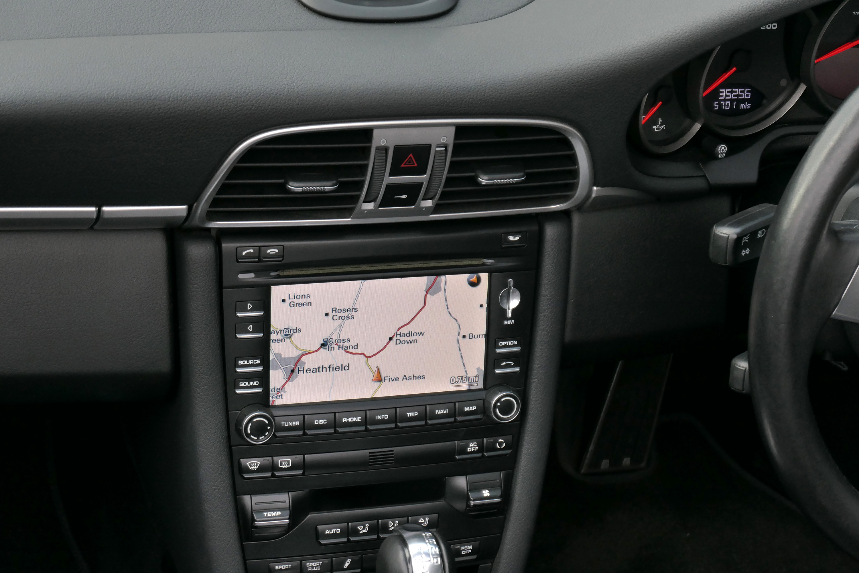 The 3.8 litre flat six direct fuel injection engine with factory power kit develops 408 bhp and standard features include air conditioning, Porsche Active Suspension Management & Porsche Stability management, 19" centre lock wheels, GTS stainless steel door entry guards, a switchable sports exhaust, touchscreen satellite navigation, the Porsche Sound Pack Plus, an onboard computer, LED daytime running lights and Bi-Xenon headlights.