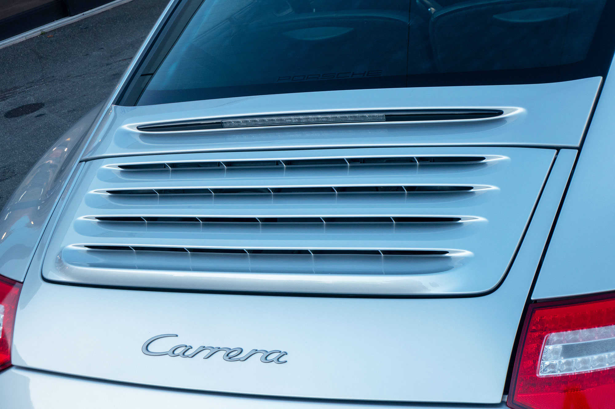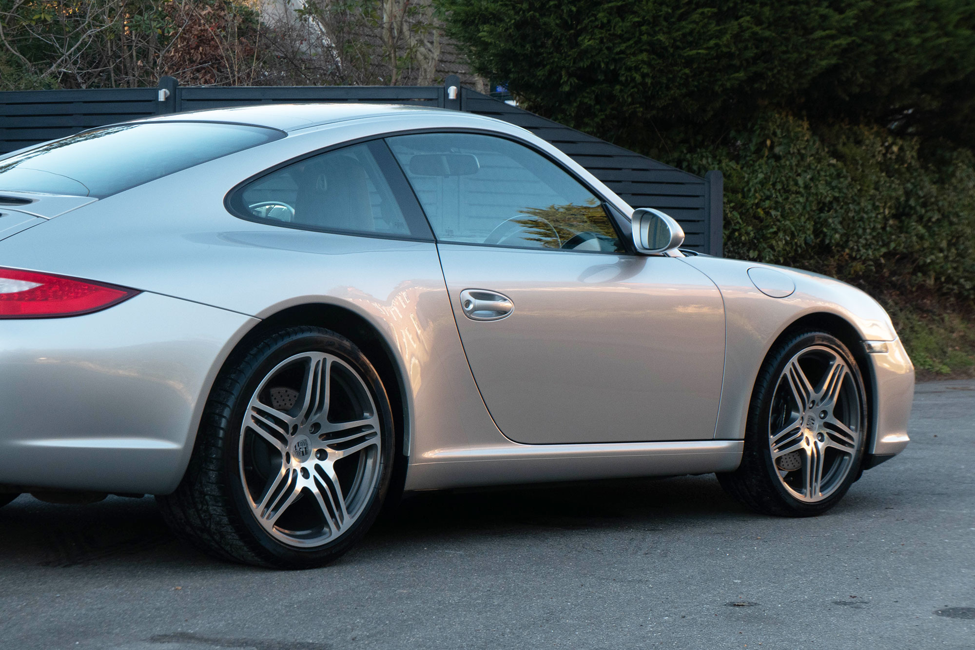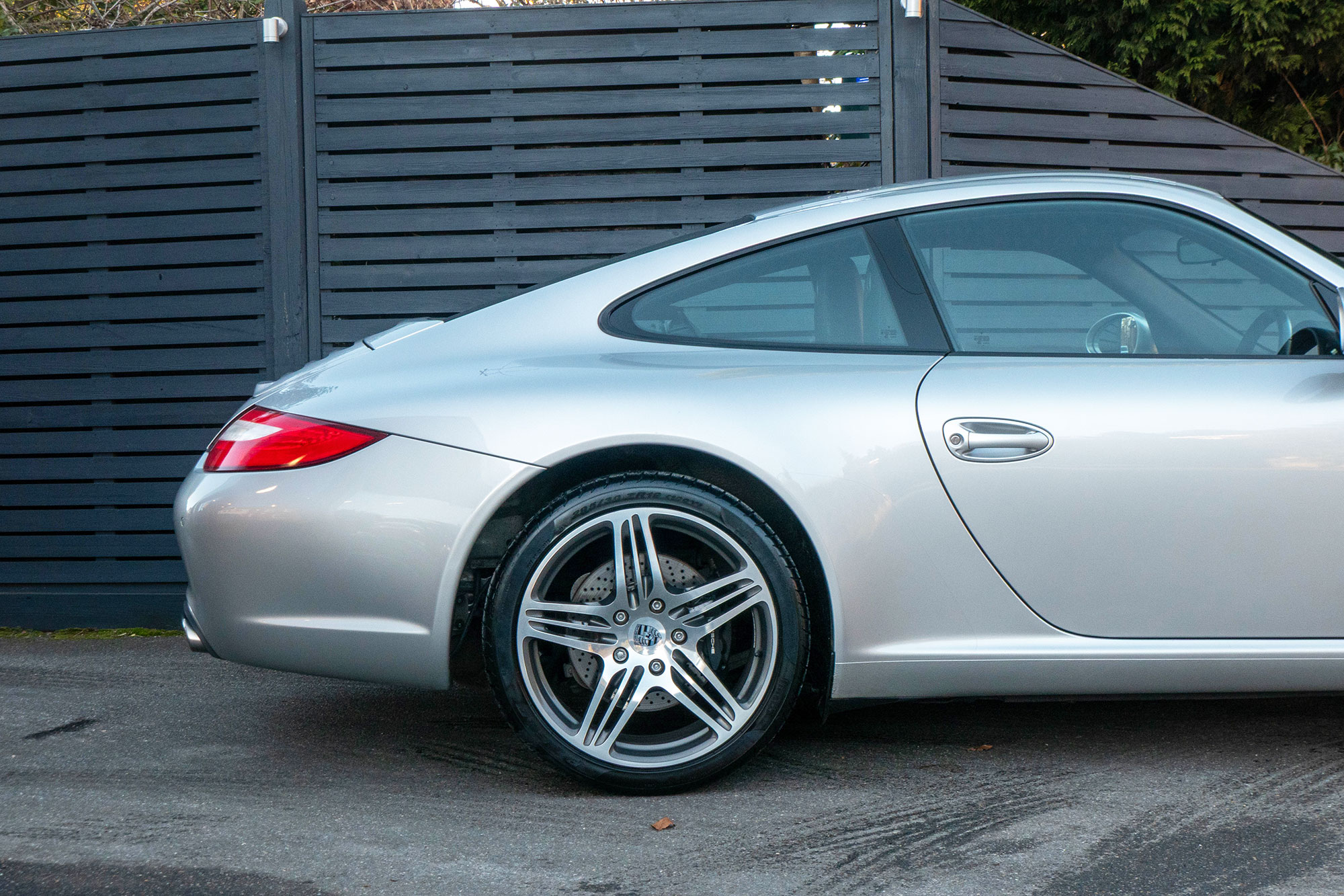 This 911 Carrera 2 Coupe (997.2) has the 6-speed manual gearbox and is presented in Arctic Silver with black leather seats.
