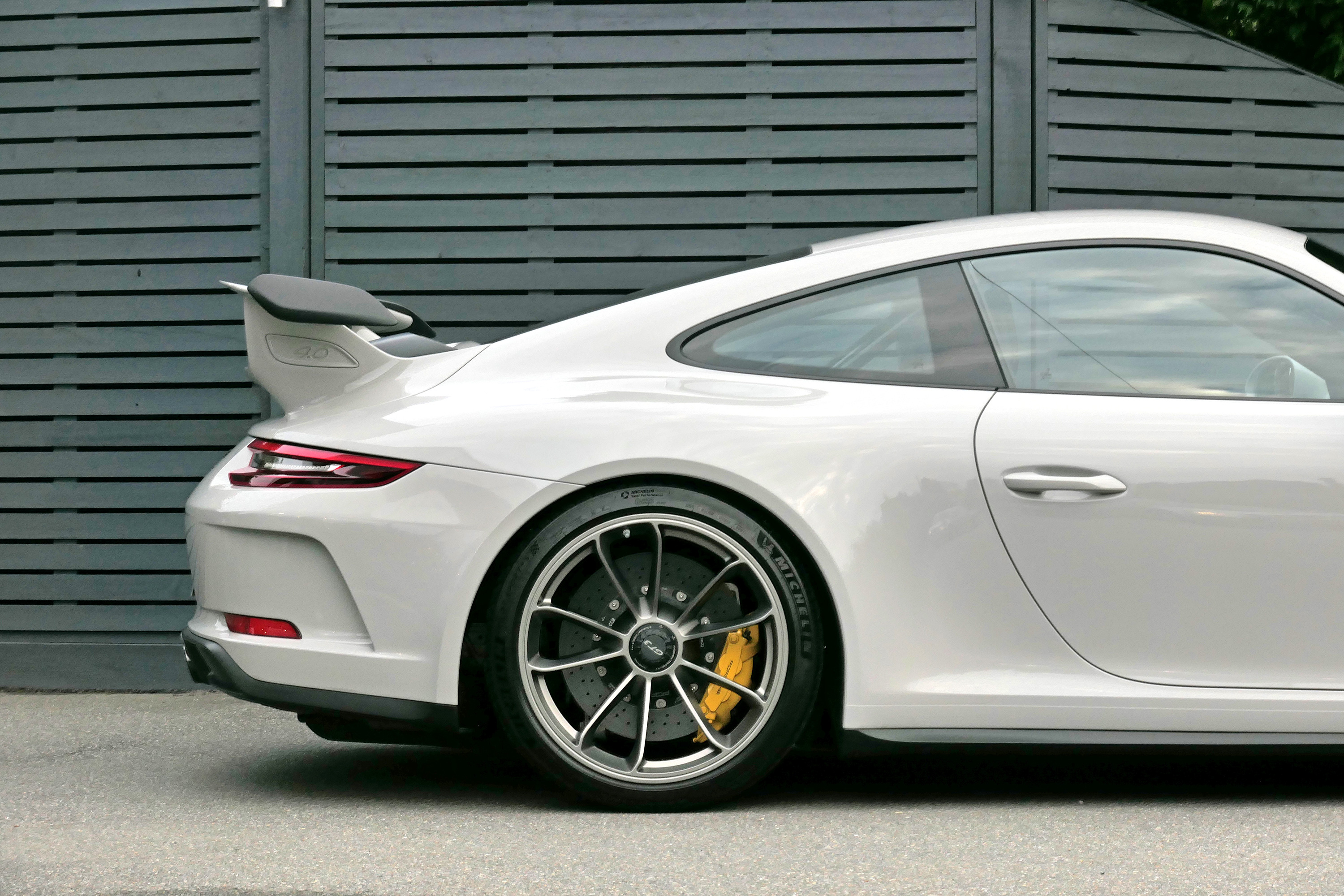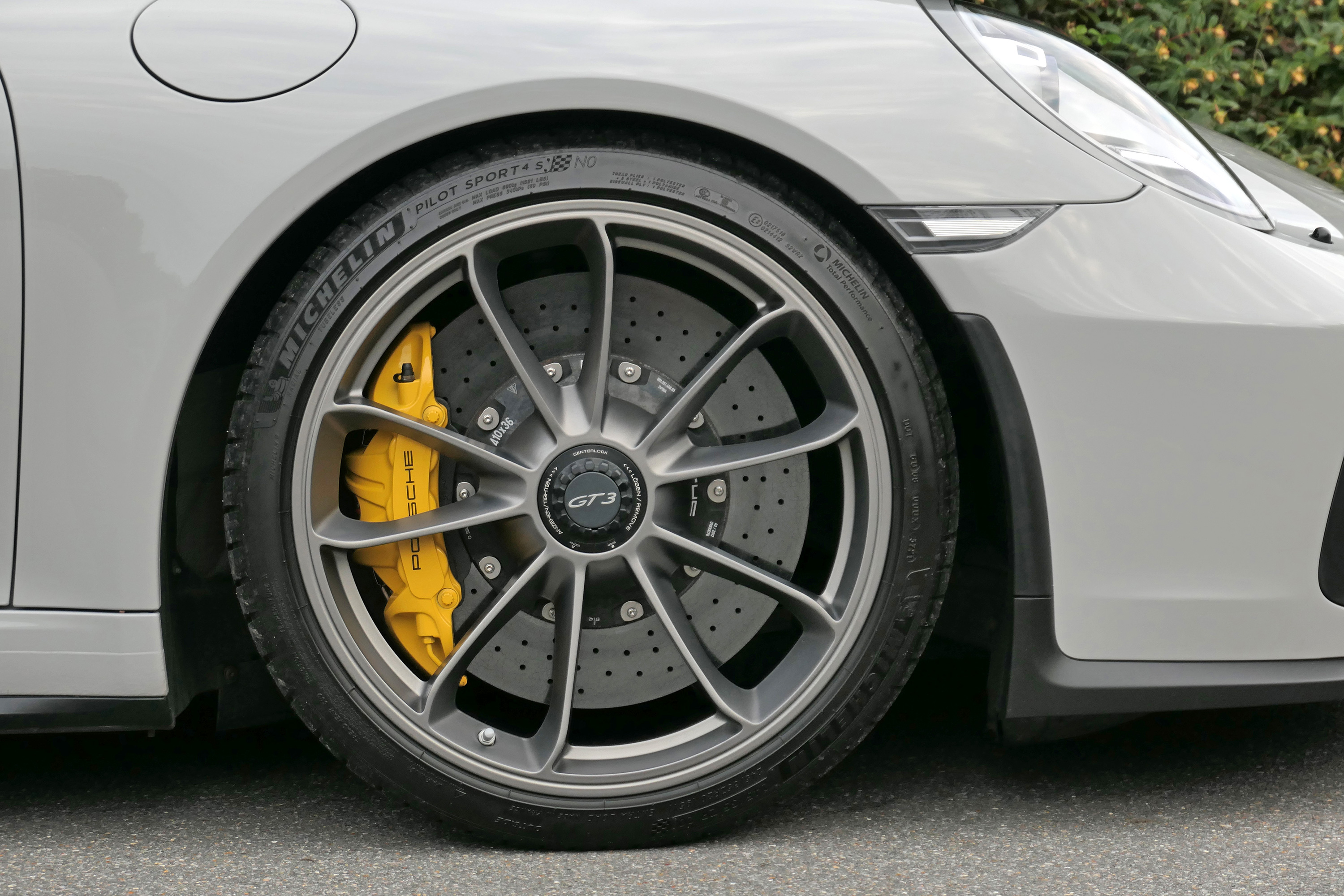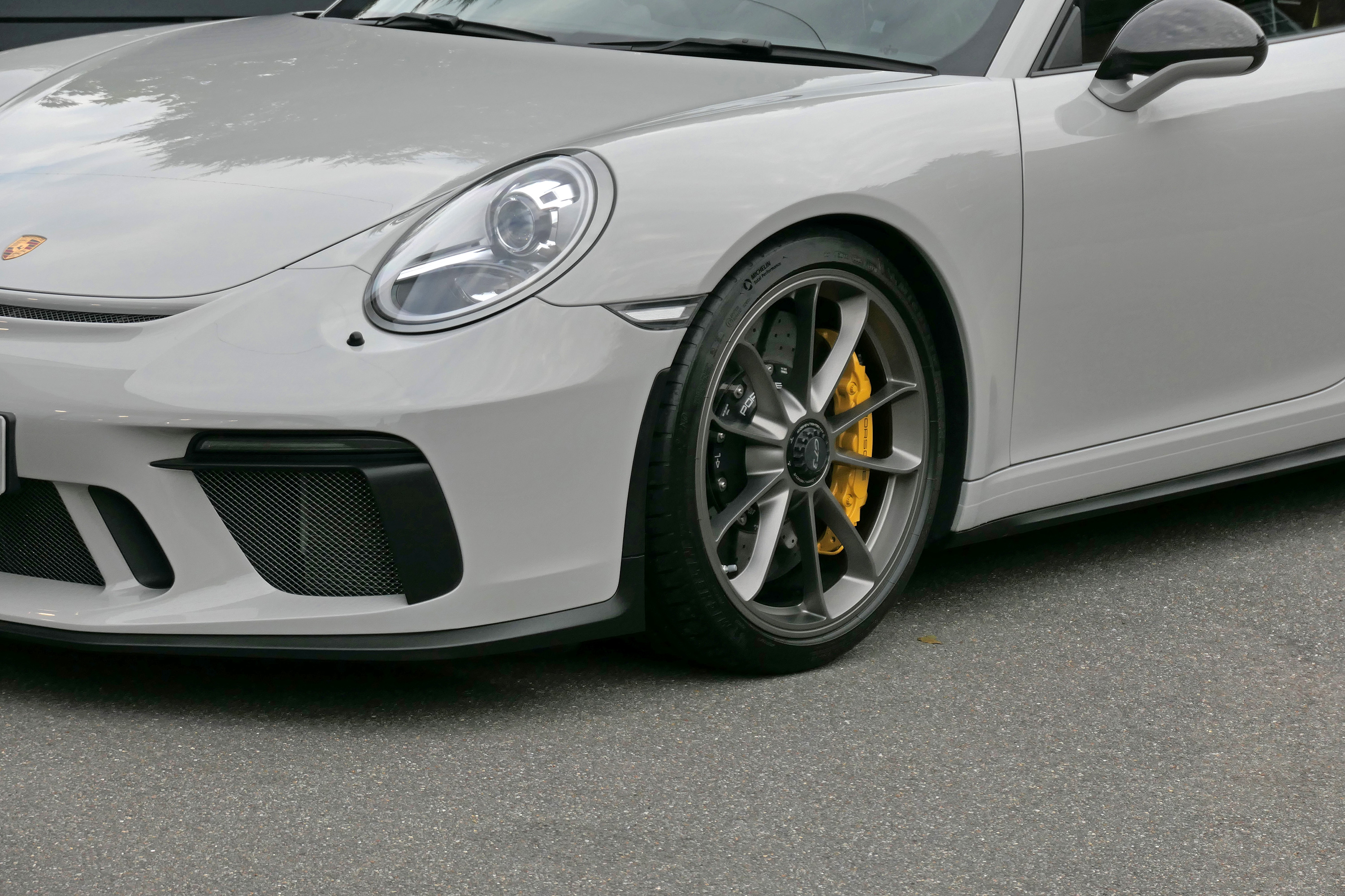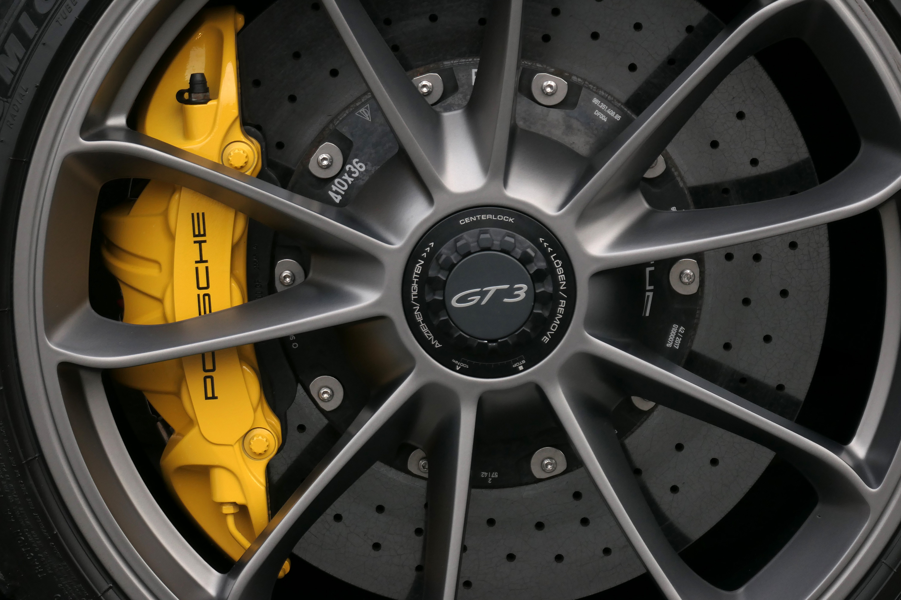 Factory-fitted options include Porsche Ceramic Composite Brakes, the Black Leather Interior Pack, Sport Design mirrors with carbon upper sections, the fuel filler cap in aluminium, the Clubsport pack, front axle lift, the Sport Chrono Pack with lap trigger, the 12 o'clock marking in red, 918 bucket seats with Porsche Exclusive Manufaktur houndstooth seat inserts, the chrono clock finished in white, Racing Yellow seat belts, the sun visors in Alcantara, the storage compartment lid in Alcantara and the Brushed Aluminium Interior Pack.