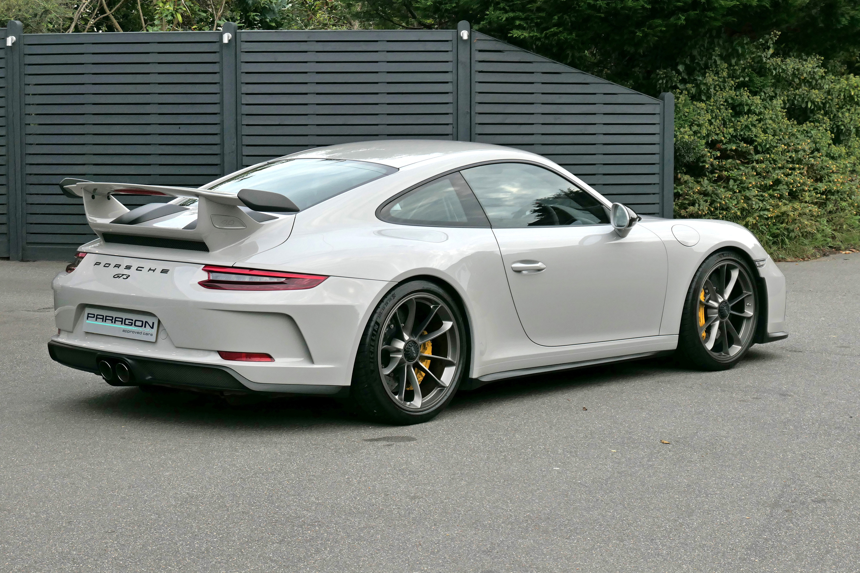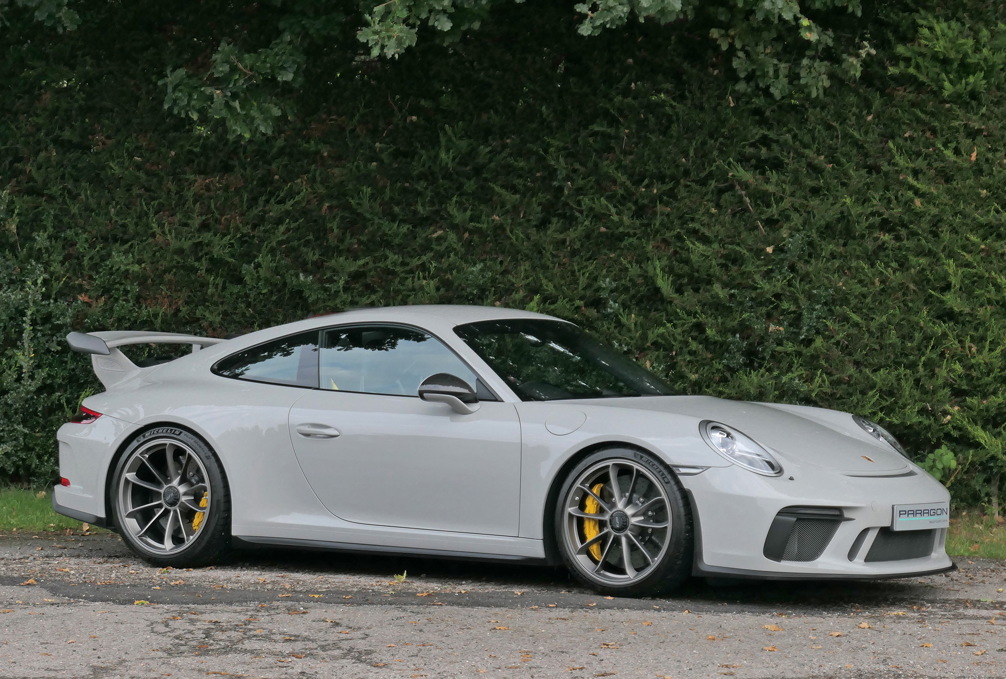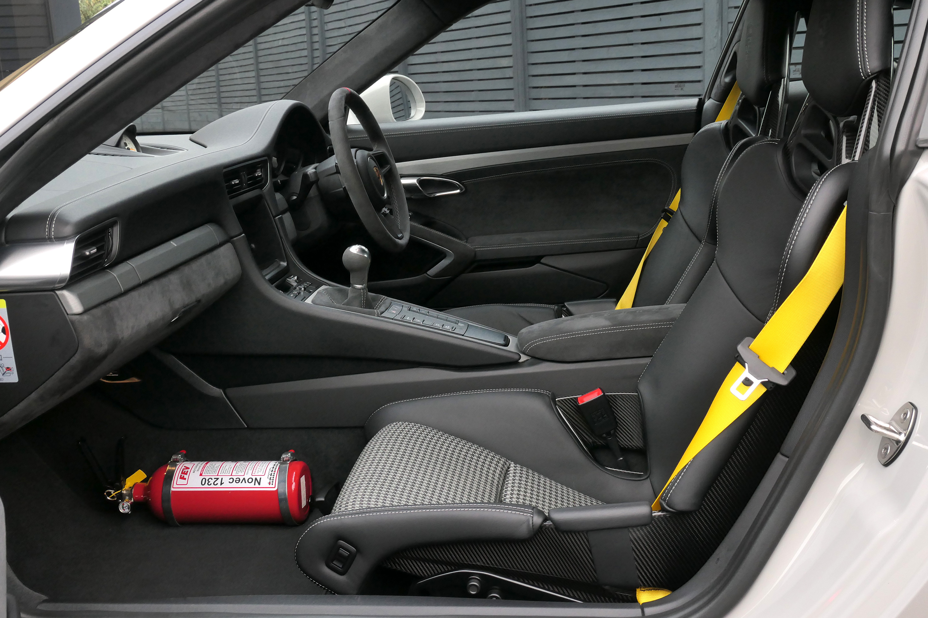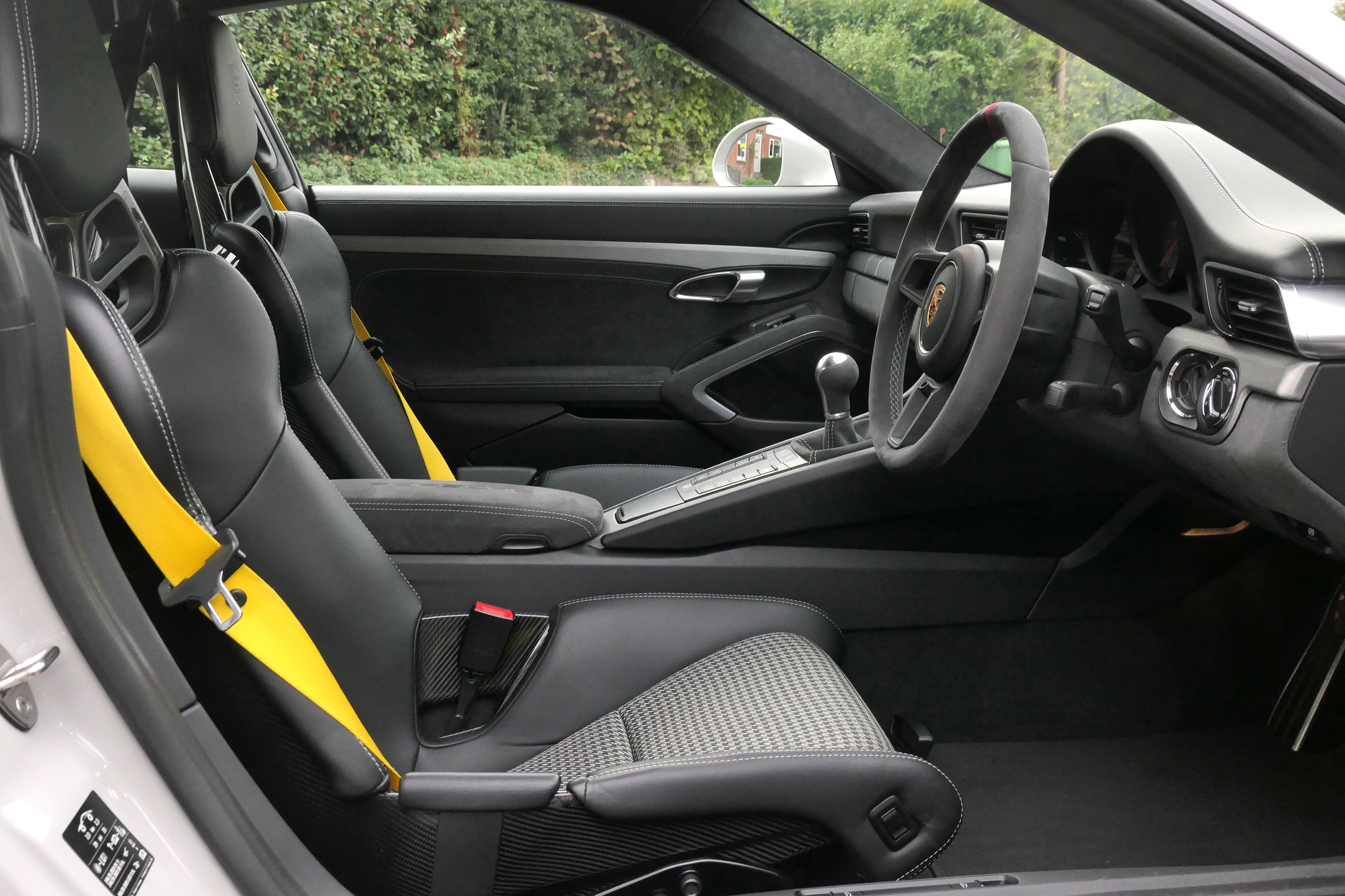 This 911 GT3 (991 GEN II) has the 6-speed manual gearbox and is presented in Crayon with black half leather 918 bucket seats.