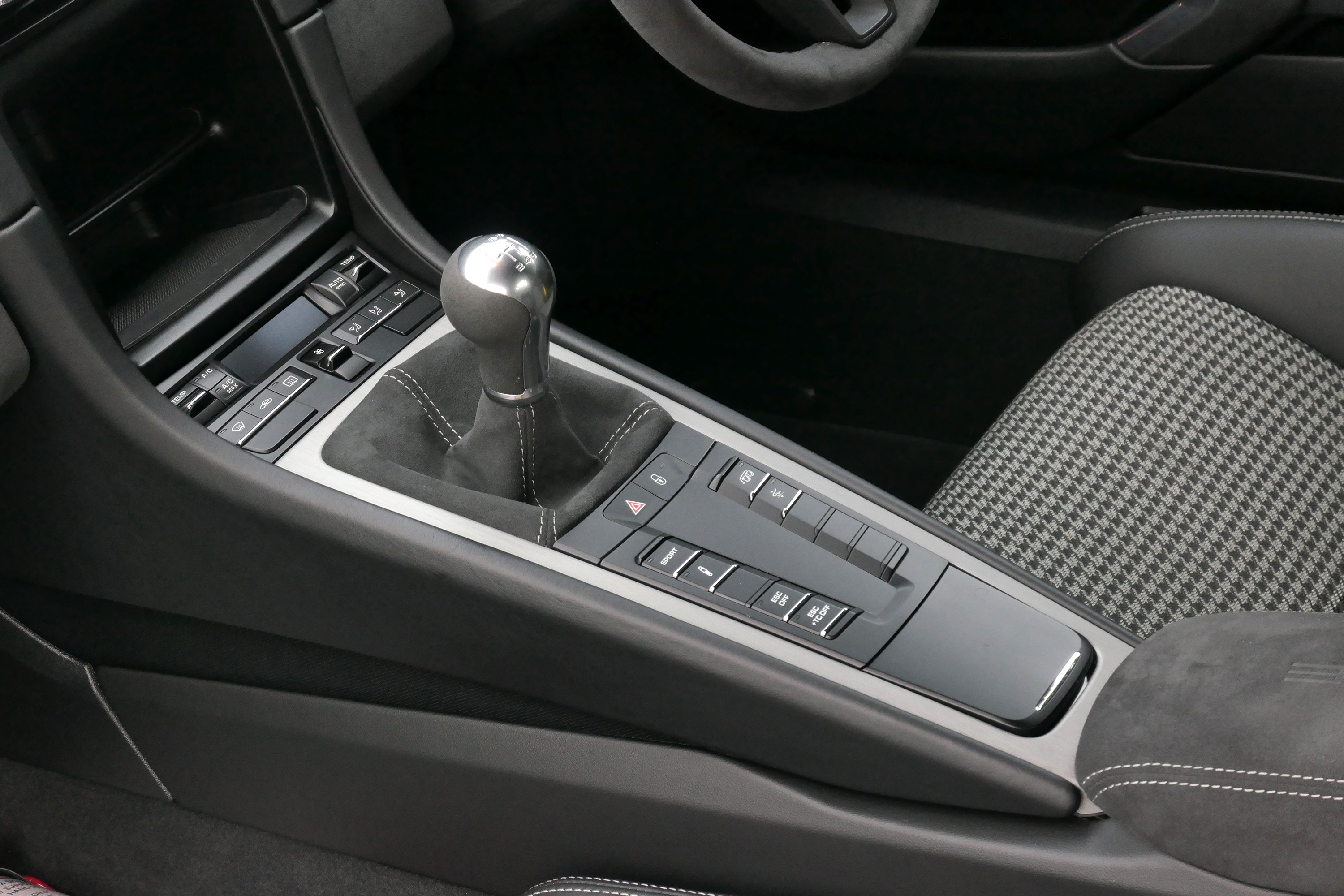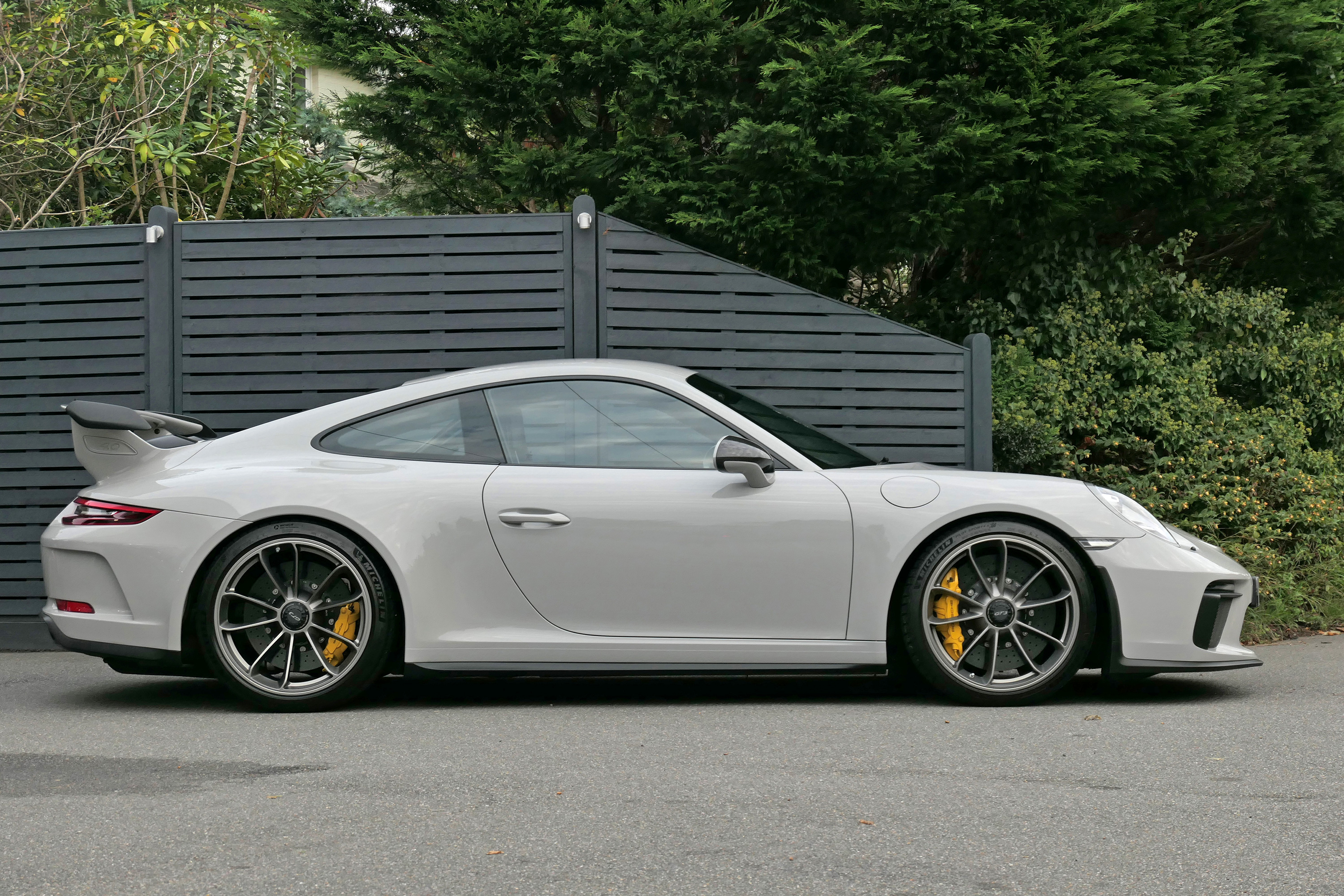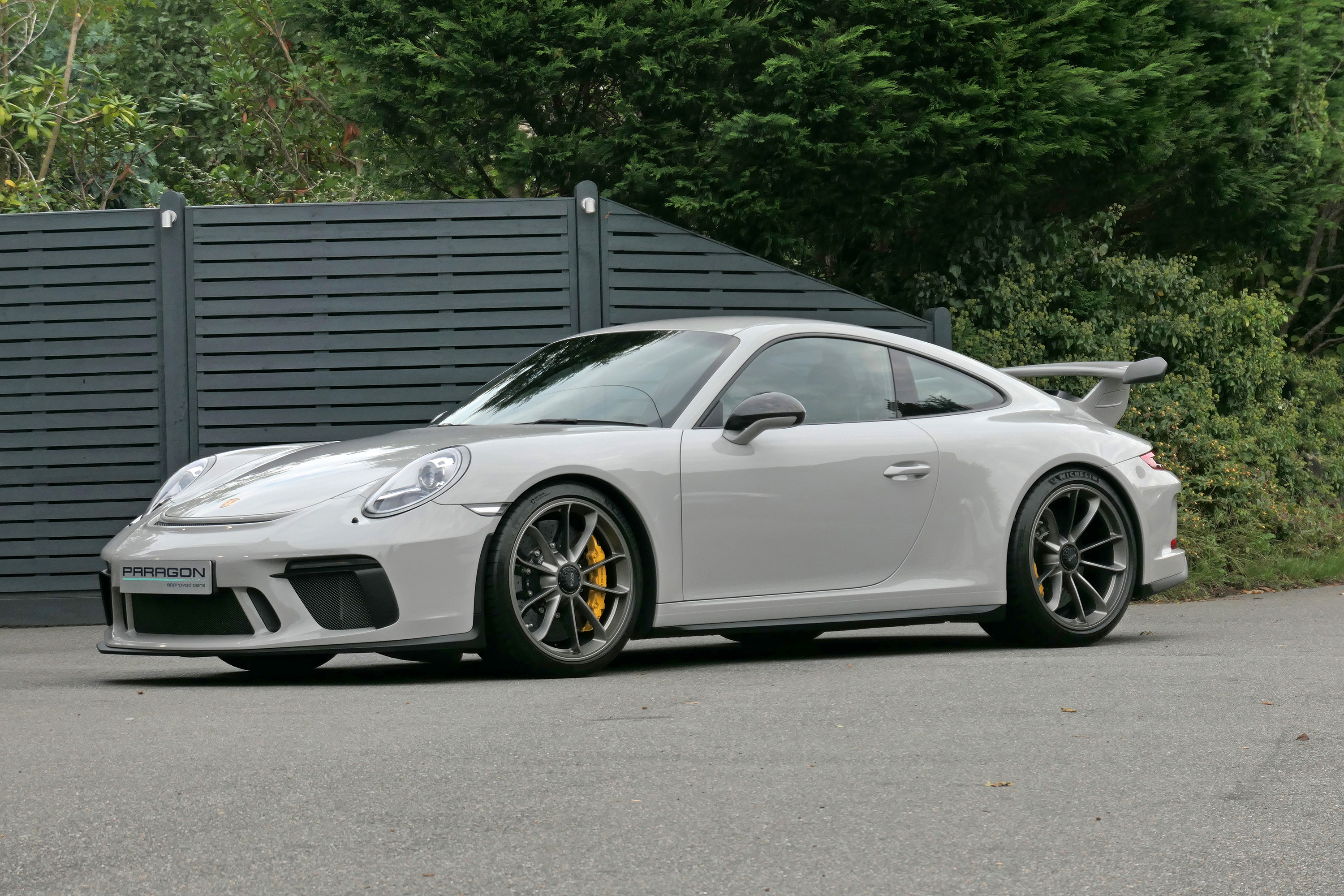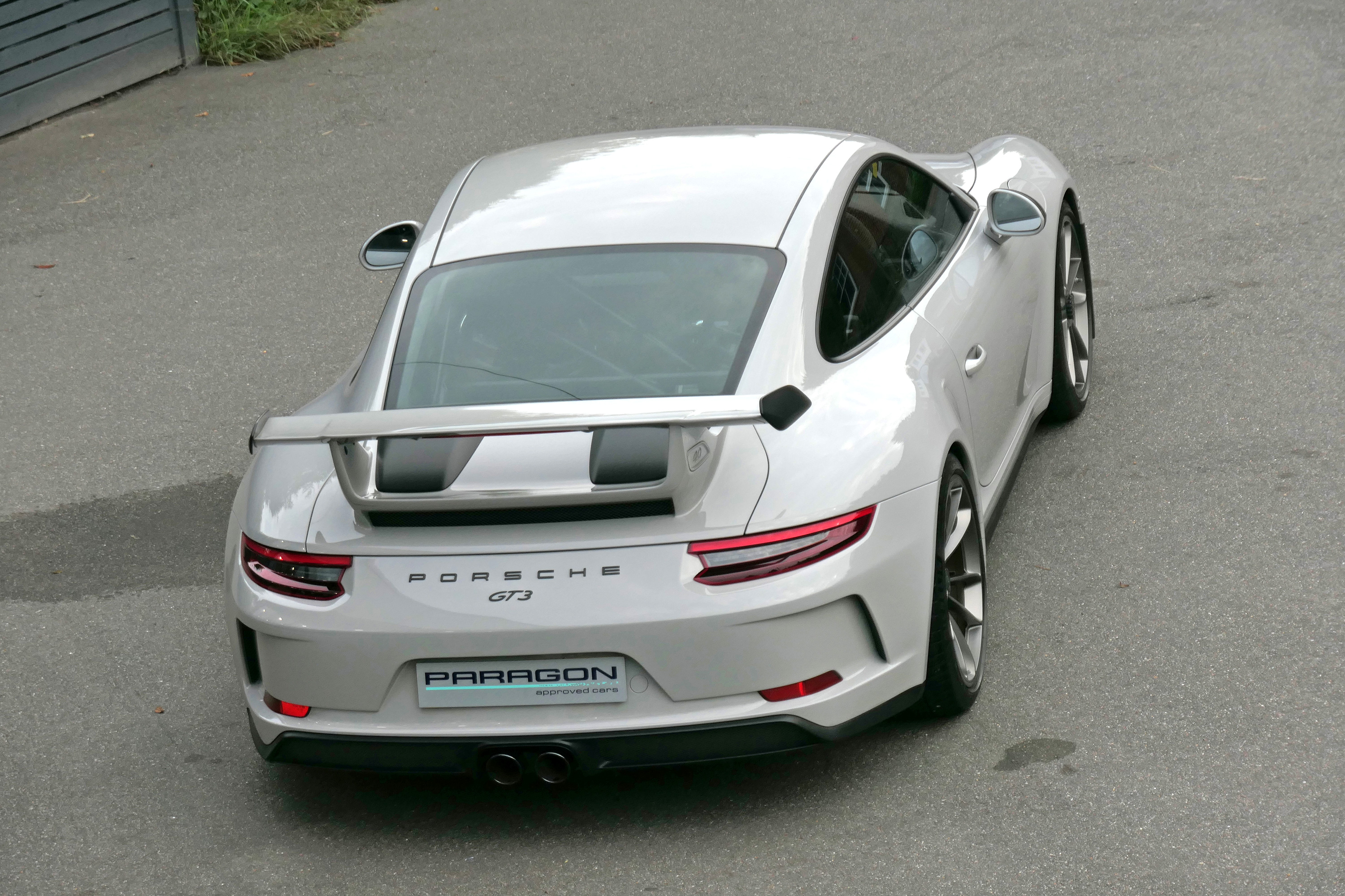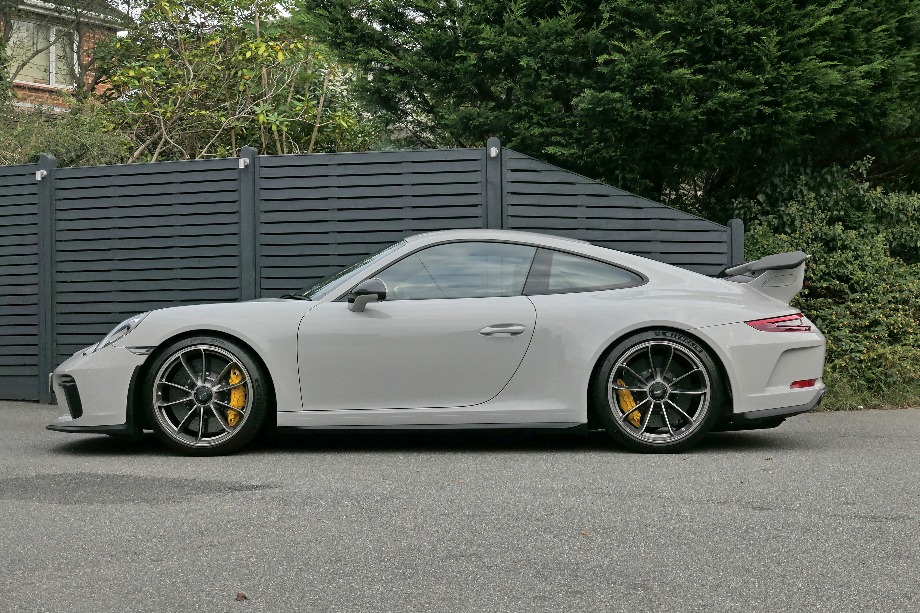This 911 GT3 (991 GEN II) has the 6-speed manual gearbox and is presented in Crayon with black half leather 918 bucket seats.