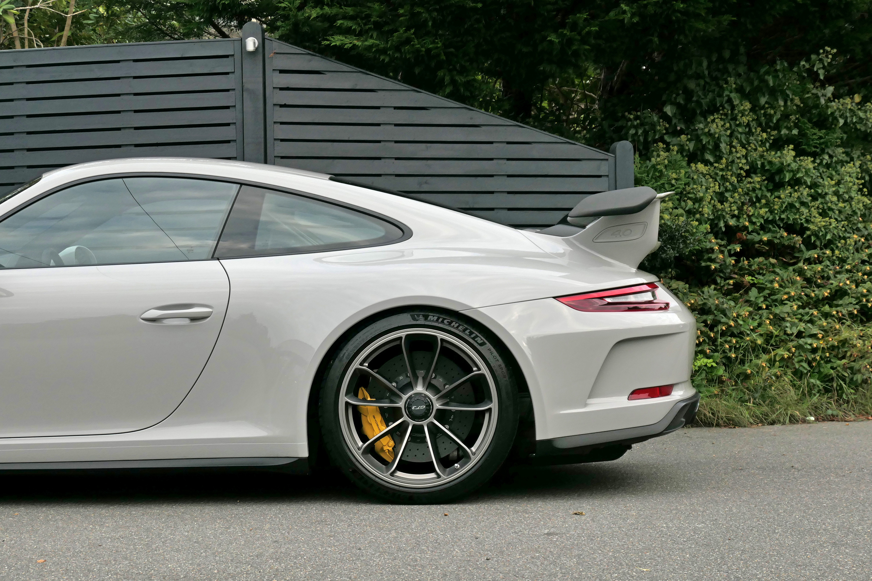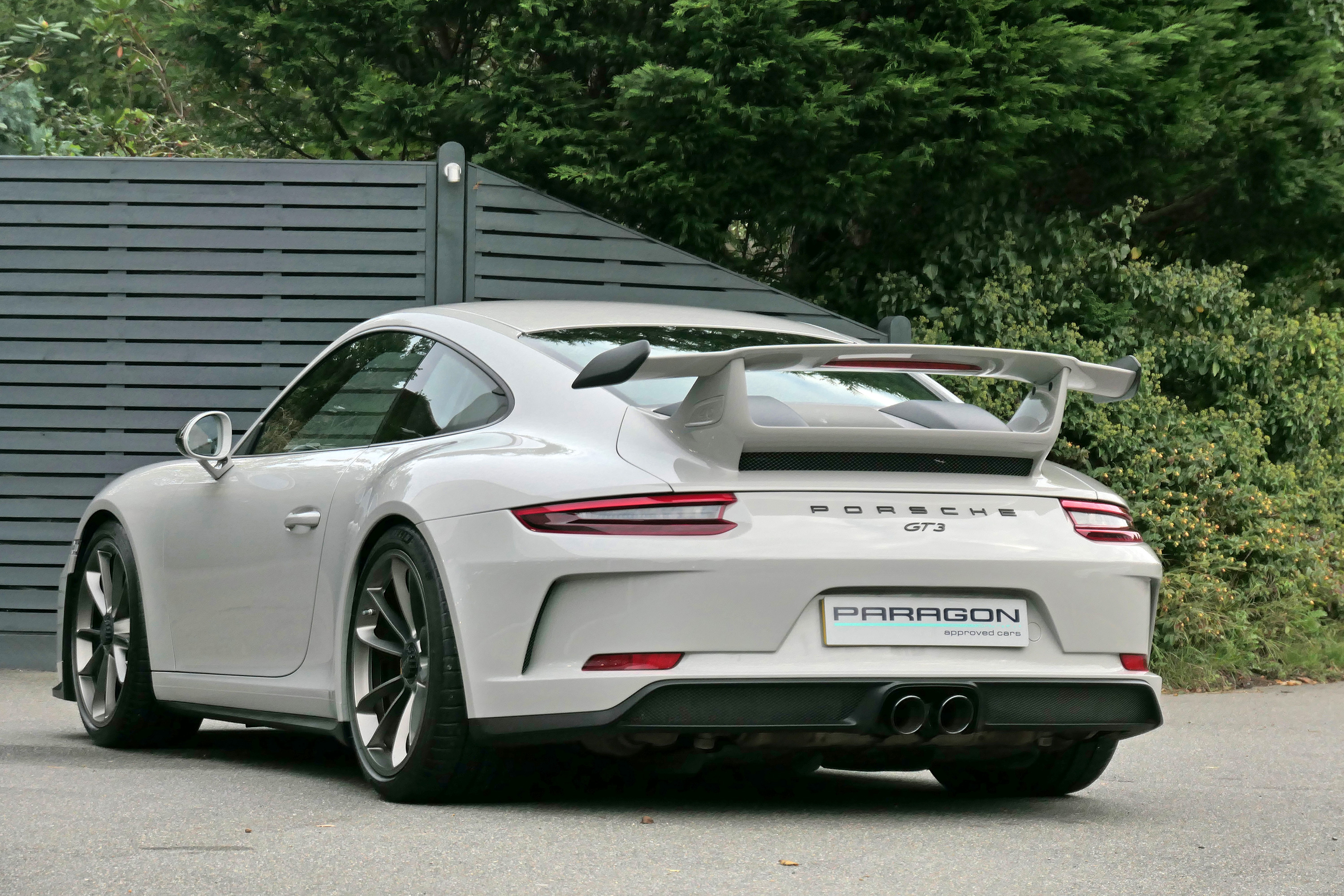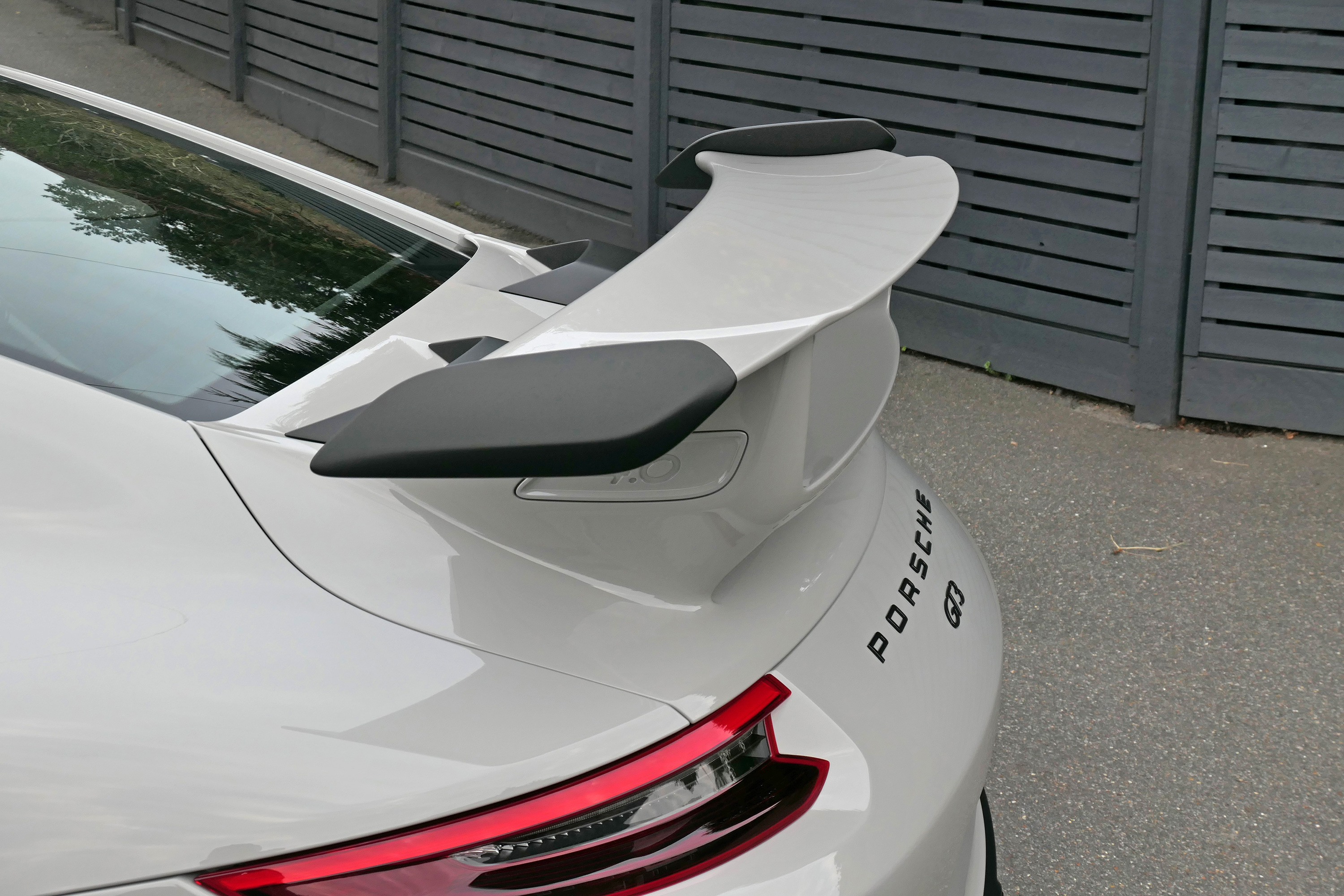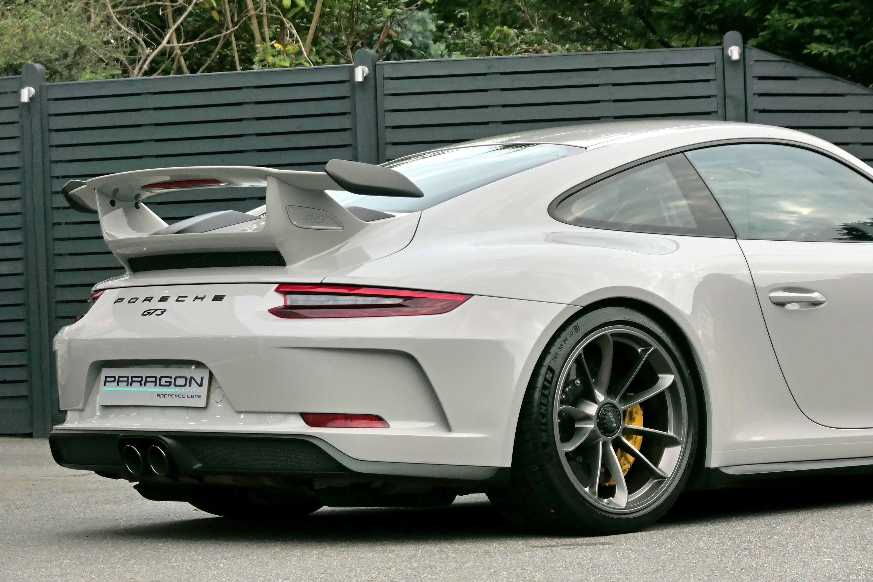 This 911 GT3 (991 GEN II) has the 6-speed manual gearbox and is presented in Crayon with black half leather 918 bucket seats.