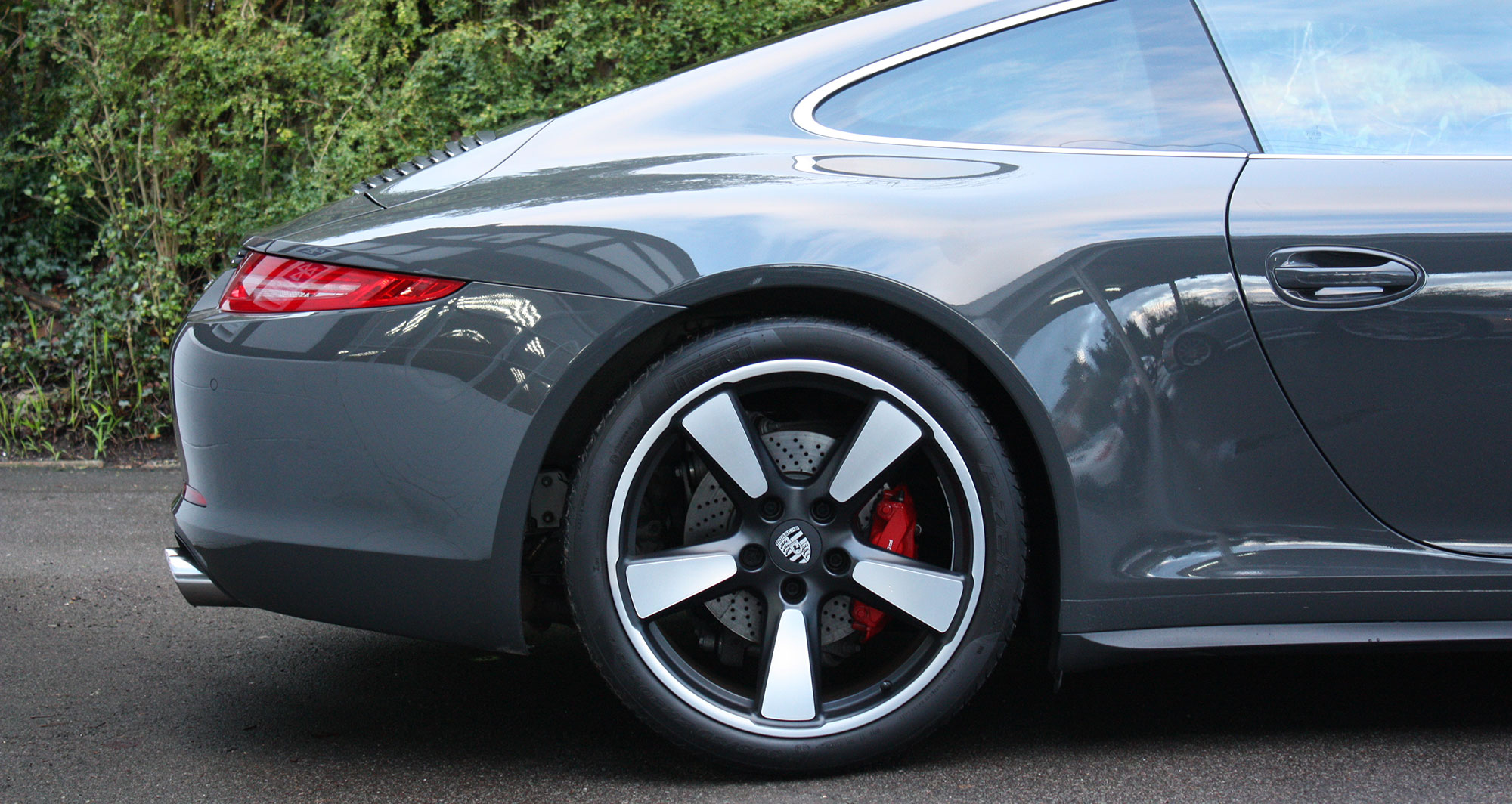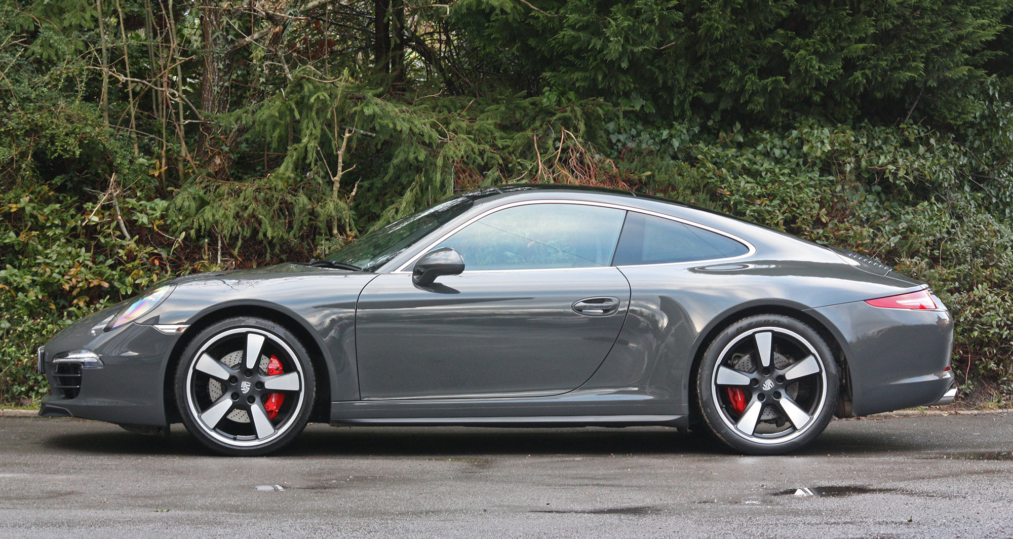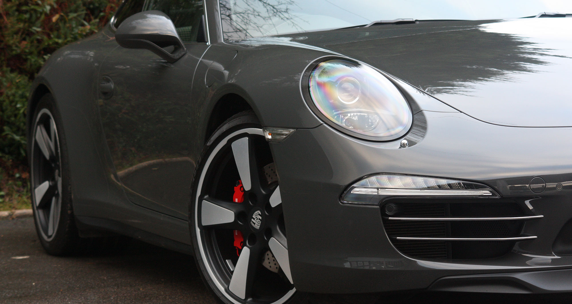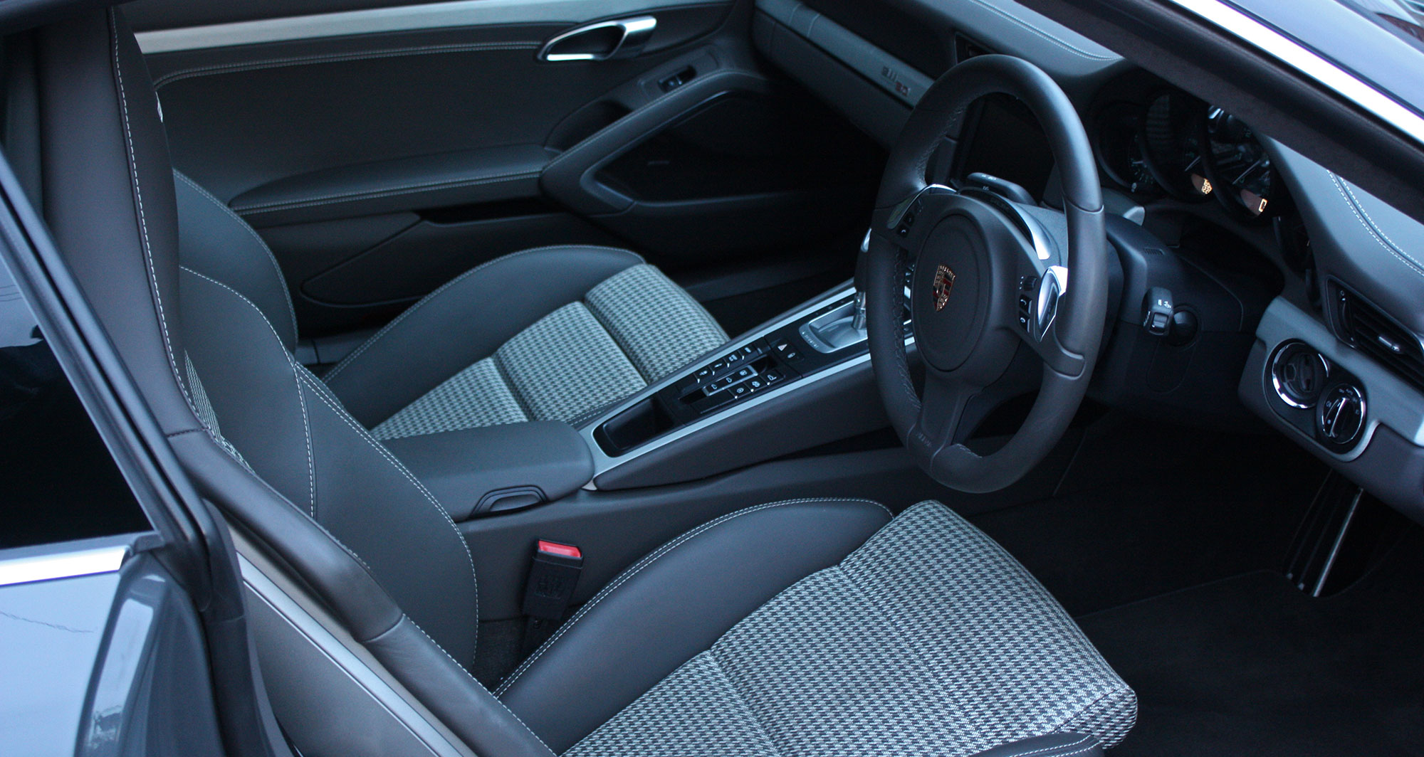 This 911 50th Anniversary has a 3.8 litre flat six engine which produces 400 bhp matched to a 7-speed PDK gearbox and is presented in the subtle colour scheme of Graphite Grey with Agate Grey leather seats with Houndstooth cloth inserts.