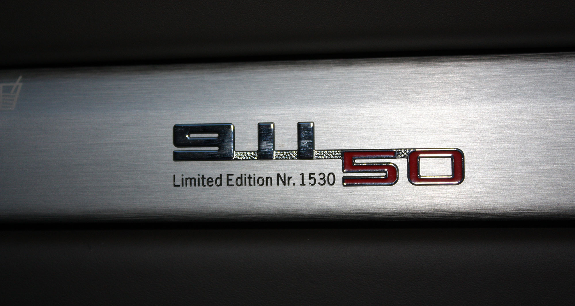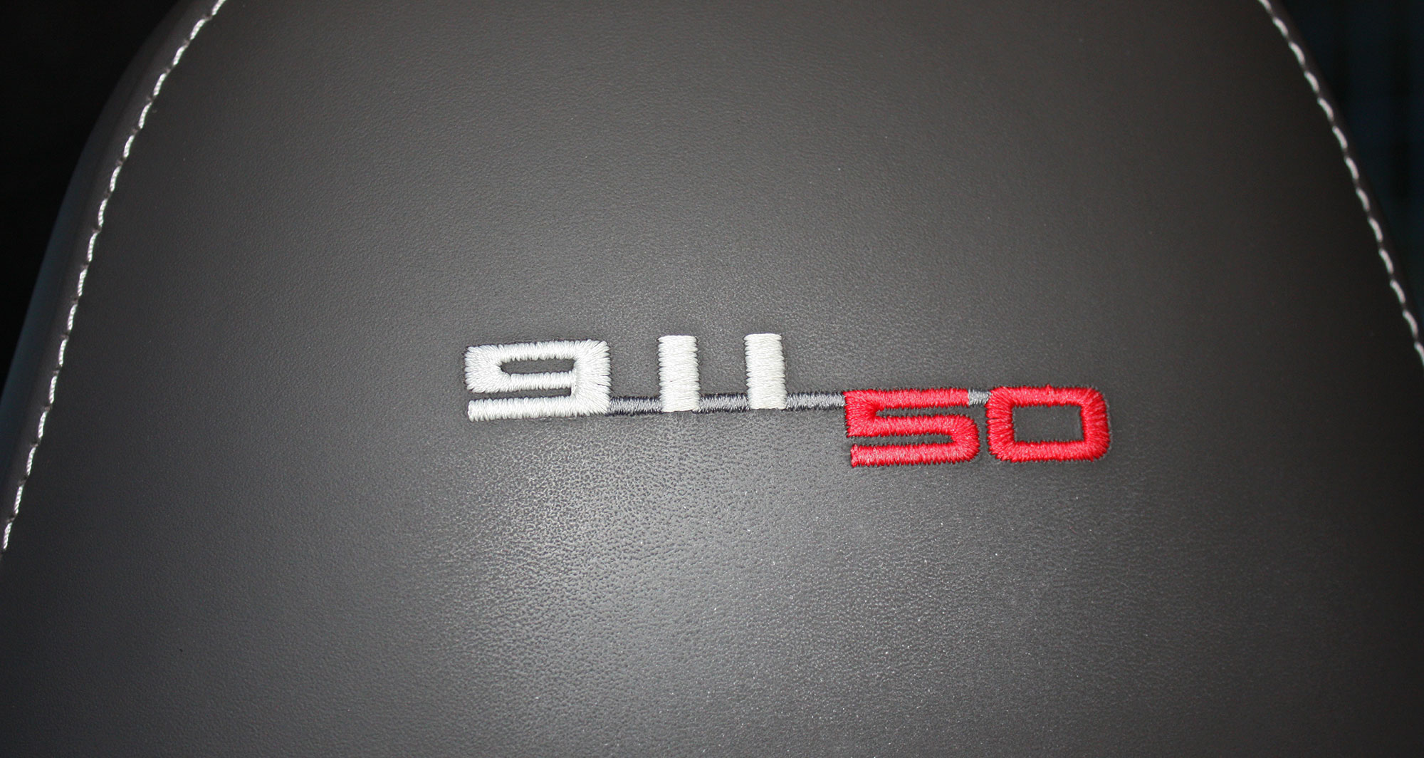 Several design features show the 911 heritage, including a two-tone 3D-effect badge on the rear lid with the numbers '911 50', three colour embroidery on the headrest featuring the same logo and even green labelling on the instruments with white pointer needles and silver caps on the instrument pivot pins, just like 50 years ago.