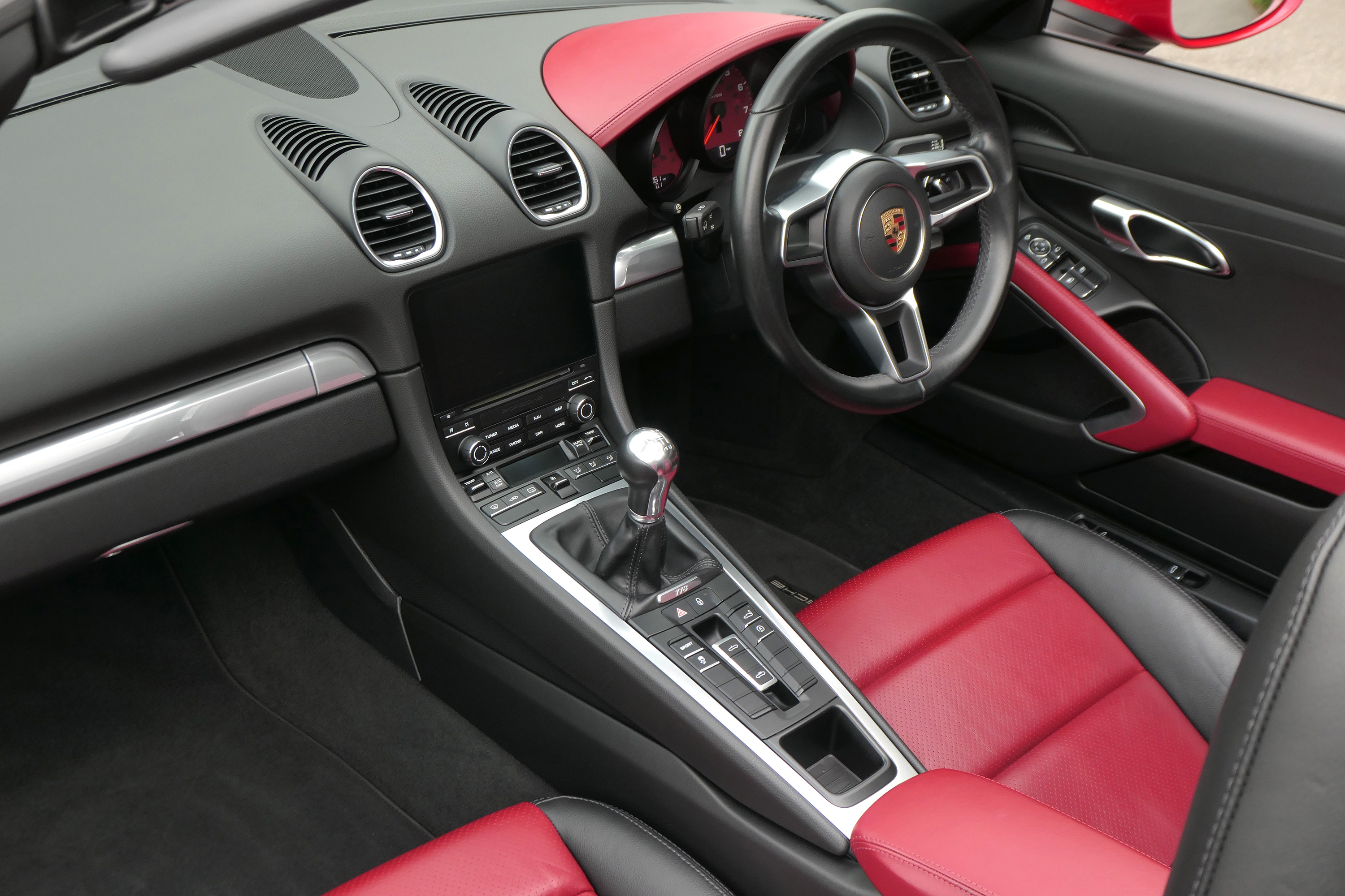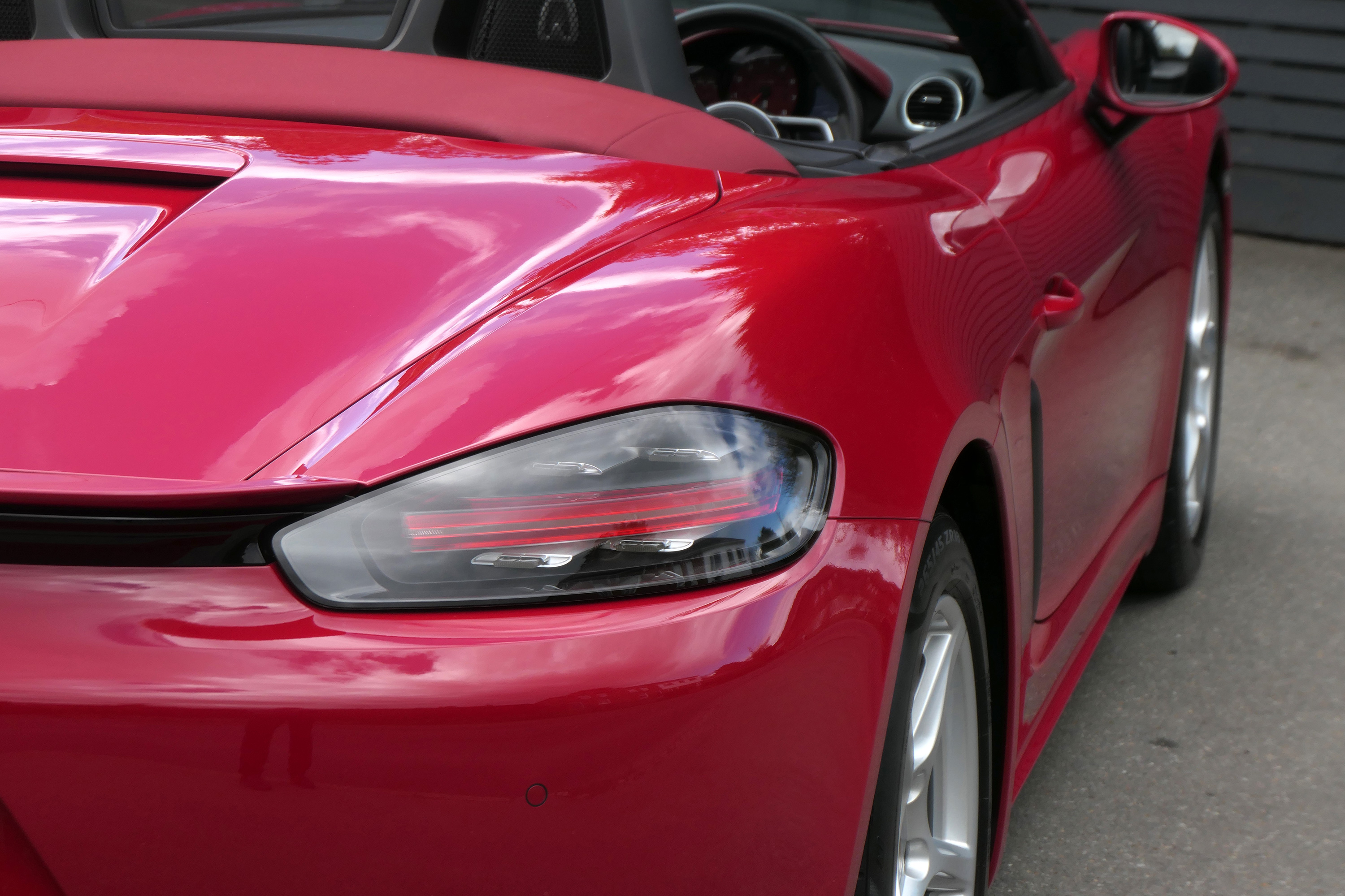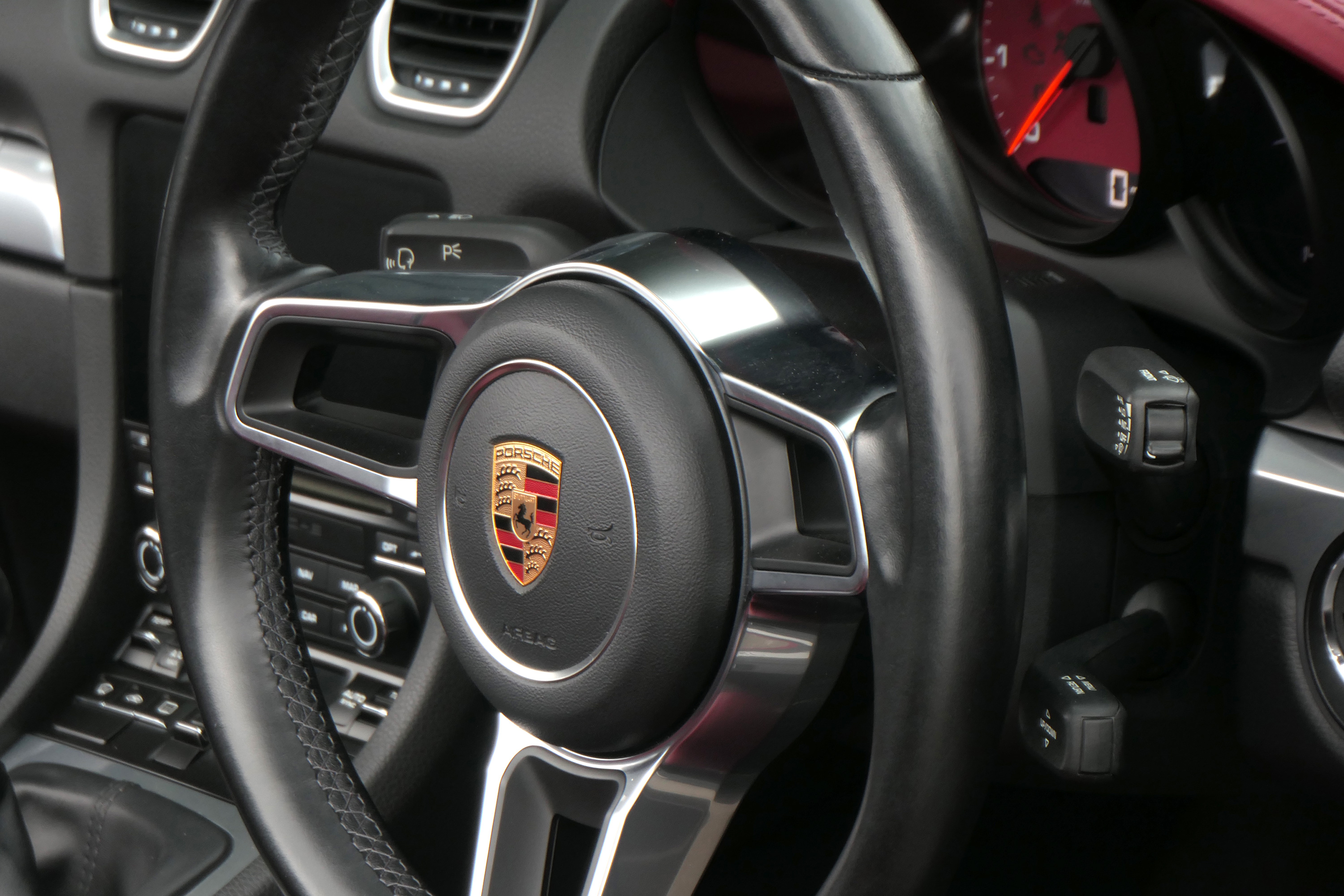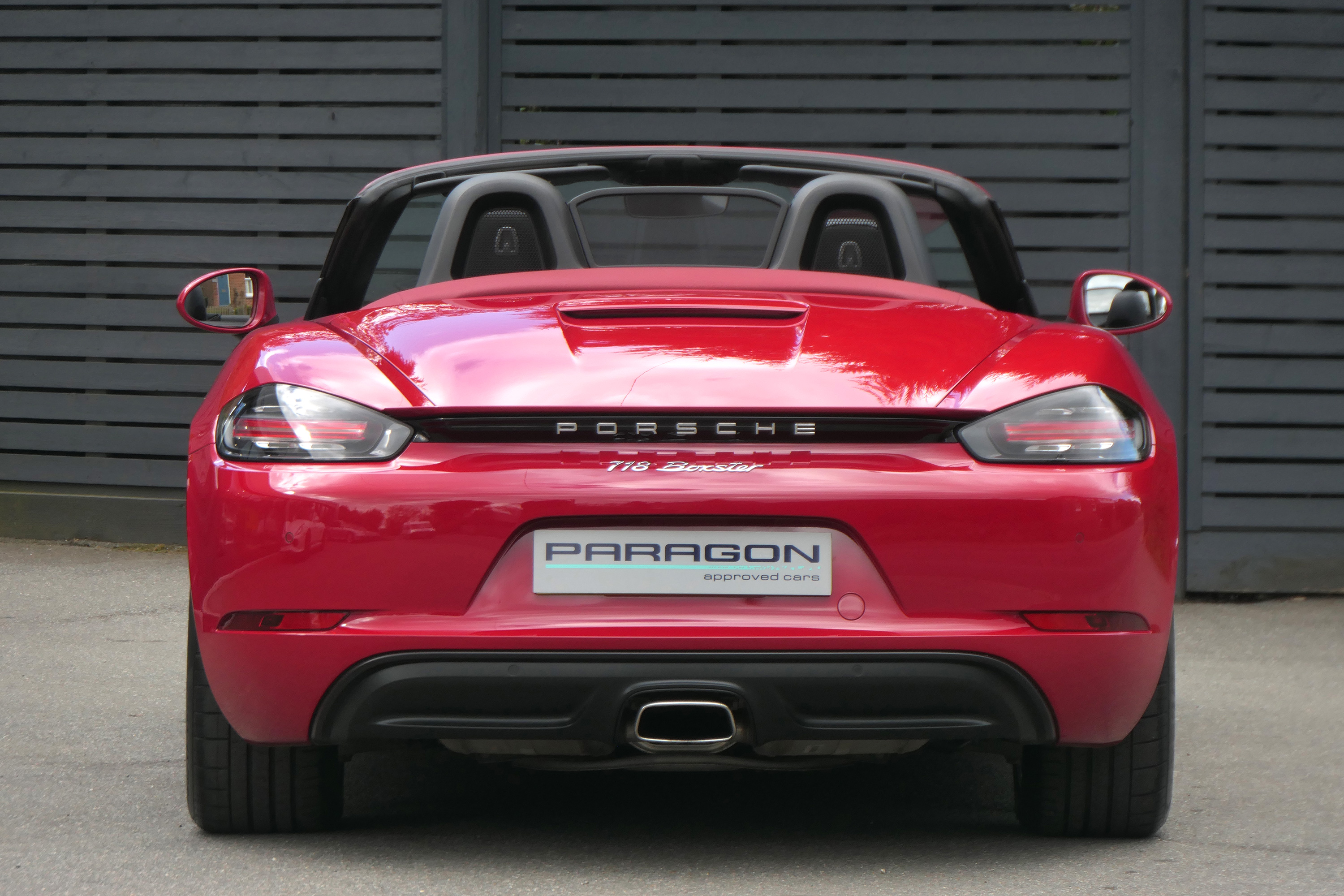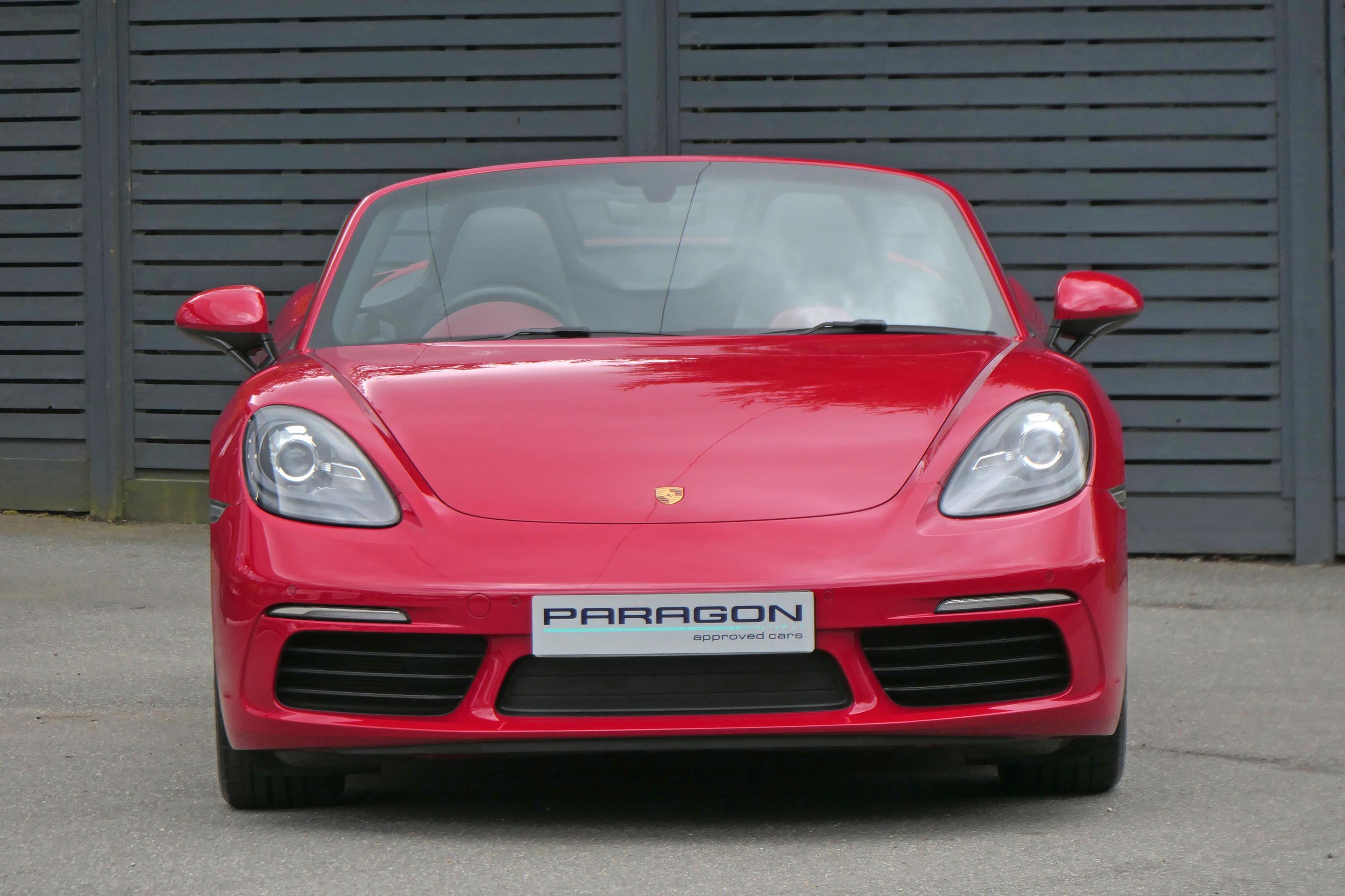 The flat four turbocharged engine develops 300 bhp and standard features include 18" Boxster wheels, mesh wind deflector, onboard computer, air conditioning, LED daytime running lights, stop/start function, automatic headlights, Porsche Stability Management (PSM), Bluetooth phone & music, and a sport button for increased throttle response.