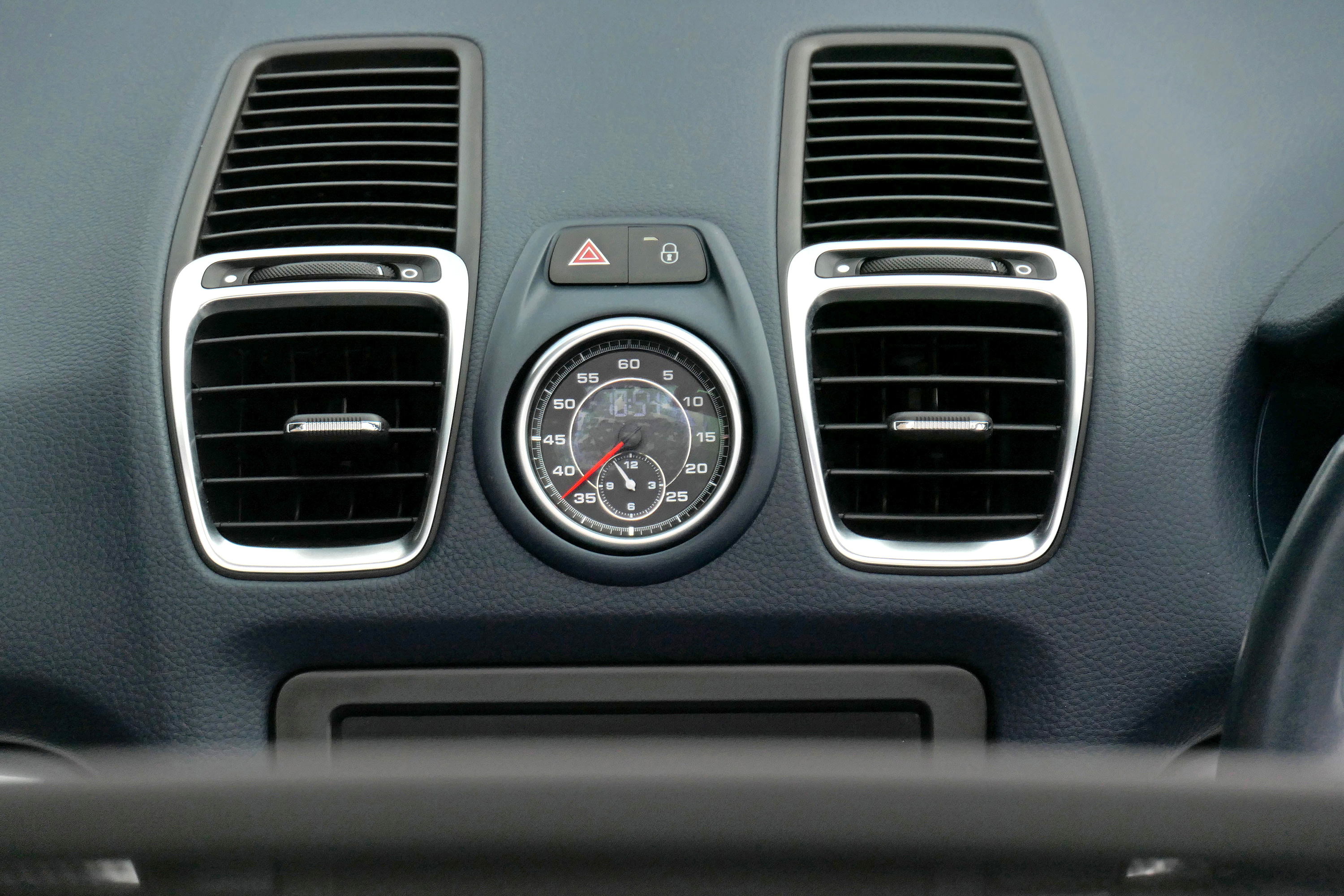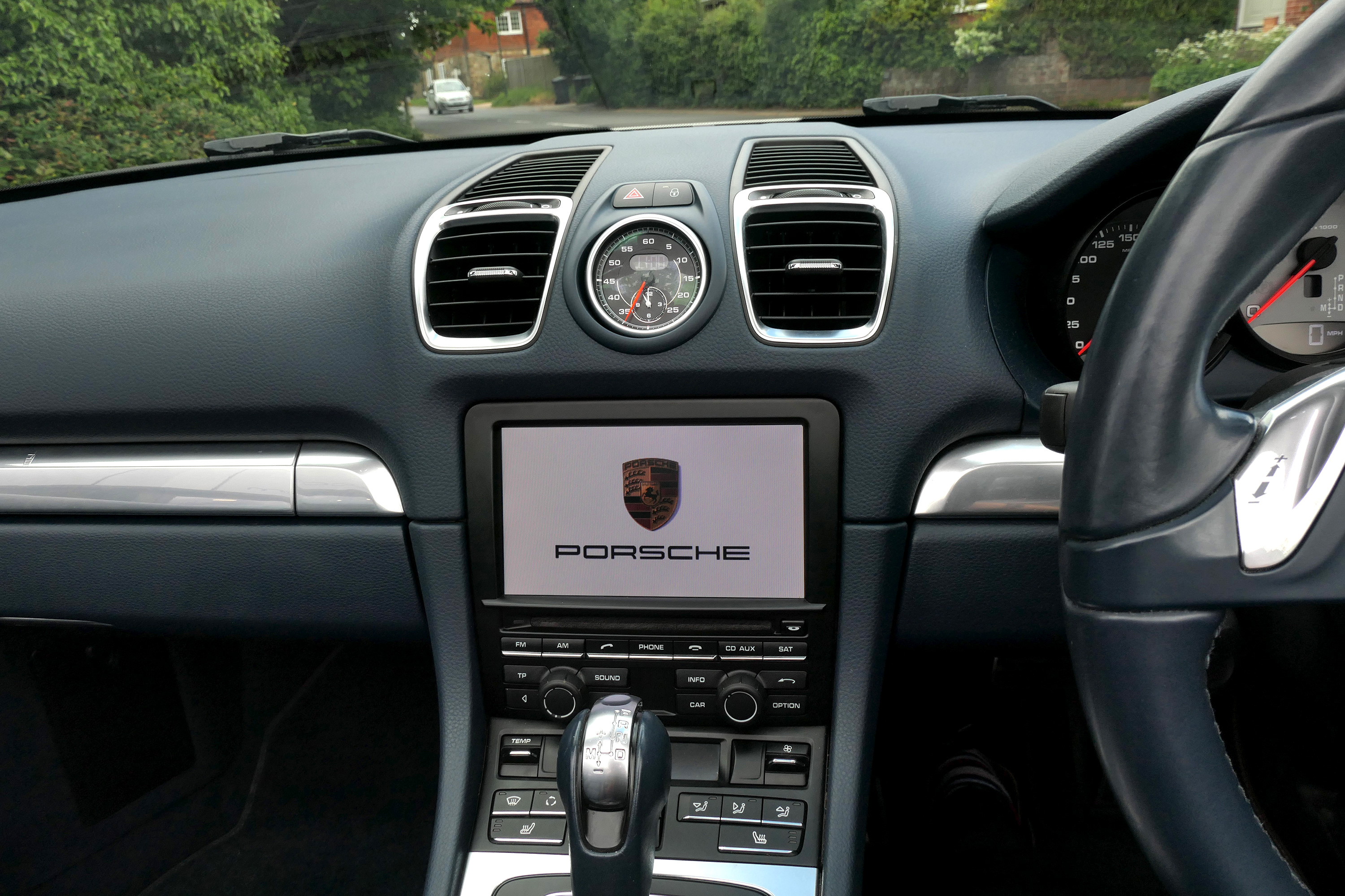 The 3.4 litre flat six direct fuel injection engine develops 315 bhp and standard features include air conditioning, an onboard computer, a stop/start function, a Porsche CDR-31 CD player, automatic headlights, a sport button for increased throttle response, LED daytime running lights, Porsche stability management and a mesh wind deflector.