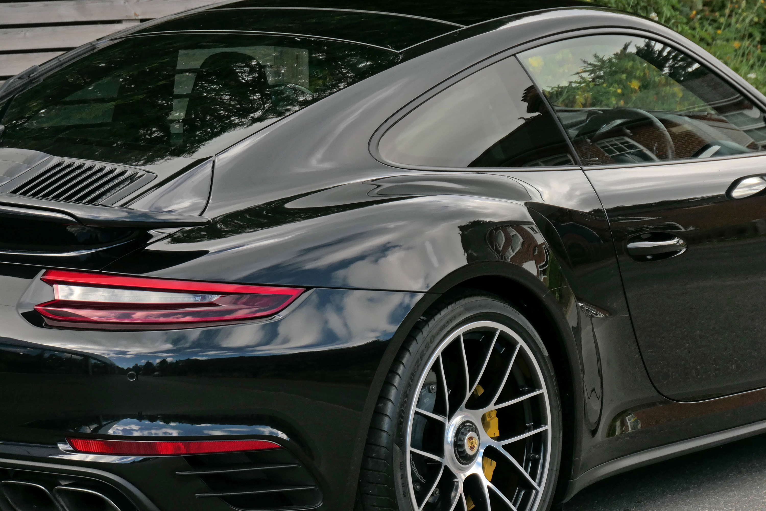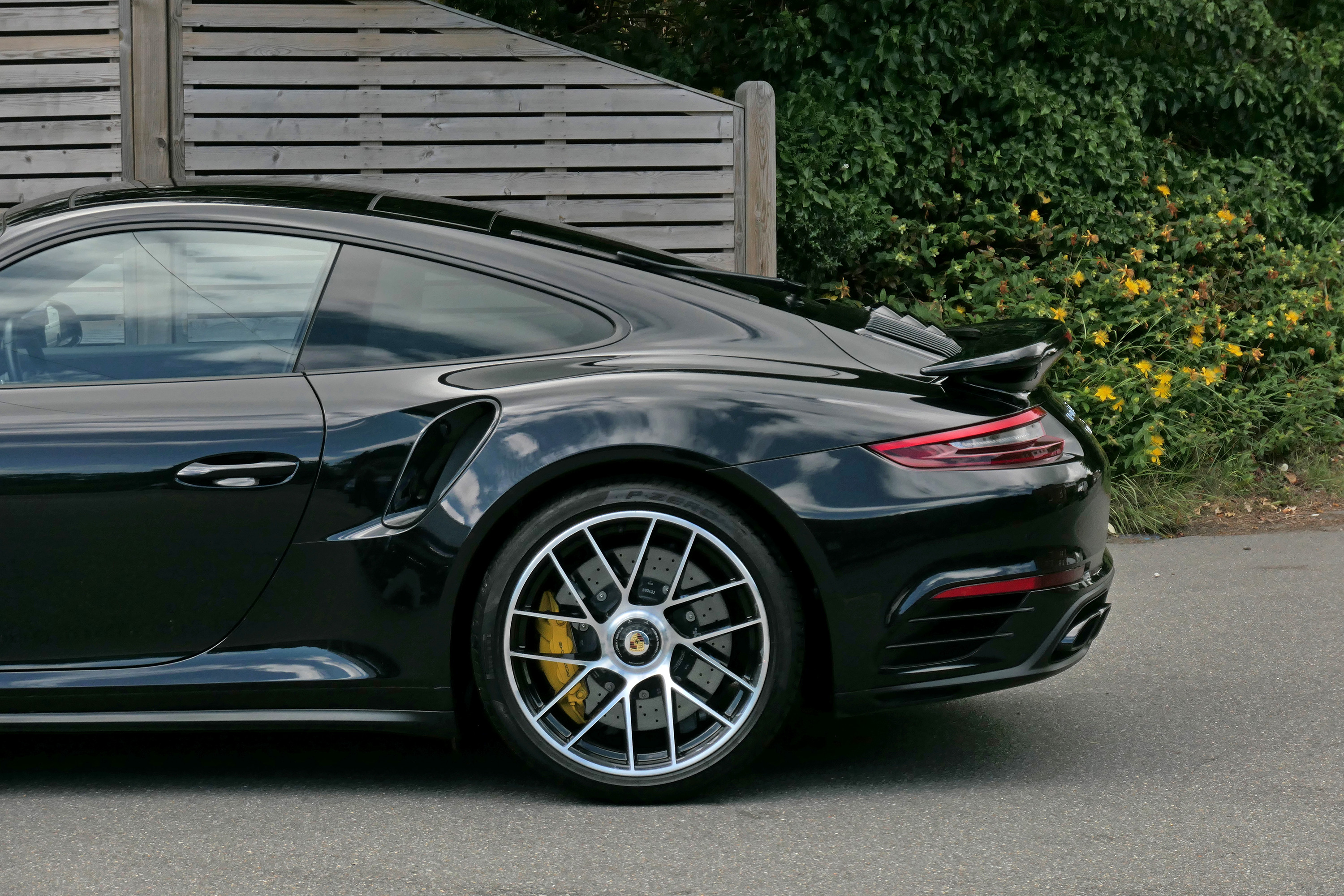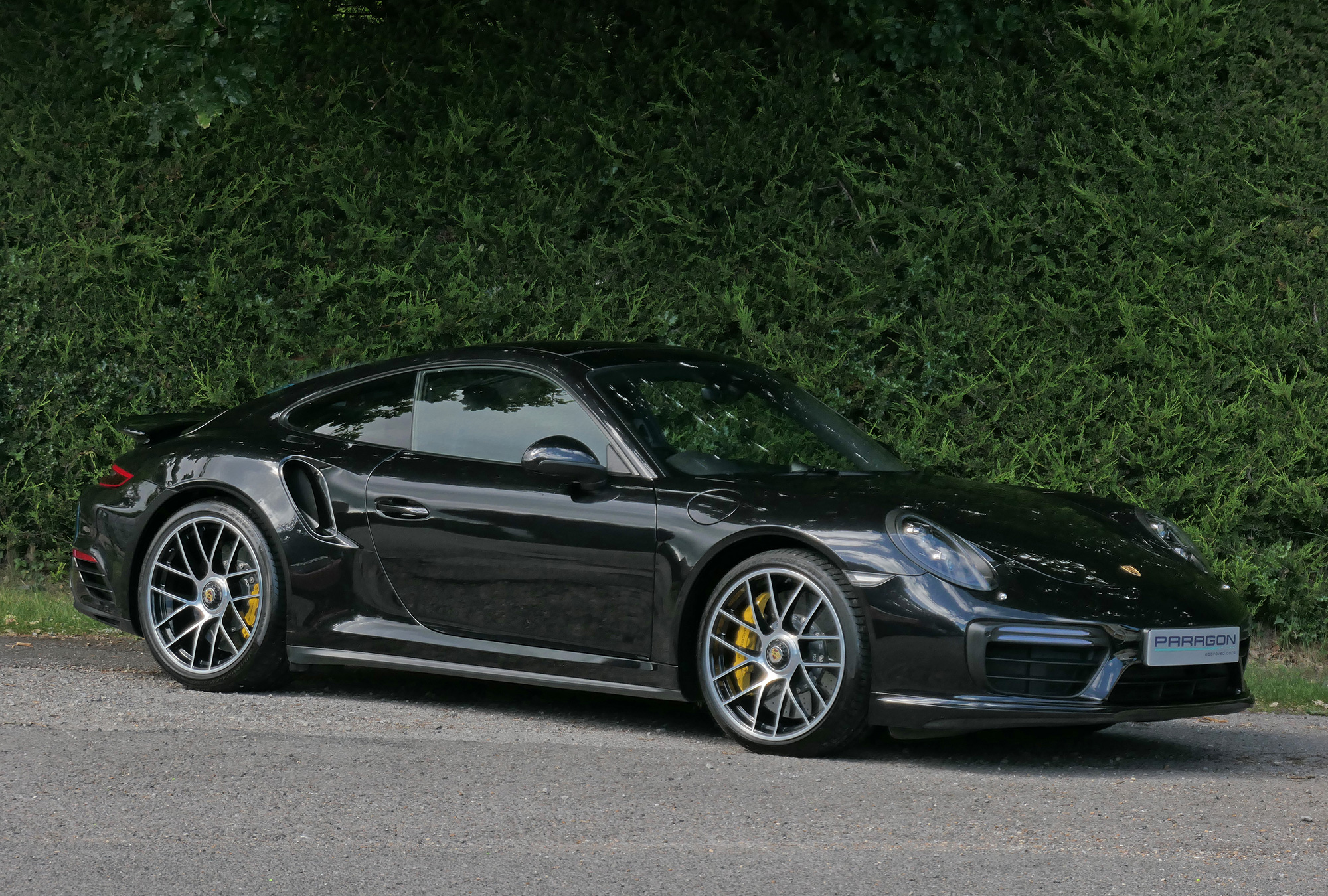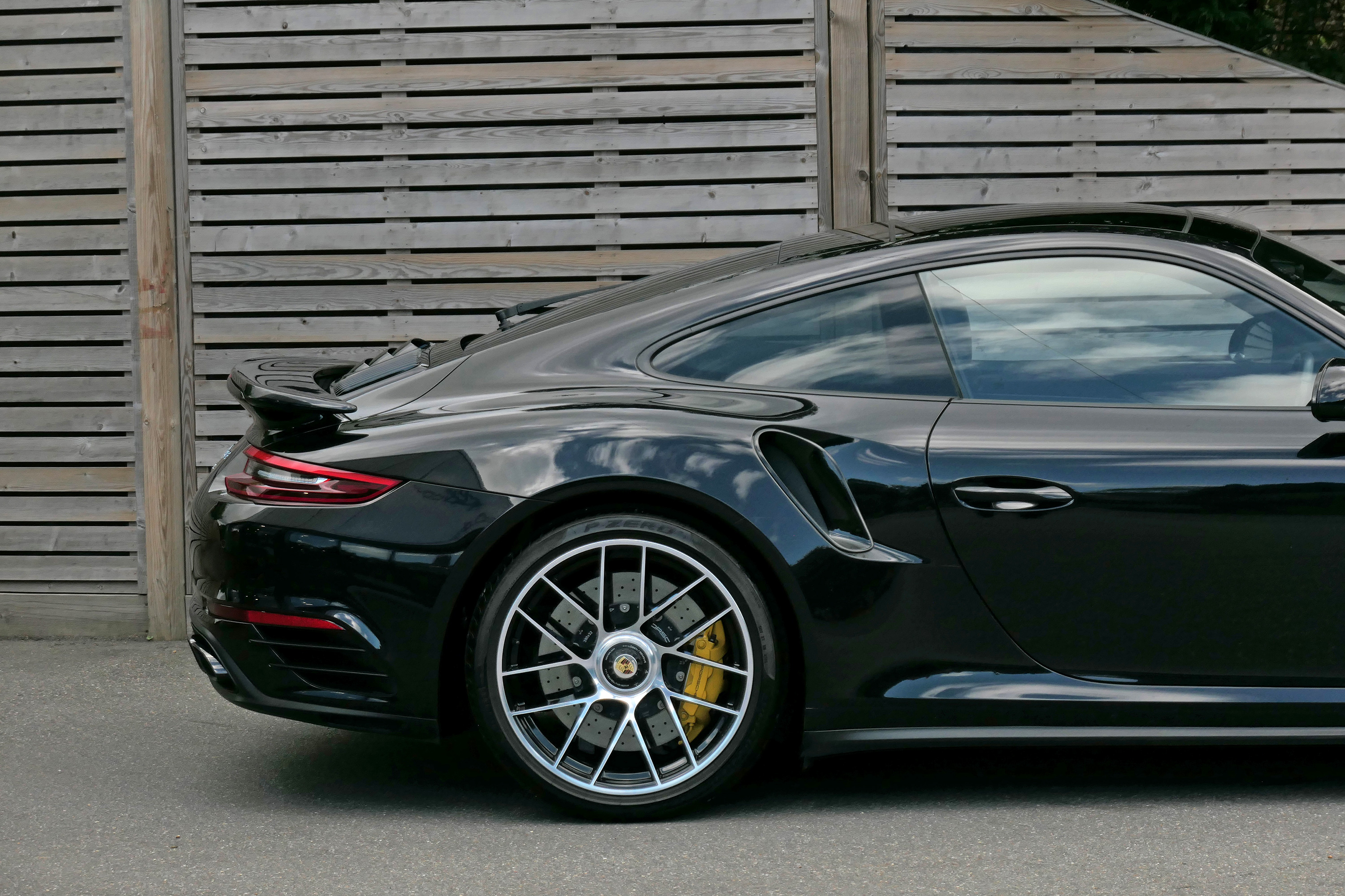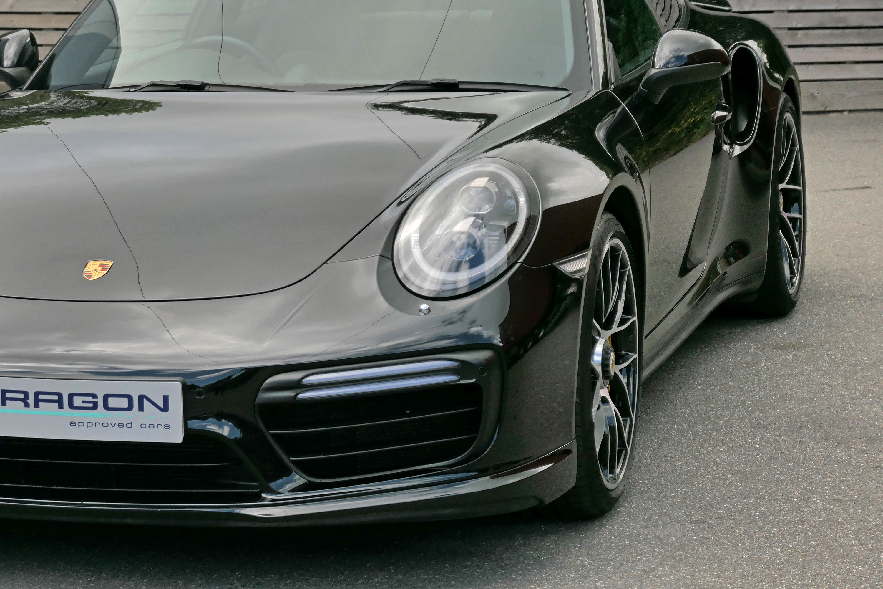 The 3.8 litre flat six twin-turbocharged engine develops 580 bhp and standard features include four wheel drive, 20" Turbo centre lock wheels, the 7-speed PDK gearbox, Porsche Ceramic Composite Brakes, touchscreen satellite navigation with Apple CarPlay, Porsche Dynamic Chassis Control & Porsche Stability Management, Bluetooth phone, Porsche Active Aerodynamics, a stop/start function, automatic headlights, a multifunction steering wheel, electrically folding door mirrors, Bi-Xenon headlights and LED daytime running lights.