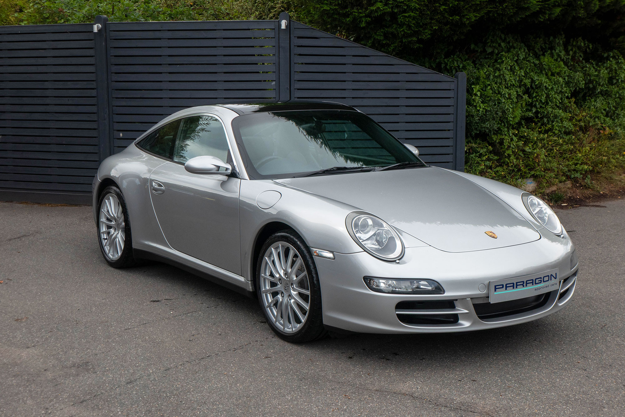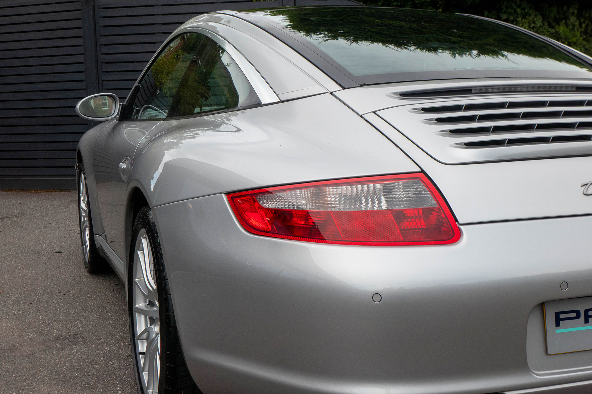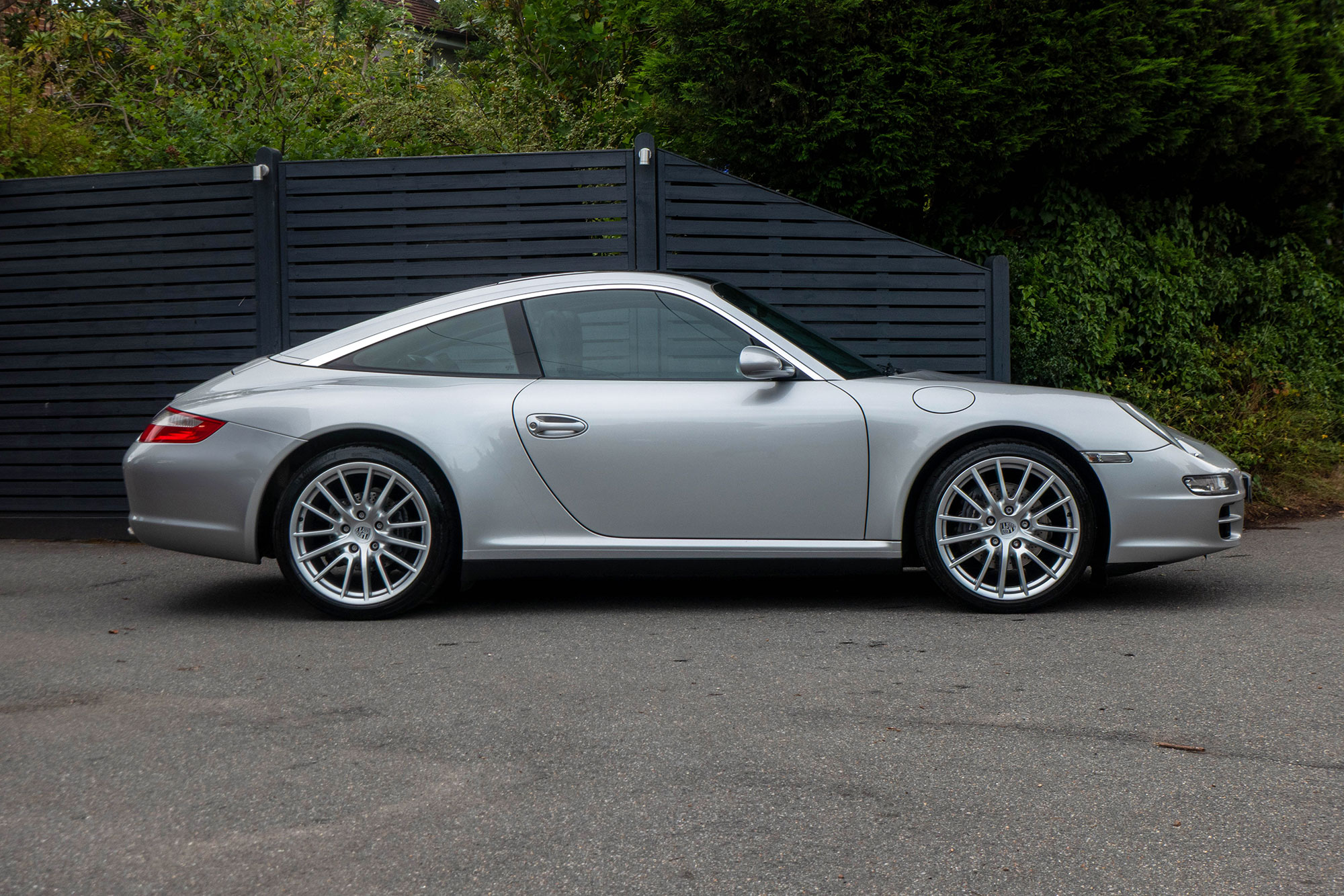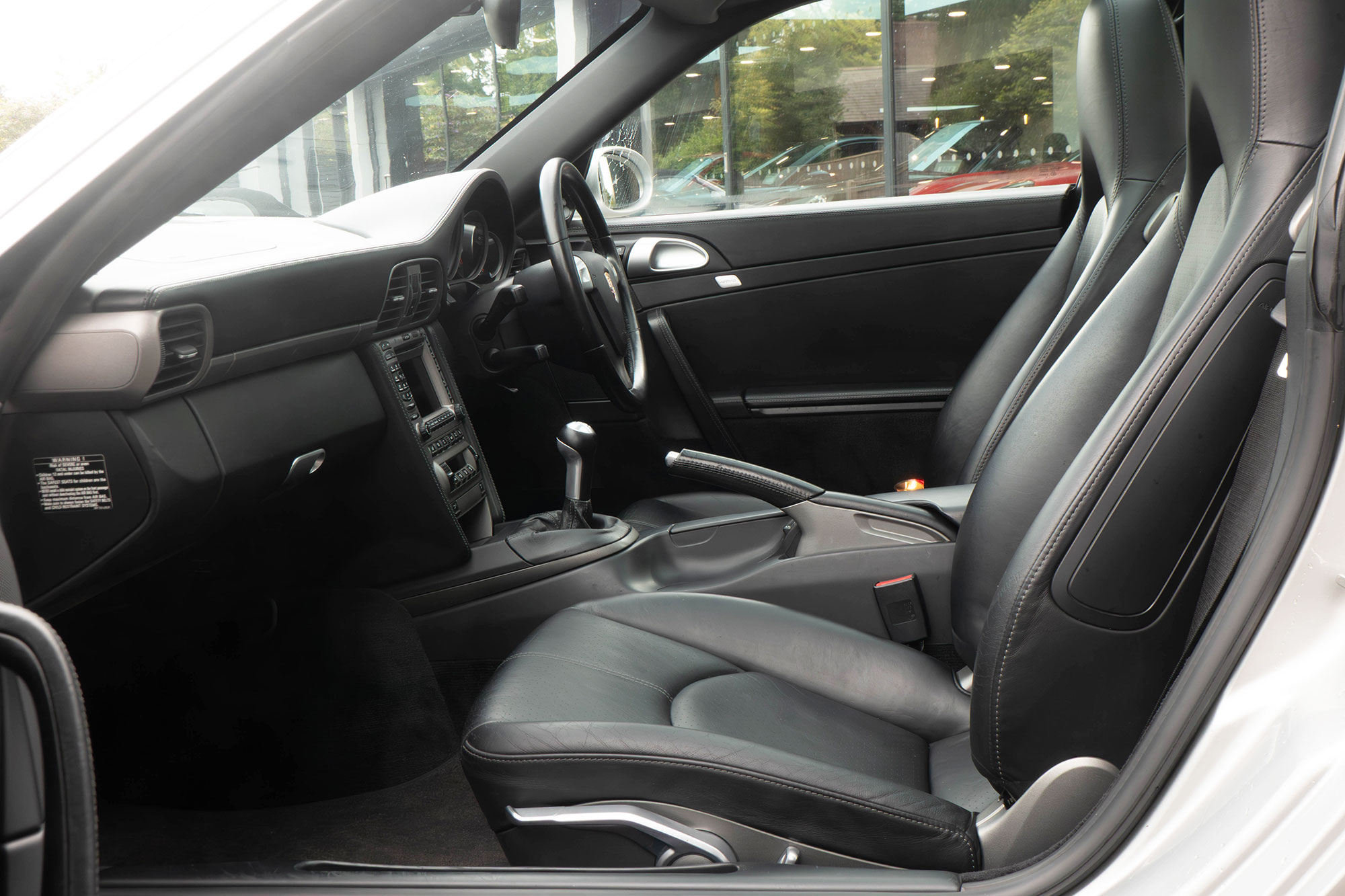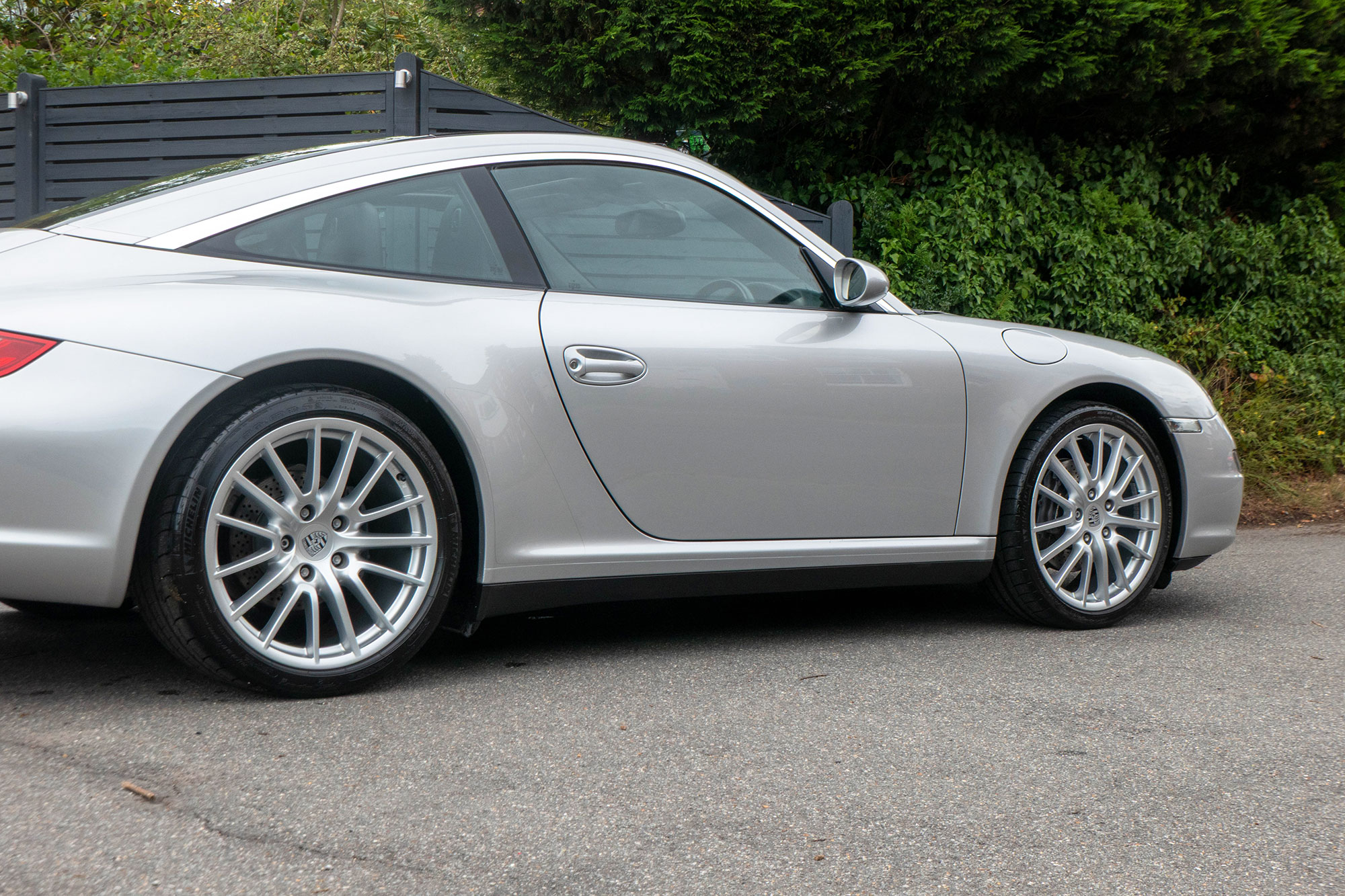 This 911 Carrera 4 Targa (997) has the 6-speed manual gearbox and is presented in Arctic Silver with black leather seats.