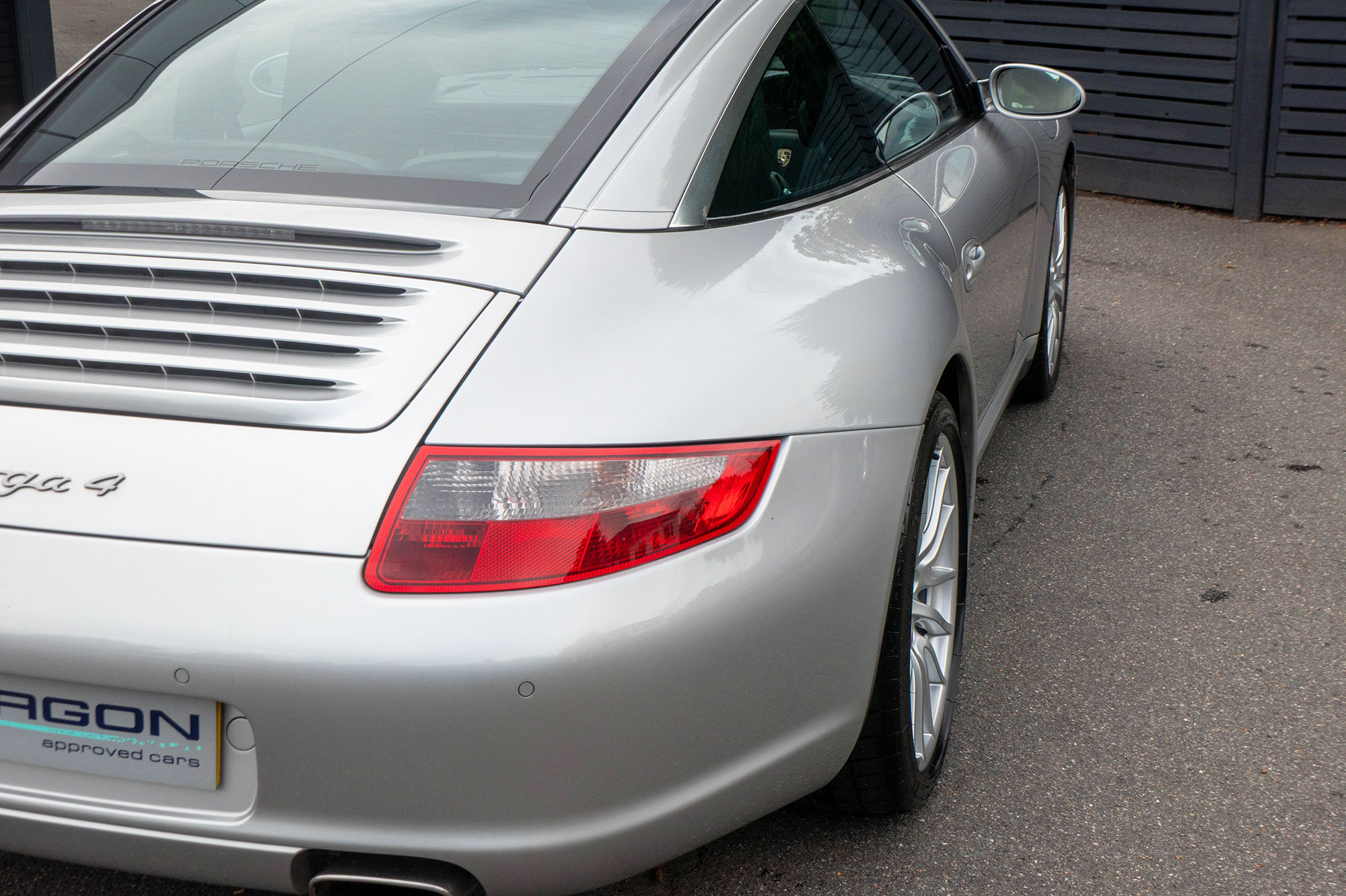 The 3.6 litre flat six engine develops 325 bhp and standard features include four wheel drive, air conditioning, Porsche Stability Management and an onboard computer. The Targa features an electric glass panoramic roof with electric sunblind.