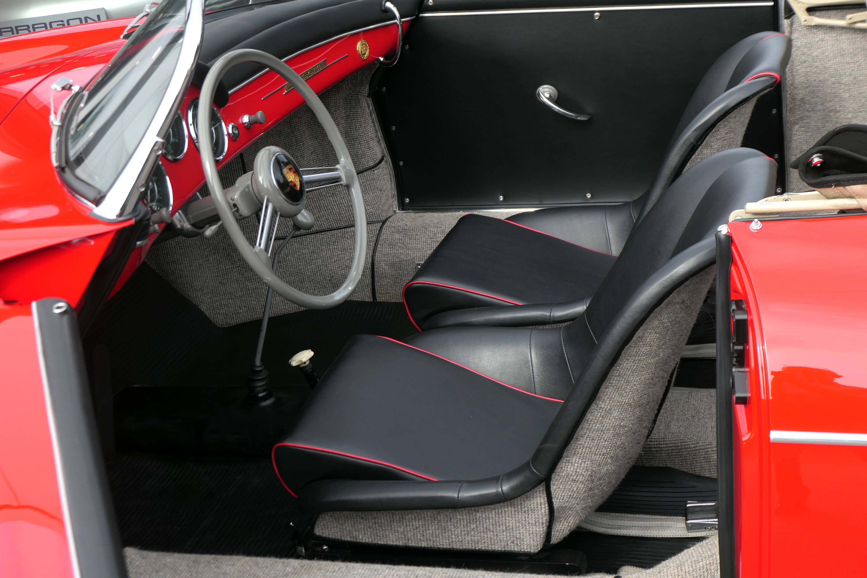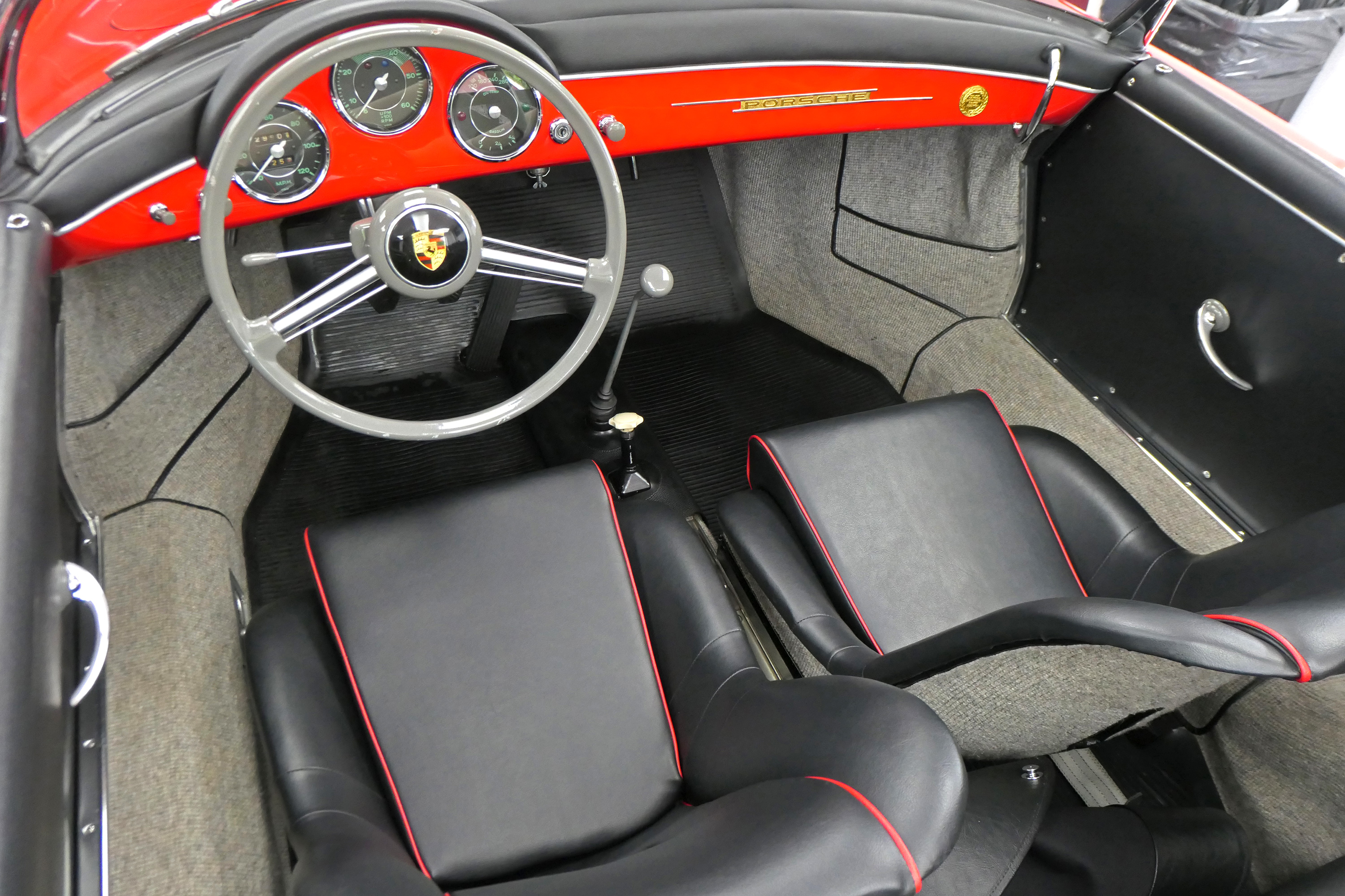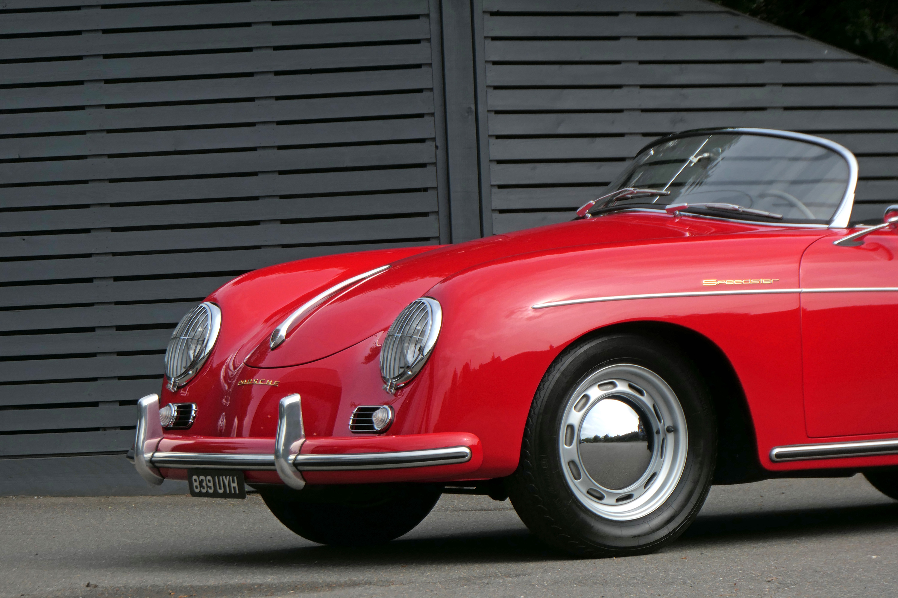 This beautiful left hand drive 1957 356 Speedster has the four speed manual gearbox and is presented in Signal Red with black leather sport seats, black hood, tonneau cover and side screens. It is fitted with 15" steel wheels with chrome hubcaps, and is complete with tool kit, jack, and spare wheel. The 1.6 litre flat four engine develops 60bhp.