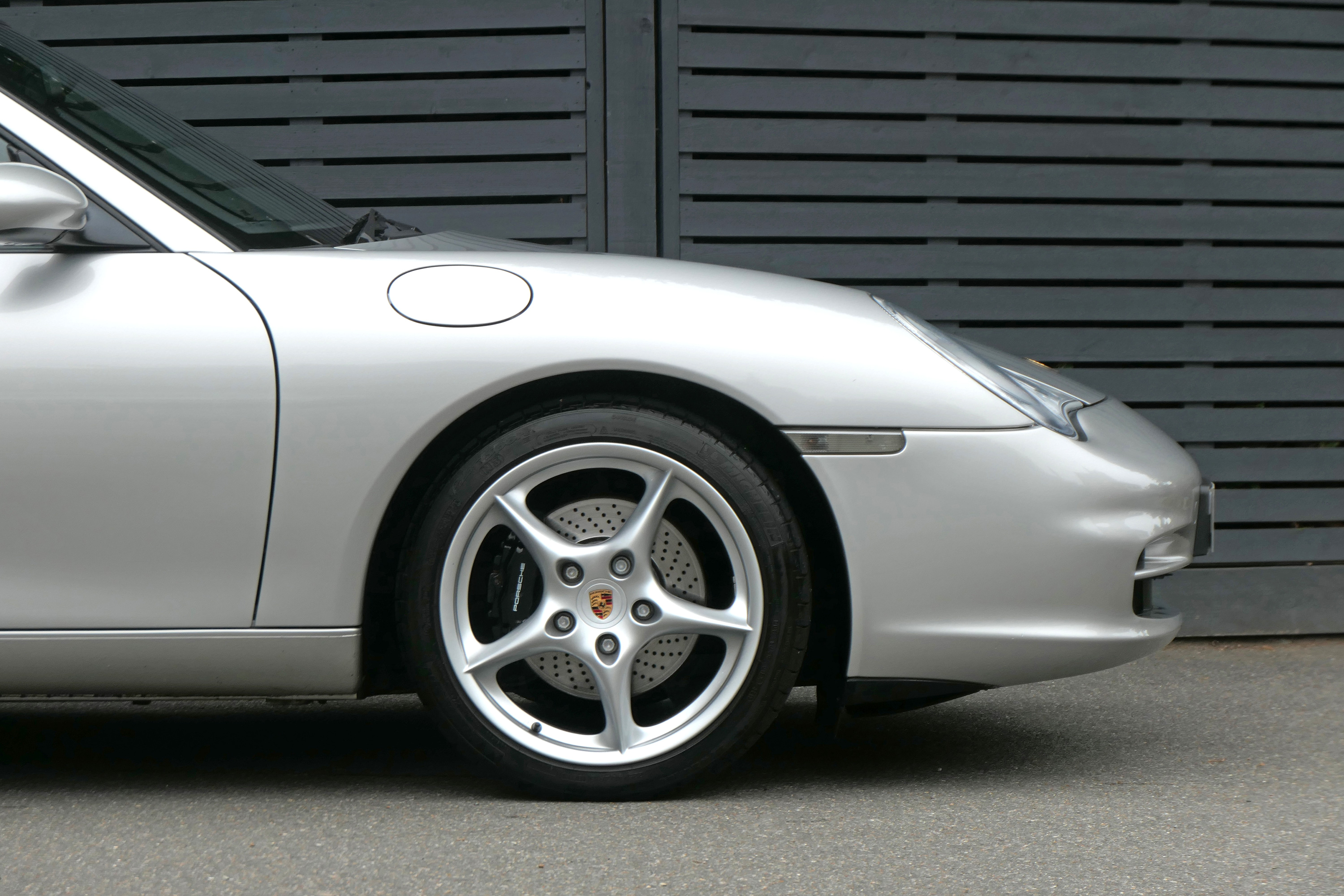 This 911 Carrera 2 Coupe (996 GEN ll) has the 6-speed manual gearbox and is presented in Arctic Silver with Dark Blue leather seats.