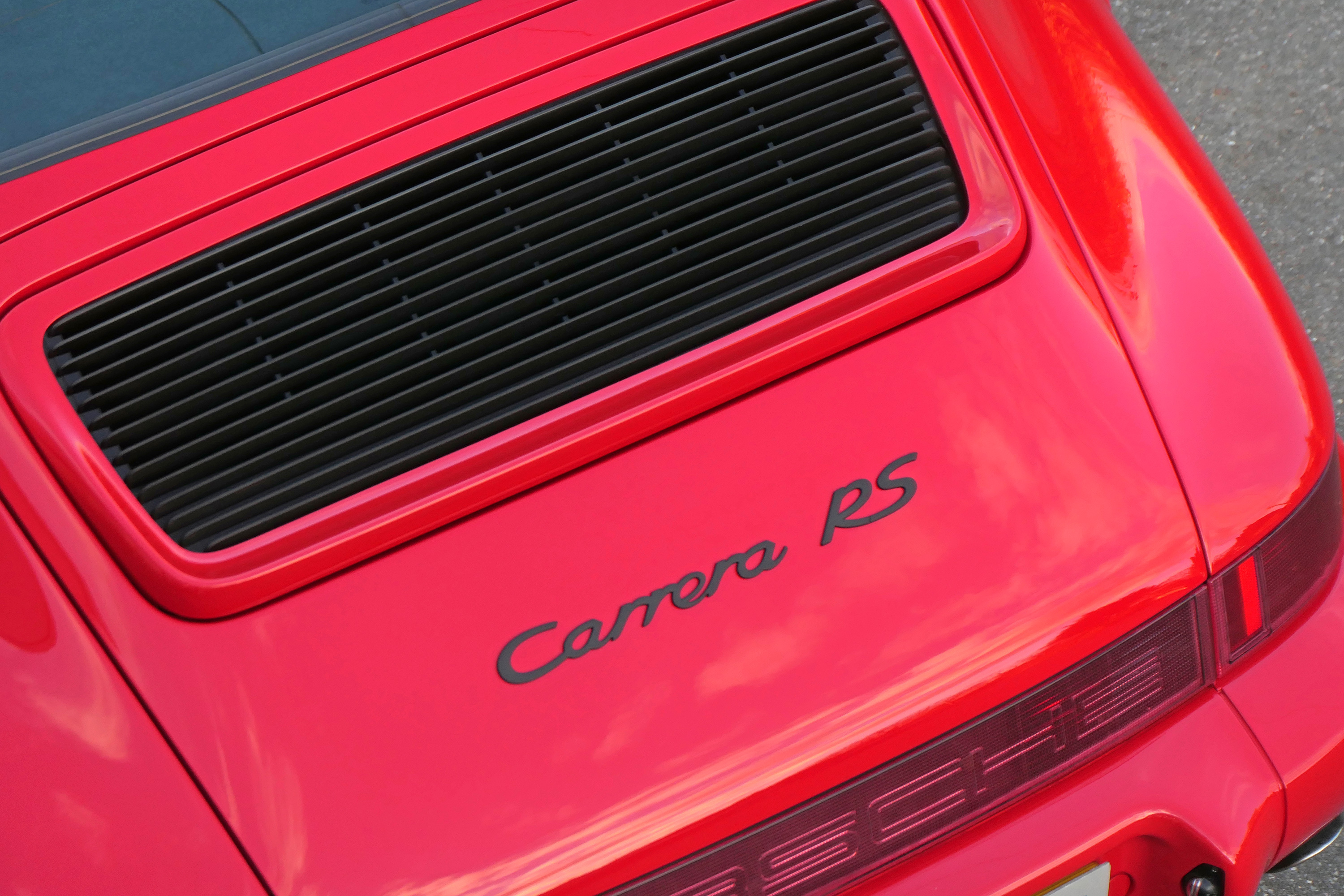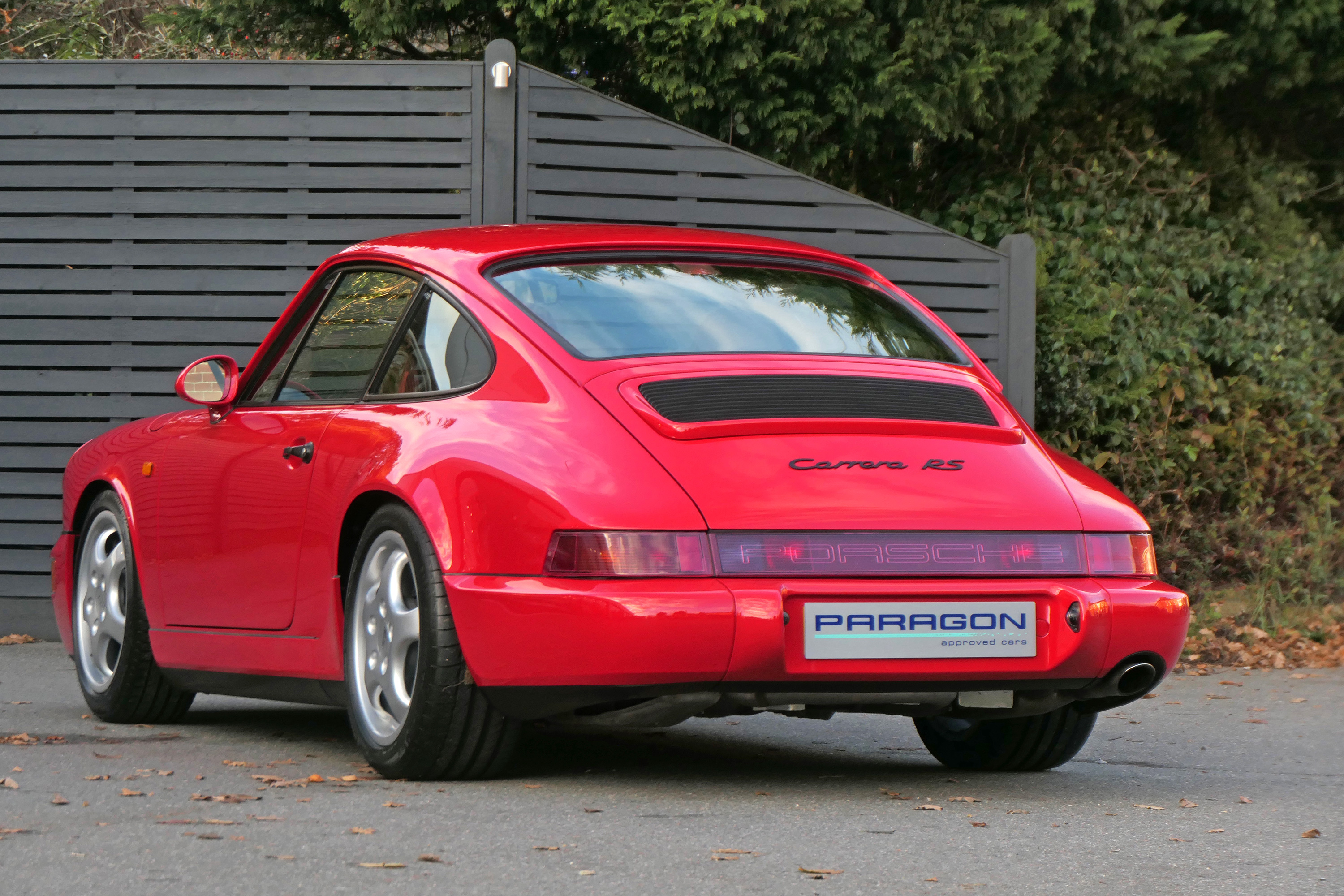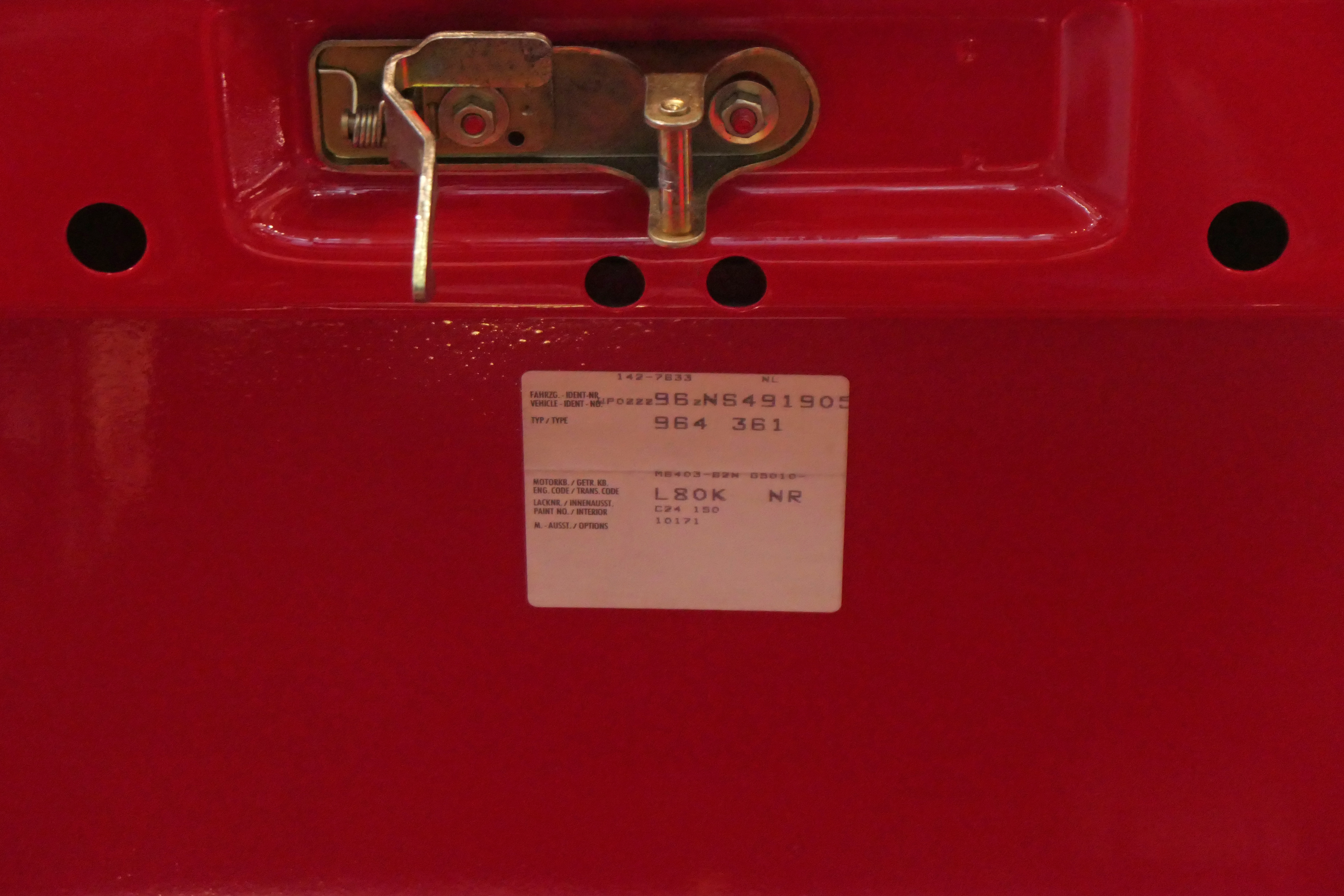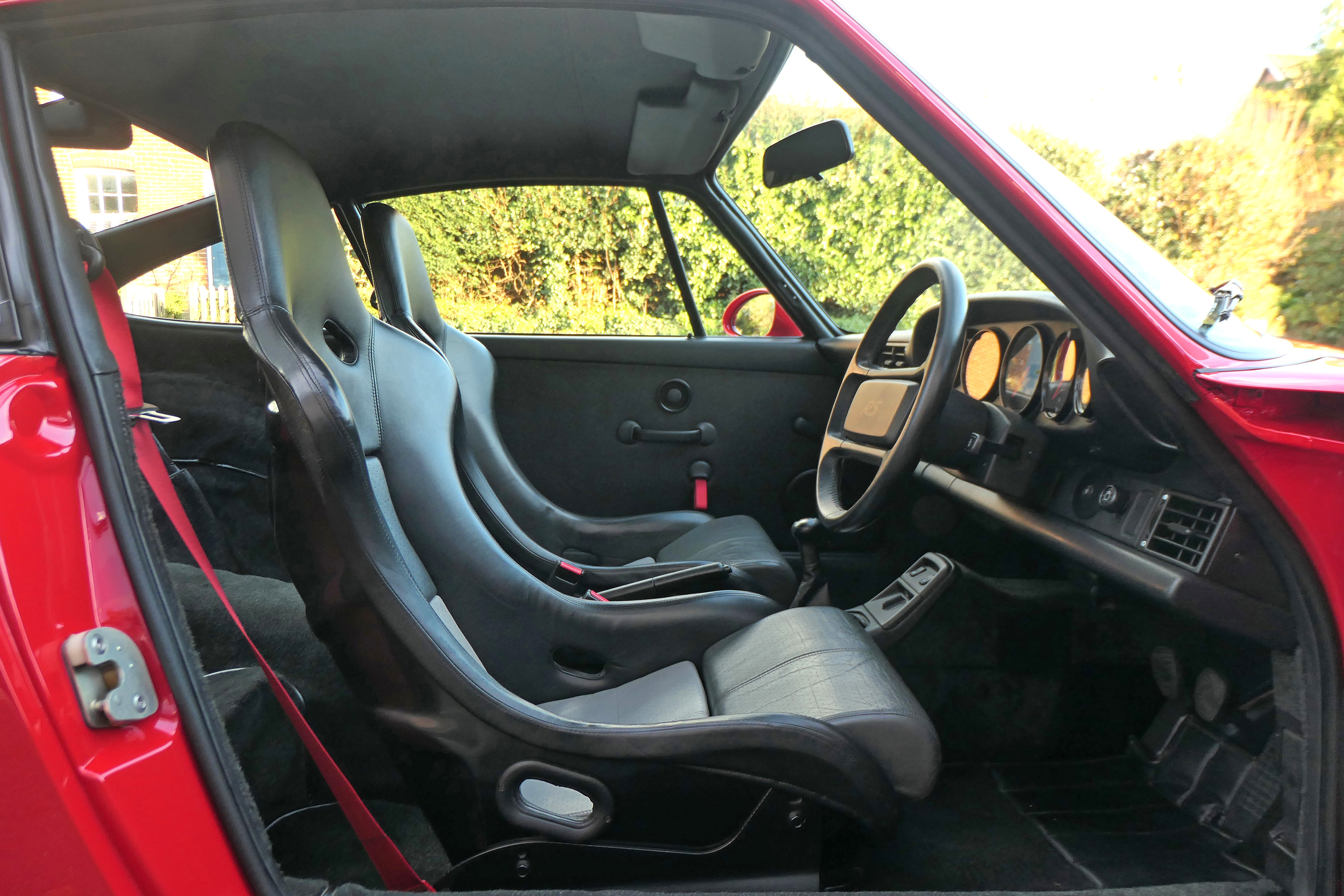 This 911 Carrera RS (964) has the 5-speed manual gearbox and is presented in Guards Red with triple tone leather bucket seats.