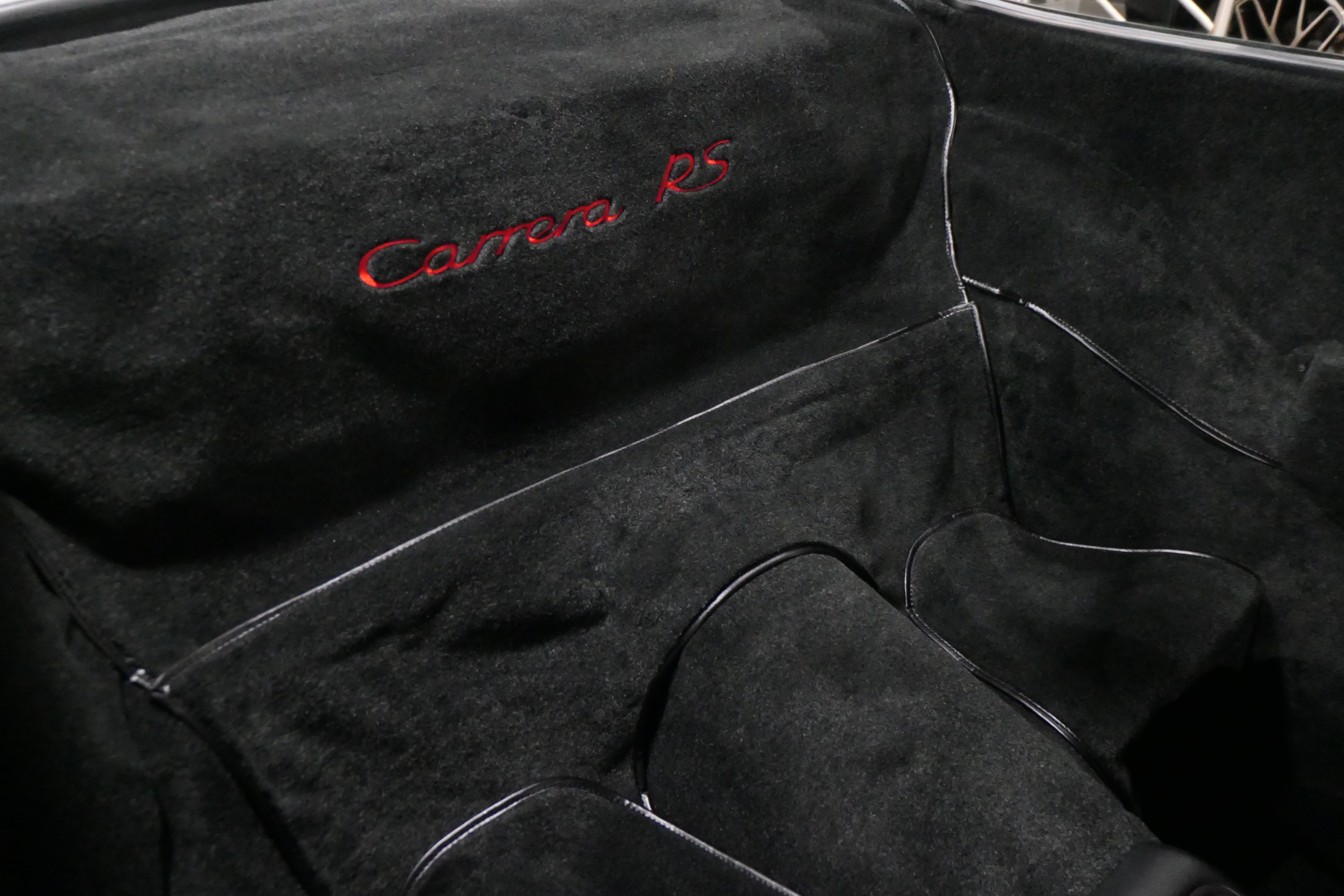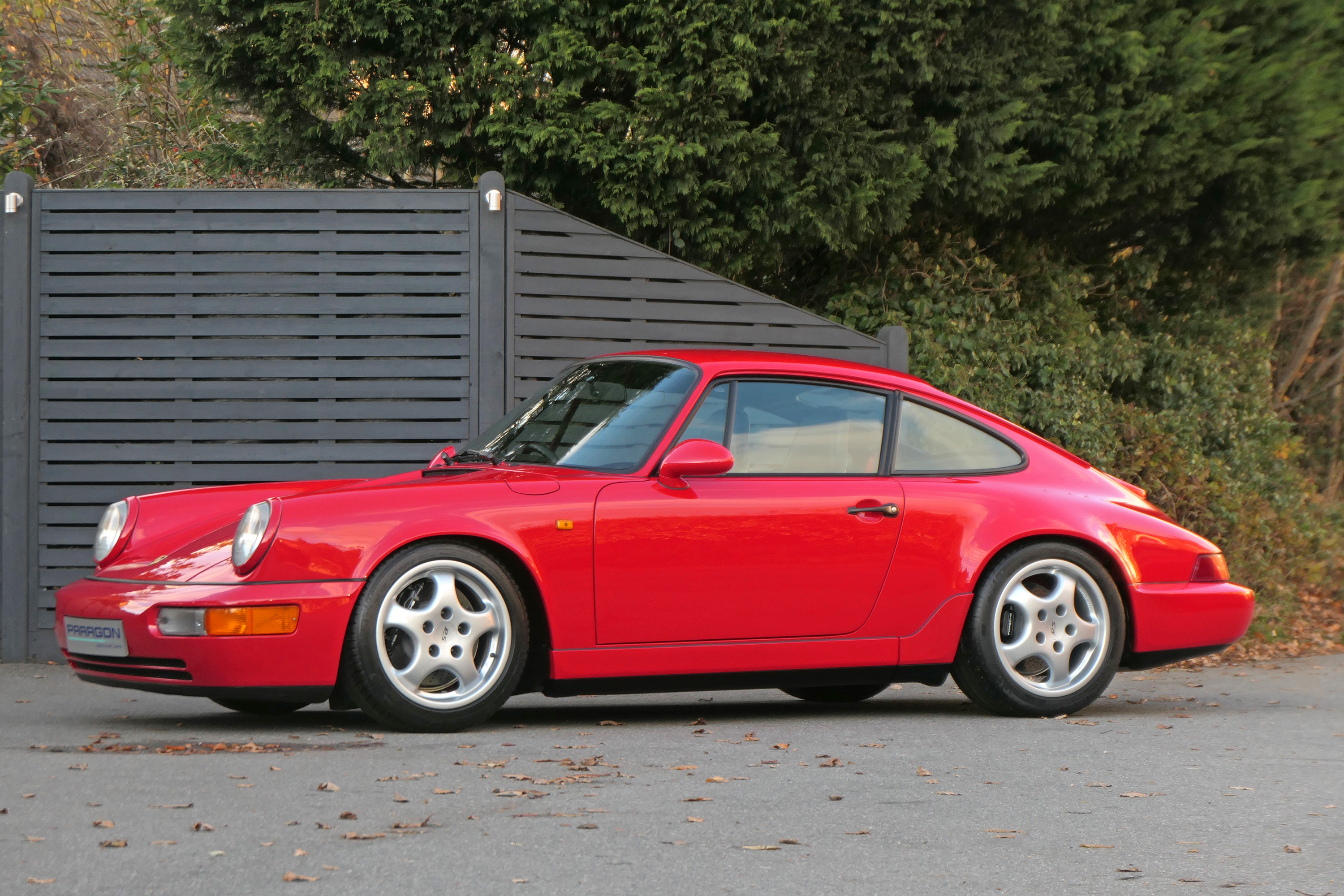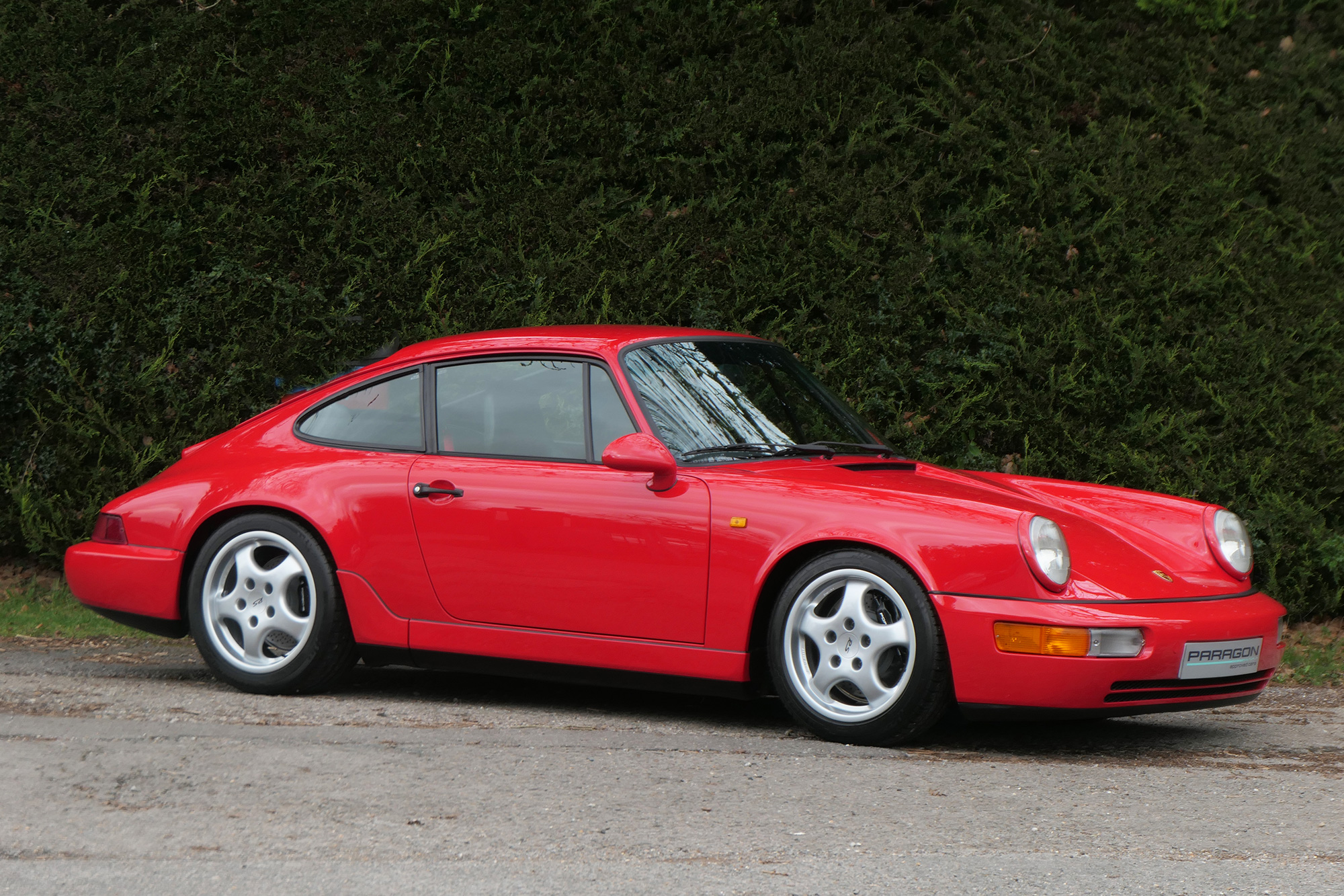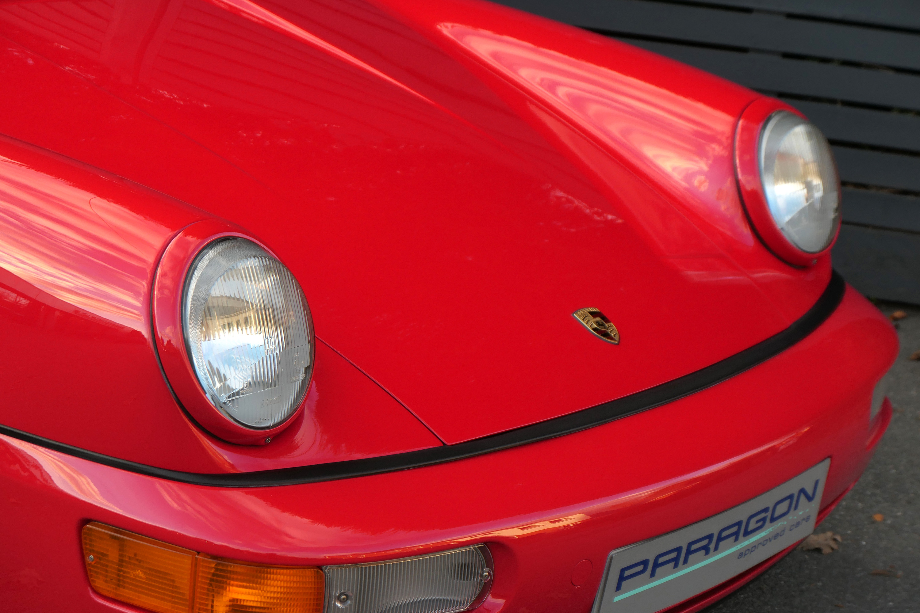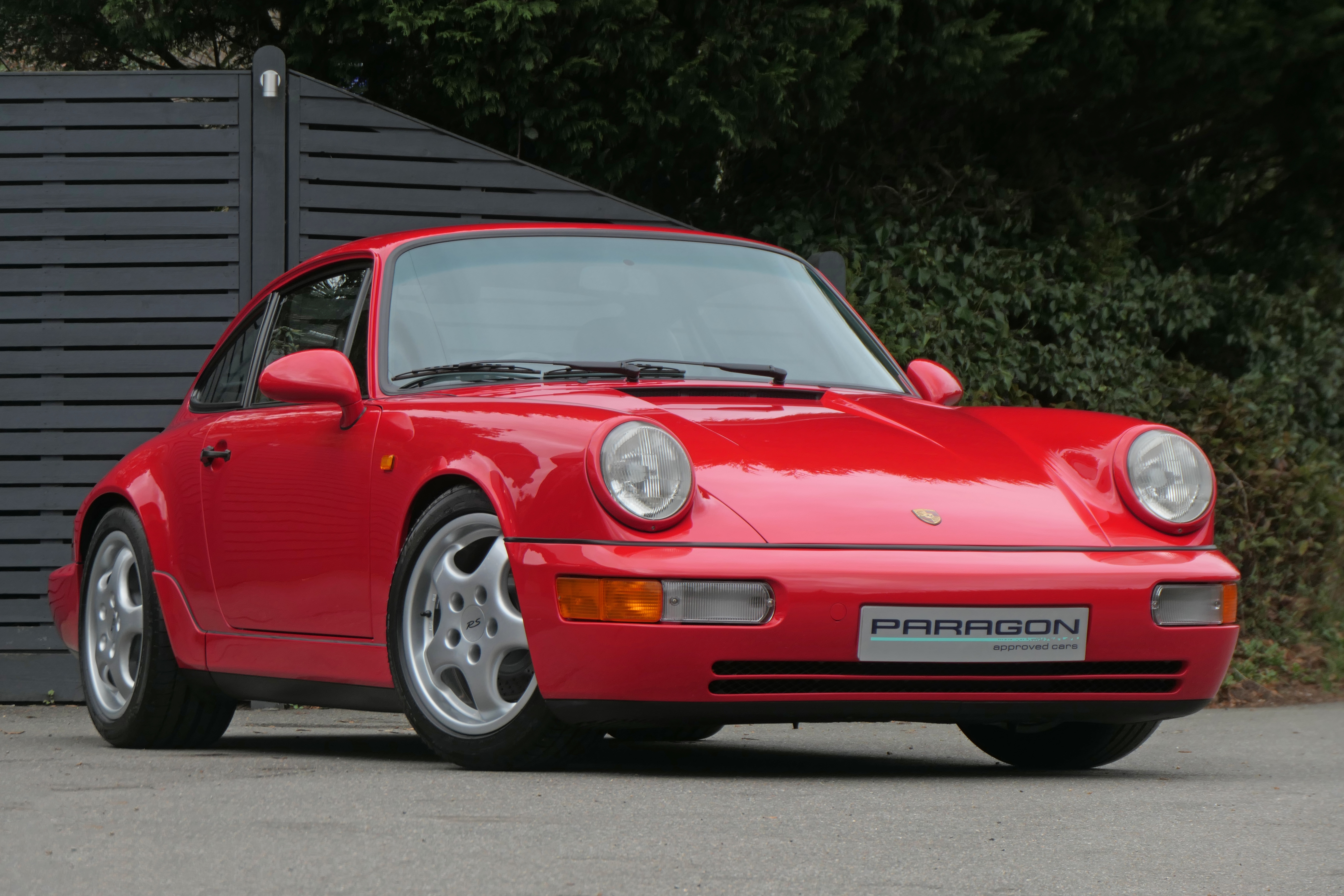 This 911 Carrera RS (964) has the 5-speed manual gearbox and is presented in Guards Red with triple tone leather bucket seats.